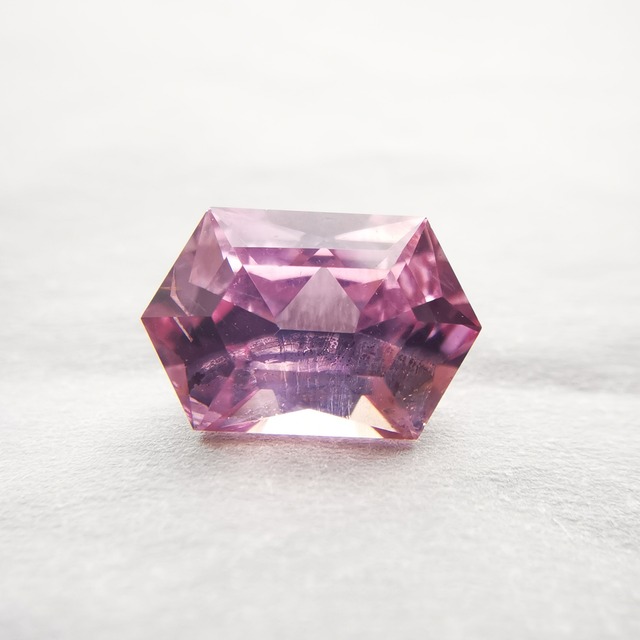 スピネル 0.82ct Mahenge, Tanzania産 わずかに肉眼で見える、一部表面に達する面状のインクルージョンあり UVライトで蛍光(写真15) スリランカ人カッターW氏による ------------------------------------- 柔らかなピンク/シクラメンピンクのスピネルです。 シルクインクルージョンが見えるわけではありませんが、全体にわずかにシルキーな印象で、輝きに優し気な雰囲気があります。 鋭いきらめきと霞のかかったような印象が、一つの石の中で同居している様子は、薄雲の春の空の下の桜を連想するような一石です。 面状のインクルージョンがあるため、お仕立てには注意が必要です。 写真1~7 自然光日陰 写真8~9 自然光日向 写真10~14 LED照明 写真15 UVライト