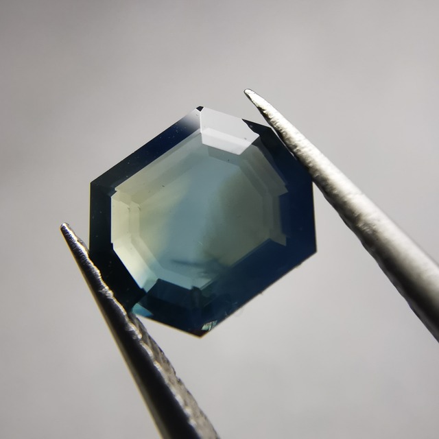 タンザナイト 1.16ct 外し石 スリランカ人カッターP氏によるリカット ------------------------------------- 淡い群青色とクリアのバイカラーのタンザナイトです。 肉眼では色の移り変わりが薄らとではありますがしっかりと見えます。 恐らく、写真でもわずかに感じられるのではないかと思います。 今にも消えてしまいそうな儚い色のグラデーションの瞬間を捉えて、永遠に額に閉じ込めた、ポートレイトカットの一石です。 動画では、ピンセットで持っている側がクリアで、逆に行くほどブルーが濃くなります。 https://youtube.com/shorts/ZHi389vqSRs 写真1~9 自然光日陰 写真10~15 LED照明