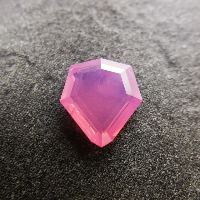スピネル 0.33ct Mahenge,Tanzania産 フェイスの表面に達する肉眼で見えるクラックあり(写真6) UVライトで蛍光(写真15) スリランカ人カッターA氏による -------------------------------------- とても鮮やかで明るいピンク色/牡丹色のスピネルです。 今週ご紹介するピンク色の石達の中でも、最も天真爛漫な明るいピンクです。 UVライトを当てる前から蛍光しているのかな?というぐらい底抜けに明るく光ります。 どこから見ても微塵の暗さもない、眩しいほどのピンク色です。 クラックがあるので、お仕立ては難しい場合があります。 写真1~9 自然光日陰 写真10~14 LED照明 写真15 UVライト
