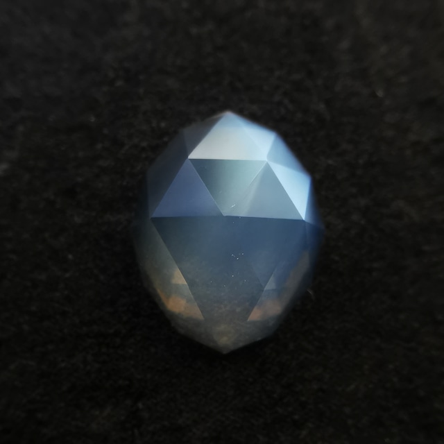 ブルームーンストーン 0.72ct スリランカ産 わずかに肉眼で見える表面の傷あり(写真16) スリランカ人カッターA氏による -------------------------------------- 透明度の高いムーンストーンに、雪のような青みの白のシラーが、かなり濃厚です。 細かなローズカットのファセットの上を、メタリックにも感じるような青白いシラーが滑るように移動します。 冬の朝のように、しんと鎮まった静謐な雰囲気です。 大阪展示会にお持ちしたものと同ロットのムーンストーンで、今回の東京展示会に合わせて、カッターと相談してさらに細かいデザインにリカットしました。 動画でも静かに光る様子をご覧ください。 https://youtube.com/shorts/HCsHVUoDP4s 写真1~7 LED照明 写真8 自然光日向 写真9~17 自然光日陰