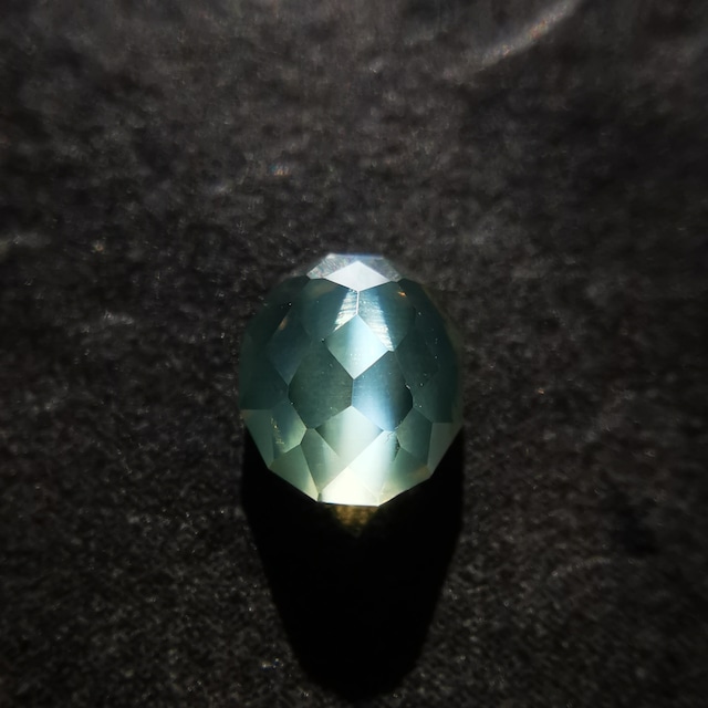 クリソベリル 0.23ct スリランカ産 肉眼でわずかに見えるもやもやとしたインクルージョンあり スリランカ人カッターA氏による ------------------------------------------------- 明るい緑みの黄色、淡いサルファーイエローのクリソベリルです。 テーブル面はひねりのある配置でアシンメトリのデザインになっており、これほど小粒の石にもしっかりとカスタムカットを施すカッターさんの技術に感心させられます。 カスタムカットの入門にお勧めしたい一石です。 小粒できらめきが強いため、写真で見る程インクルージョンは目立ちません。 写真1~7 自然光日陰 写真8~14 LED照明