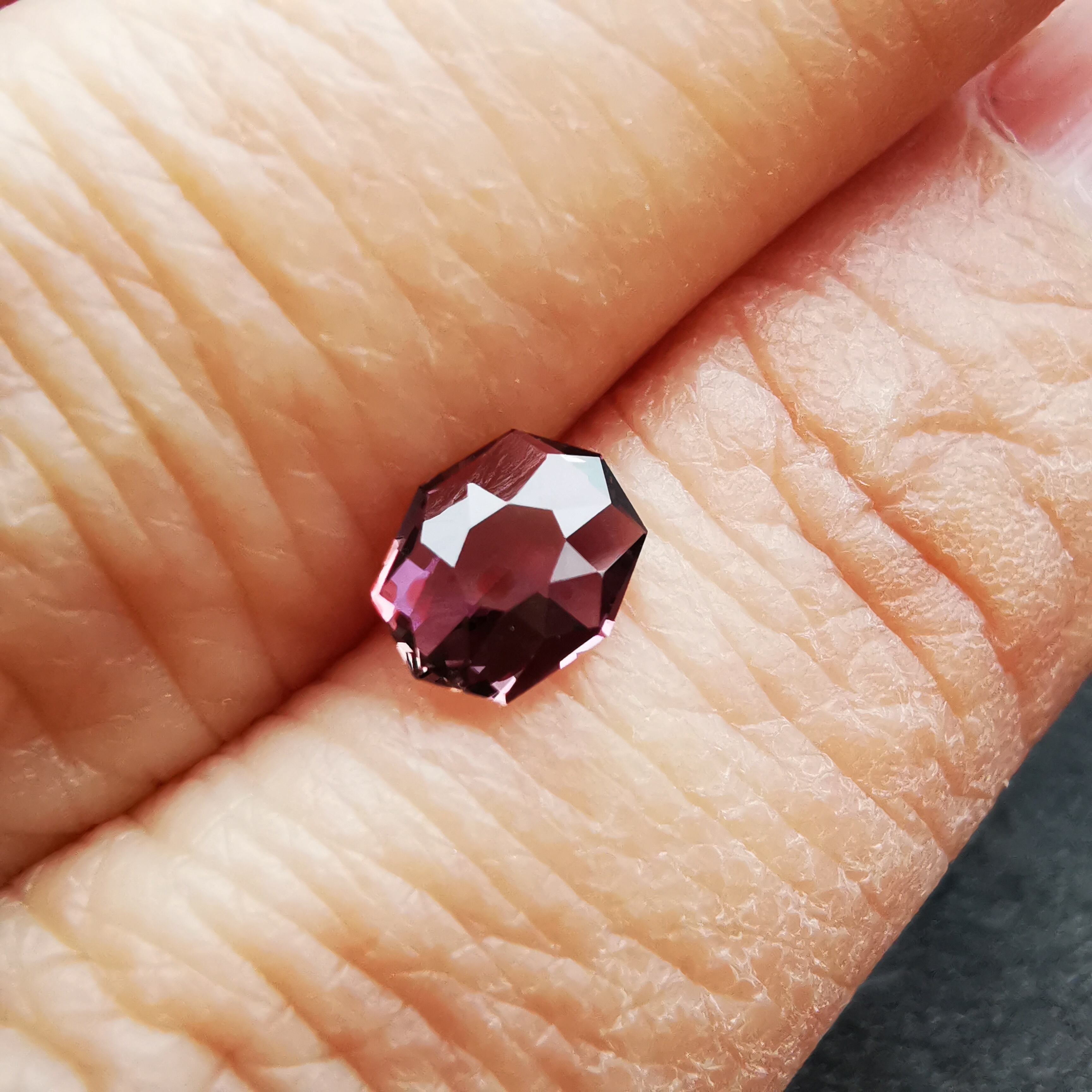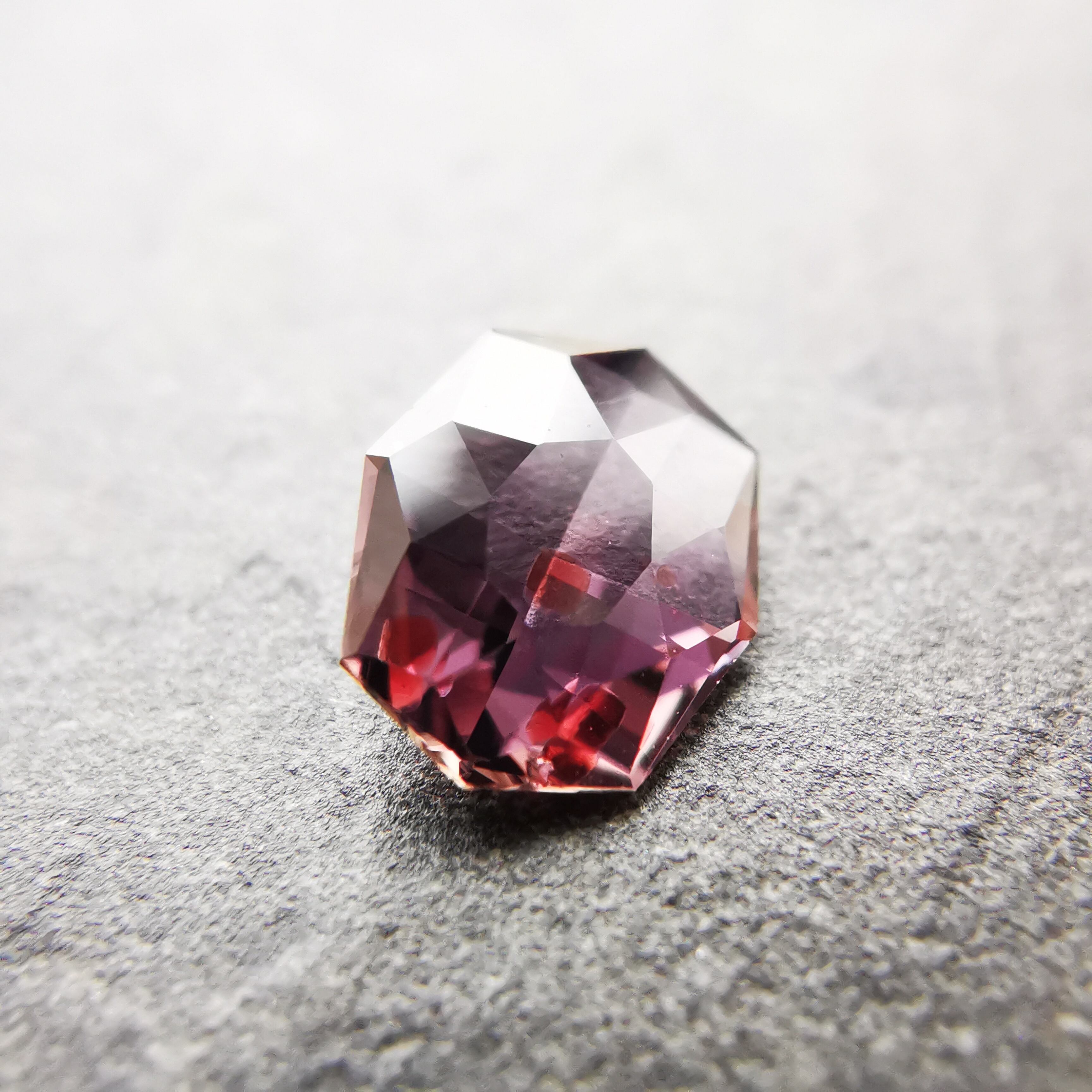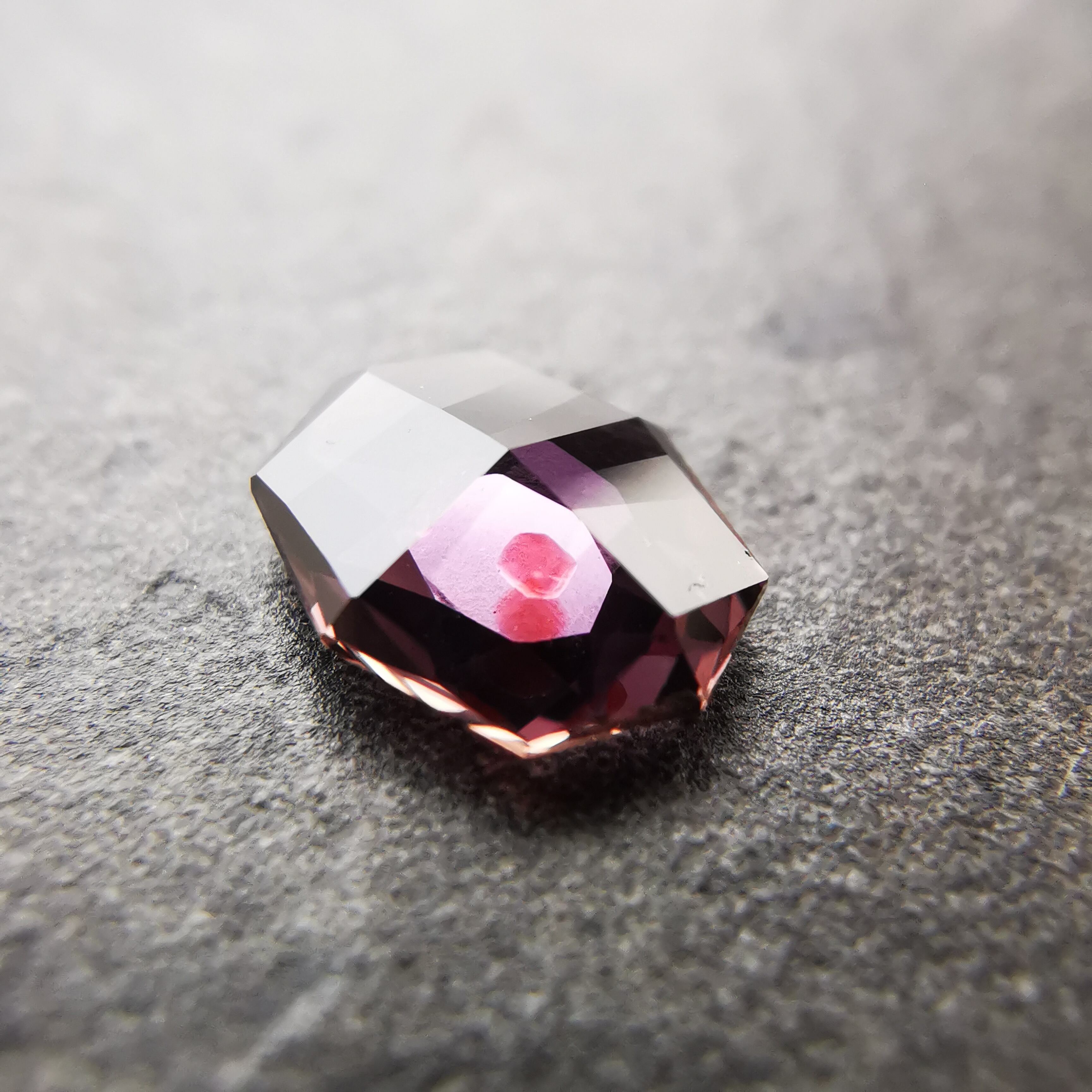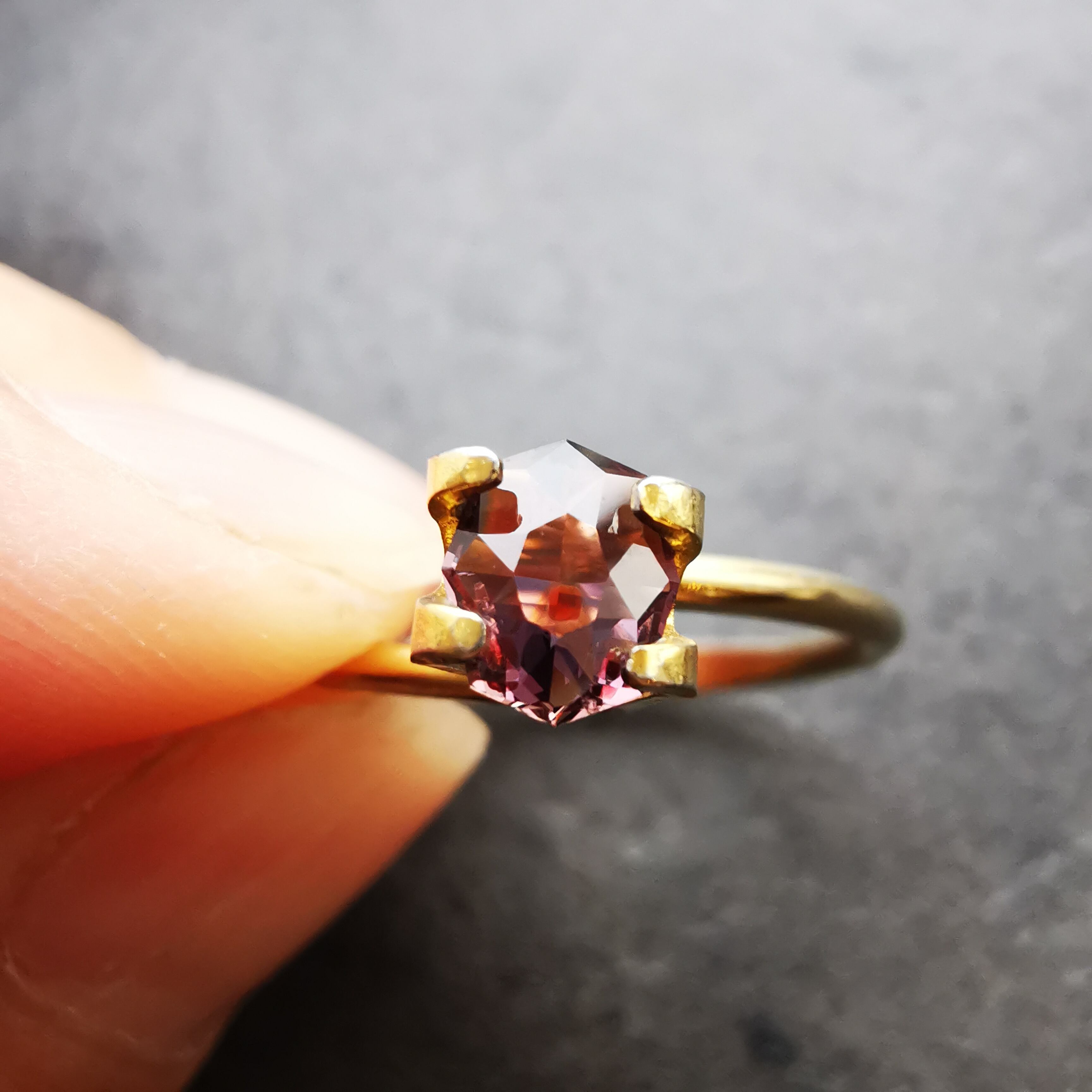ガーネットを目立たせるため、パビリオン側はシンプルでかなり浅いカットにしています。