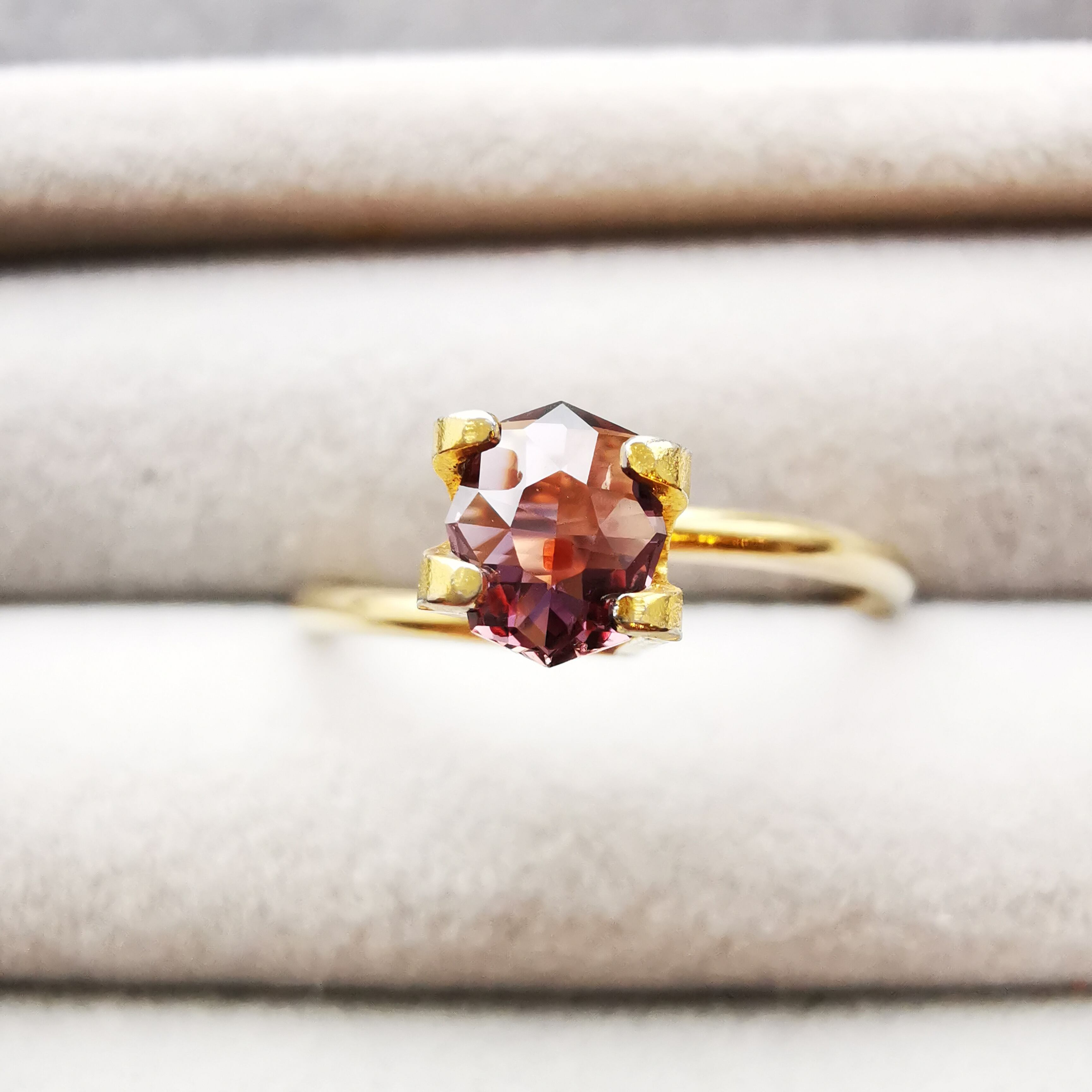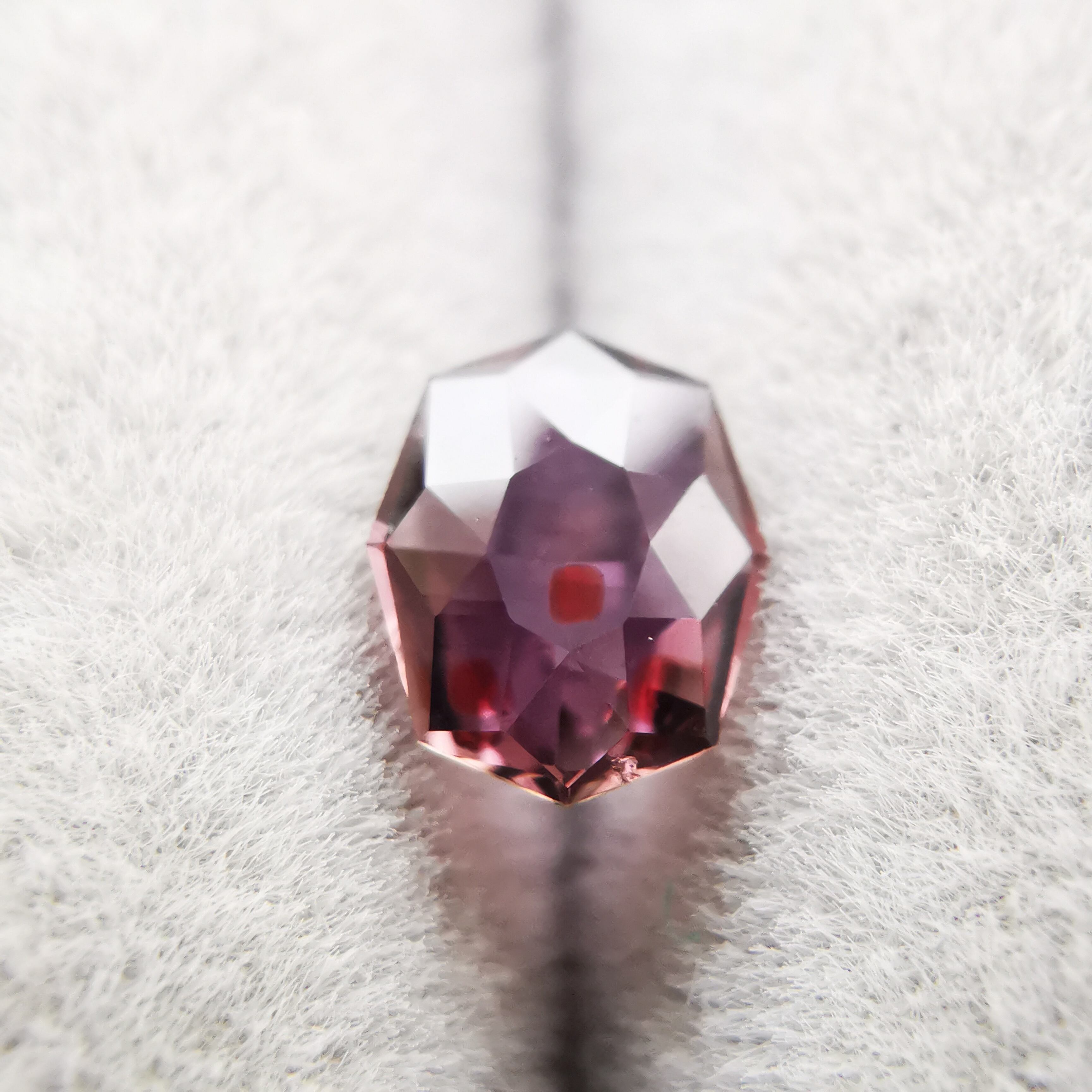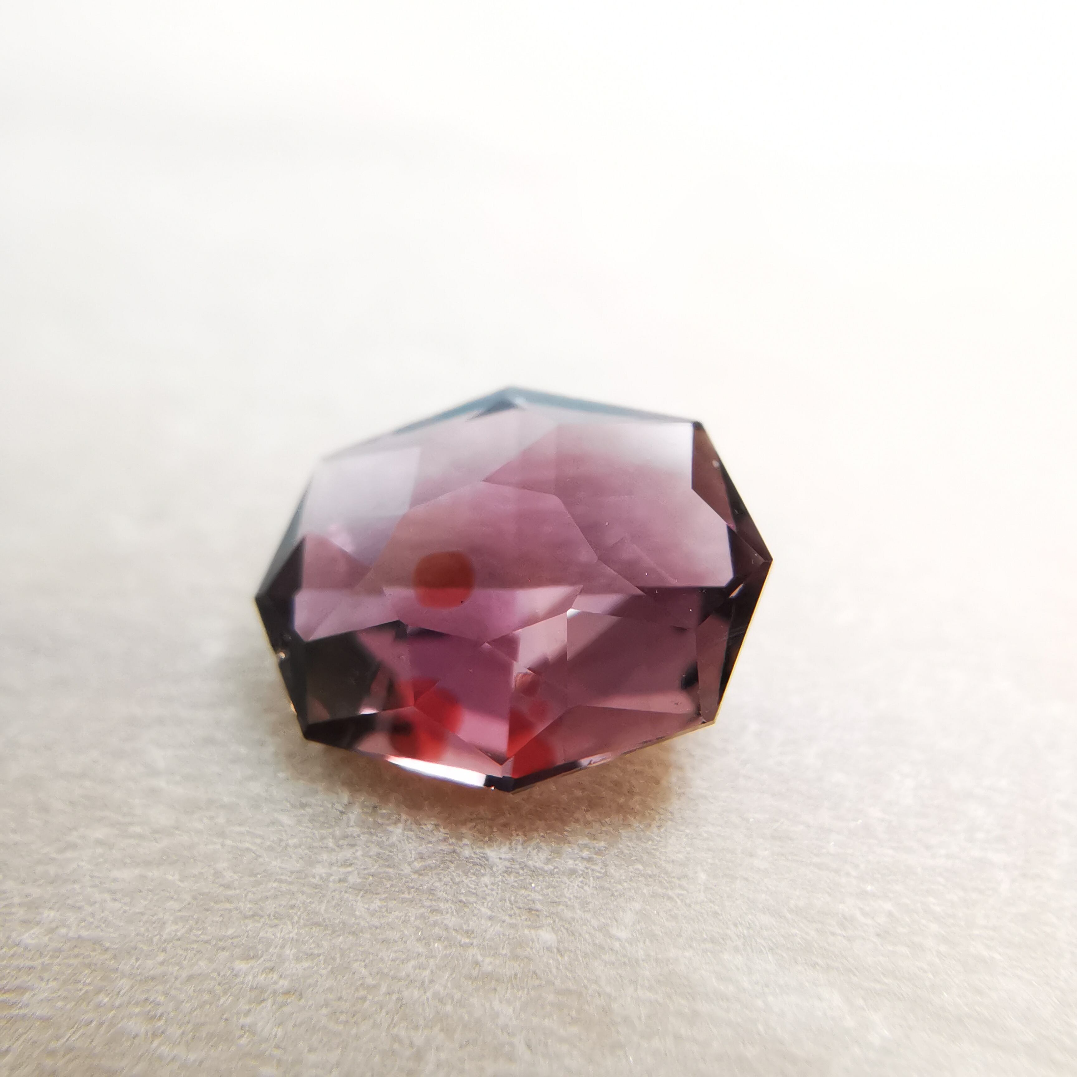 ガーネットはわずかしか入っていませんが内部で反射し、あちこちに赤色が現れます。