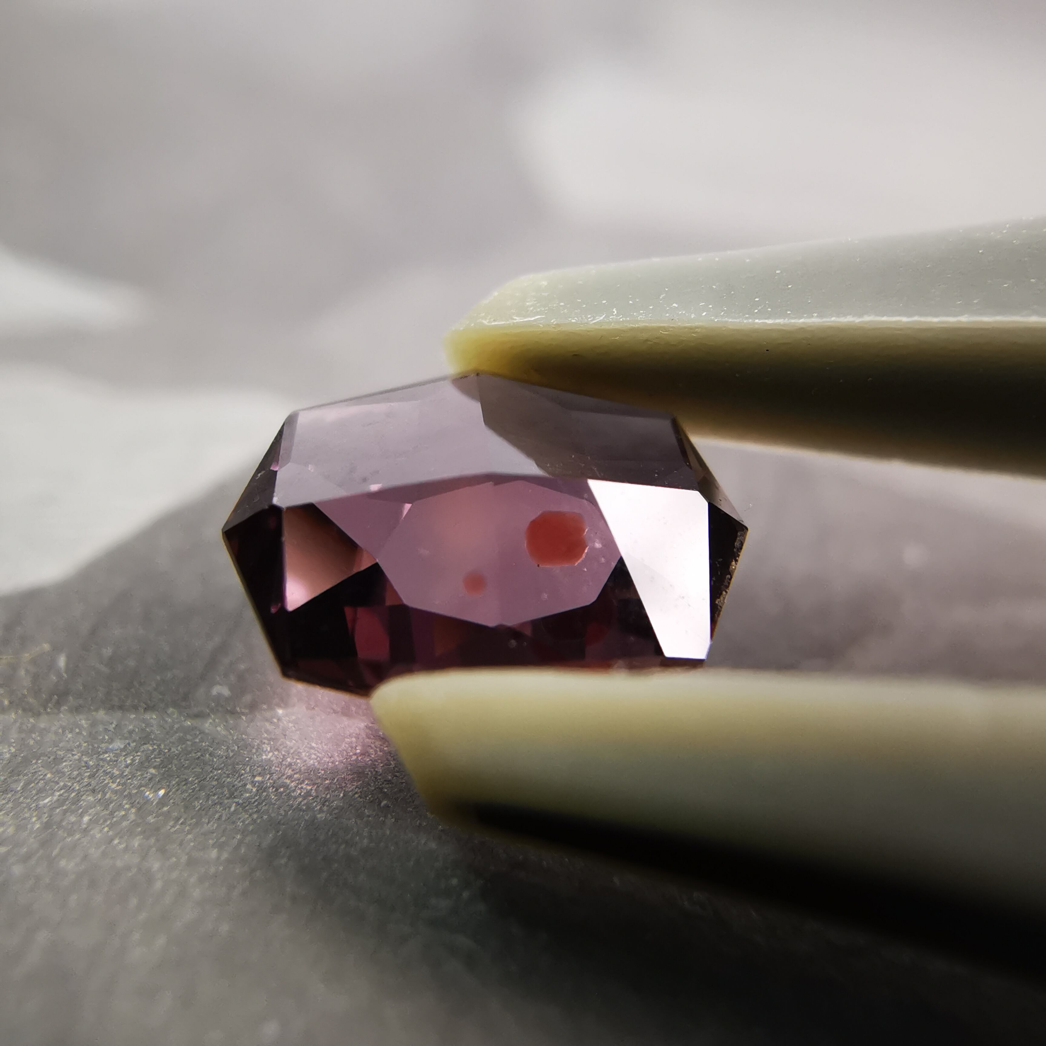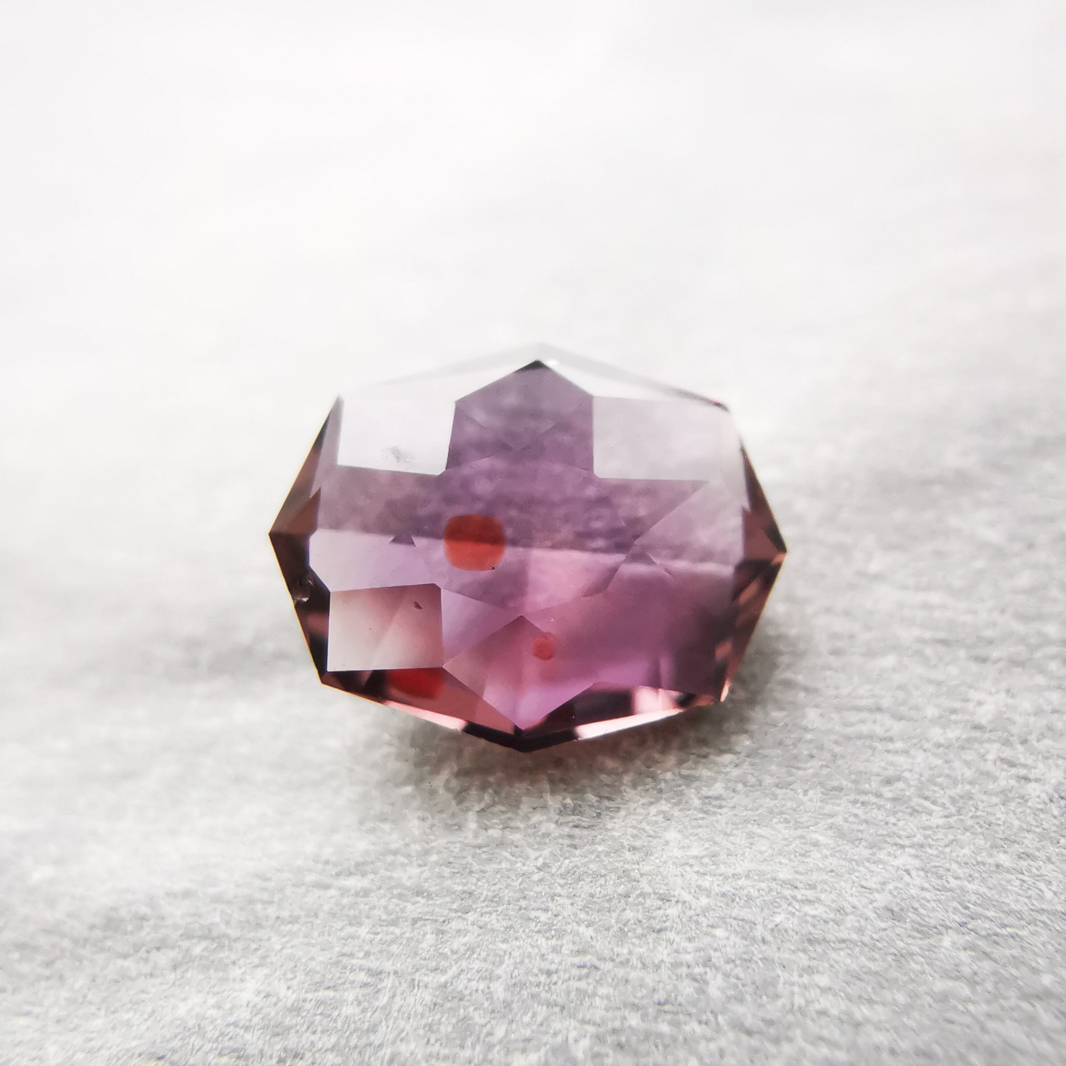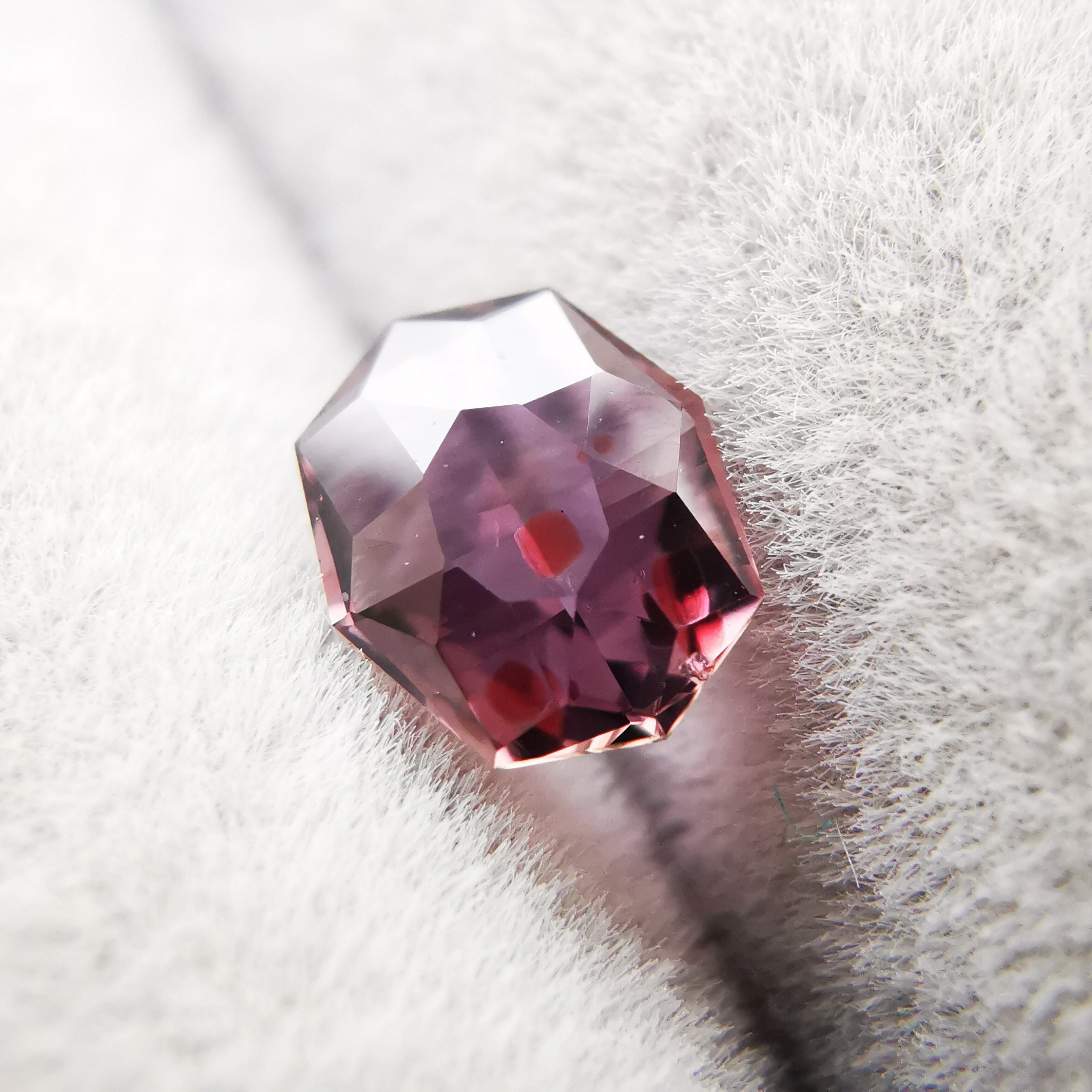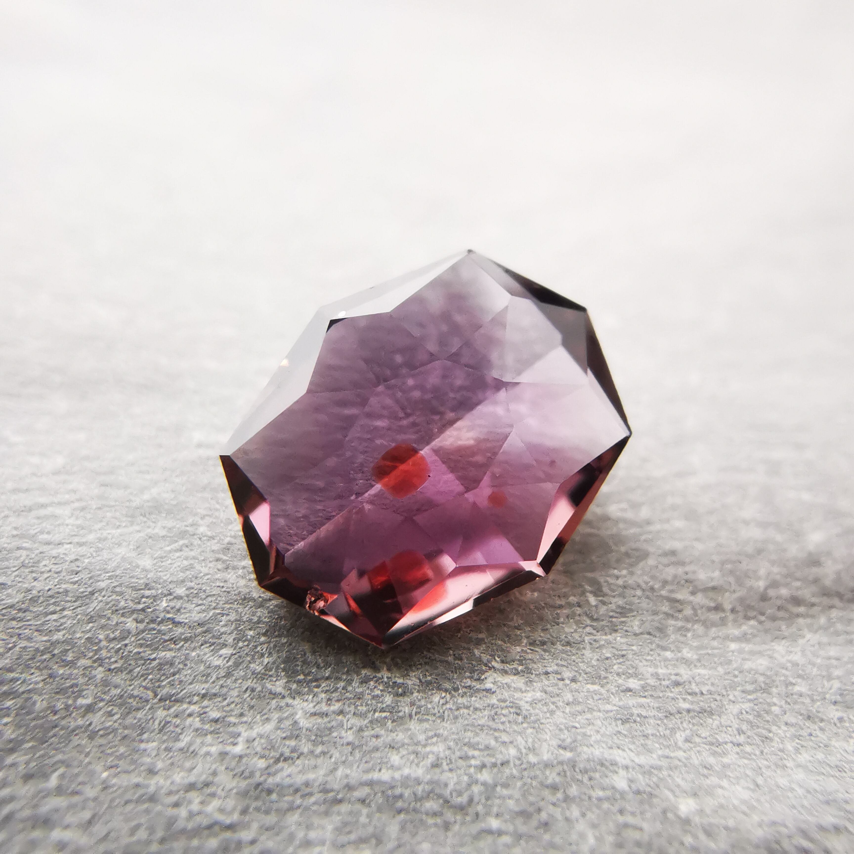 ガーネットはわずかしか入っていませんが内部で反射し、あちこちに赤色が現れます。