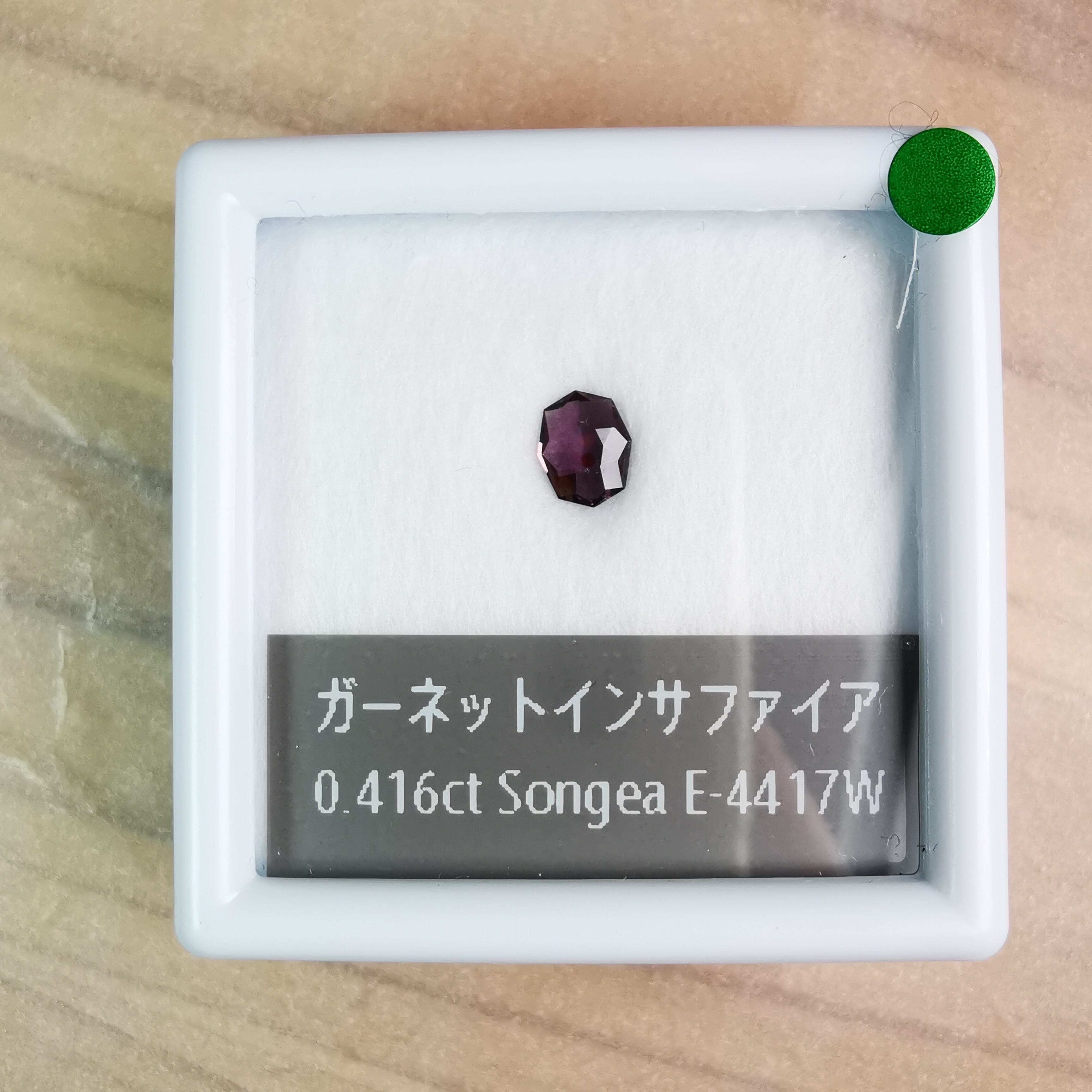 サファイアとガーネットの色が近いので、一見では気が付きにくく、特にルースケースの中ではガーネットの存在が分かりにくいです。