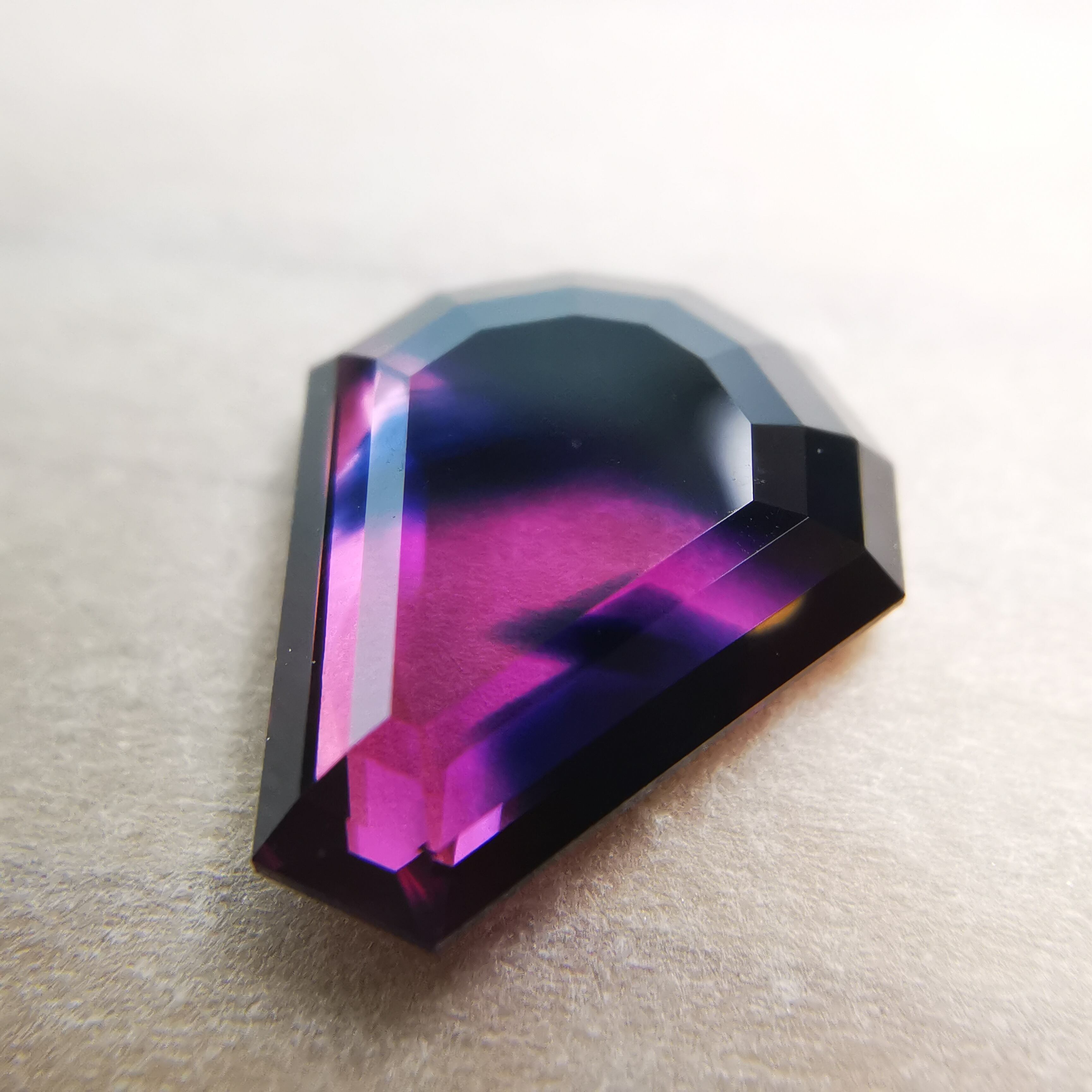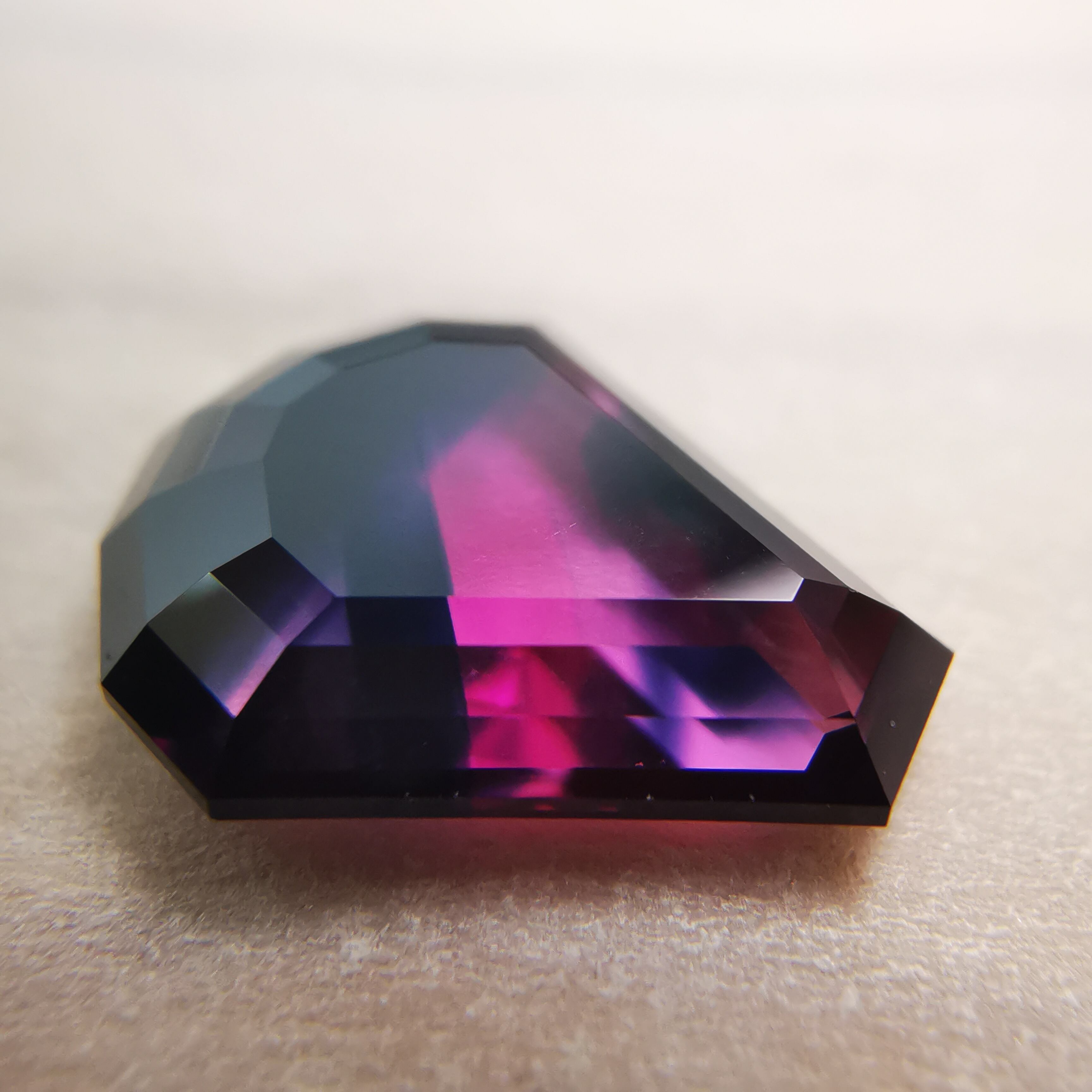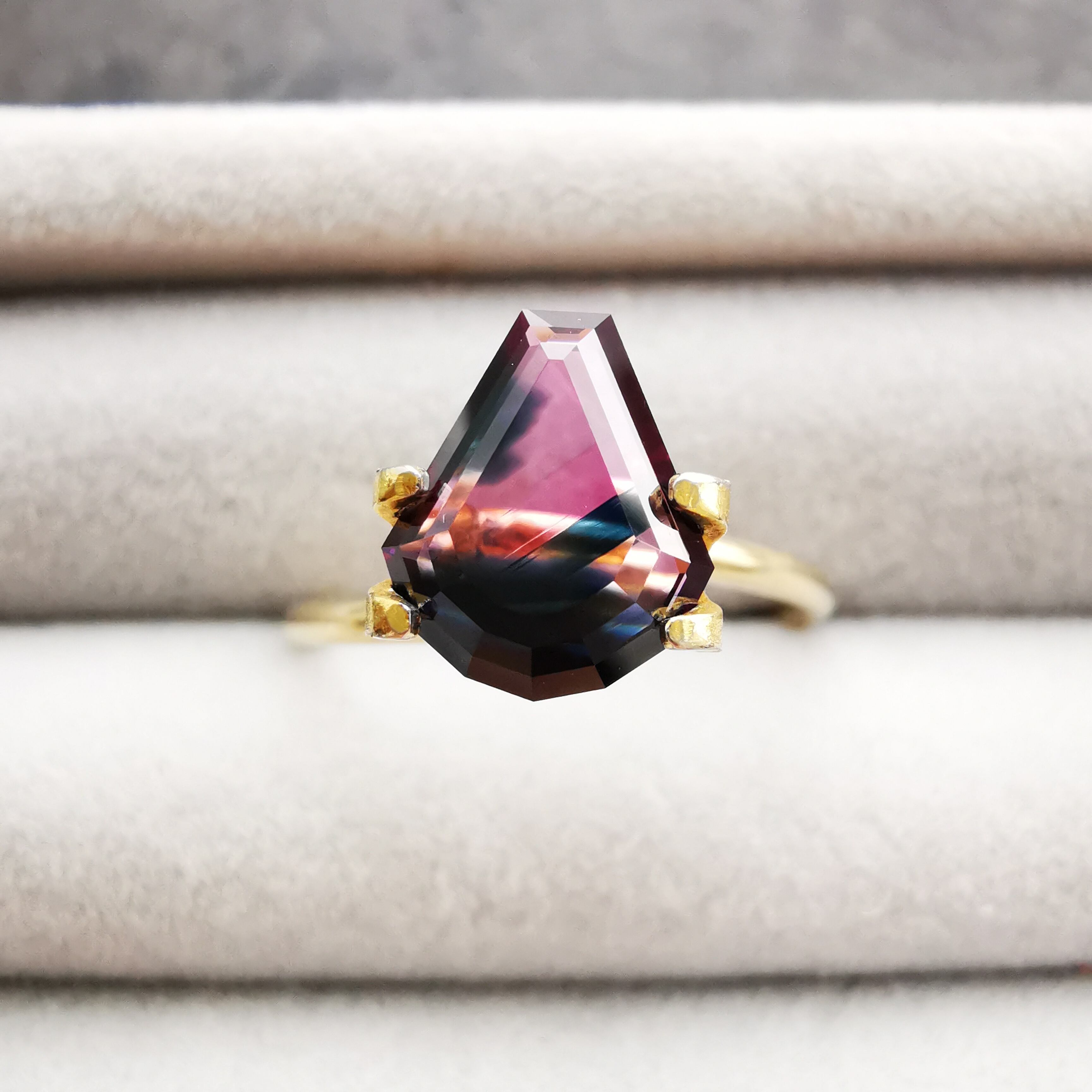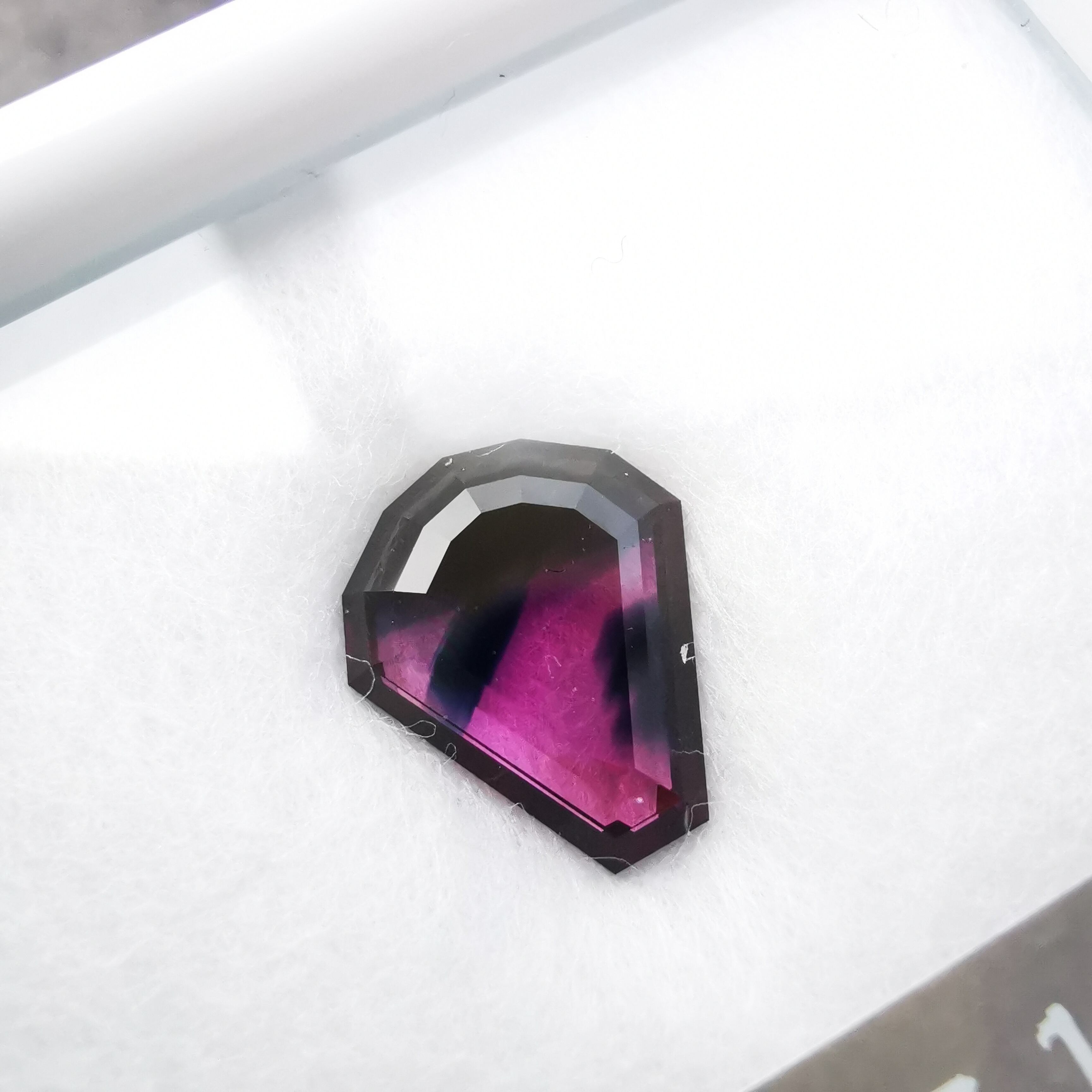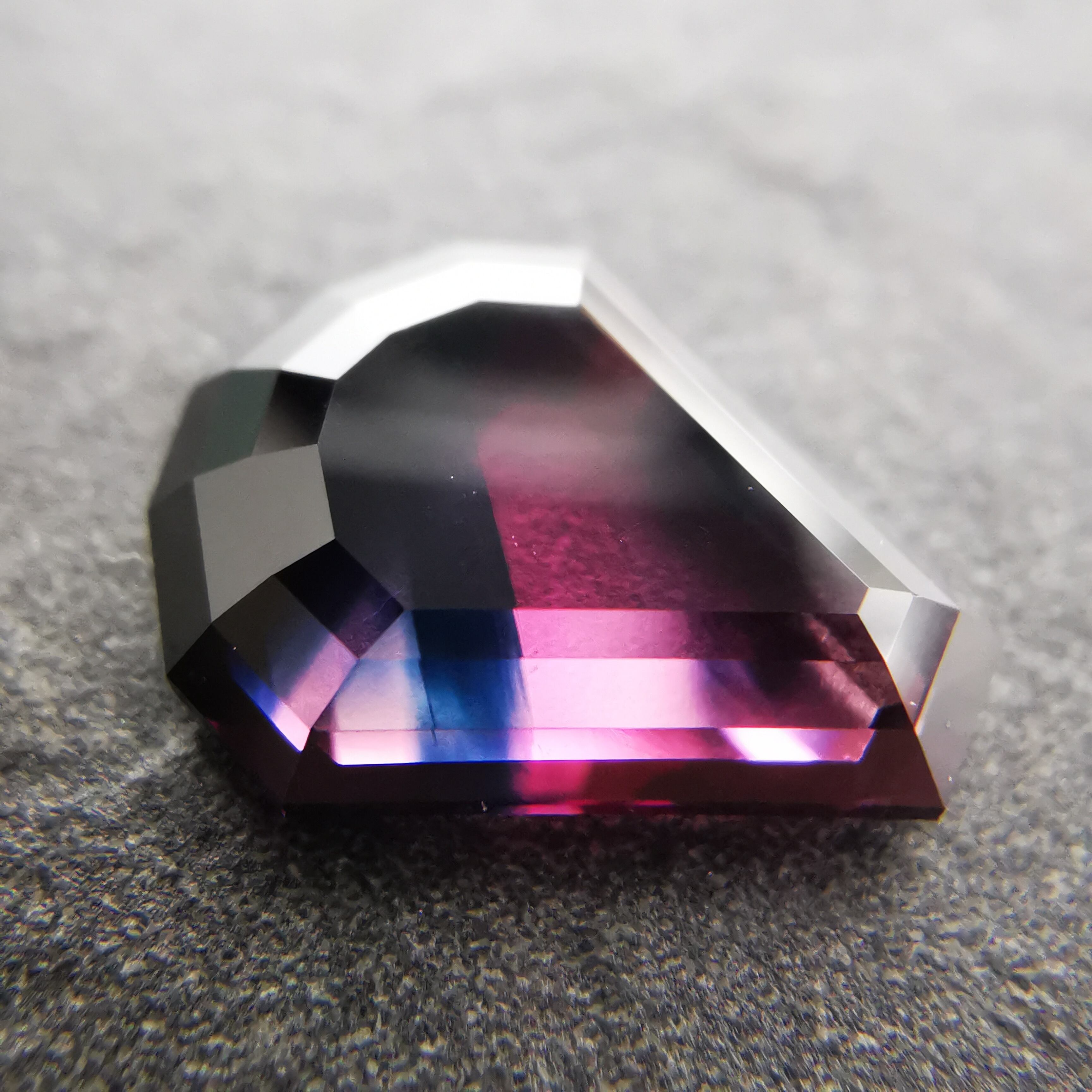 最高に興味深いこのカラーリングを、全方向から余すところなく愛でるために、原石の形を生かしたポートレイトカットに仕上げました。