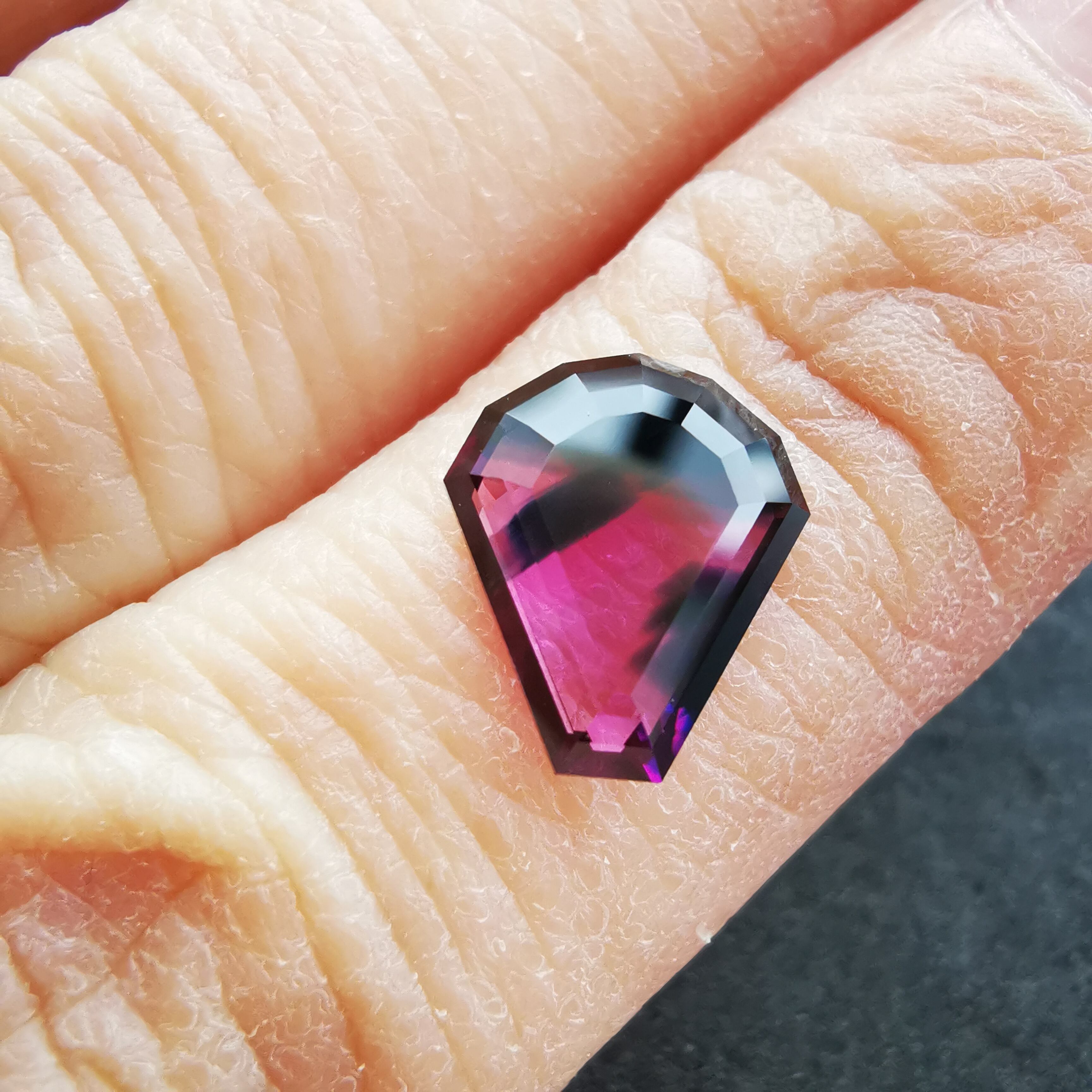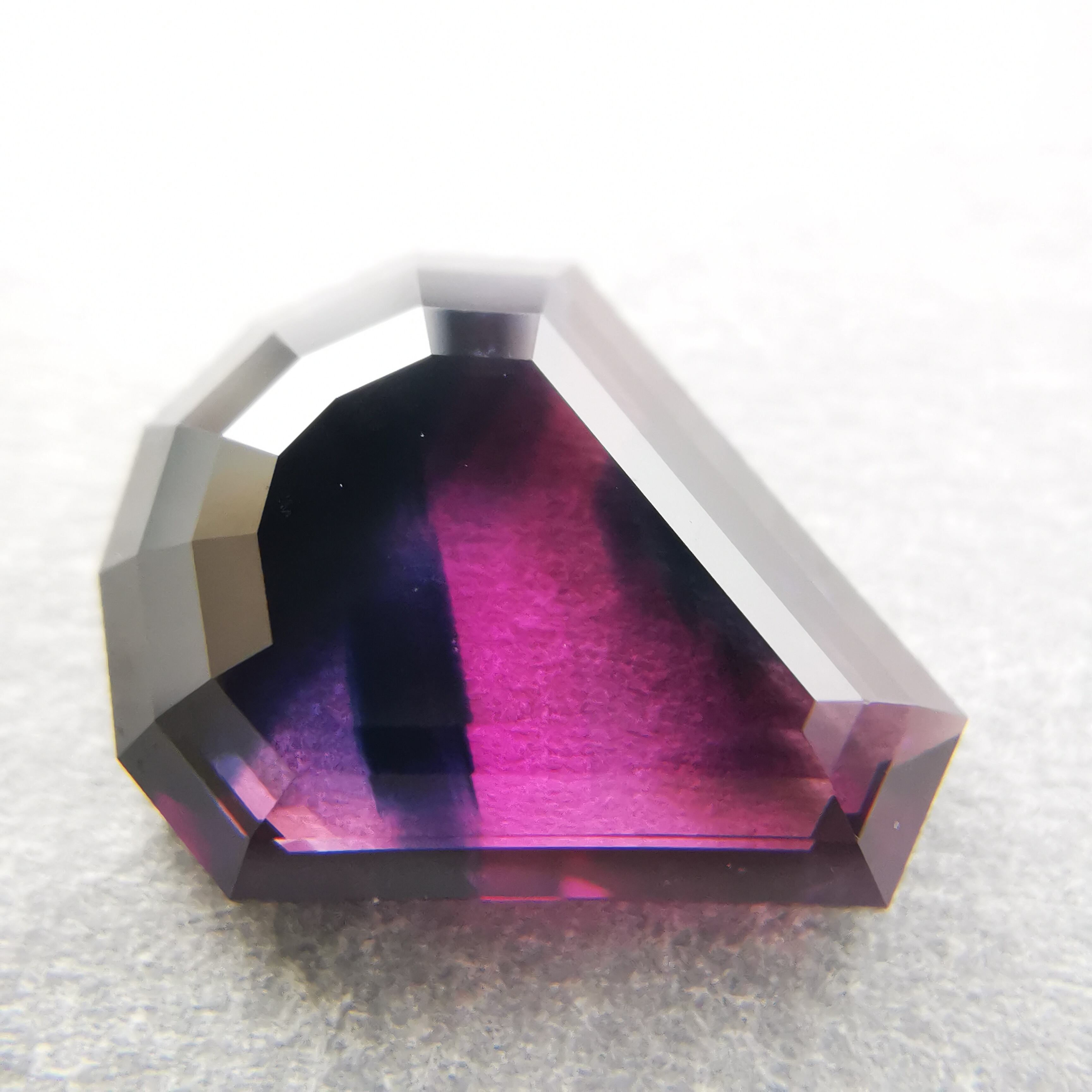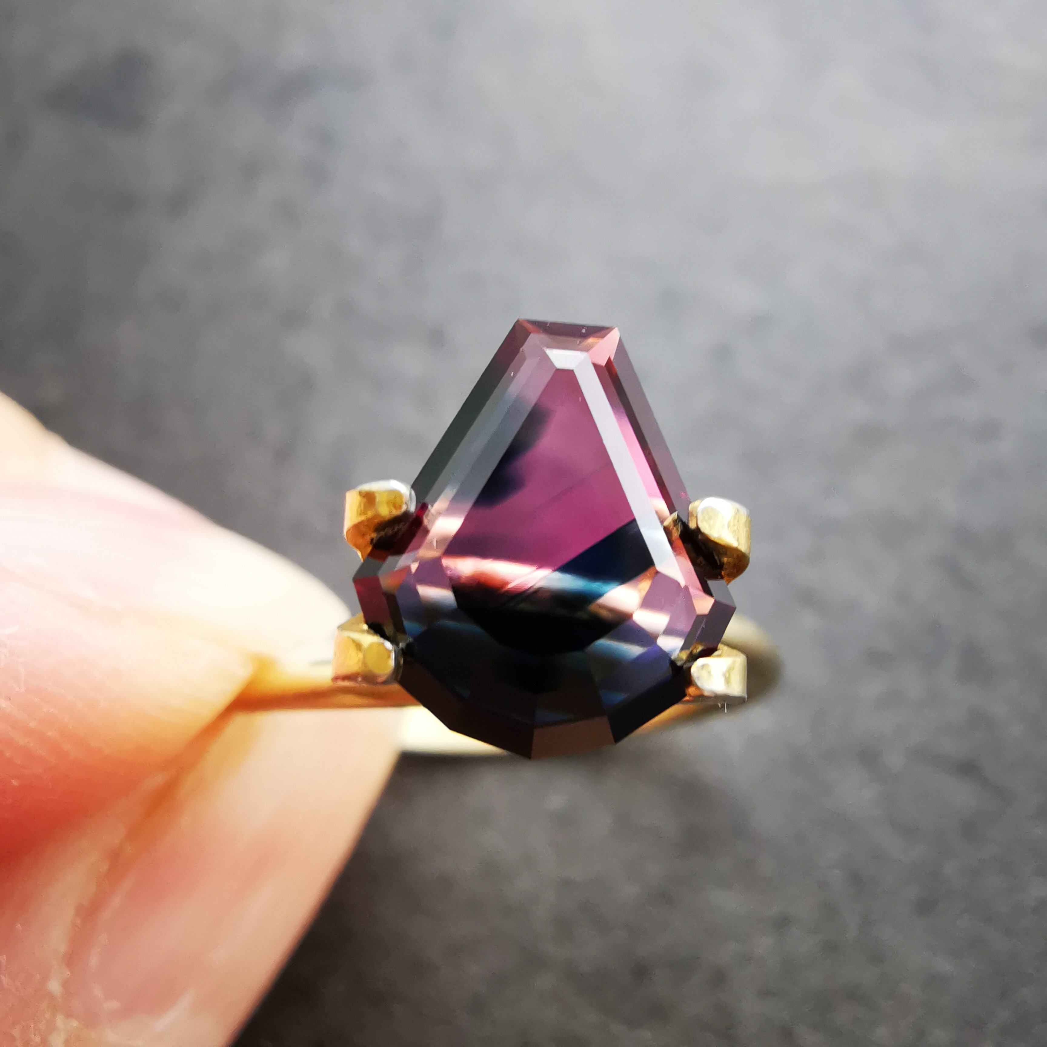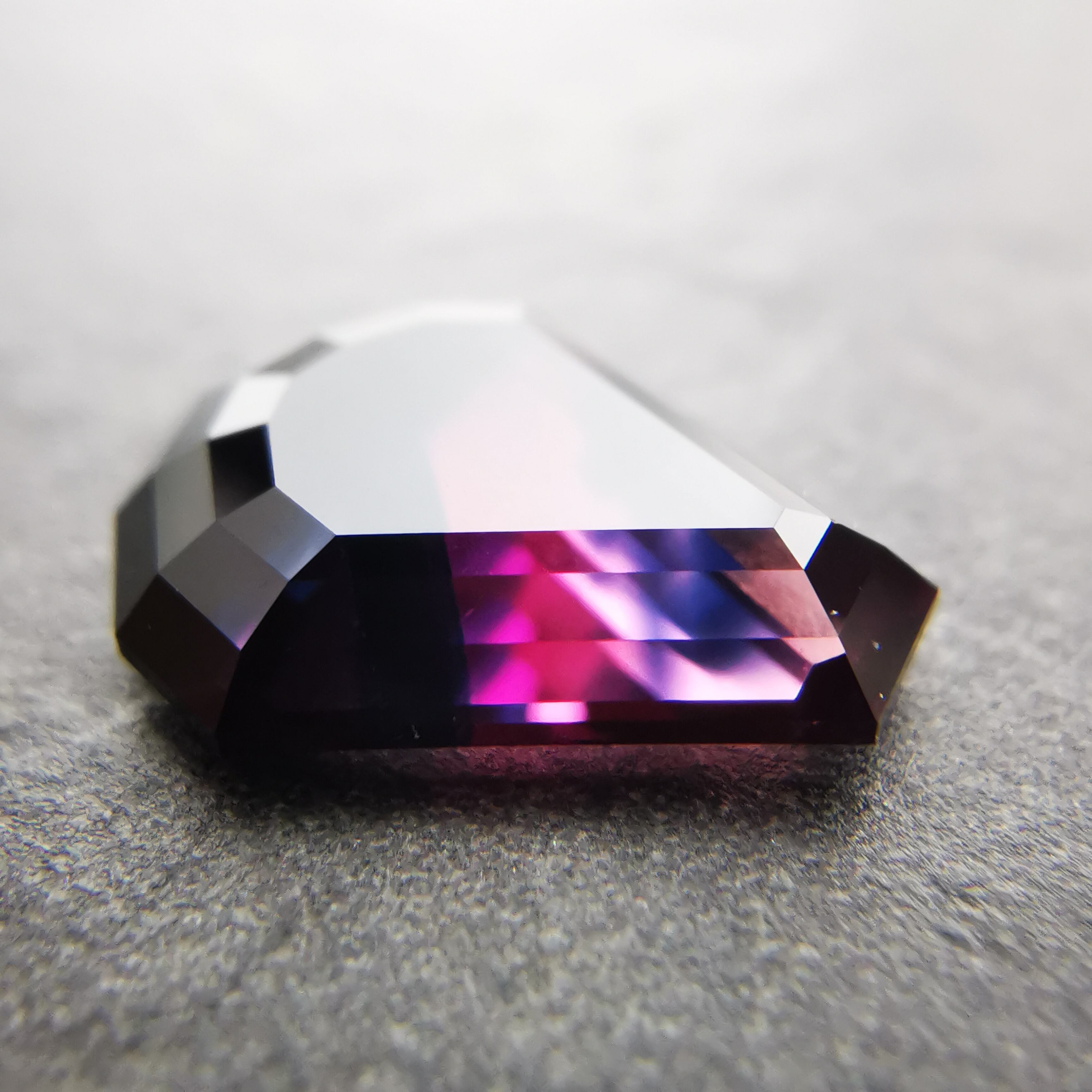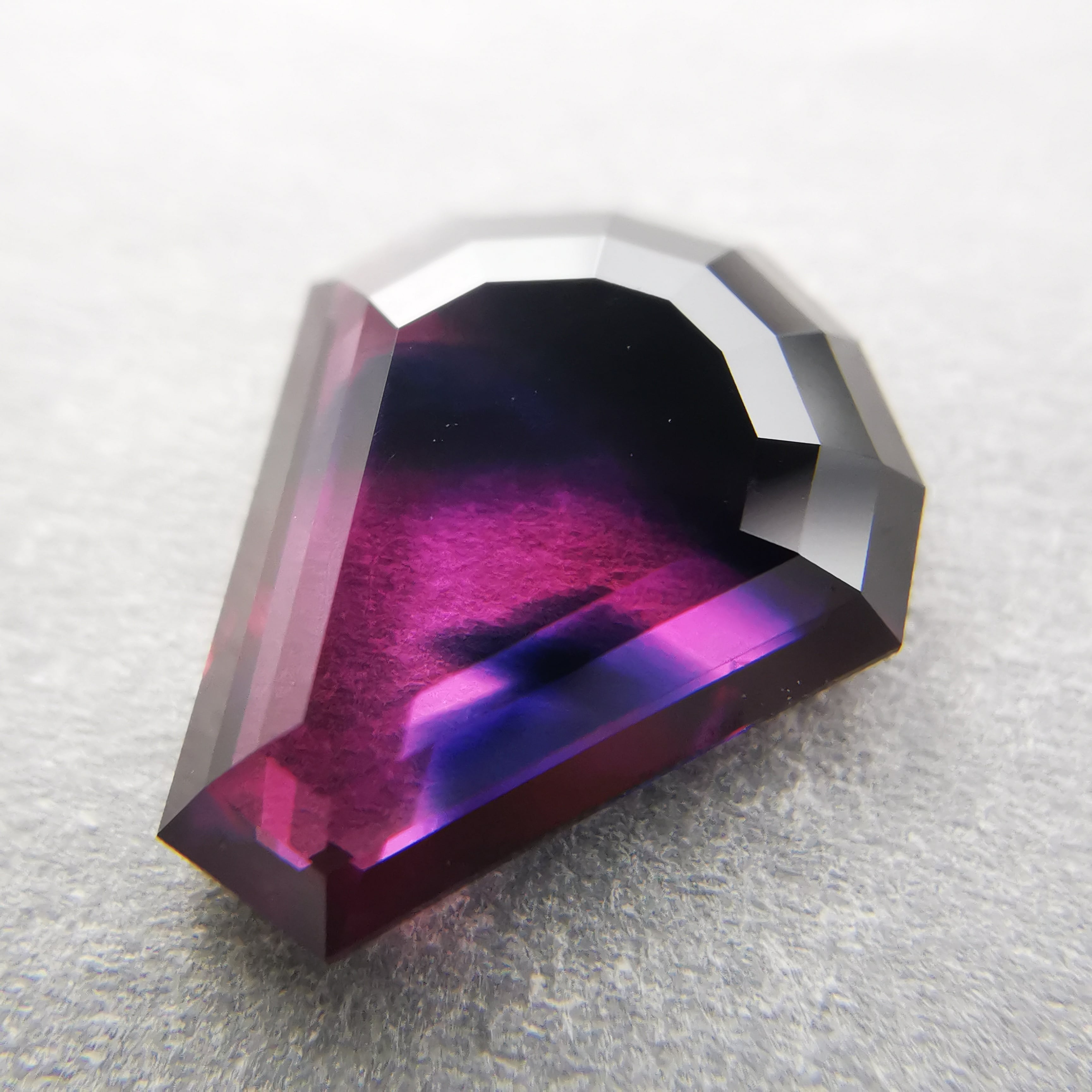 最高に興味深いこのカラーリングを、全方向から余すところなく愛でるために、原石の形を生かしたポートレイトカットに仕上げました。
