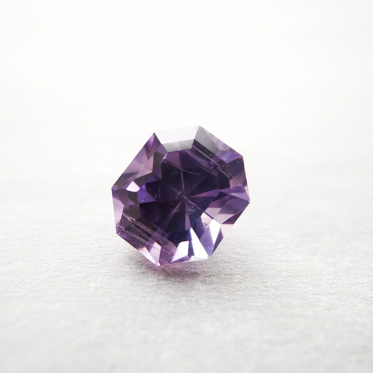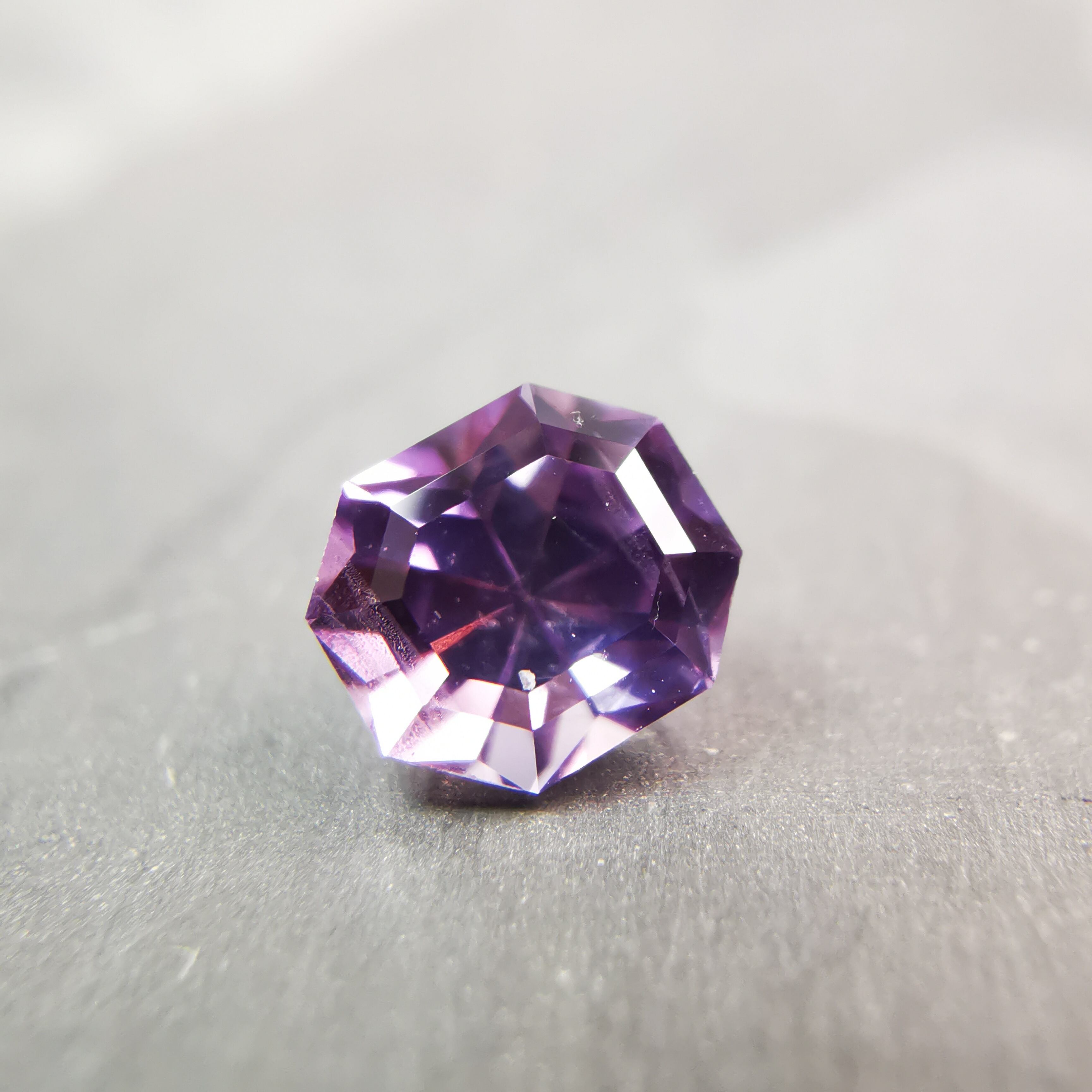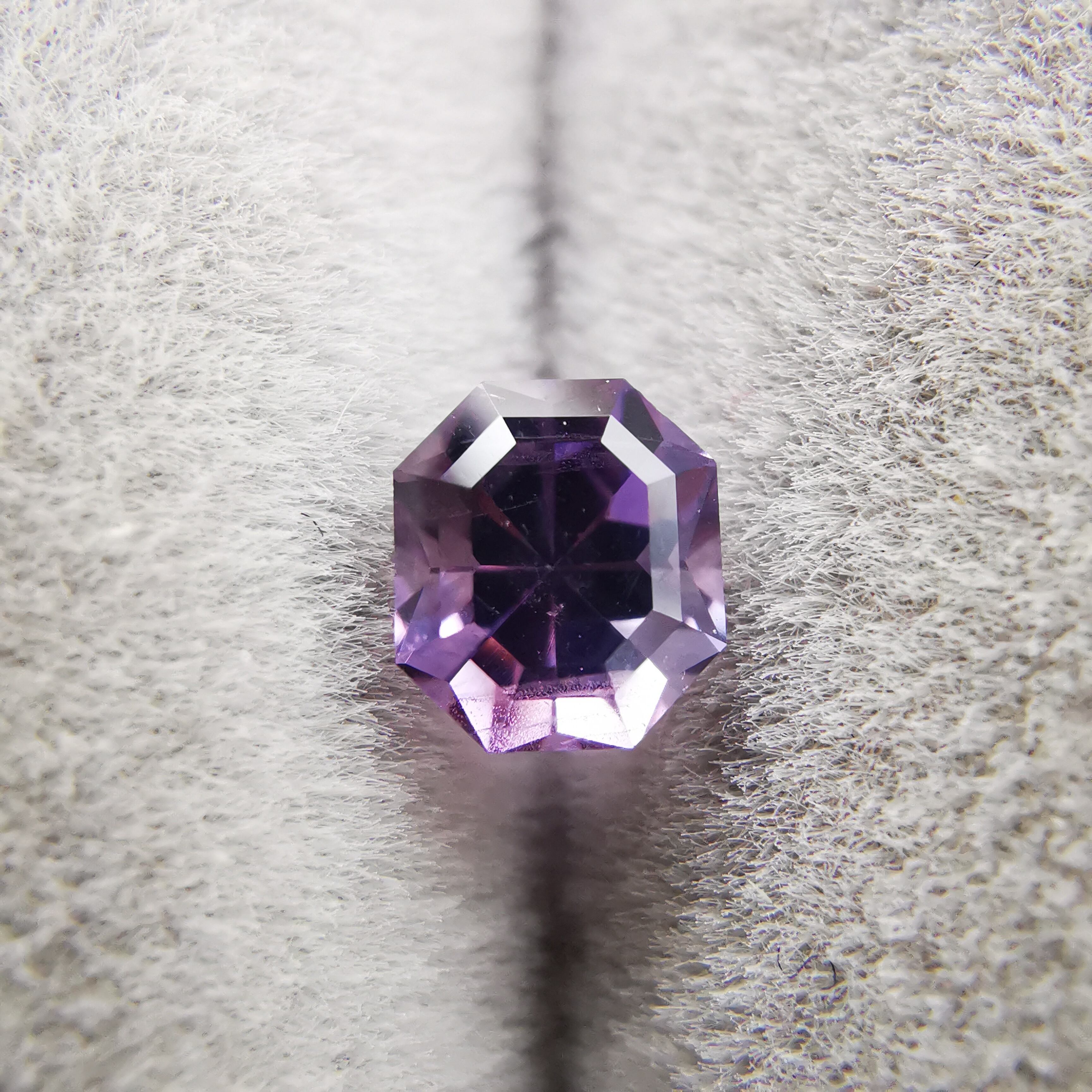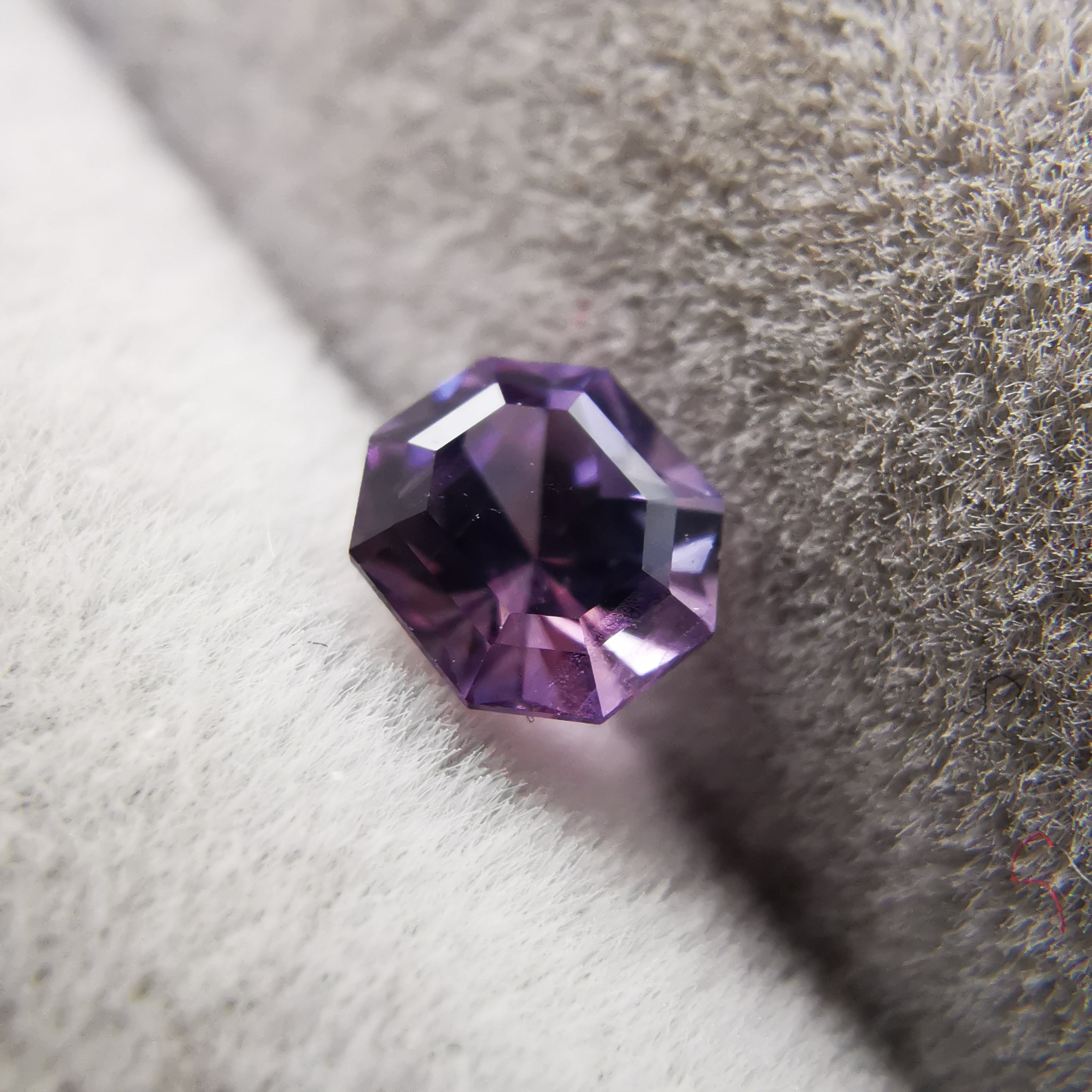 明るいピンクみ紫/あやめ色と、濃い紫/桔梗色がもやもやと複雑に混じるウィンザ産のサファイアです。