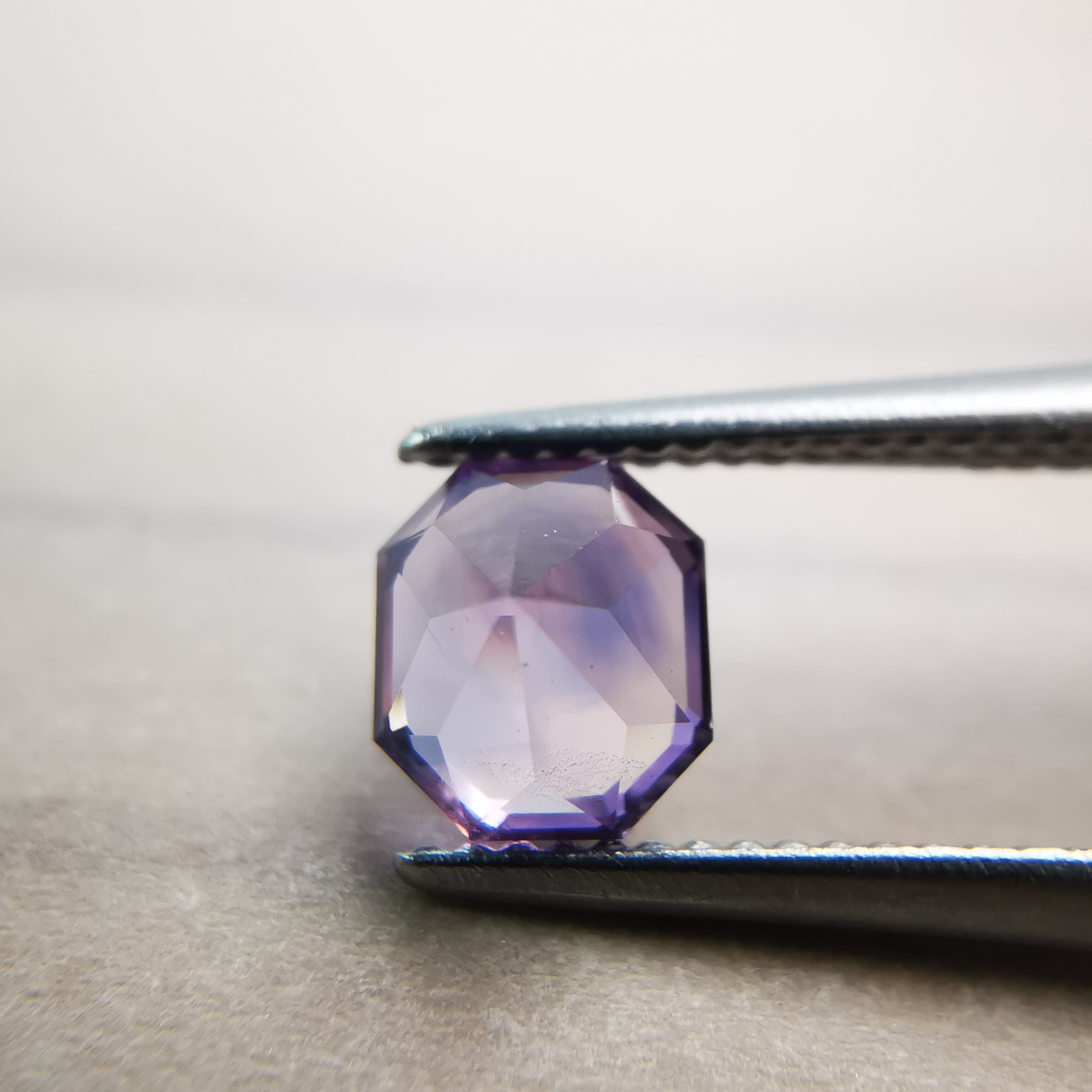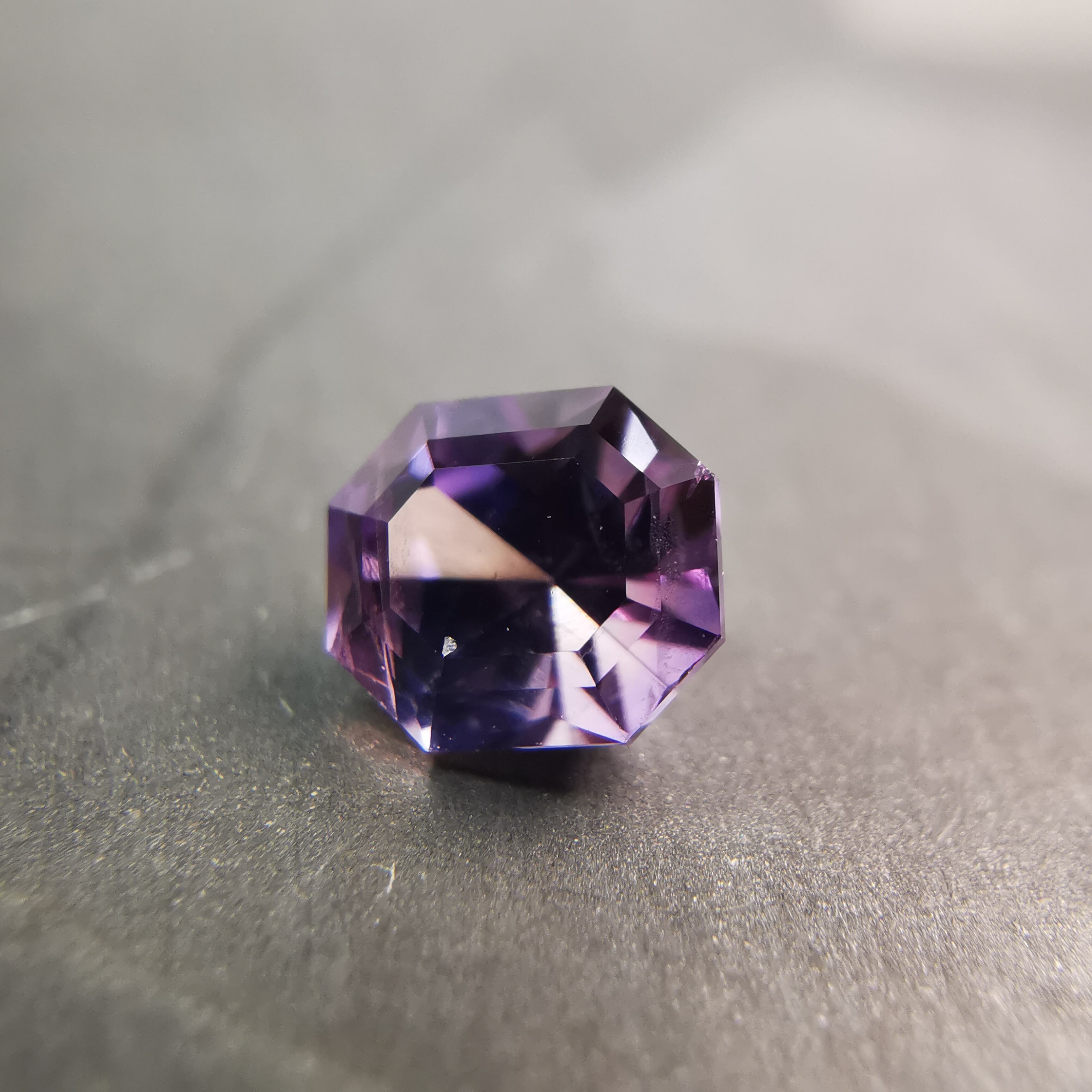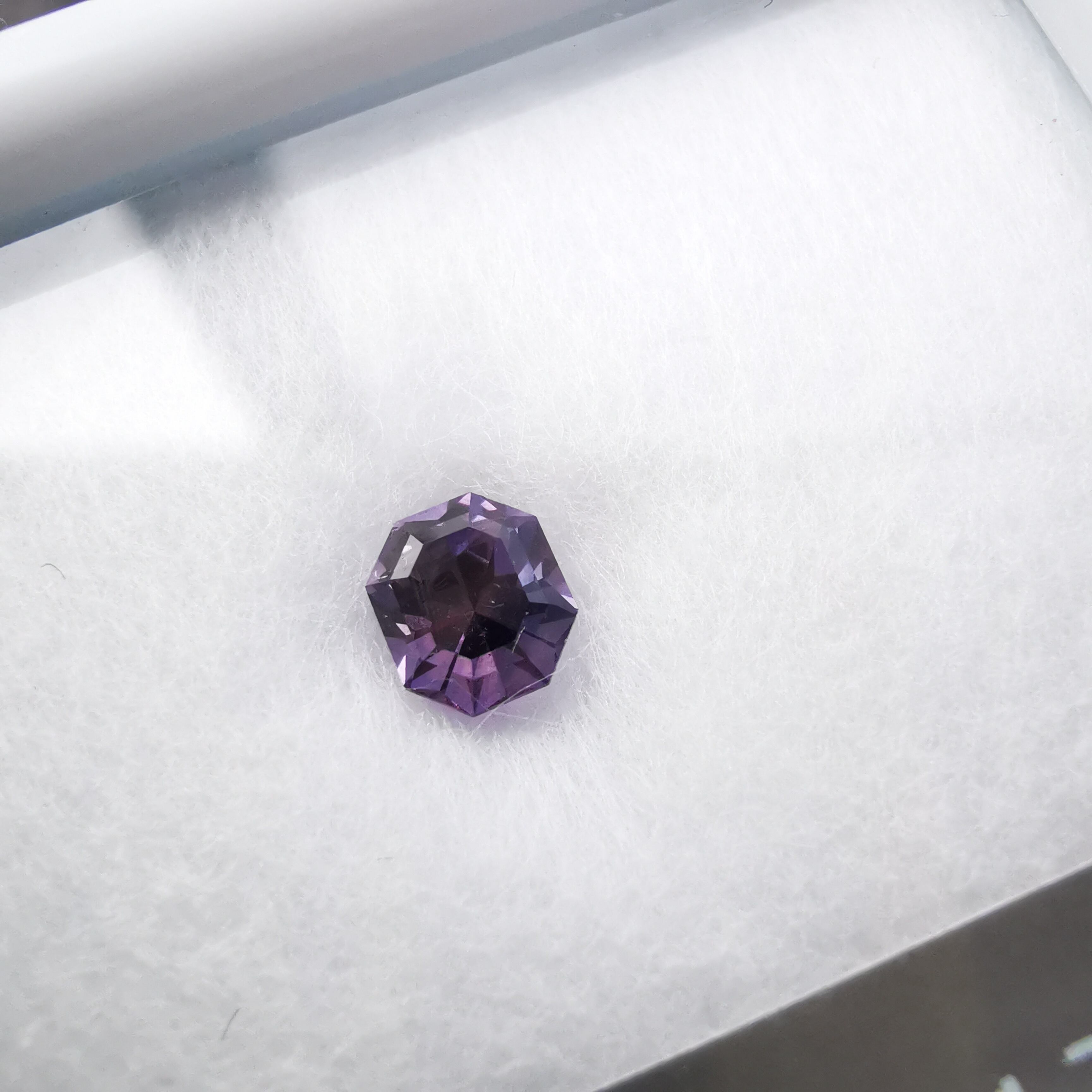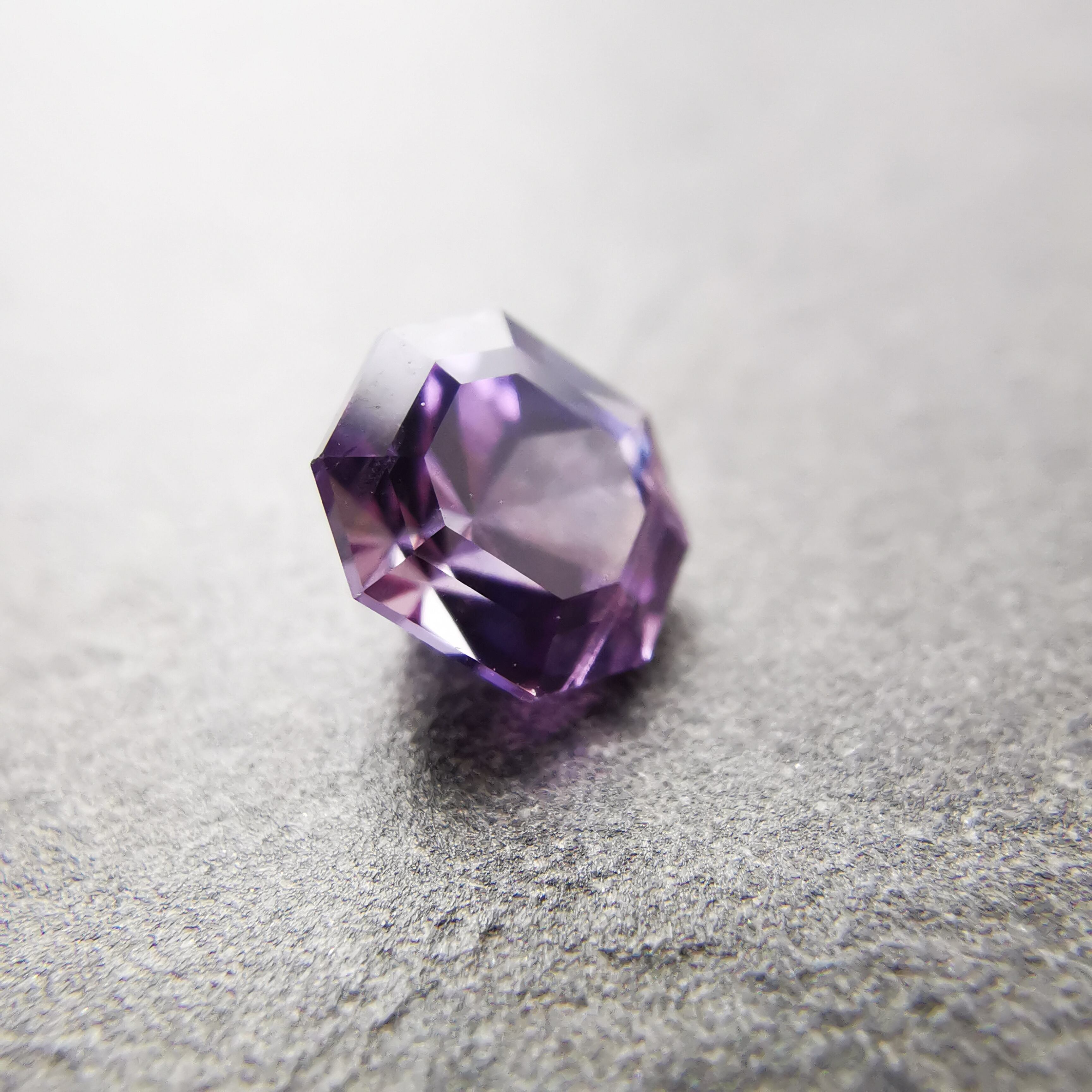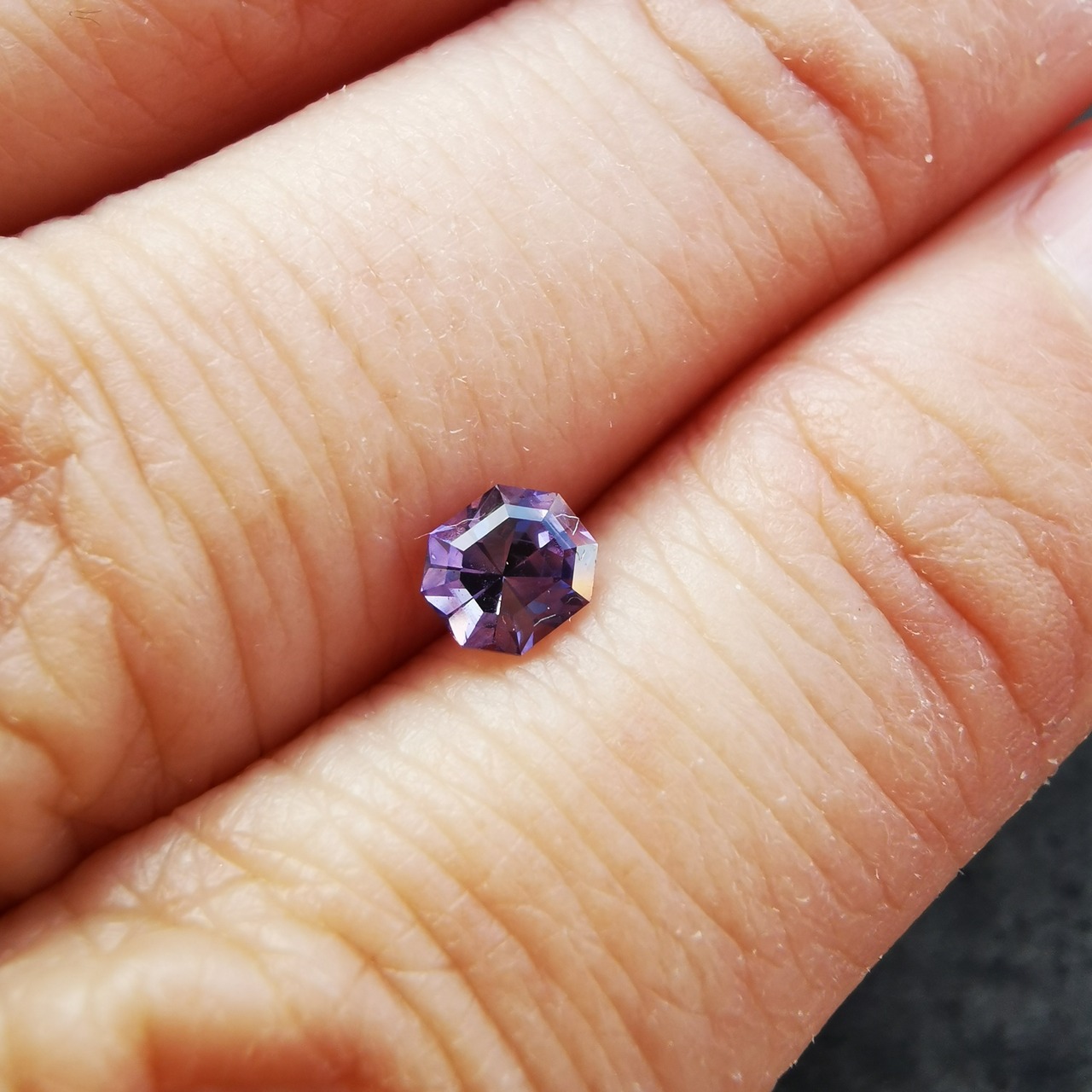 明るいピンクみ紫/あやめ色と、濃い紫/桔梗色がもやもやと複雑に混じるウィンザ産のサファイアです。