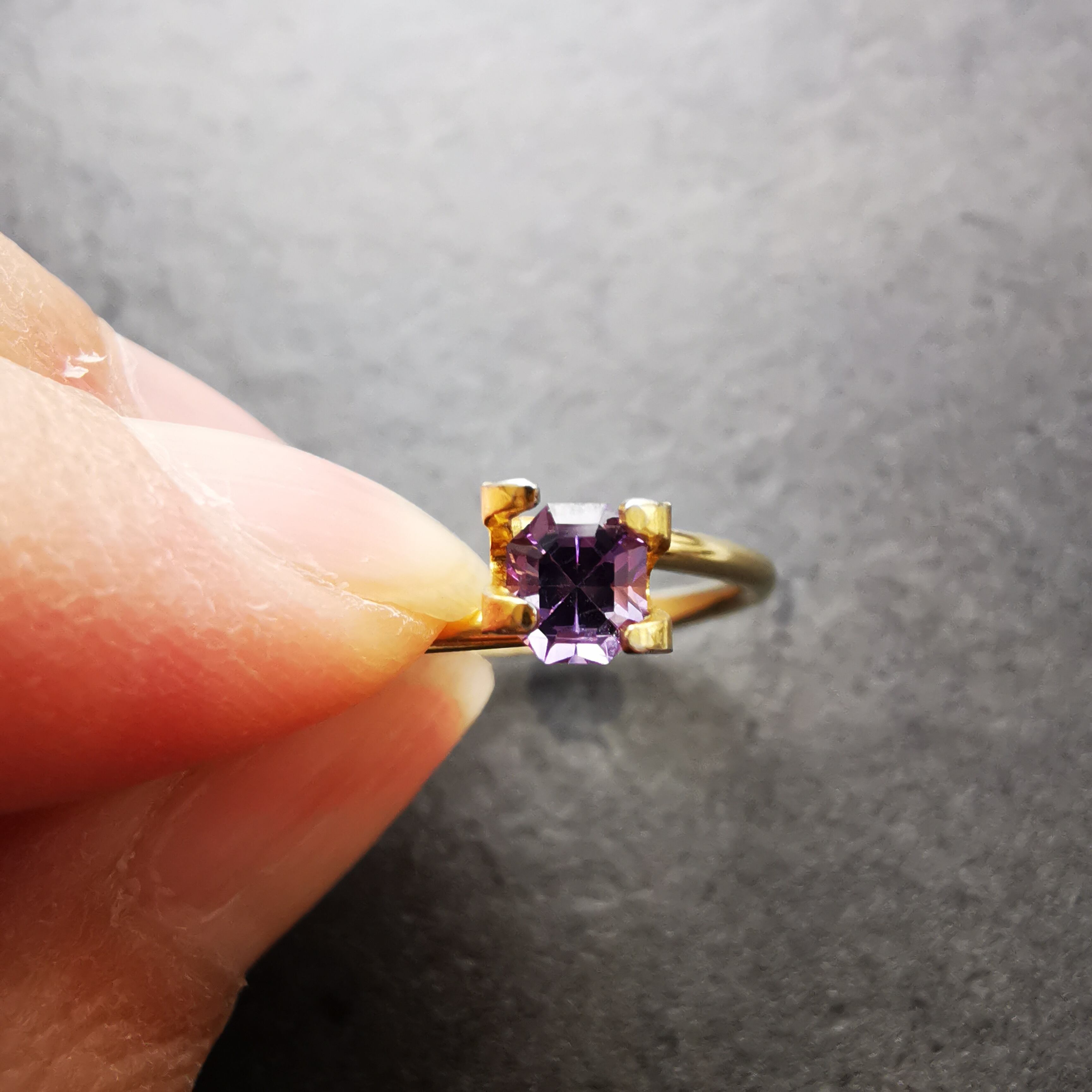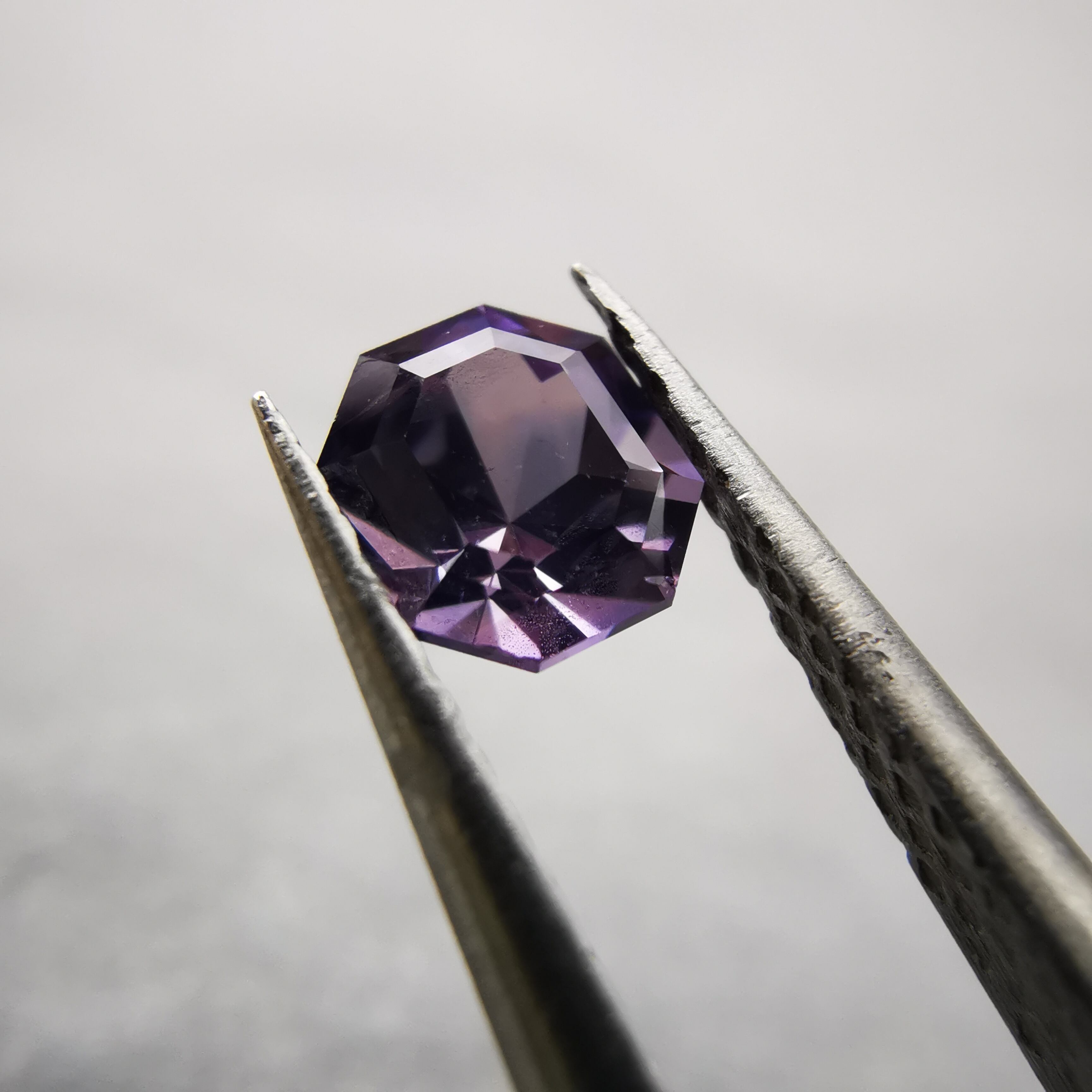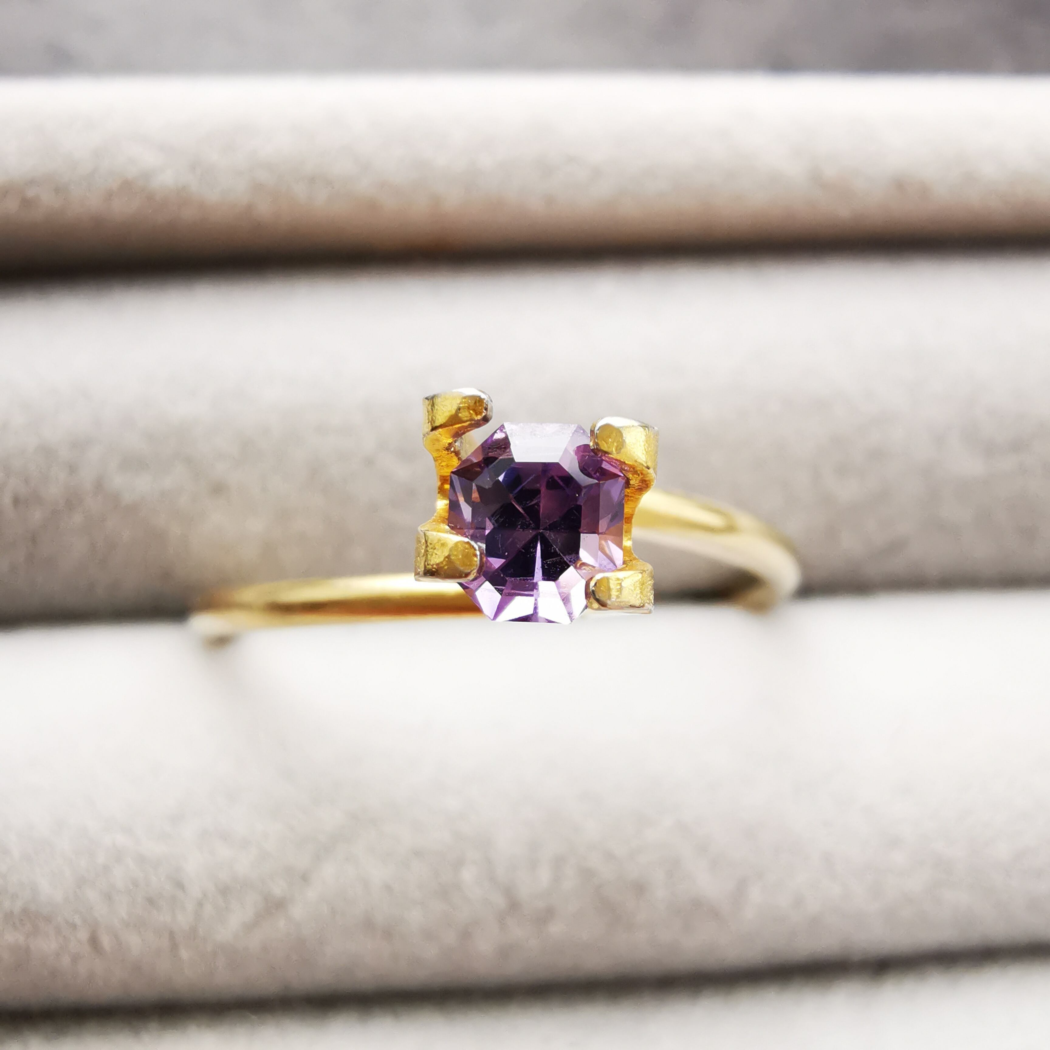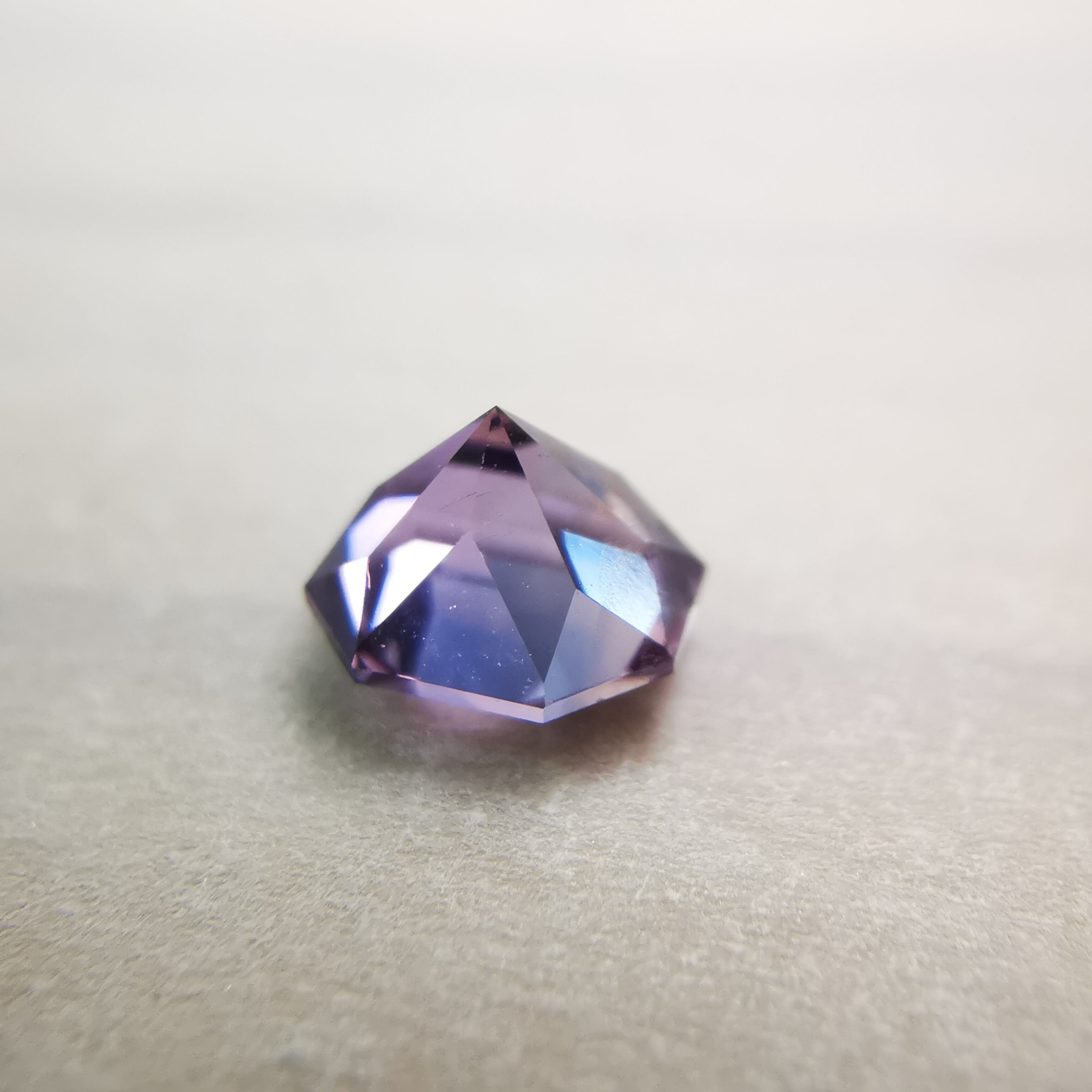 明るいピンクみ紫/あやめ色と、濃い紫/桔梗色がもやもやと複雑に混じるウィンザ産のサファイアです。