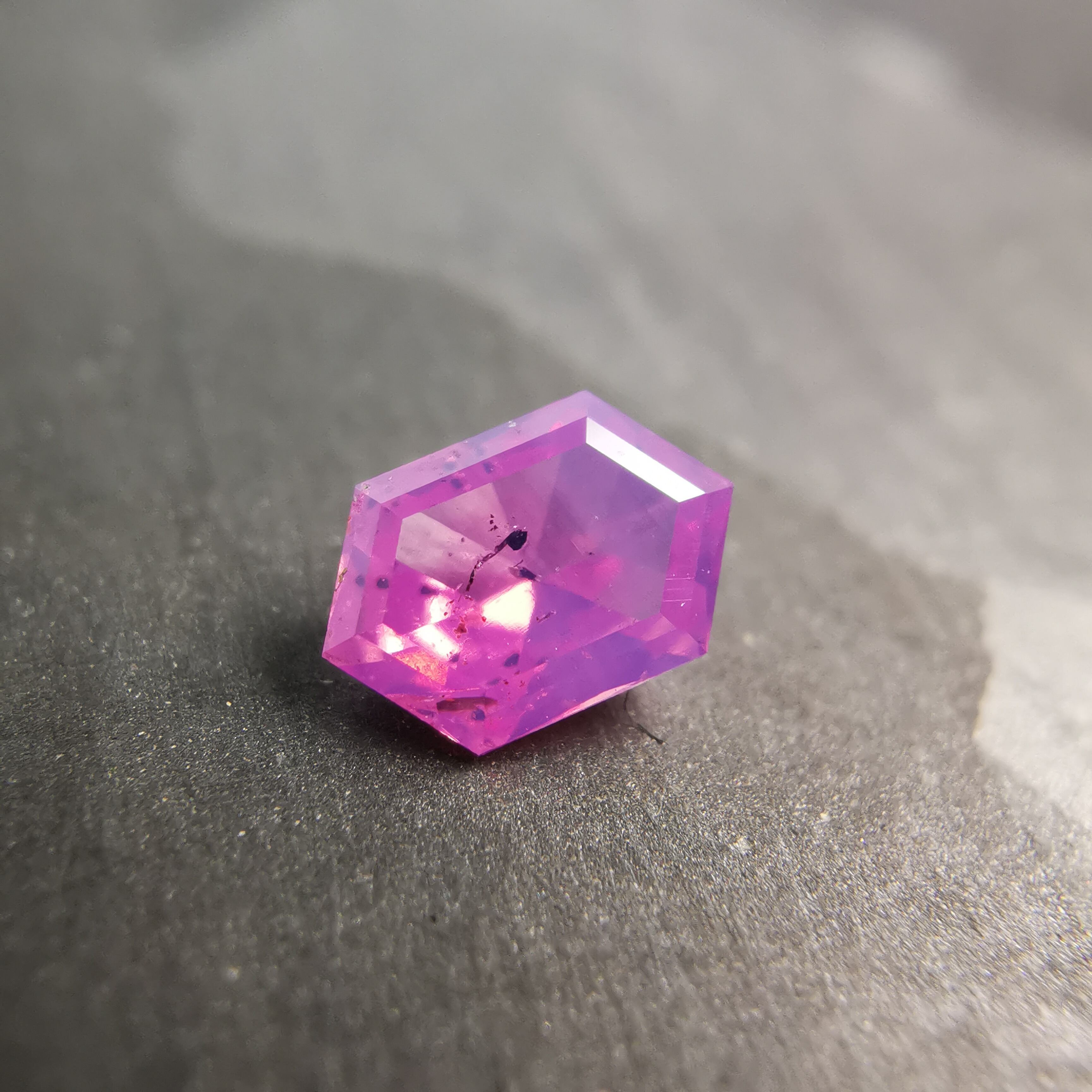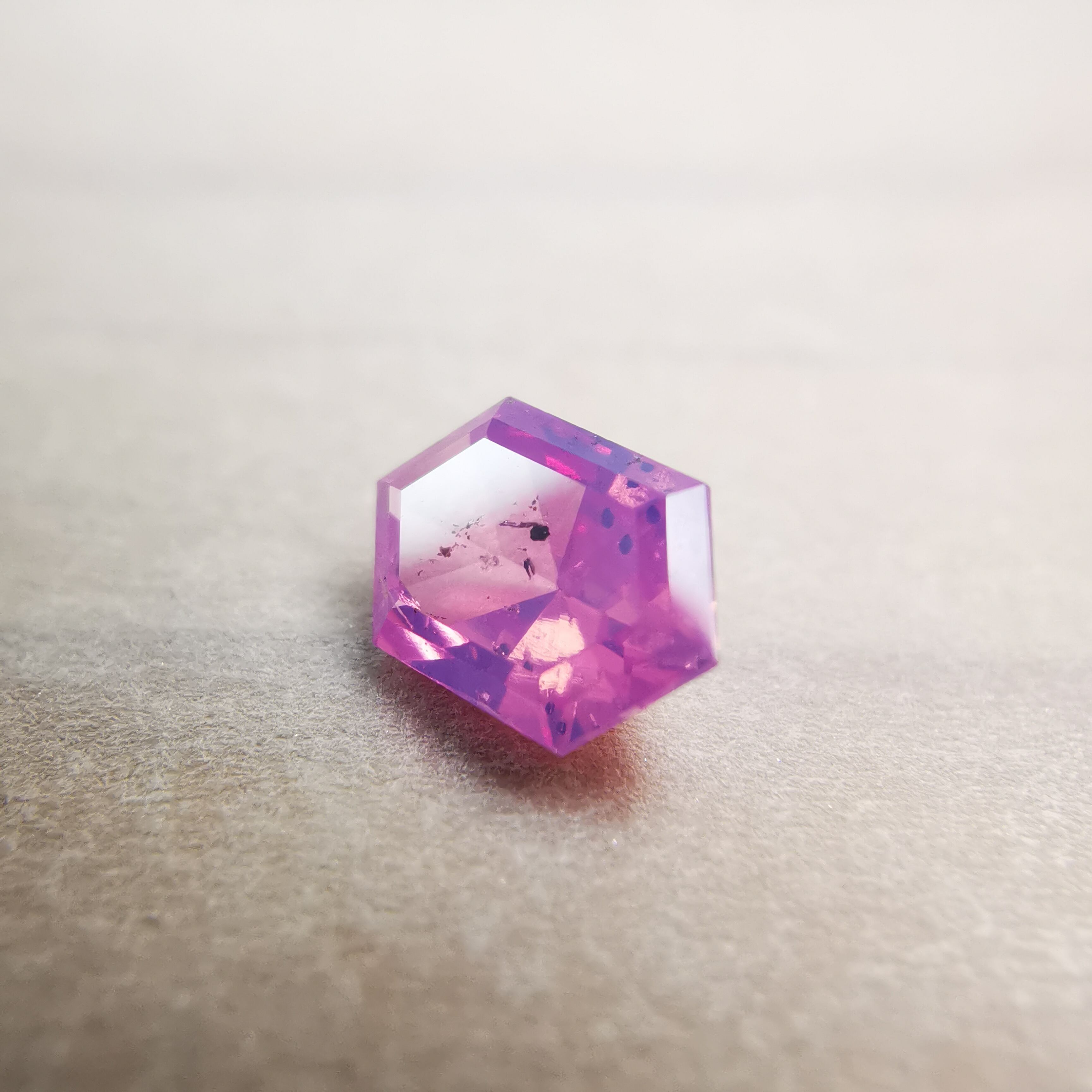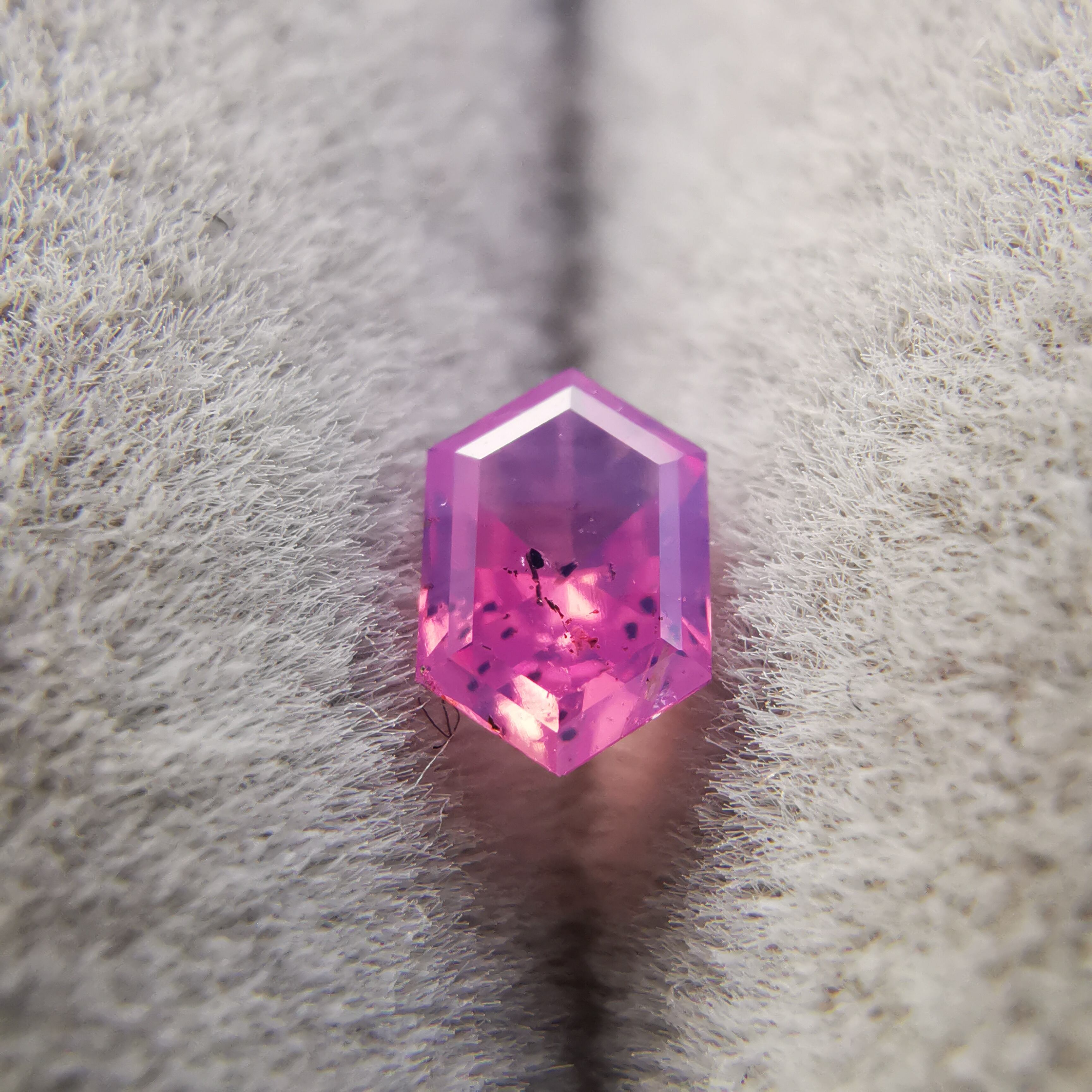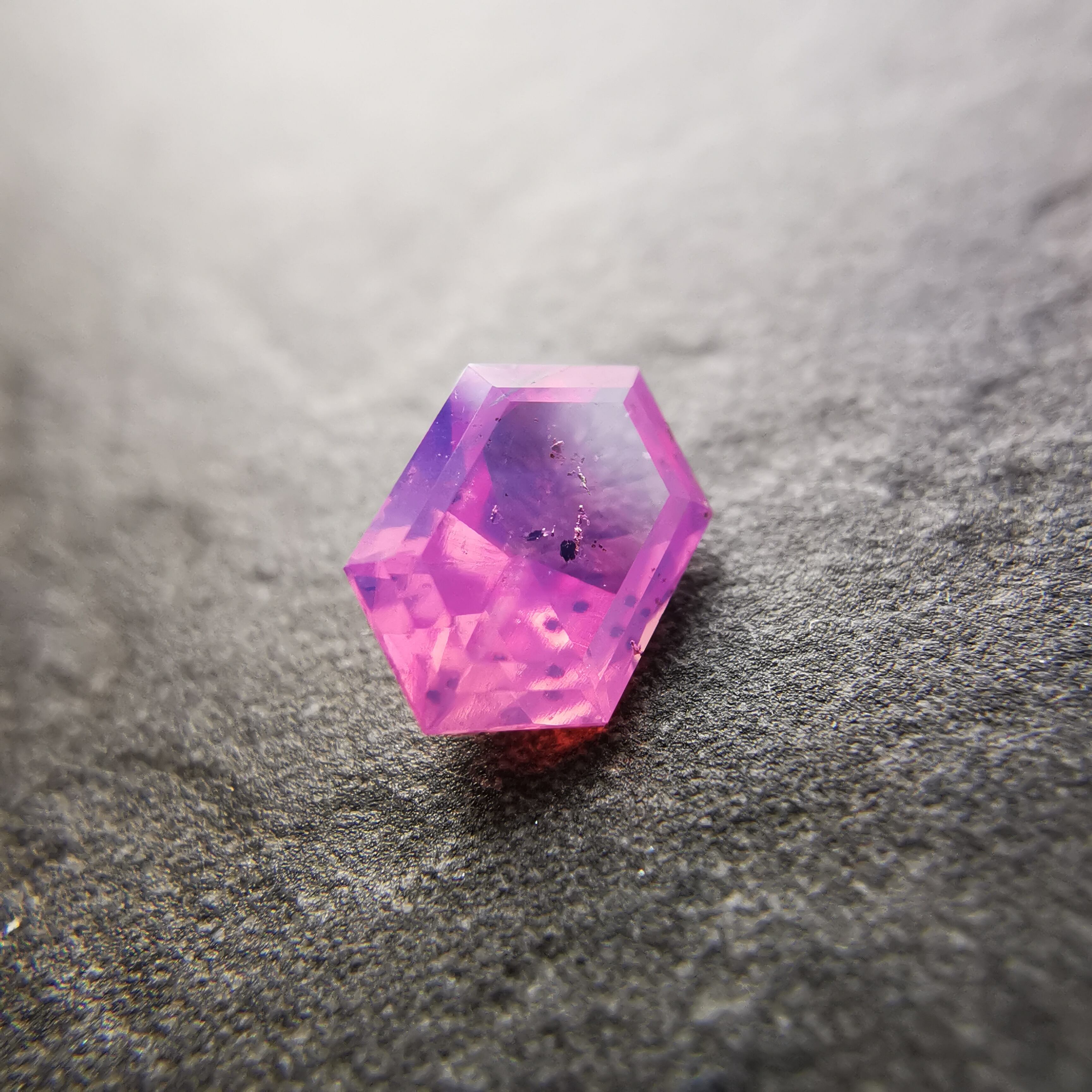 やや紫みの鮮やかなピンク/チェリーピンクのサファイアです。
