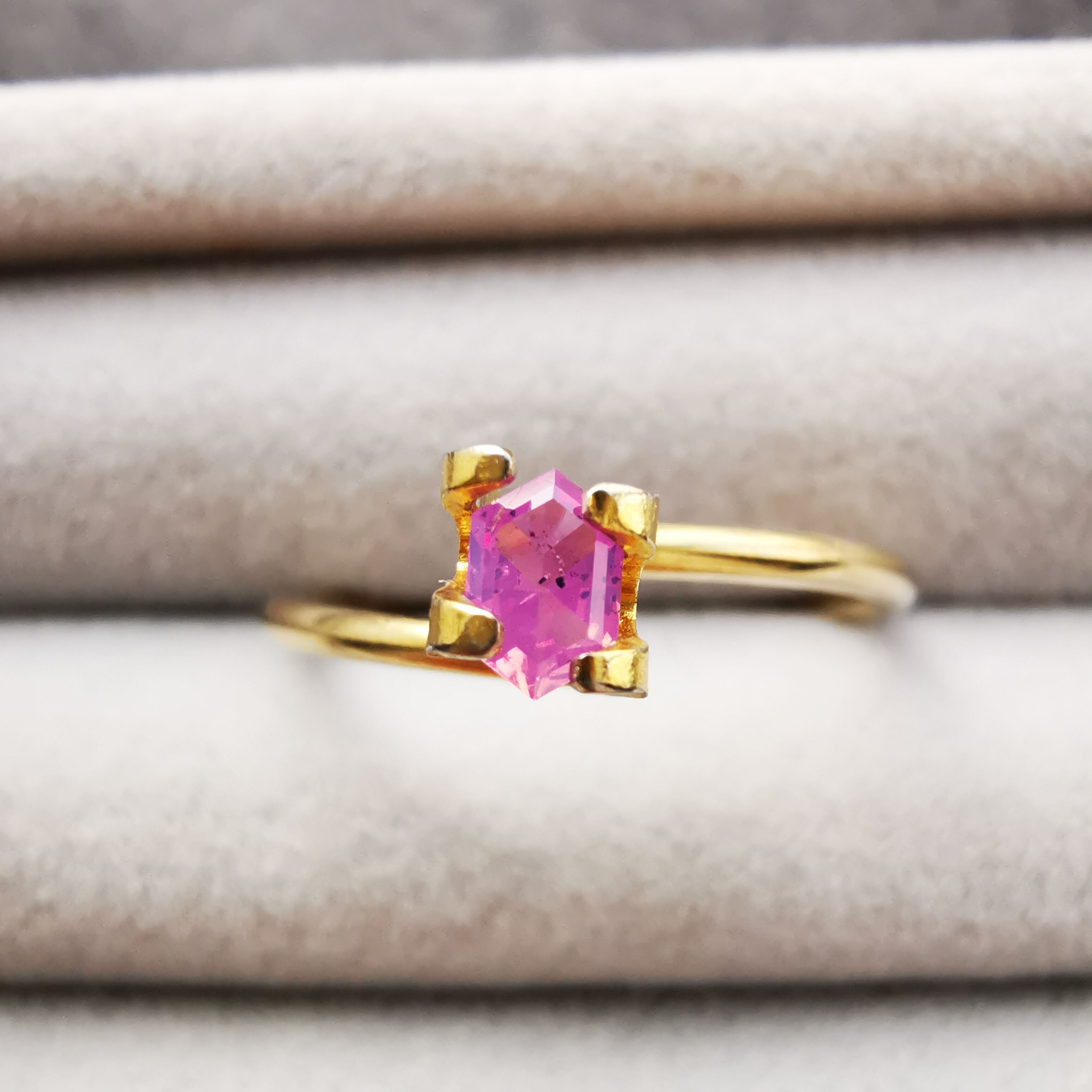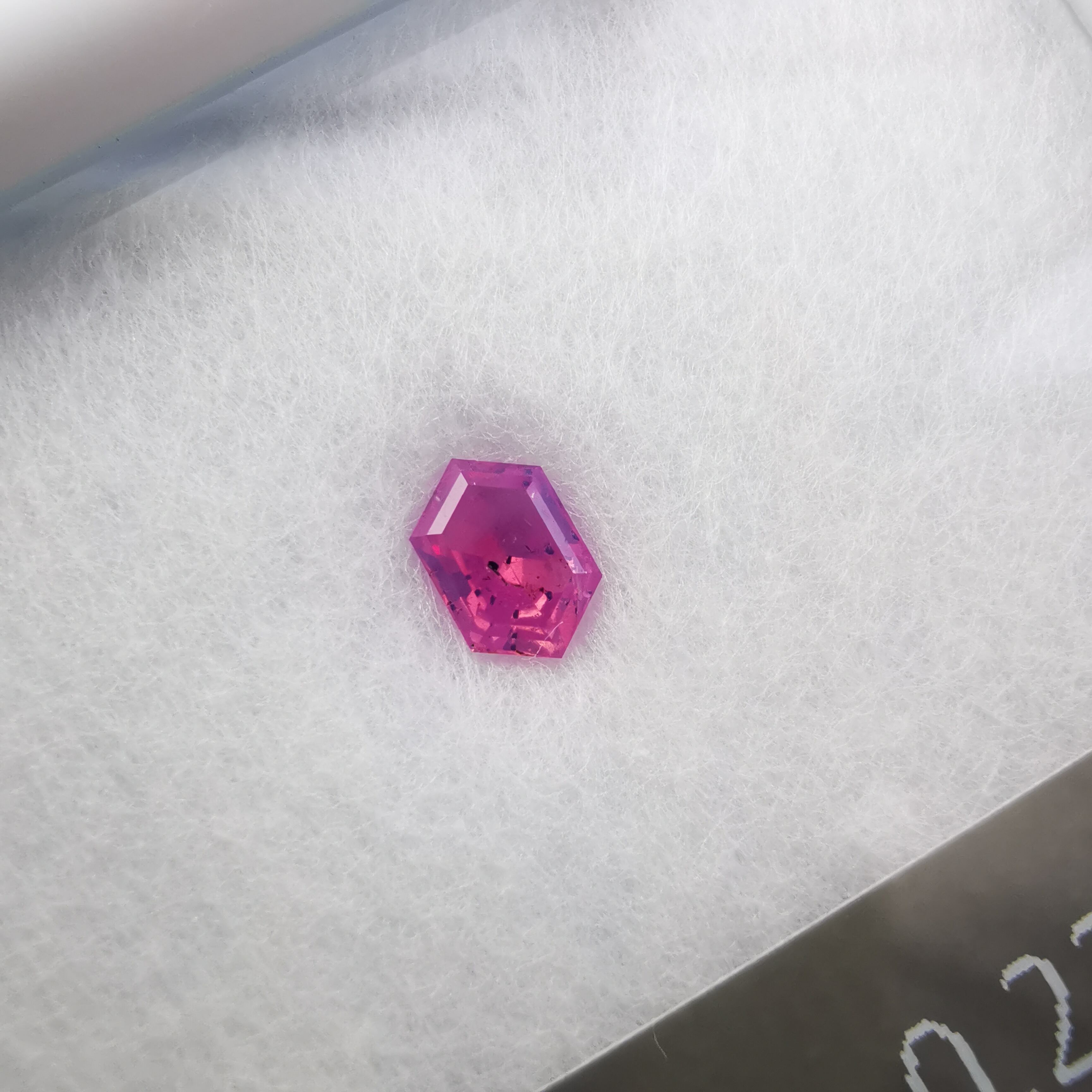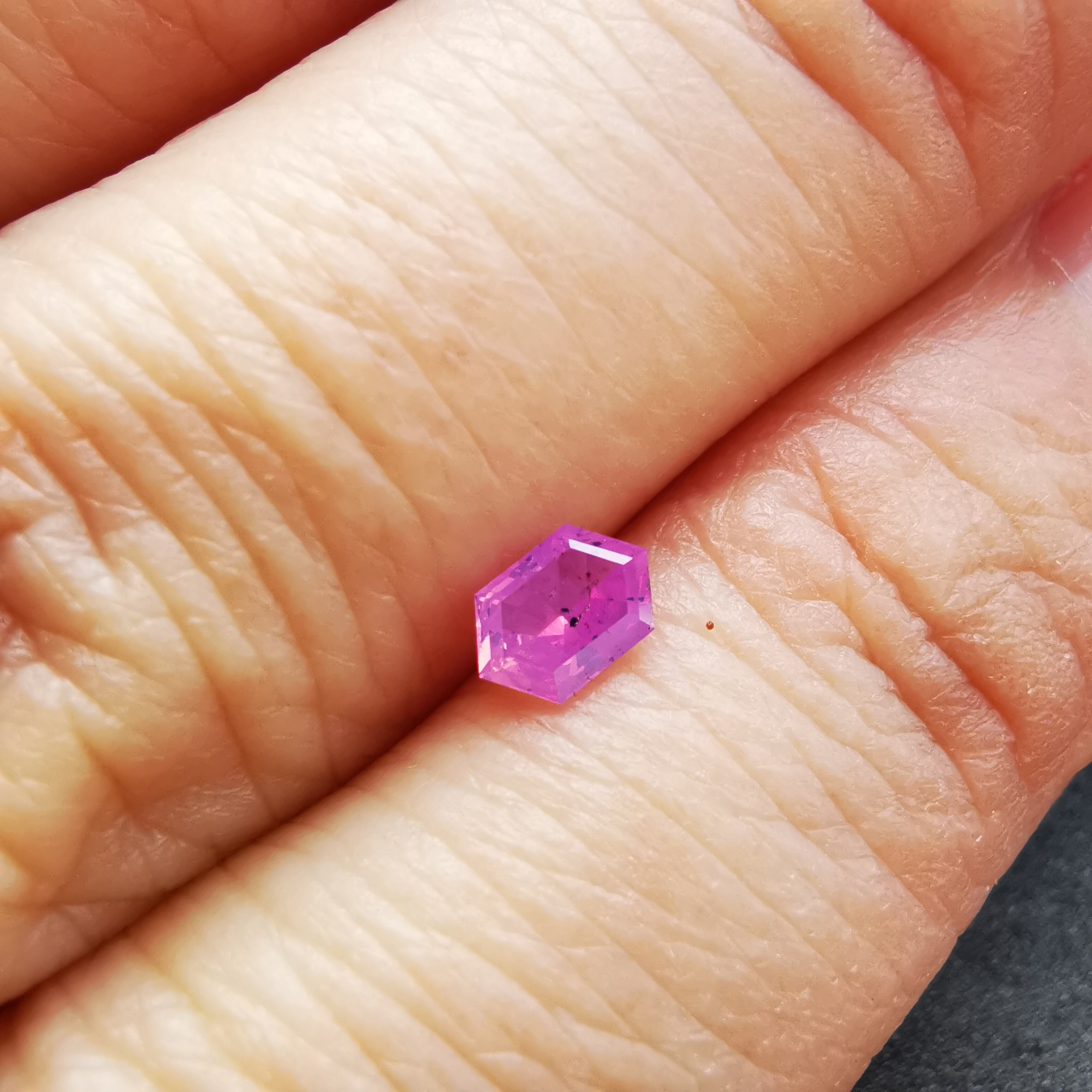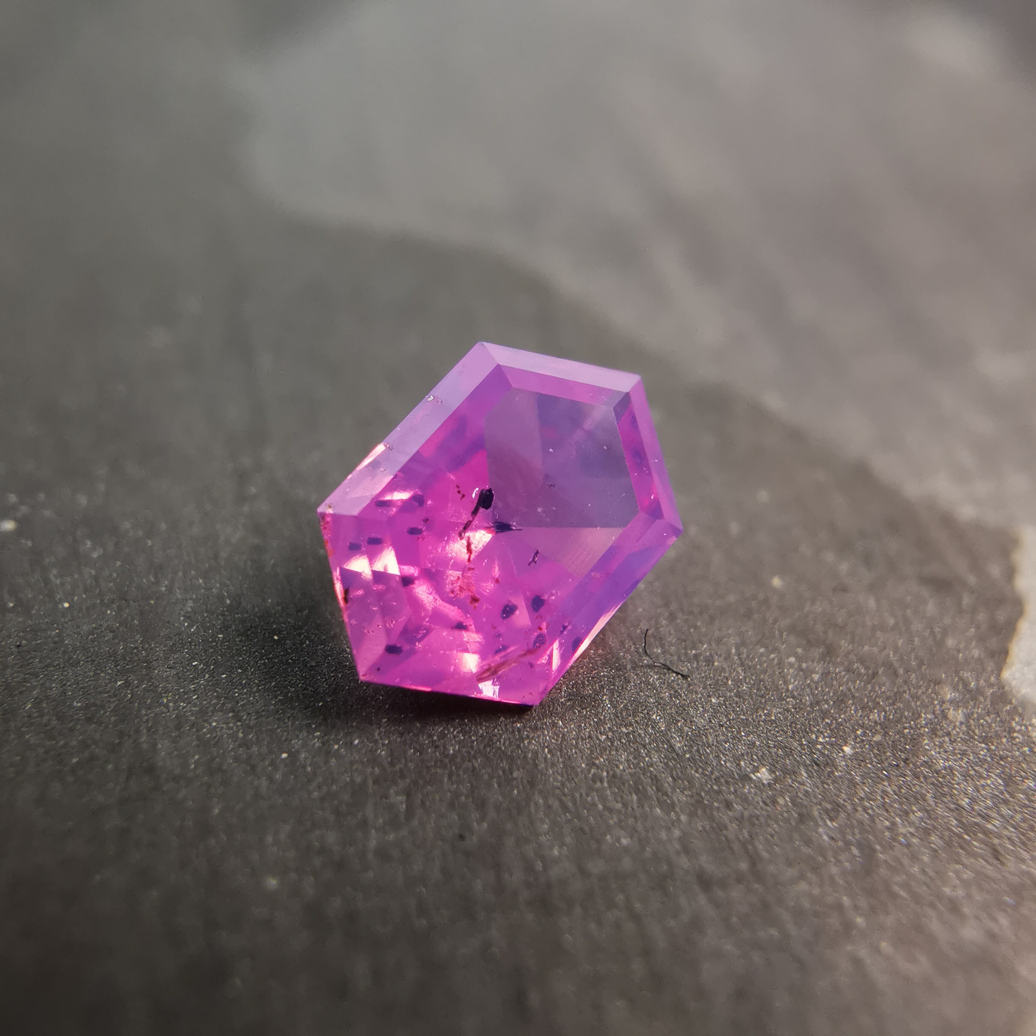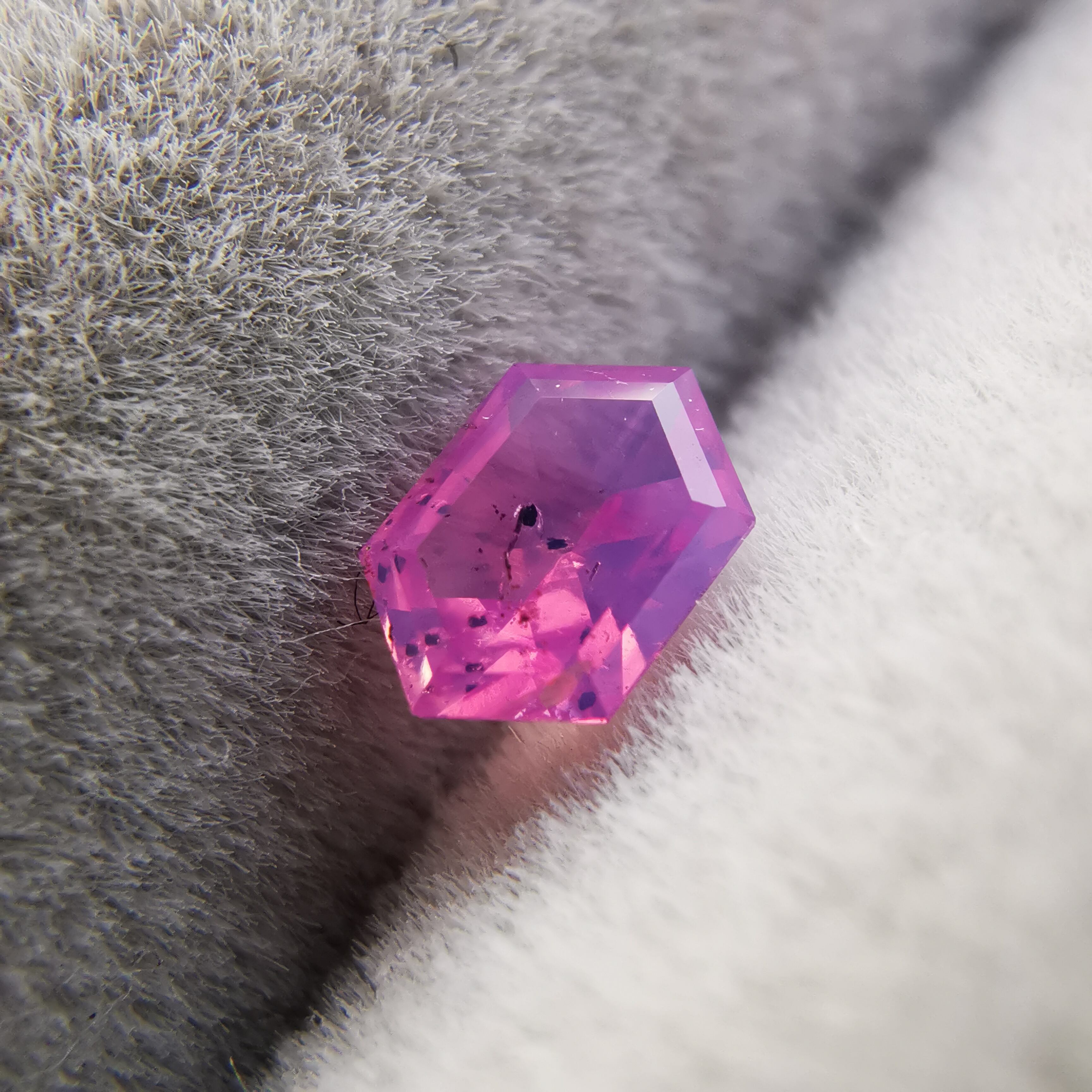 やや紫みの鮮やかなピンク/チェリーピンクのサファイアです。