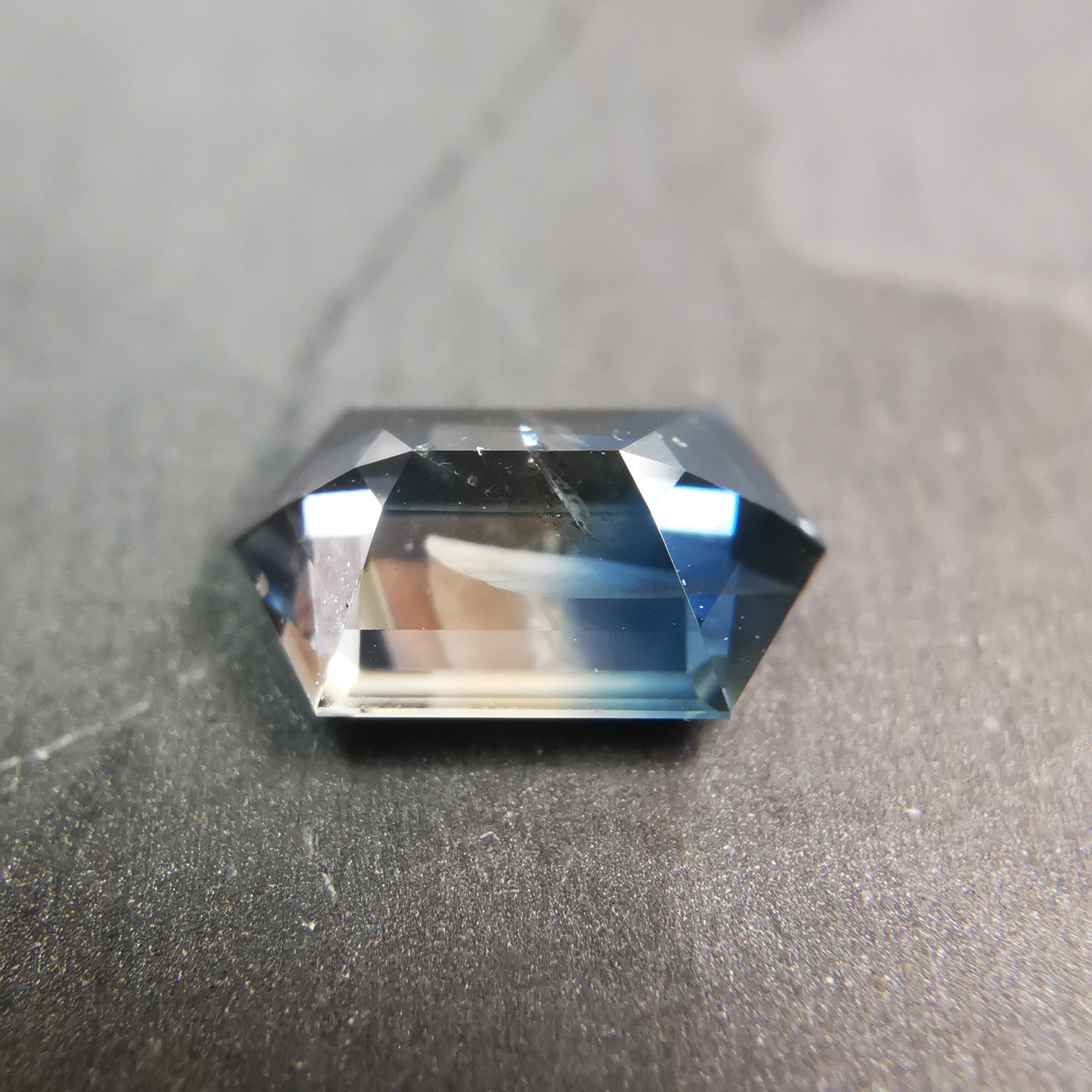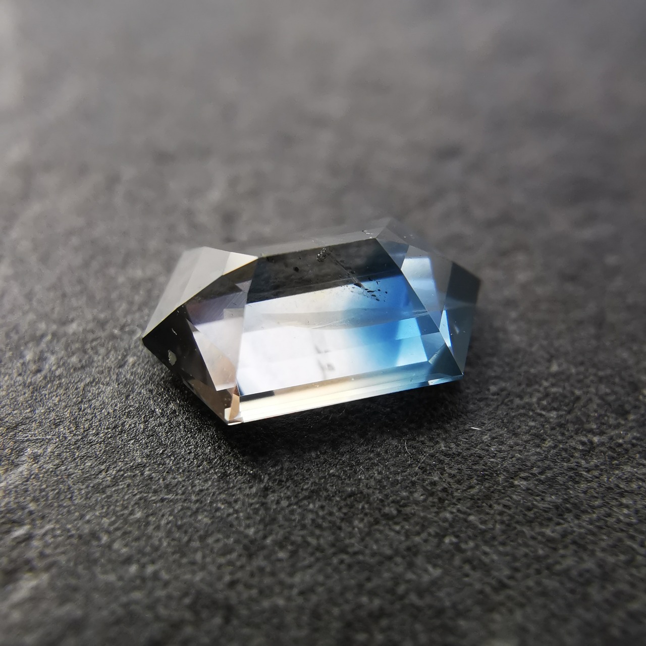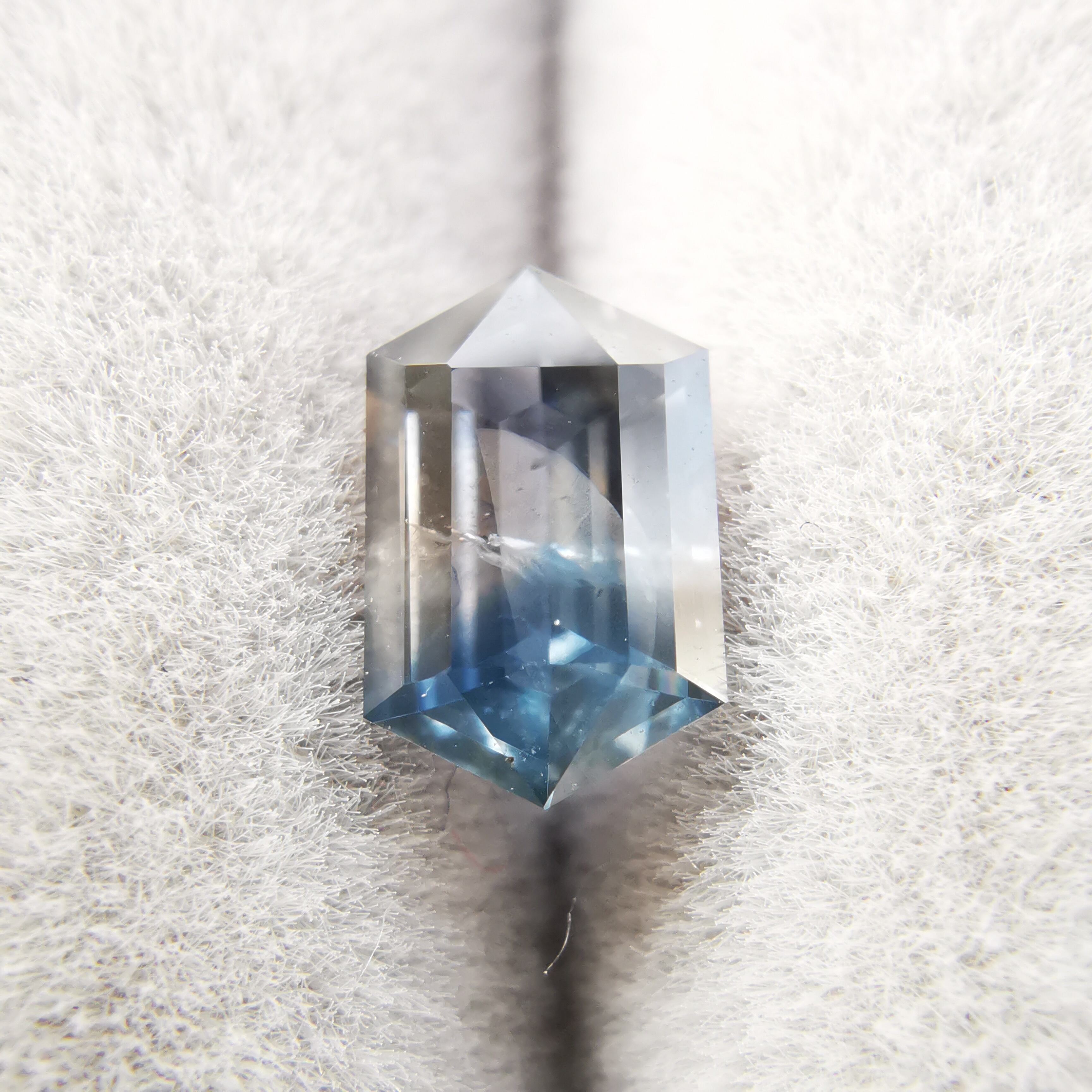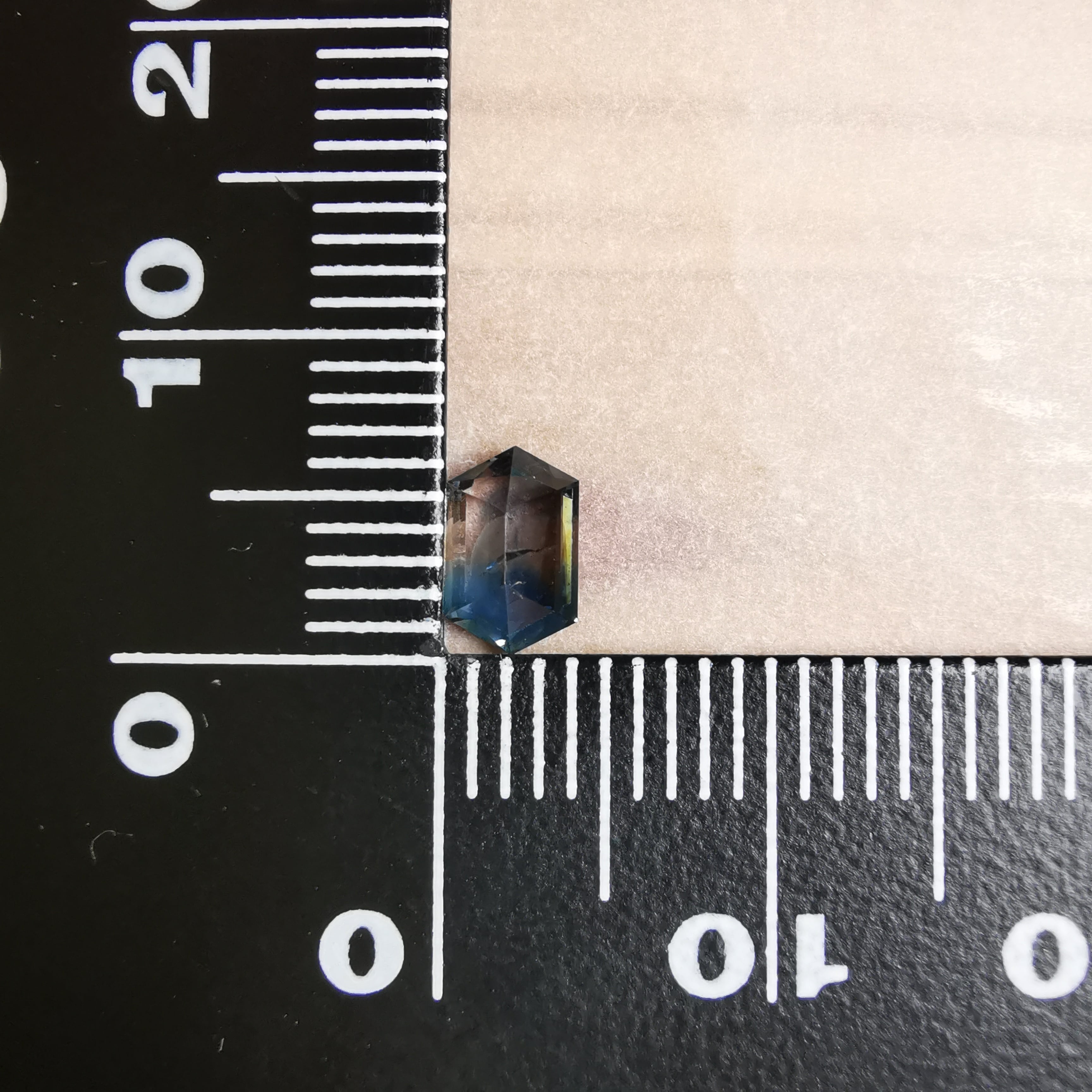ごく淡い黄と、藍色のバイカラーのサファイアです。