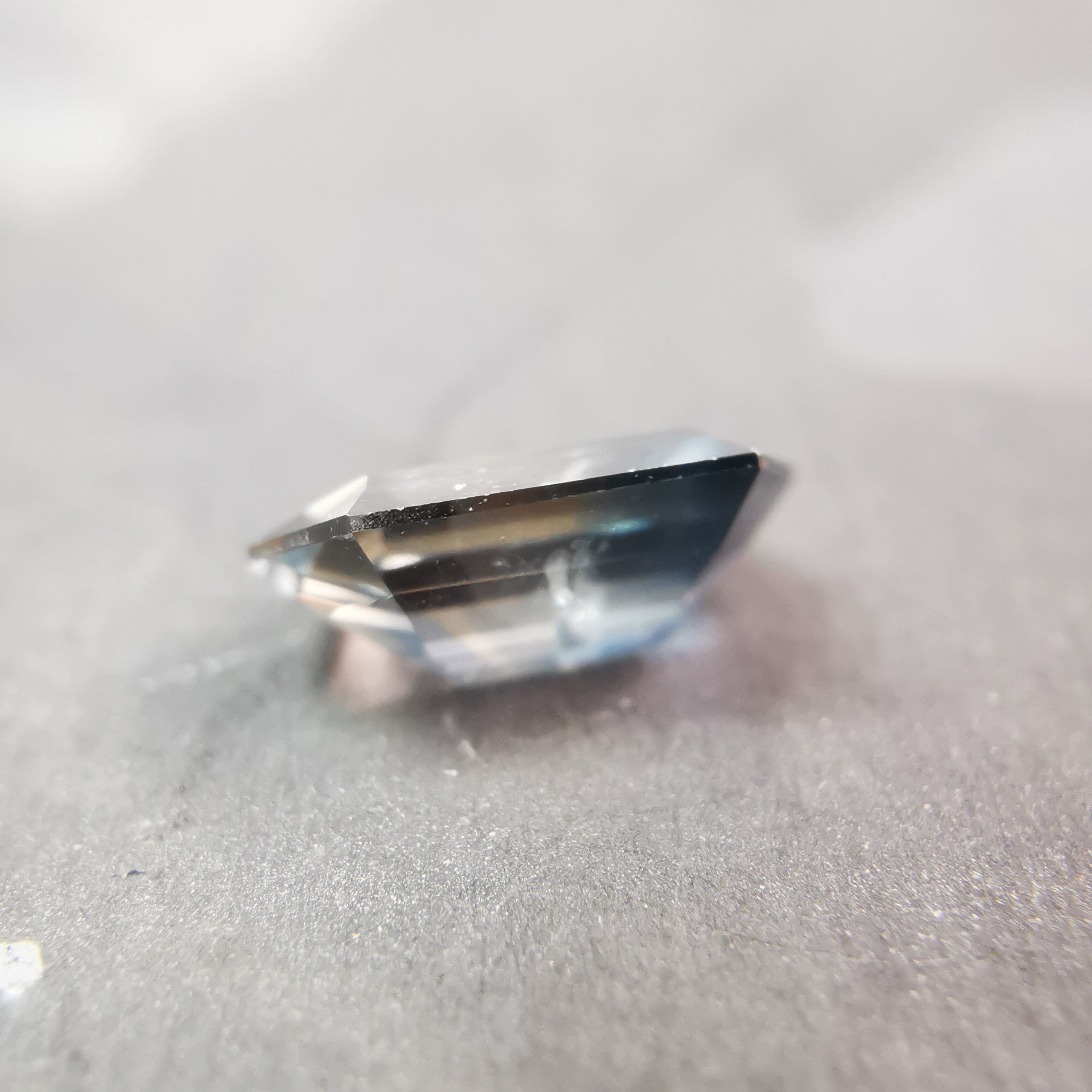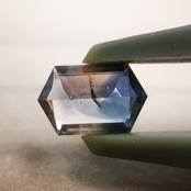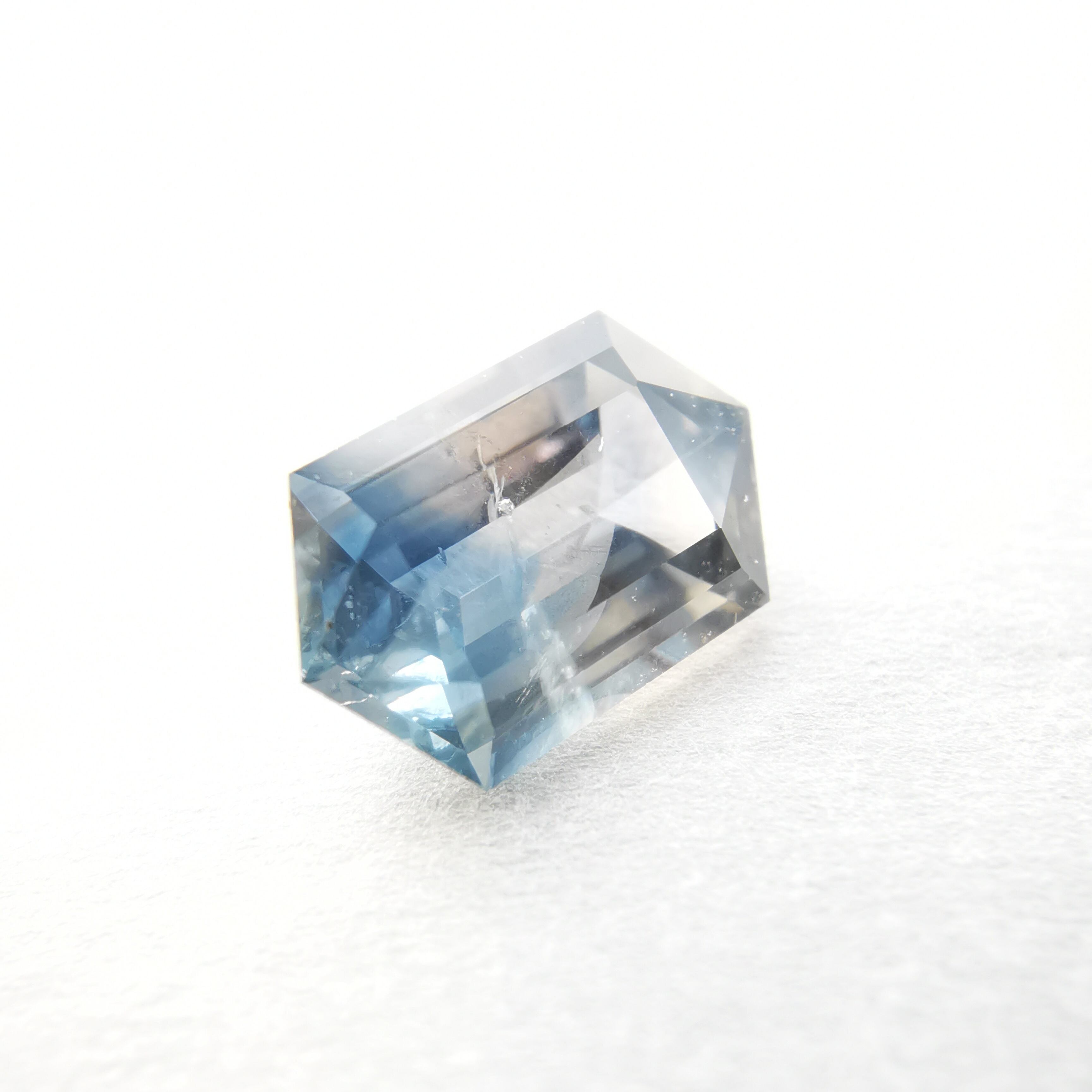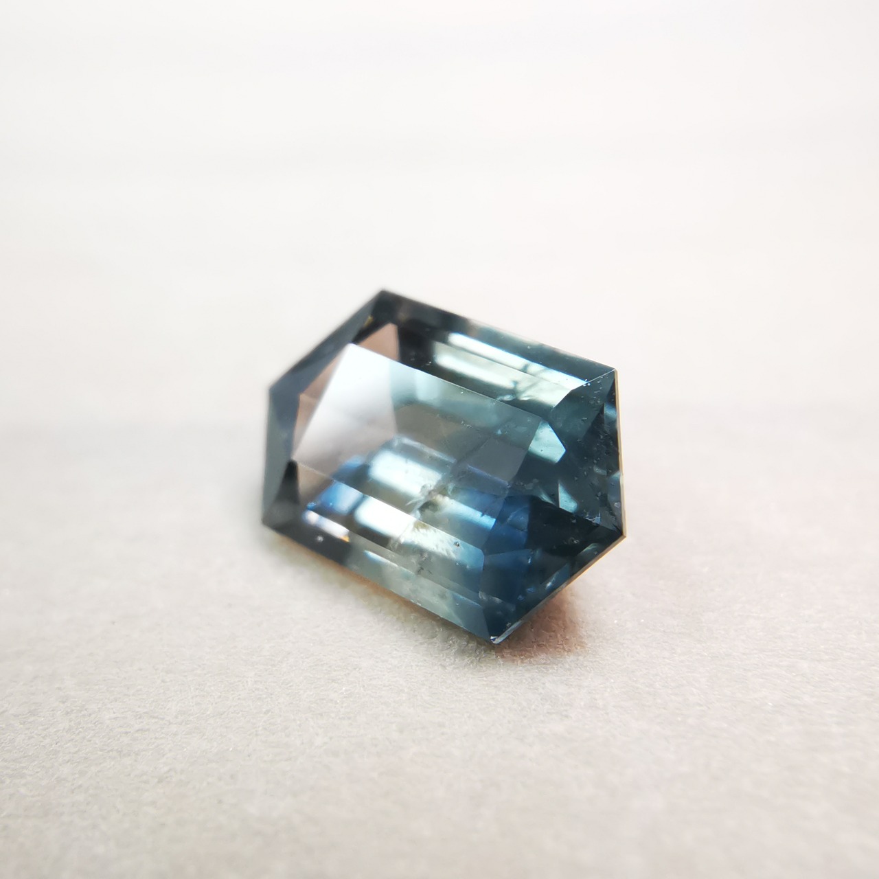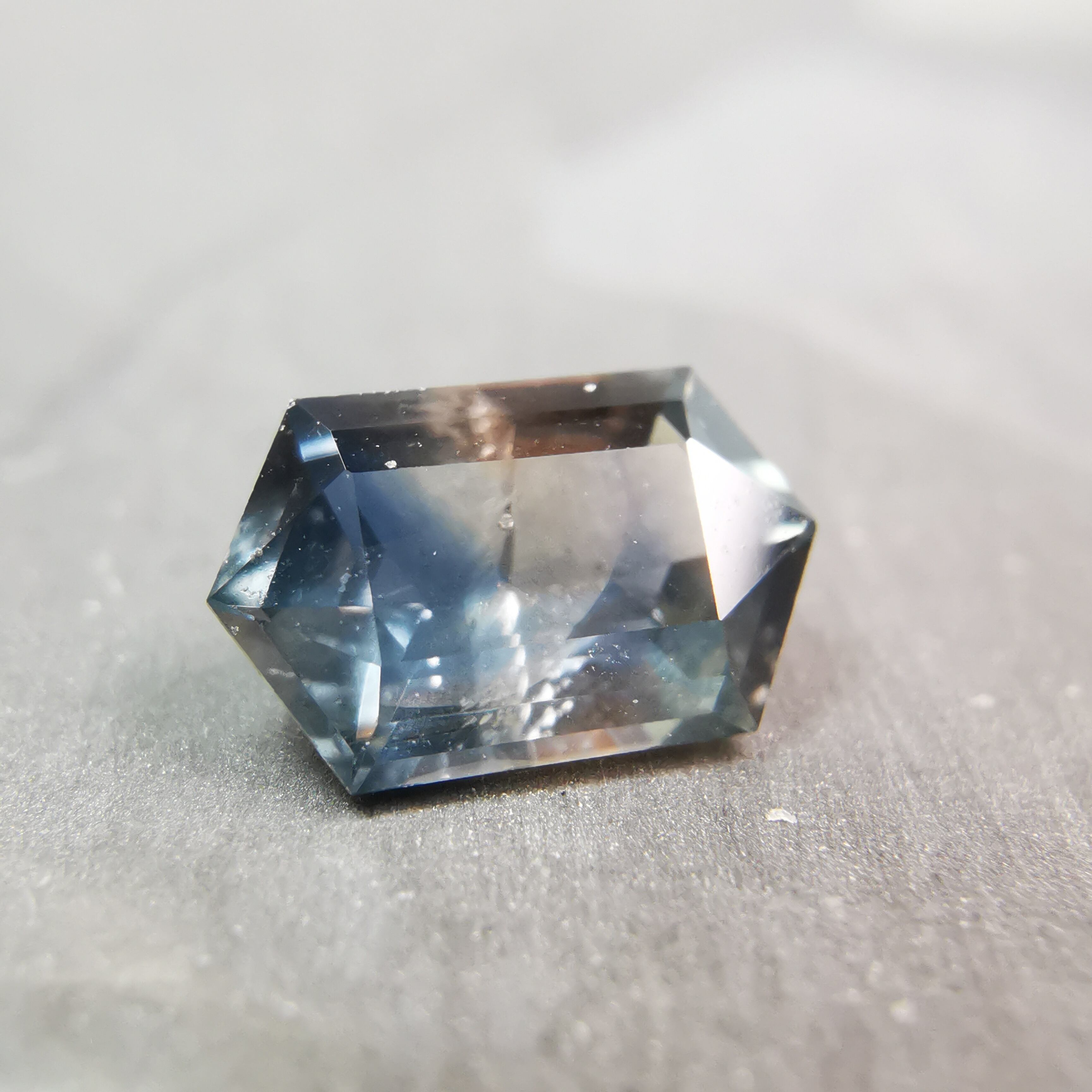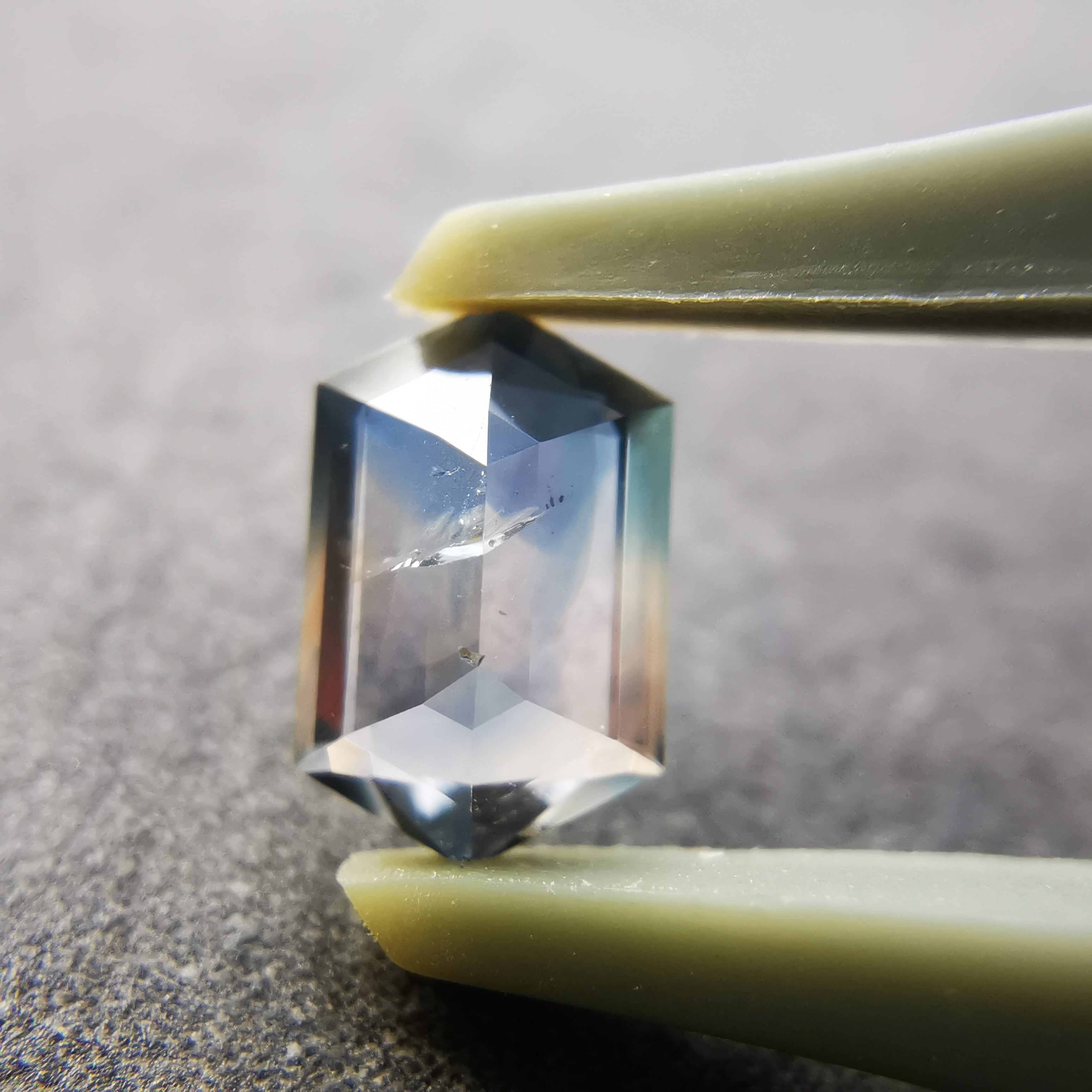 ごく淡い黄と、藍色のバイカラーのサファイアです。