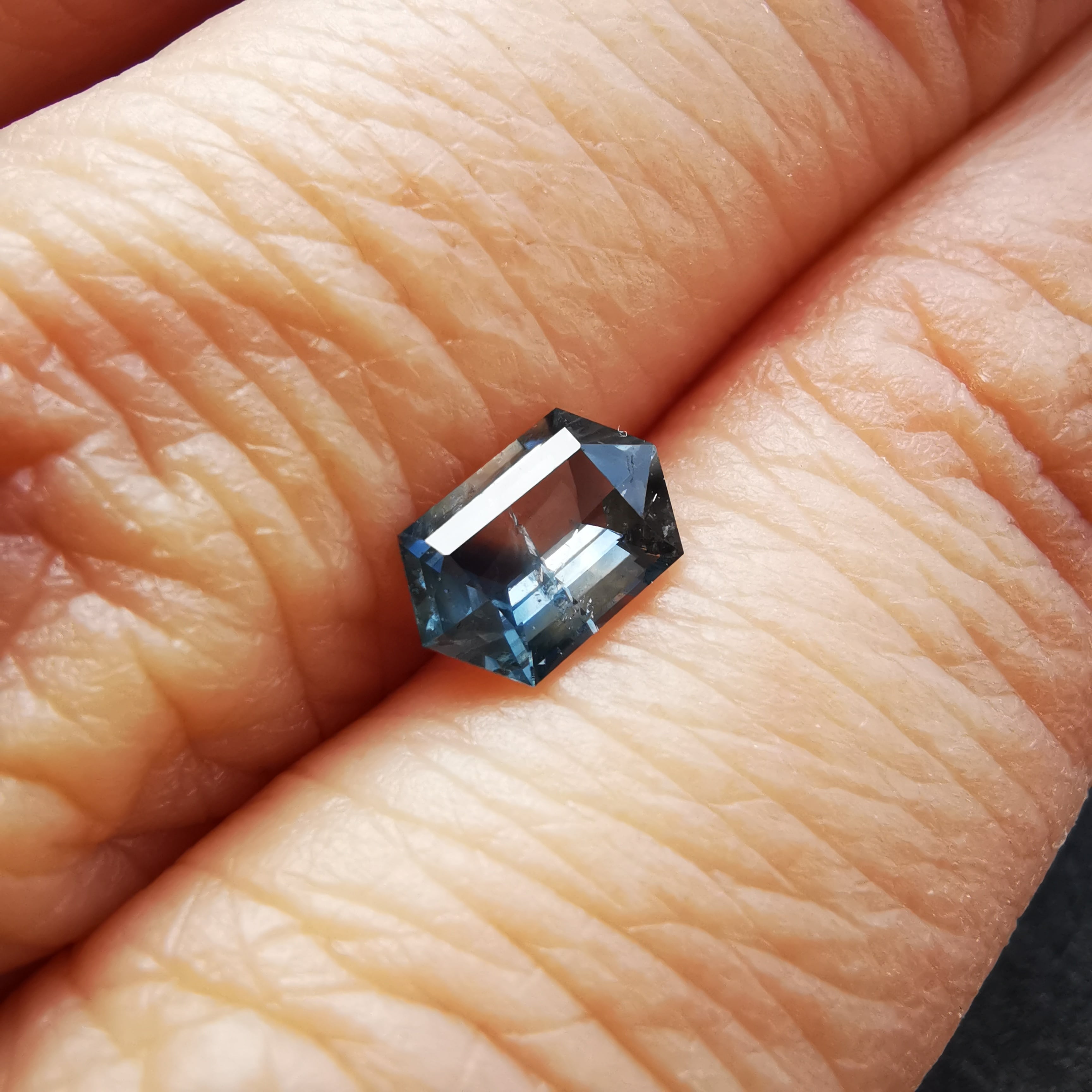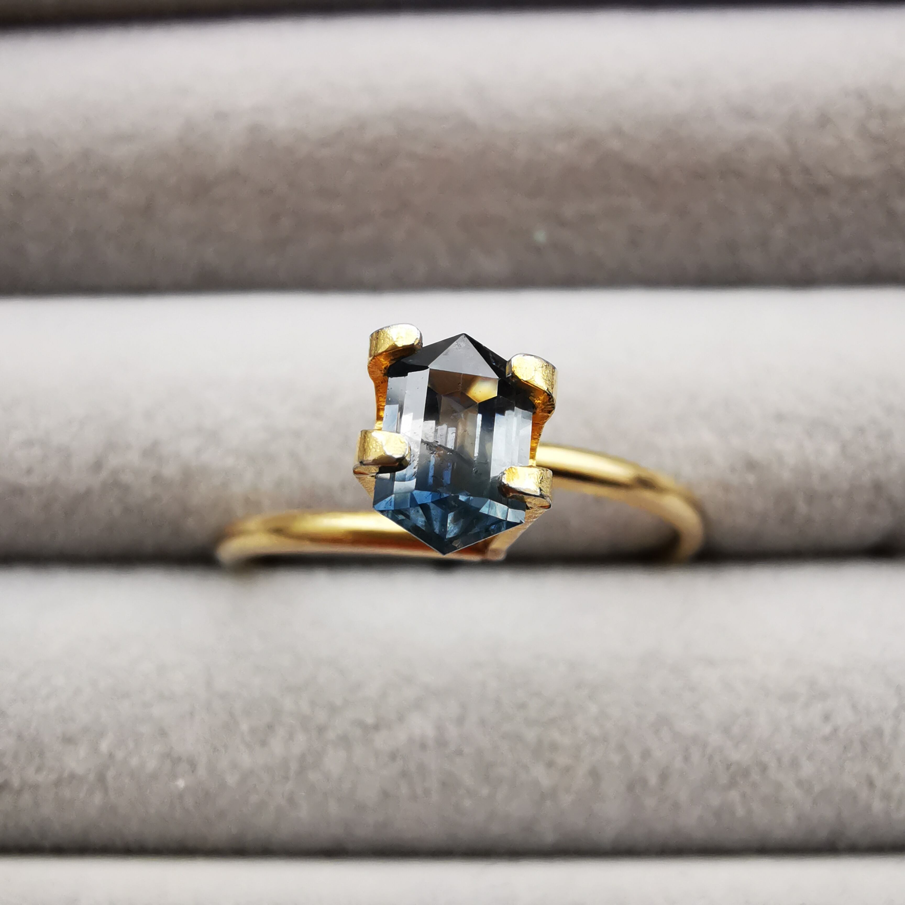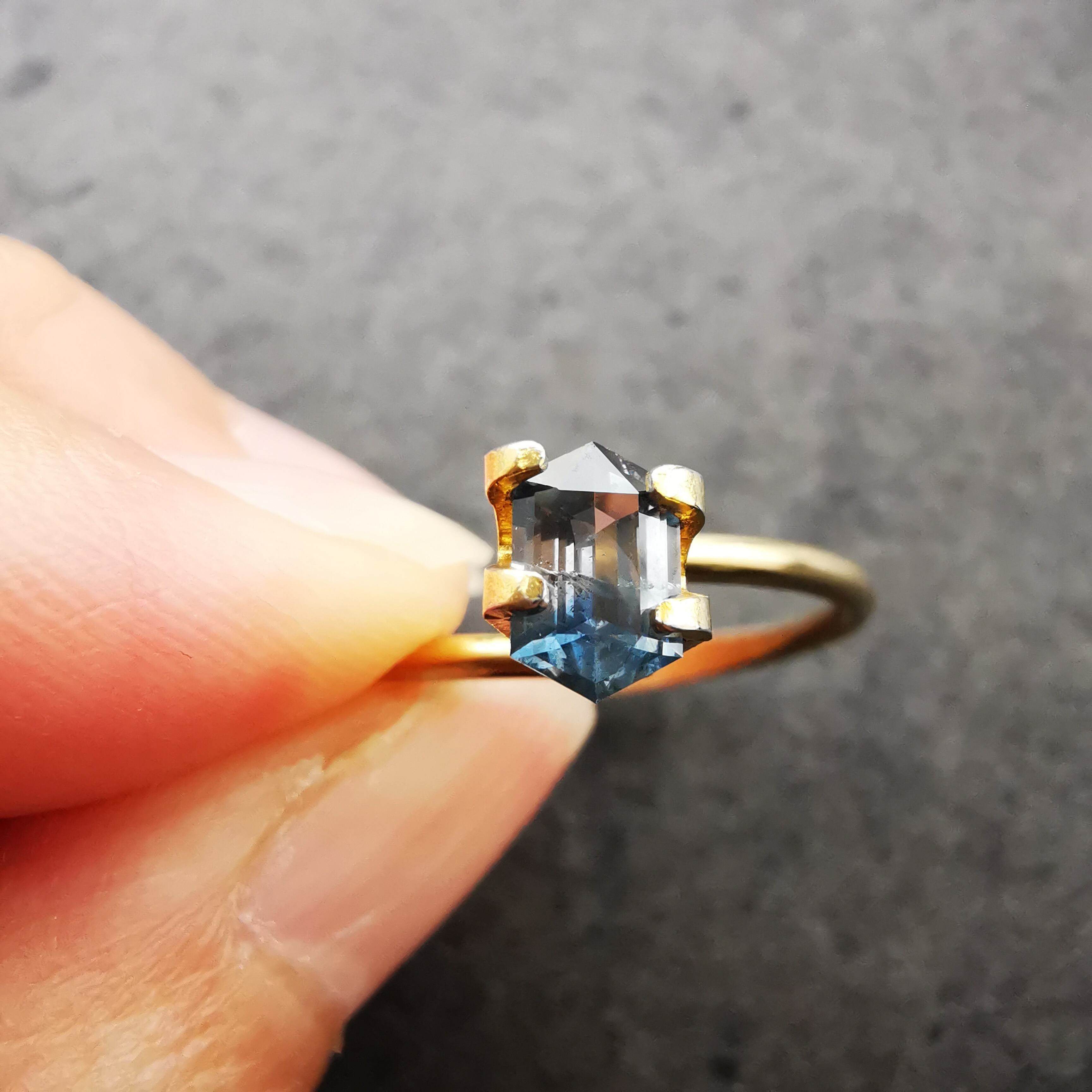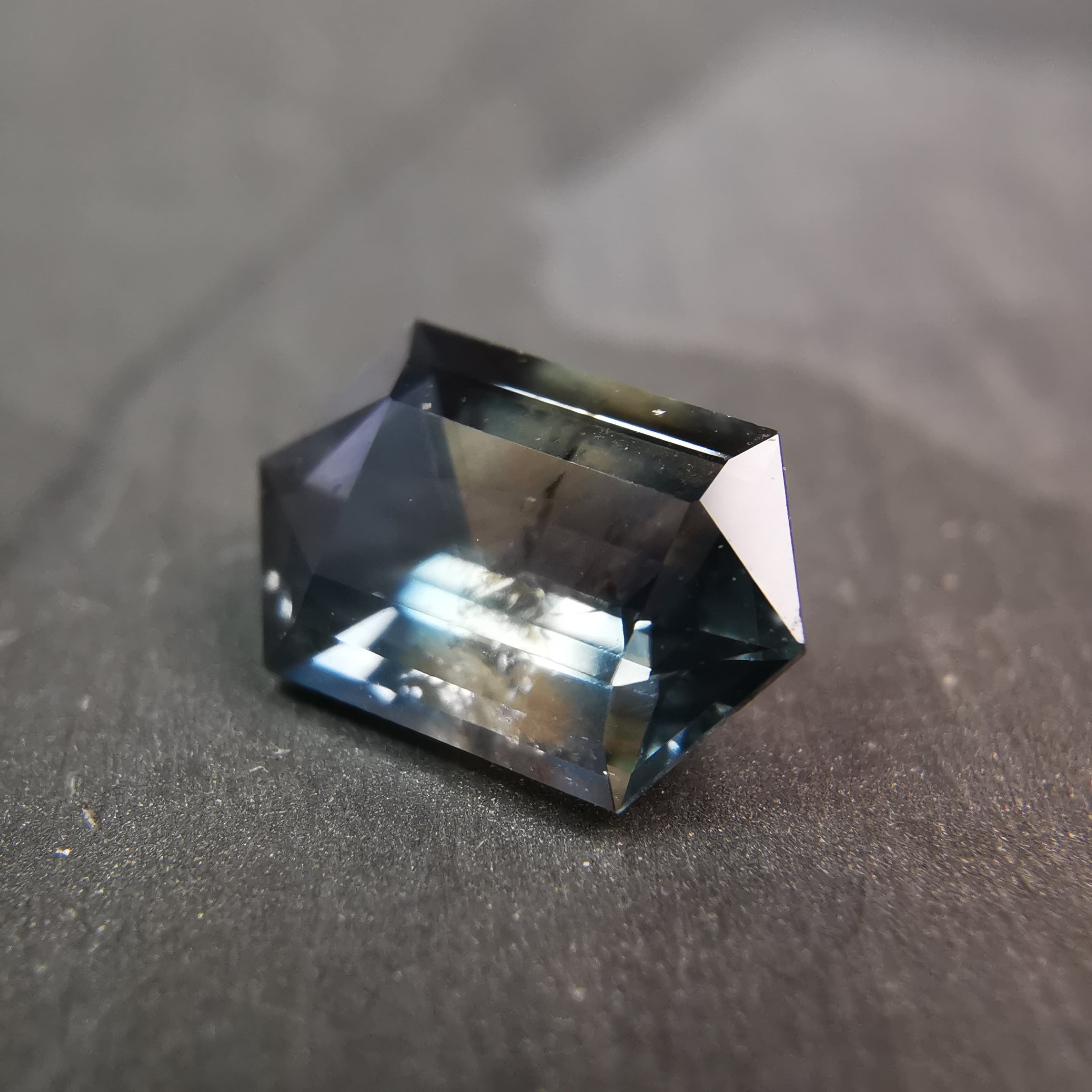 ごく淡い黄と、藍色のバイカラーのサファイアです。