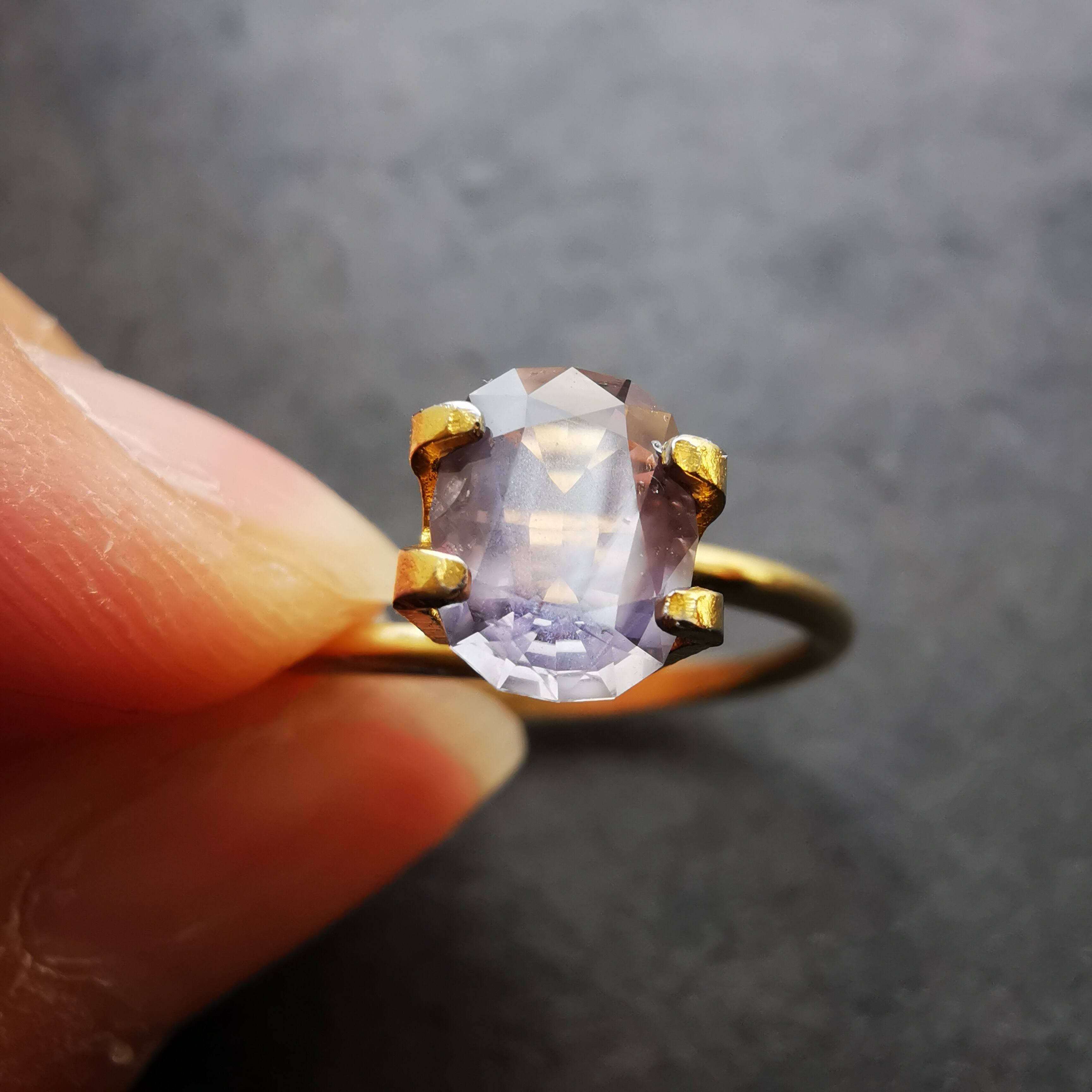 柔らかなパープル/ライラック色サファイアです。