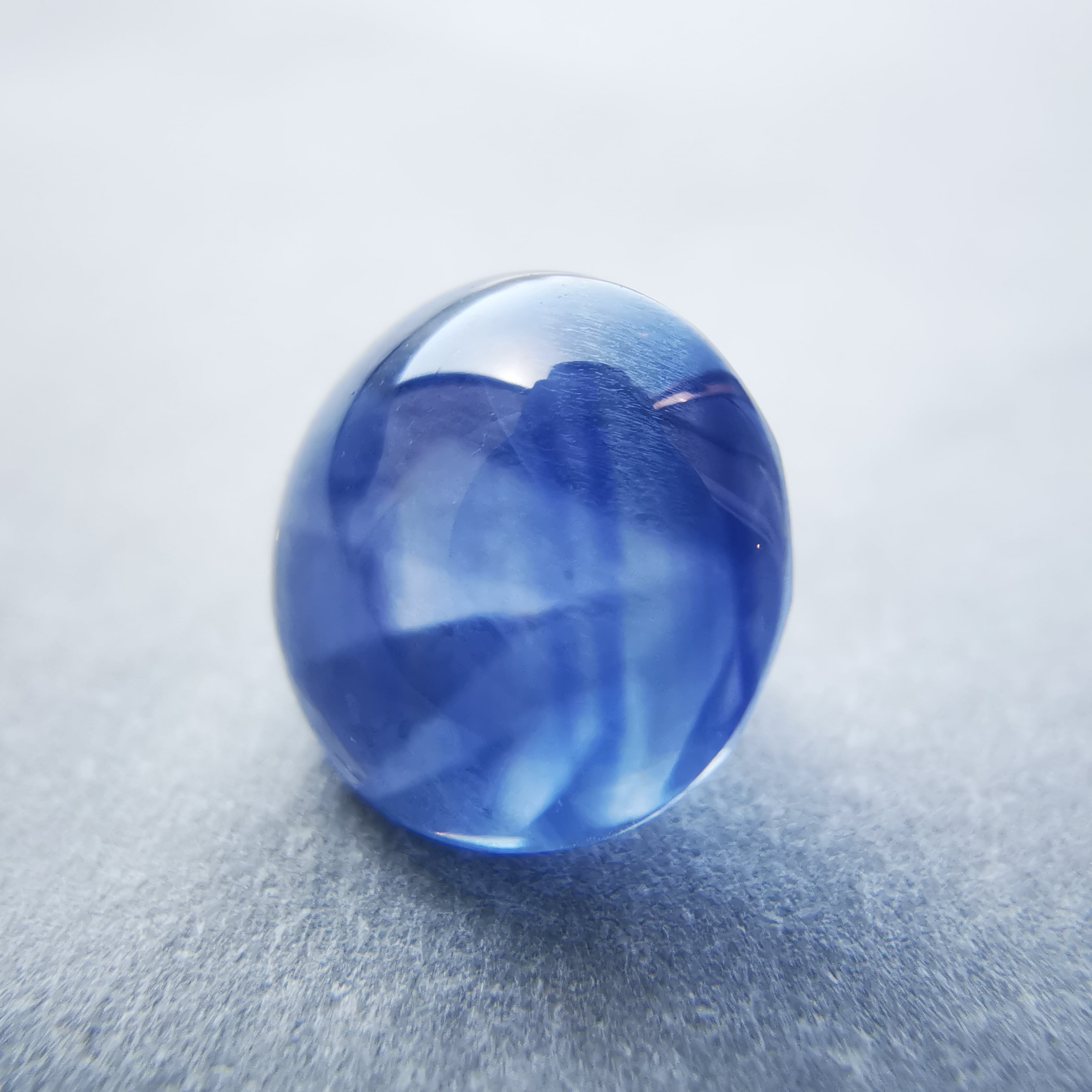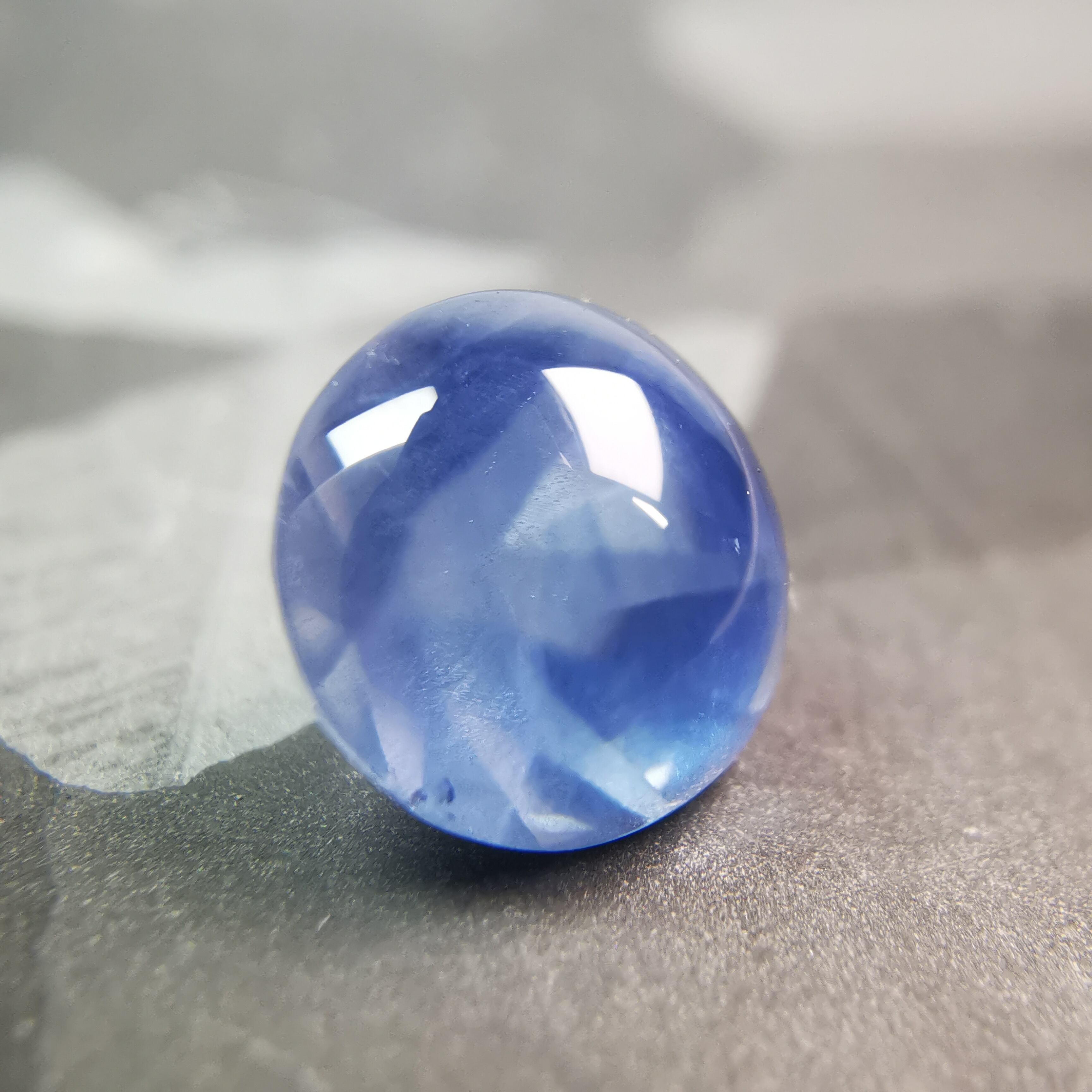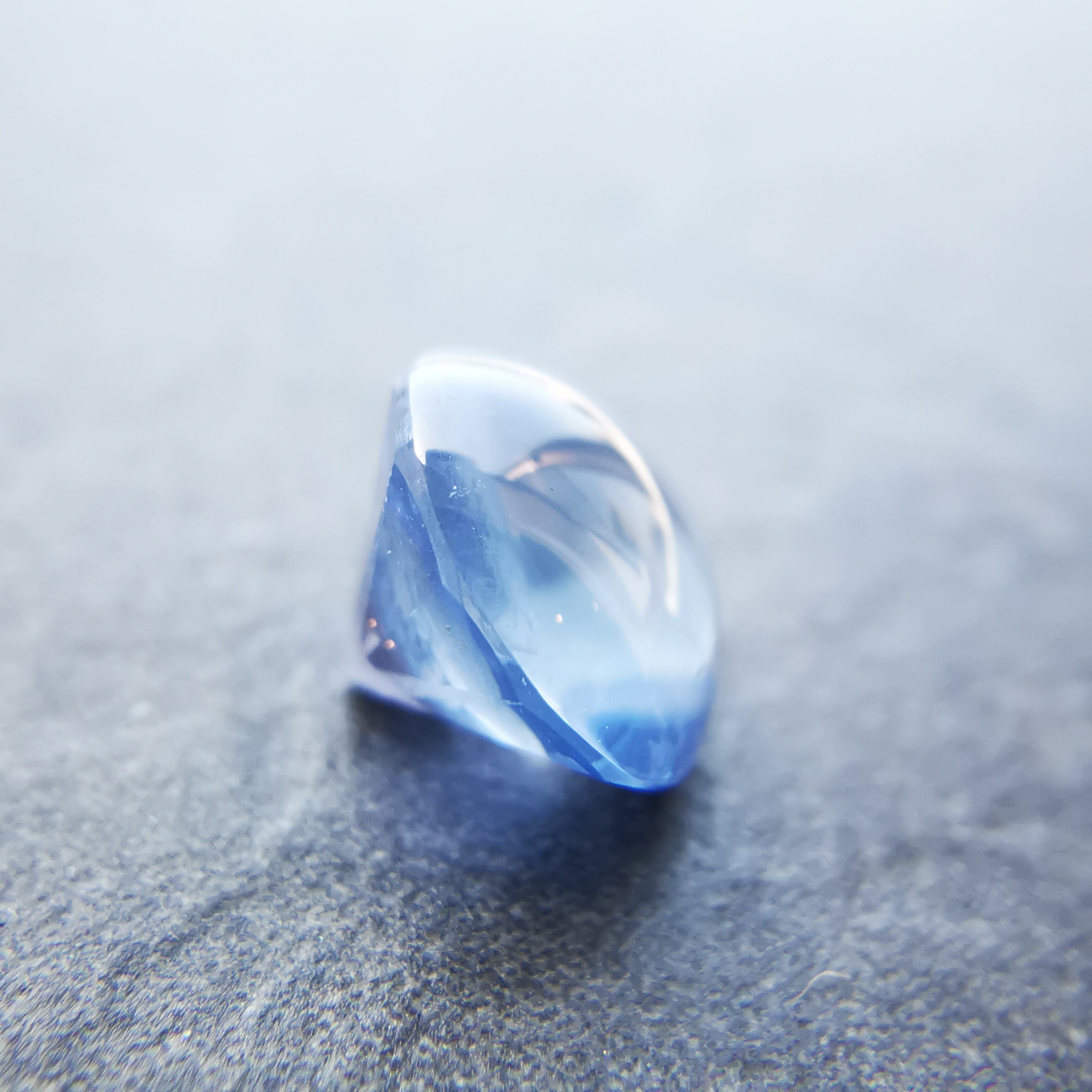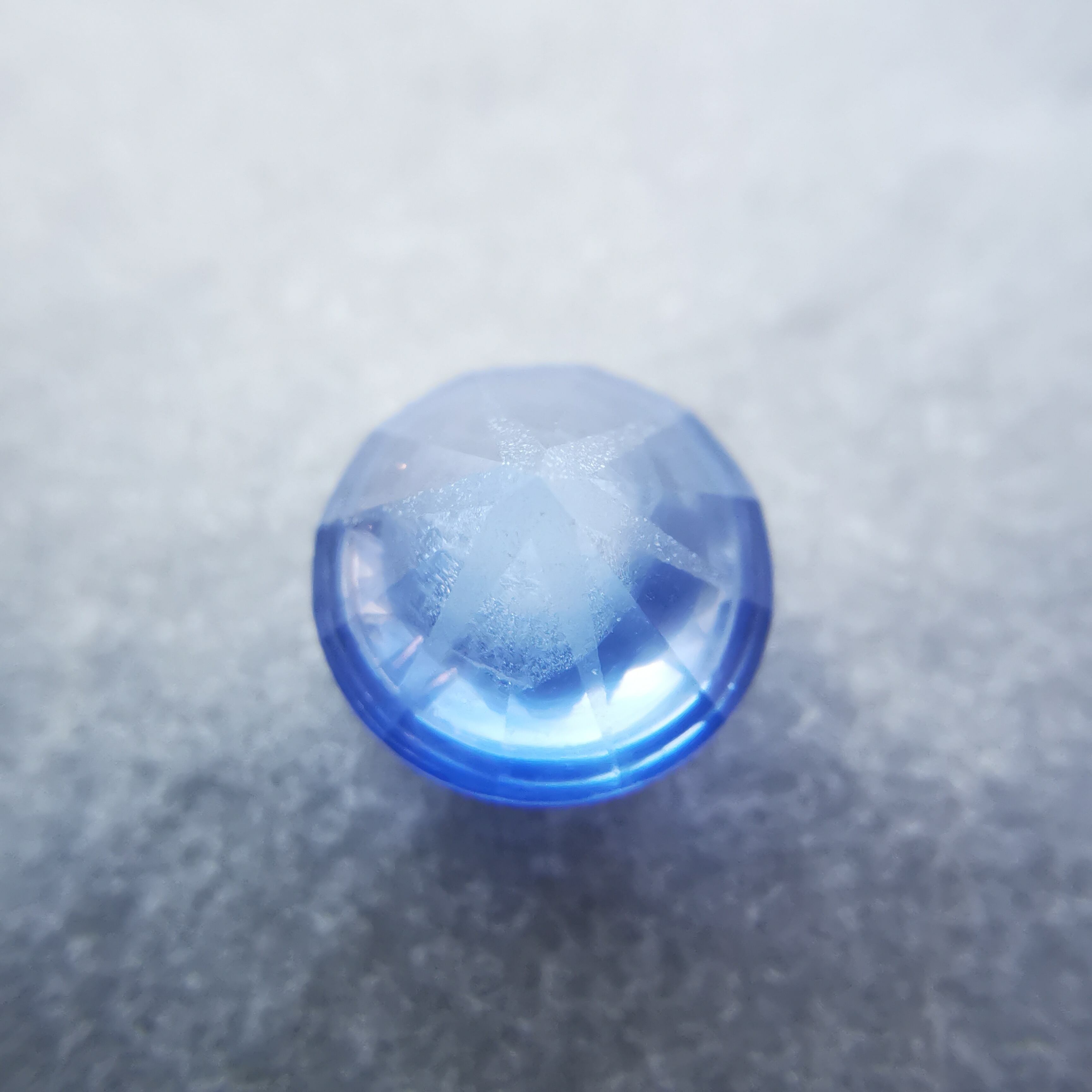 スターサファイアではないのに、元々カボションカットだったのがちょっと珍しく、ぷるんつるんとした形がなんとも愛らしく、そこを活かしてバフトップにリカットしました。
