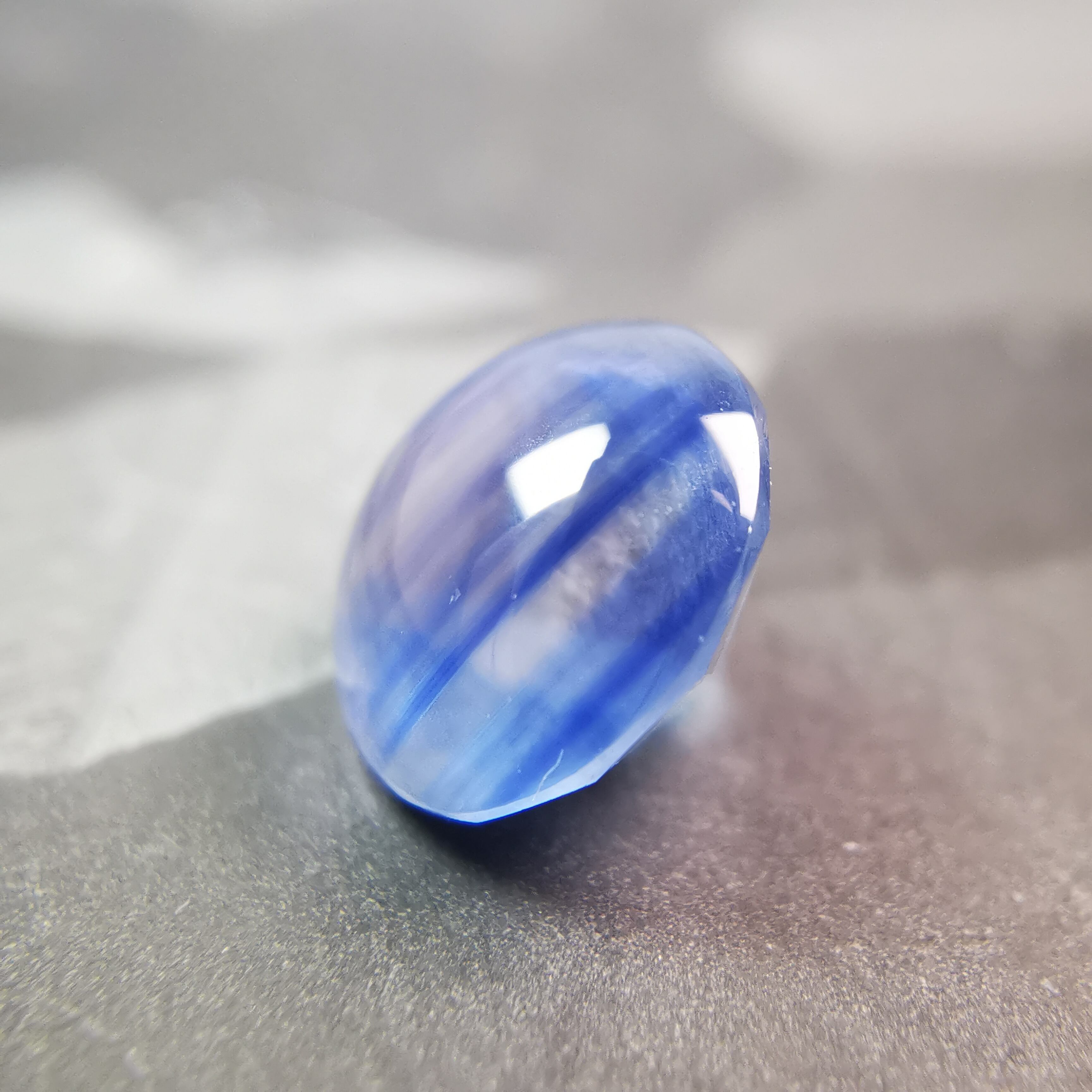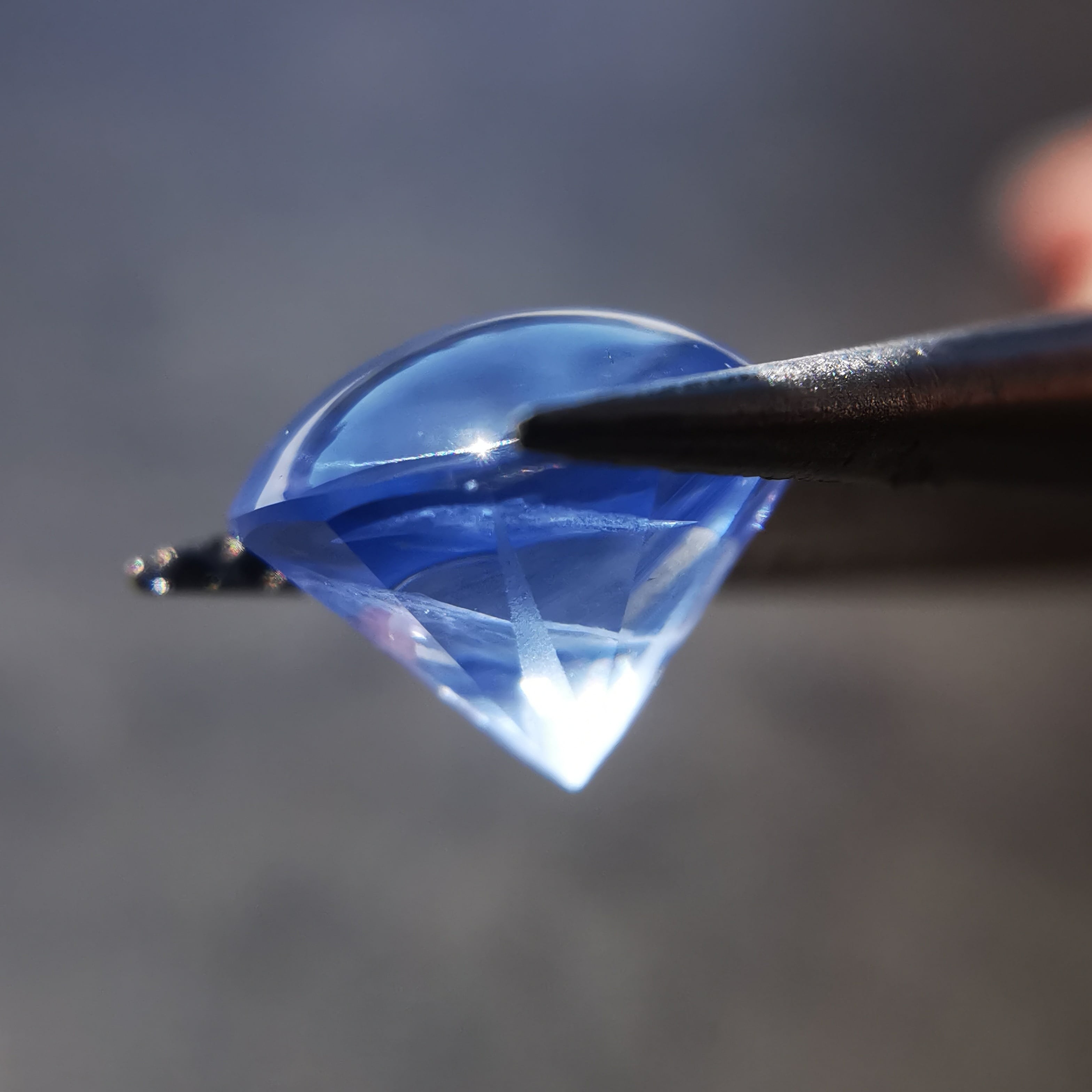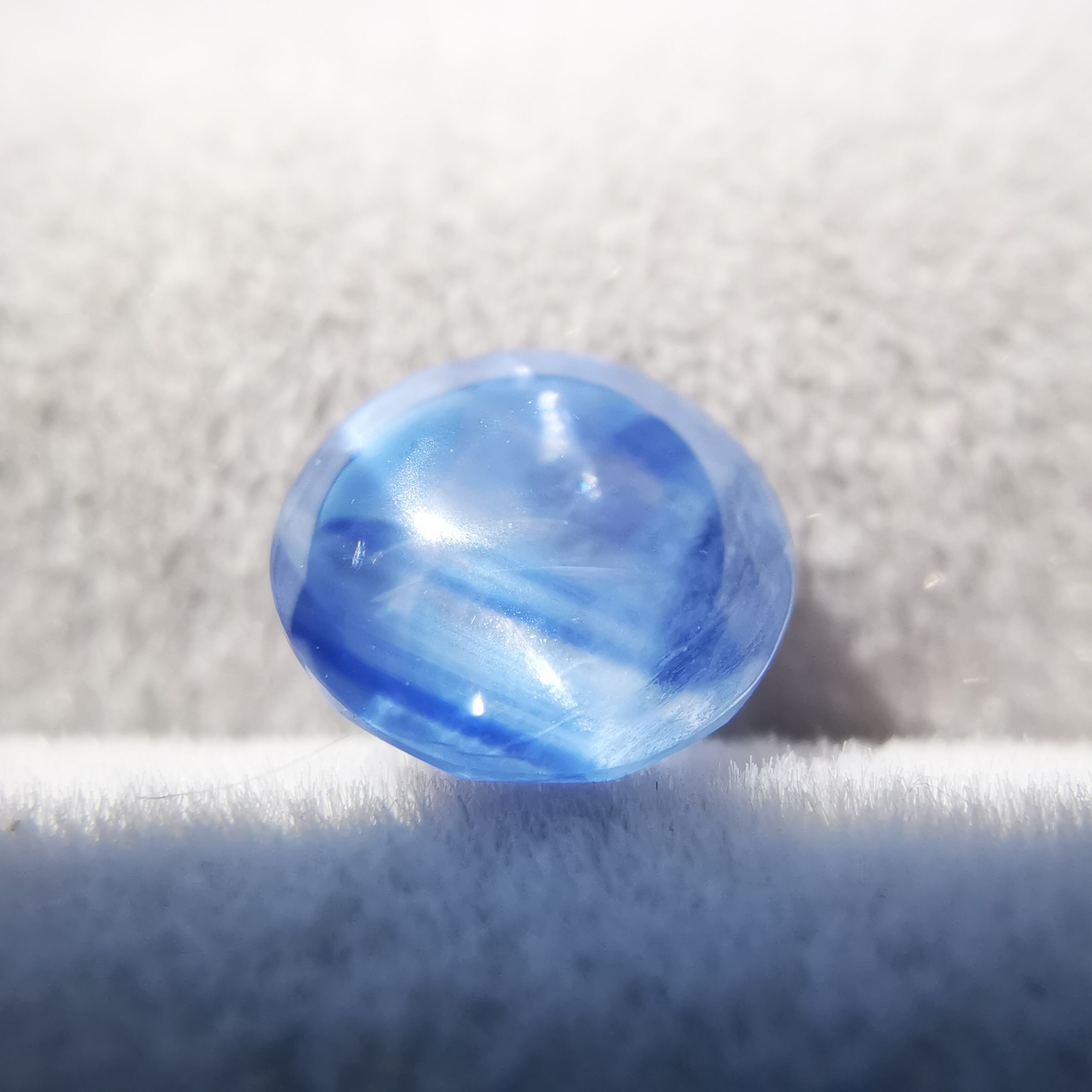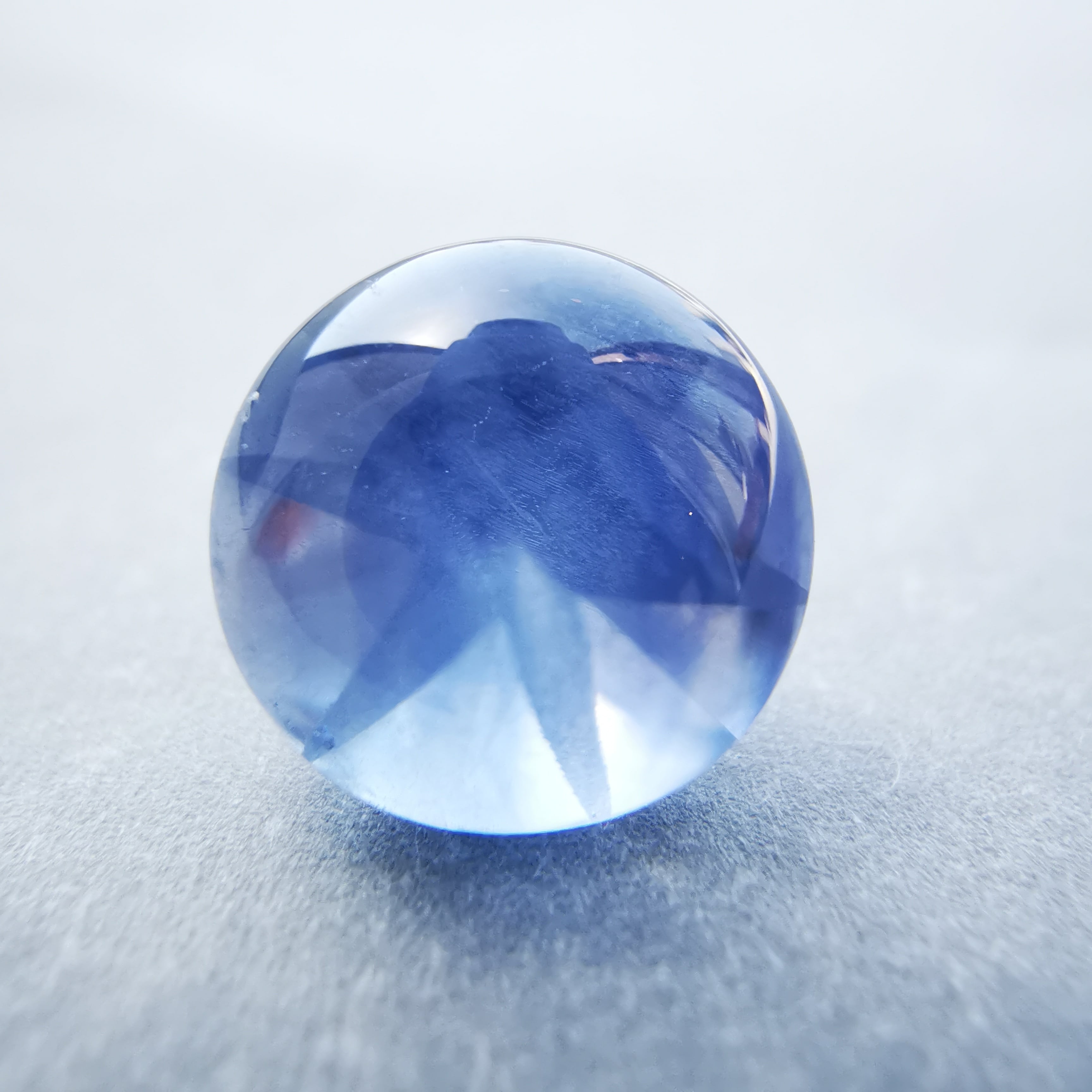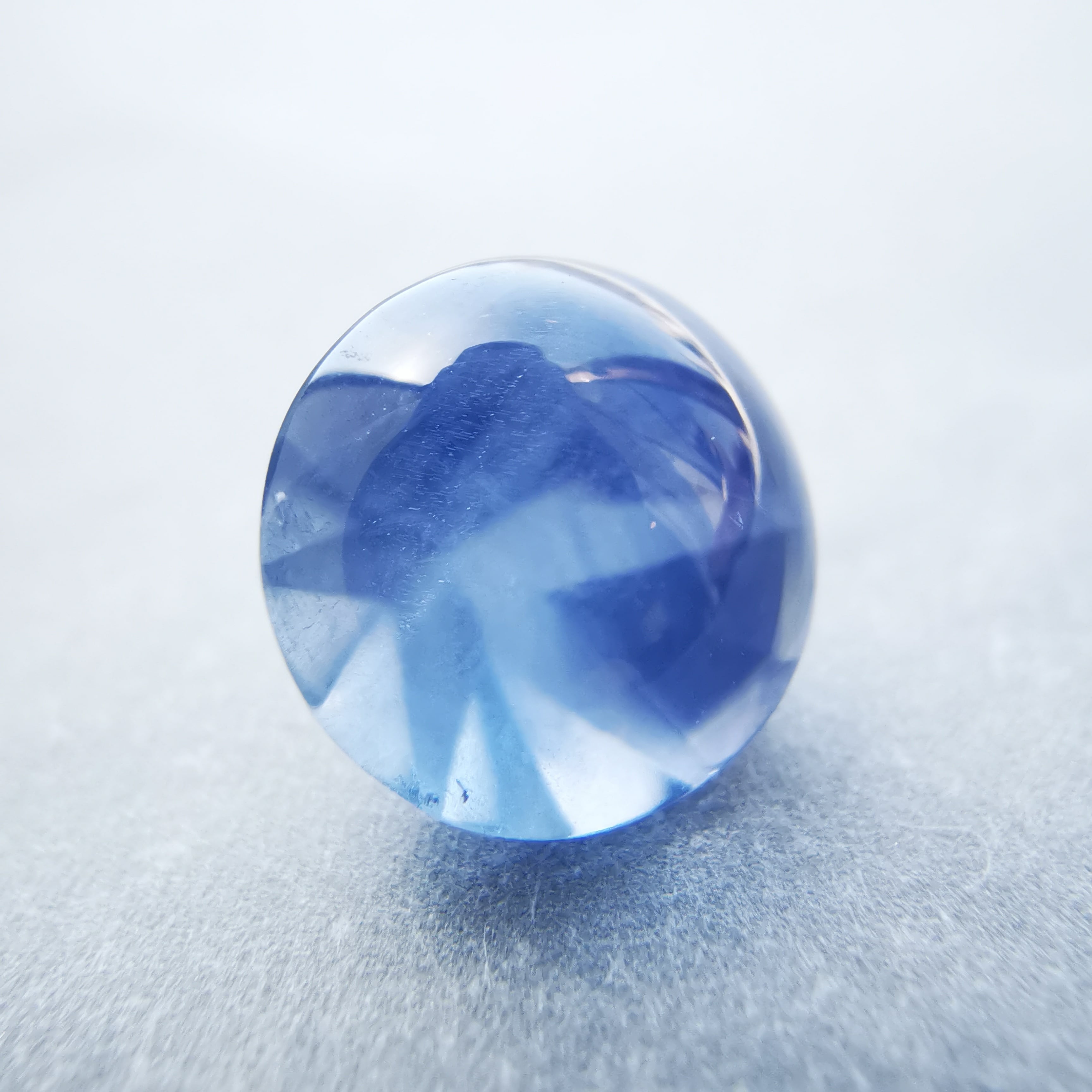 スターサファイアではないのに、元々カボションカットだったのがちょっと珍しく、ぷるんつるんとした形がなんとも愛らしく、そこを活かしてバフトップにリカットしました。