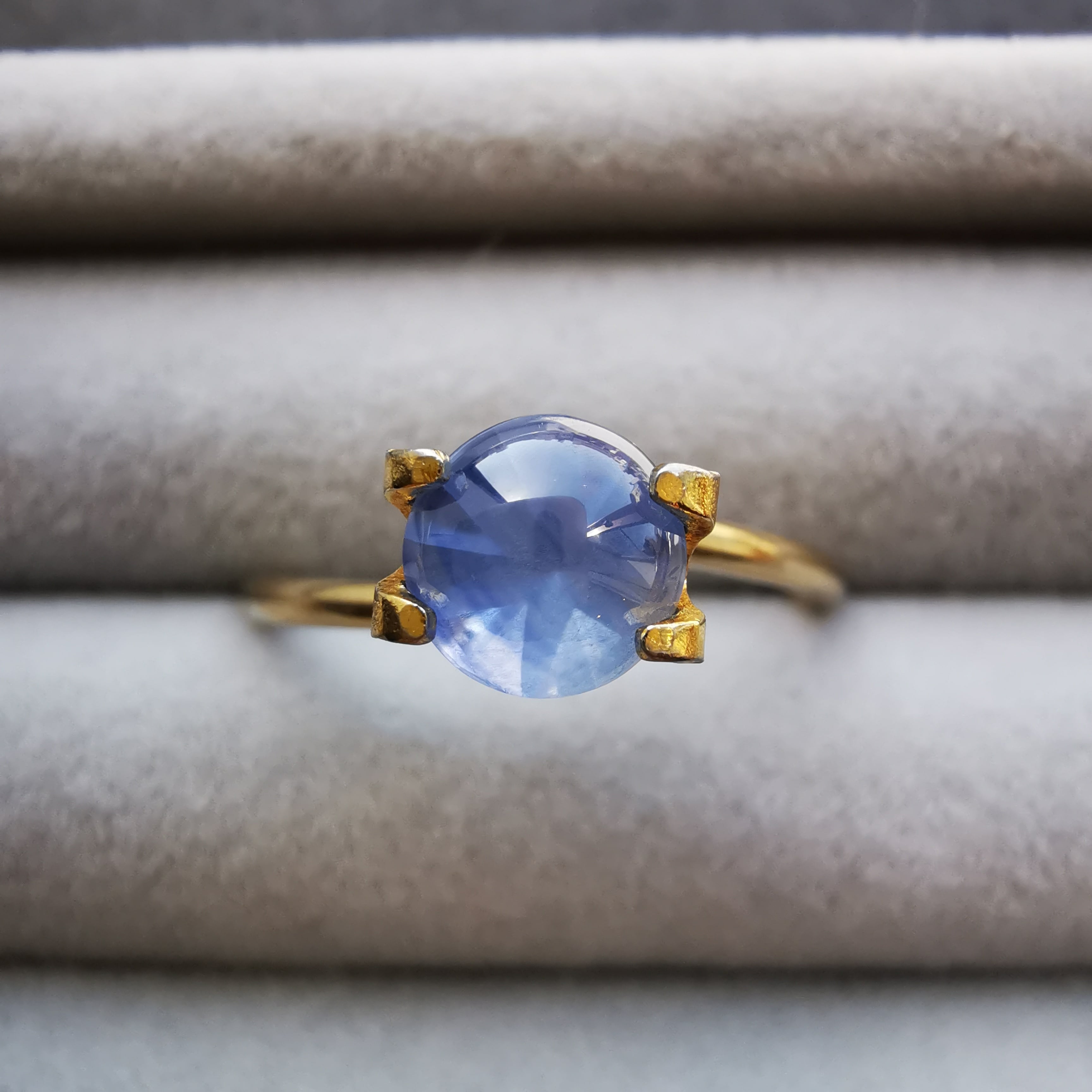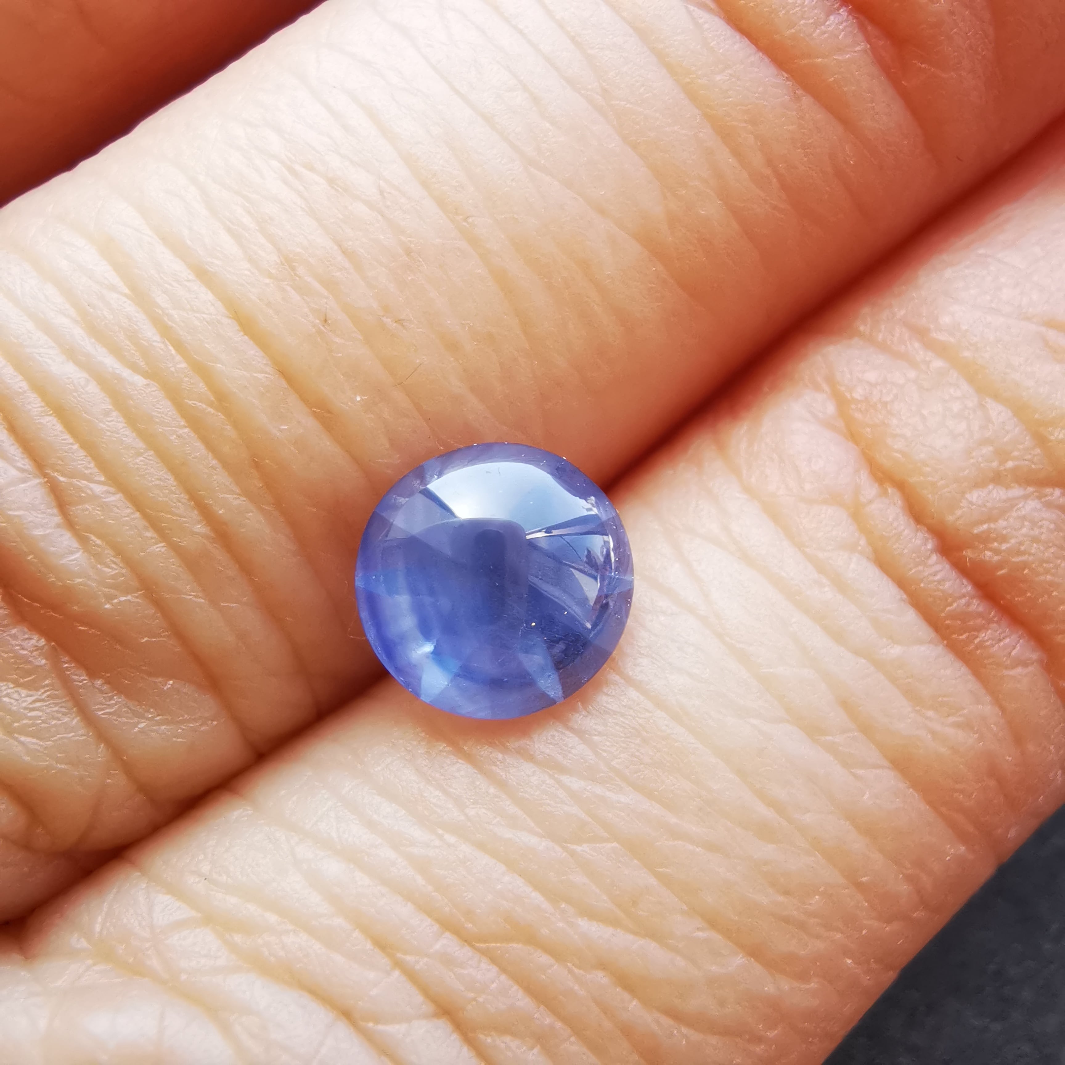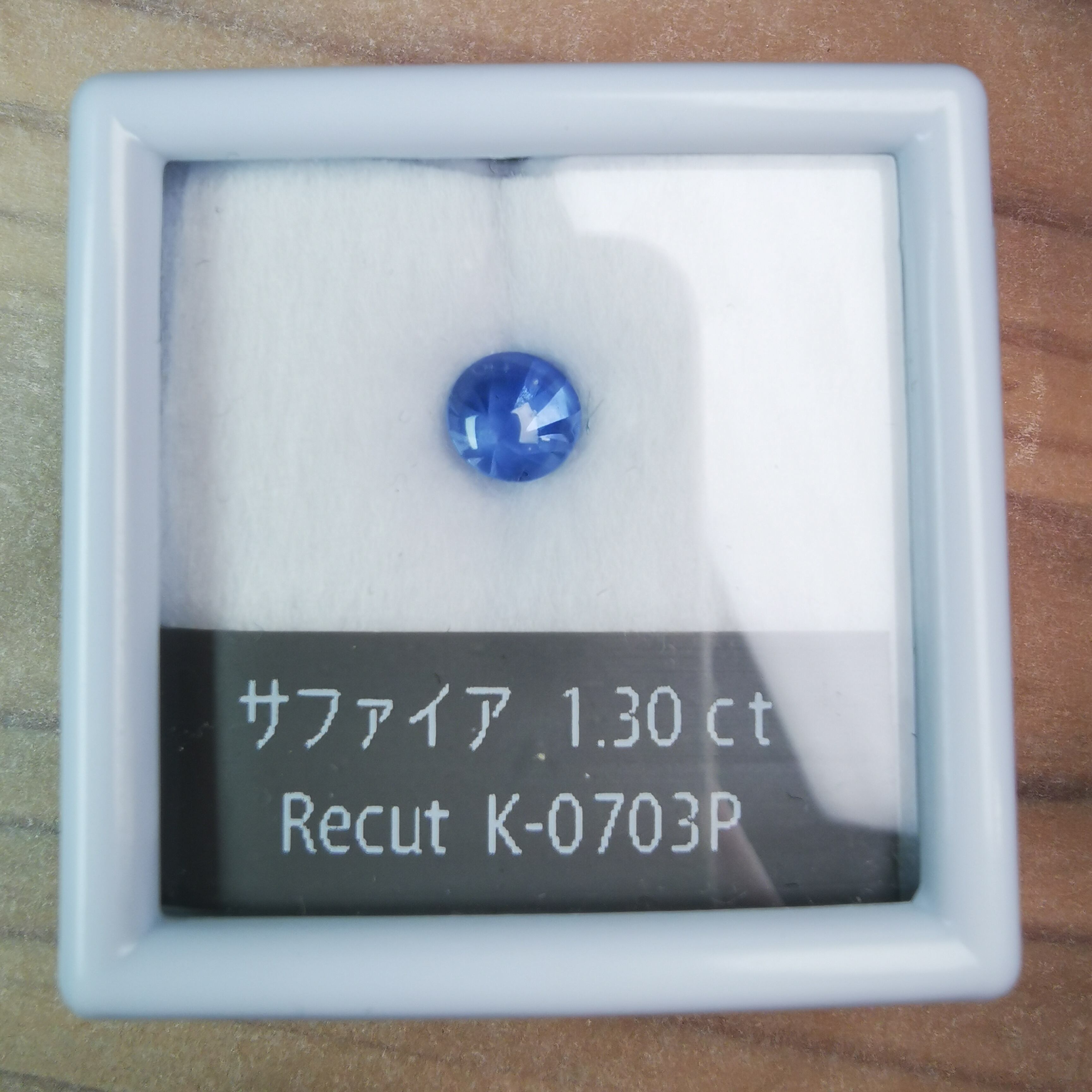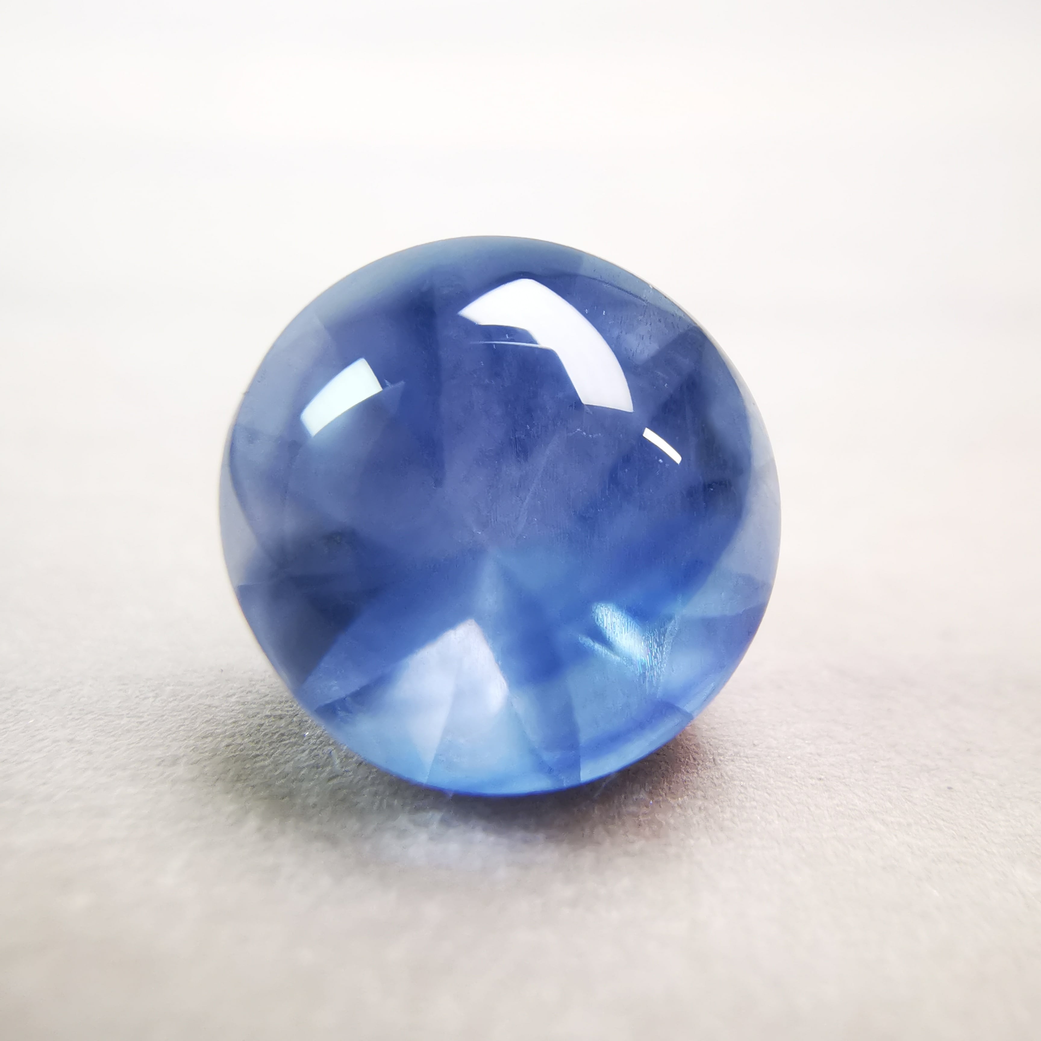 スターサファイアではないのに、元々カボションカットだったのがちょっと珍しく、ぷるんつるんとした形がなんとも愛らしく、そこを活かしてバフトップにリカットしました。