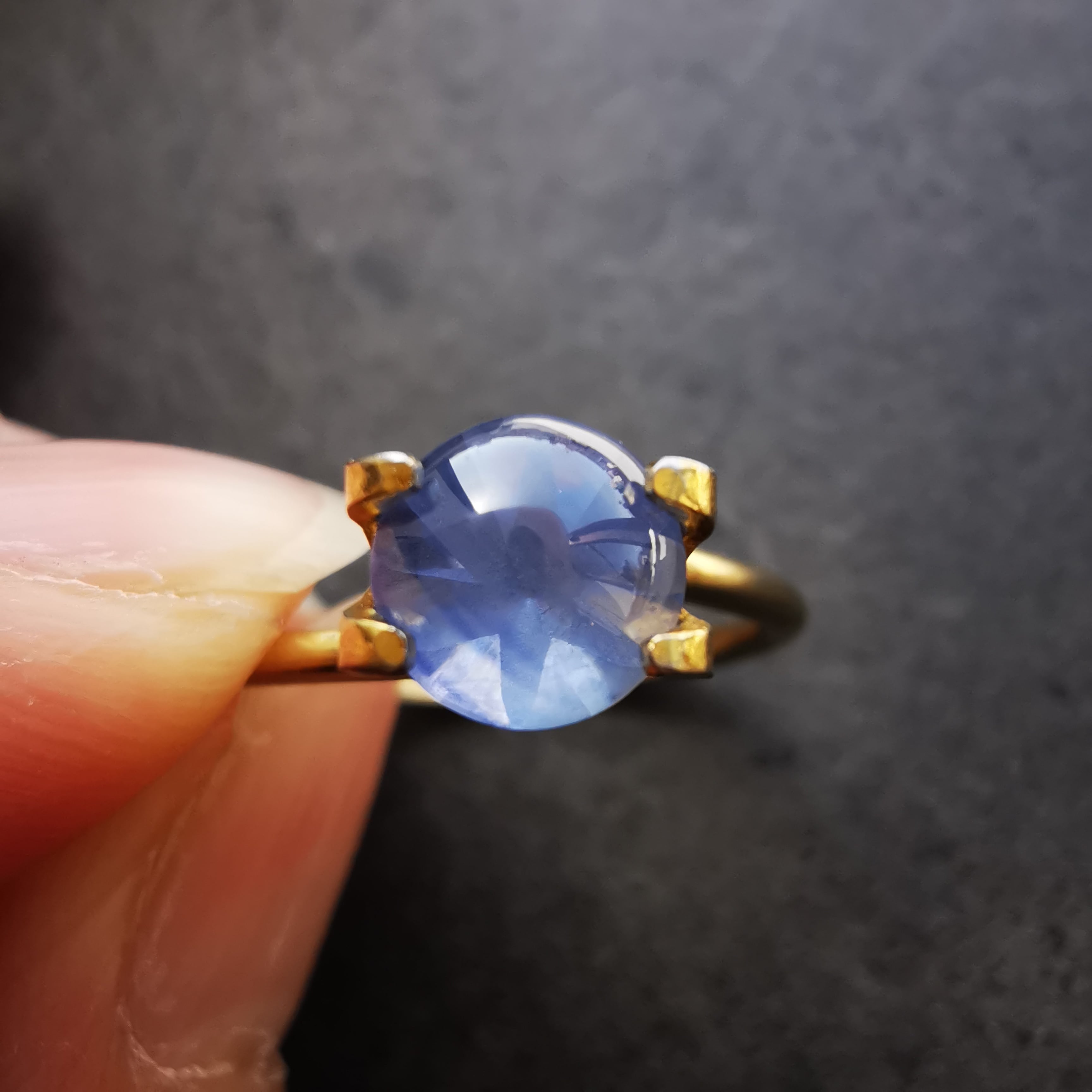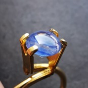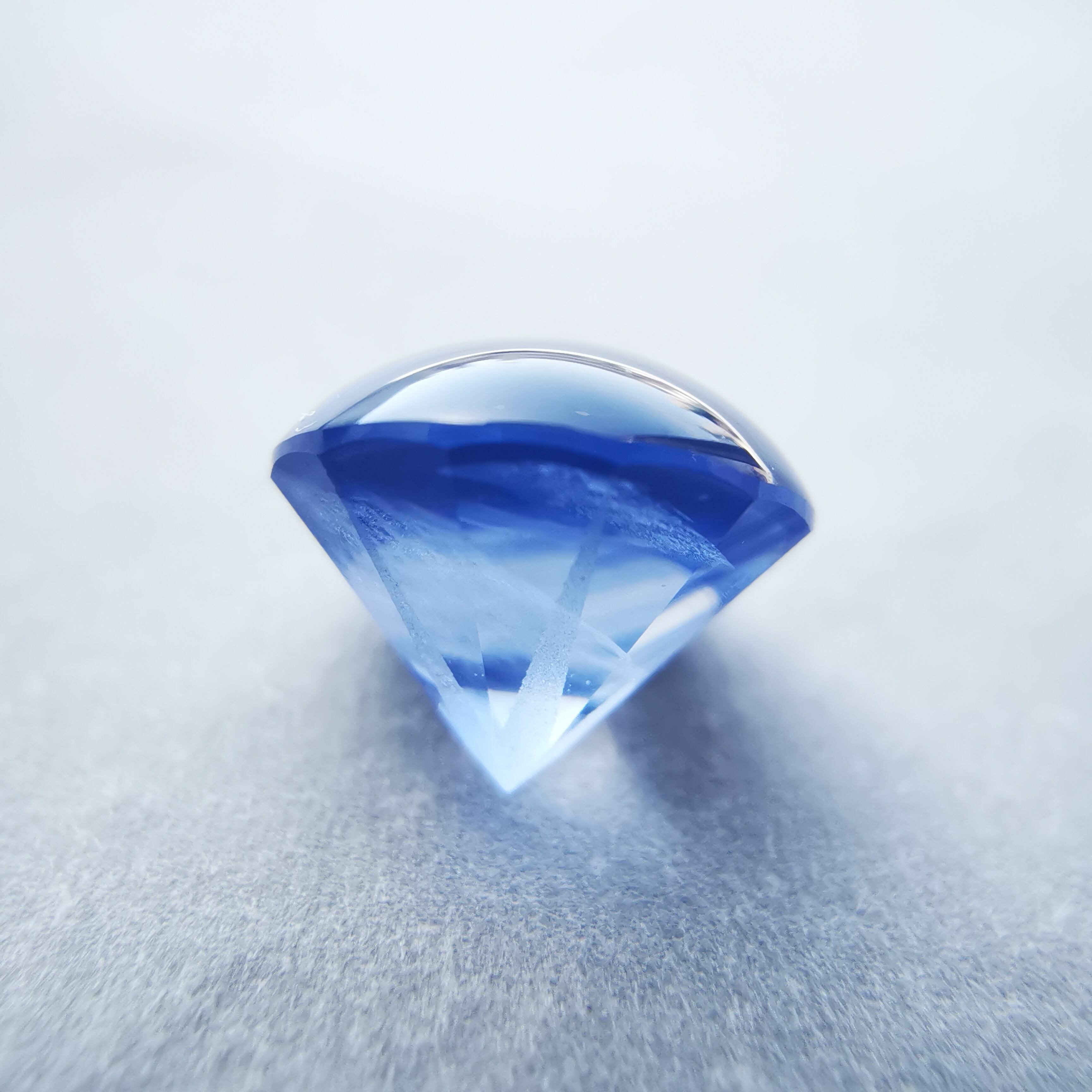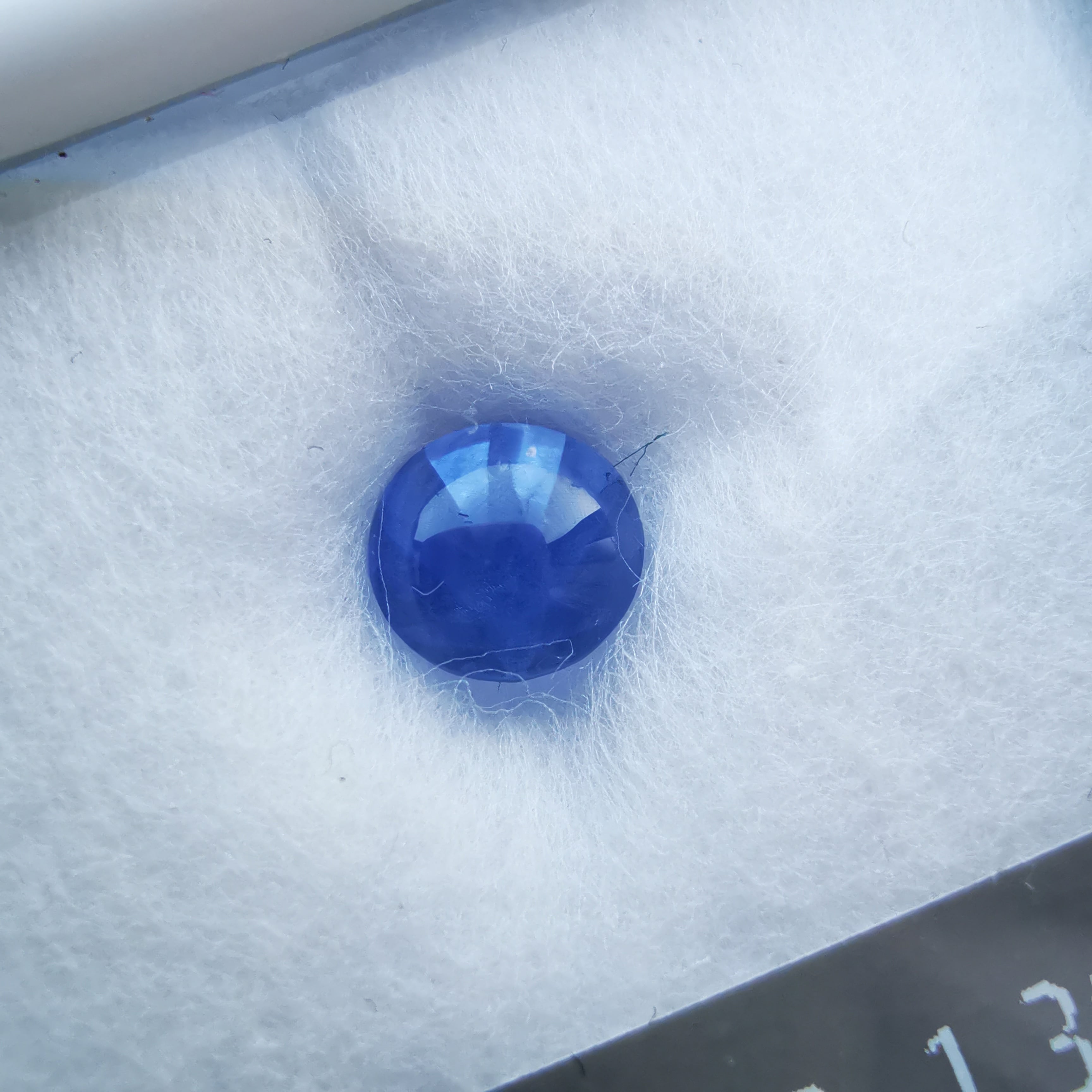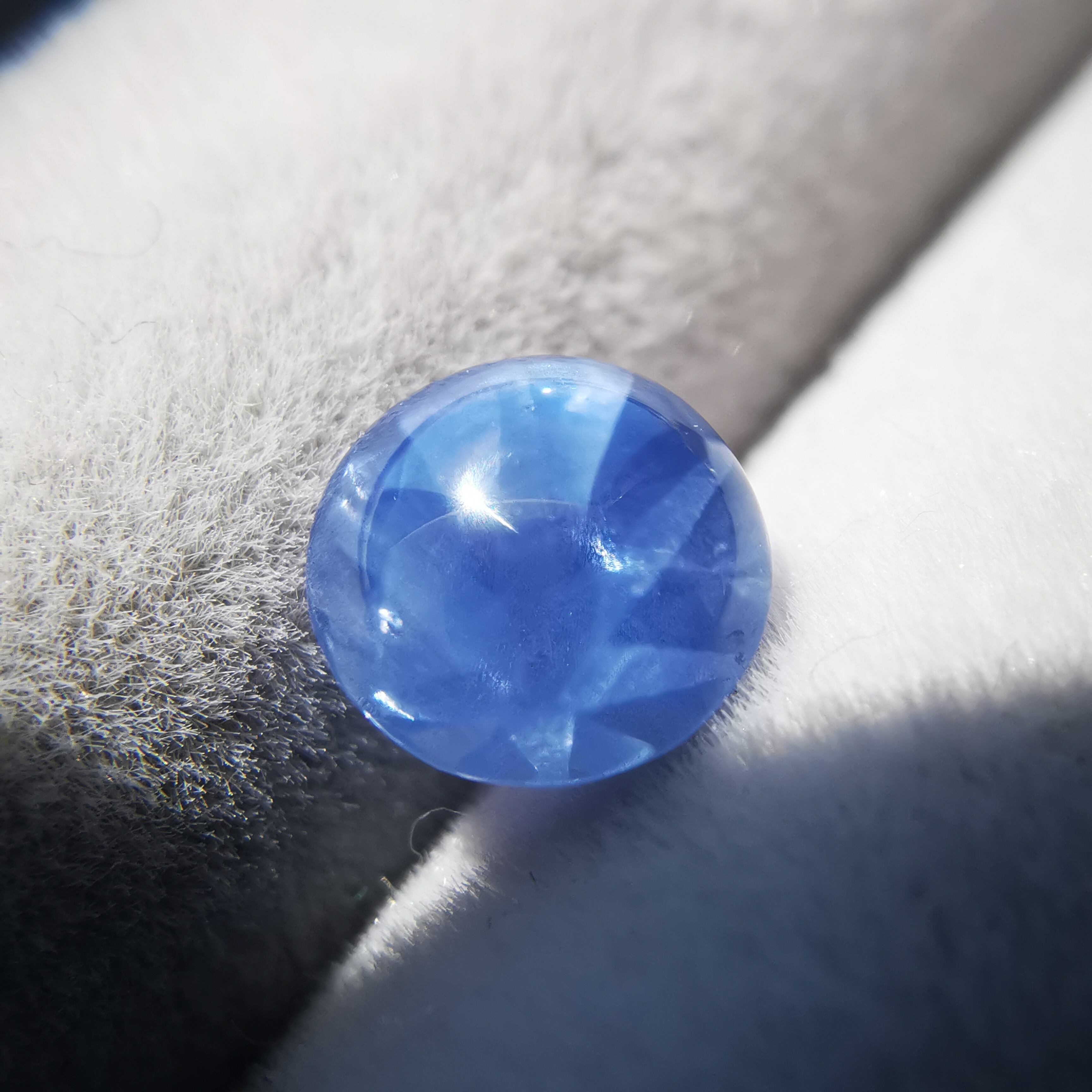 スターサファイアではないのに、元々カボションカットだったのがちょっと珍しく、ぷるんつるんとした形がなんとも愛らしく、そこを活かしてバフトップにリカットしました。