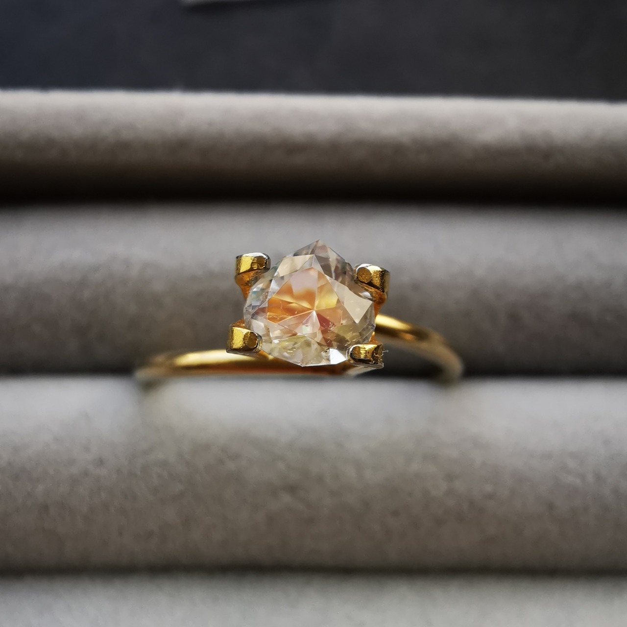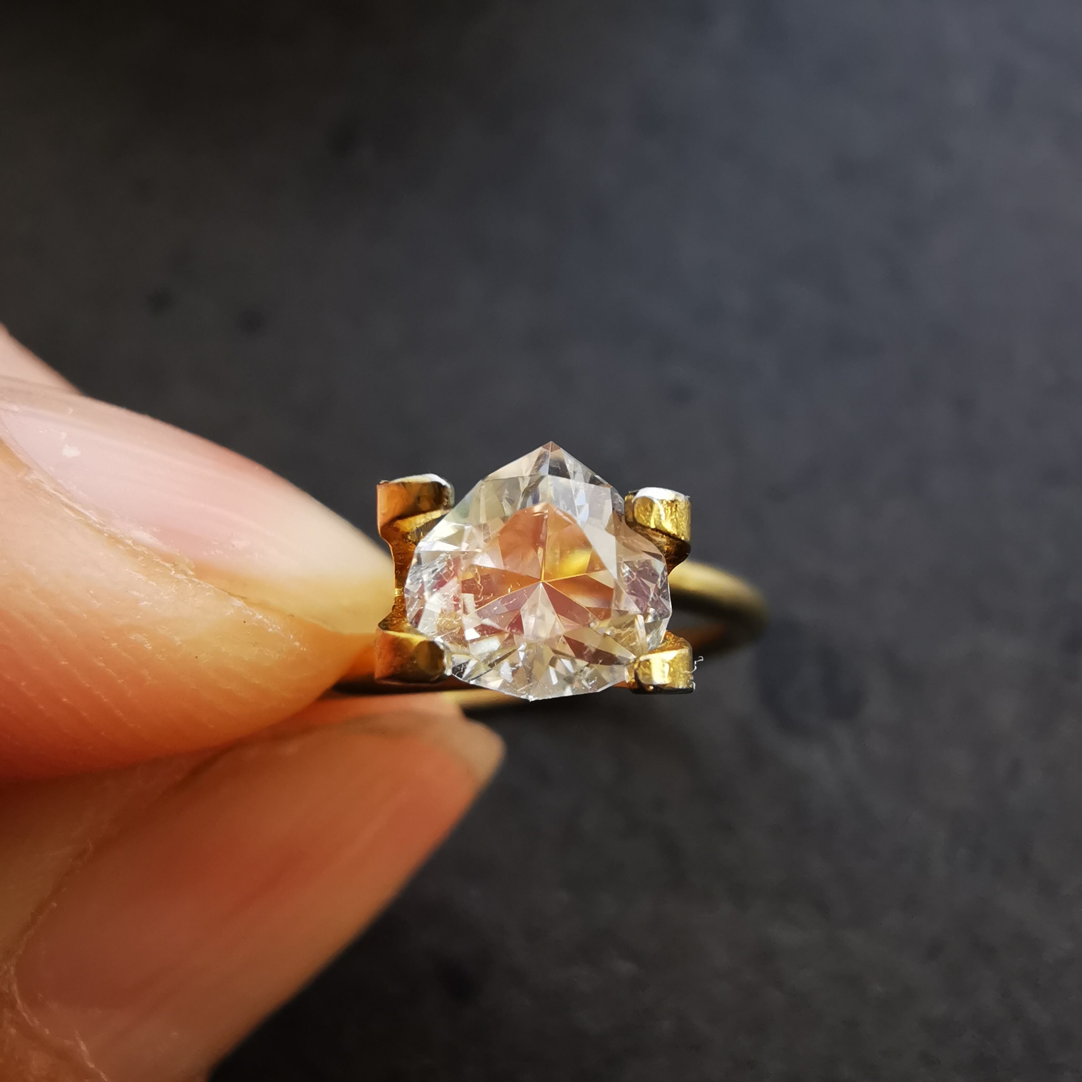 三角おにぎりのような、ころんとしたトリオンカットがとびきりキュートな一石です。