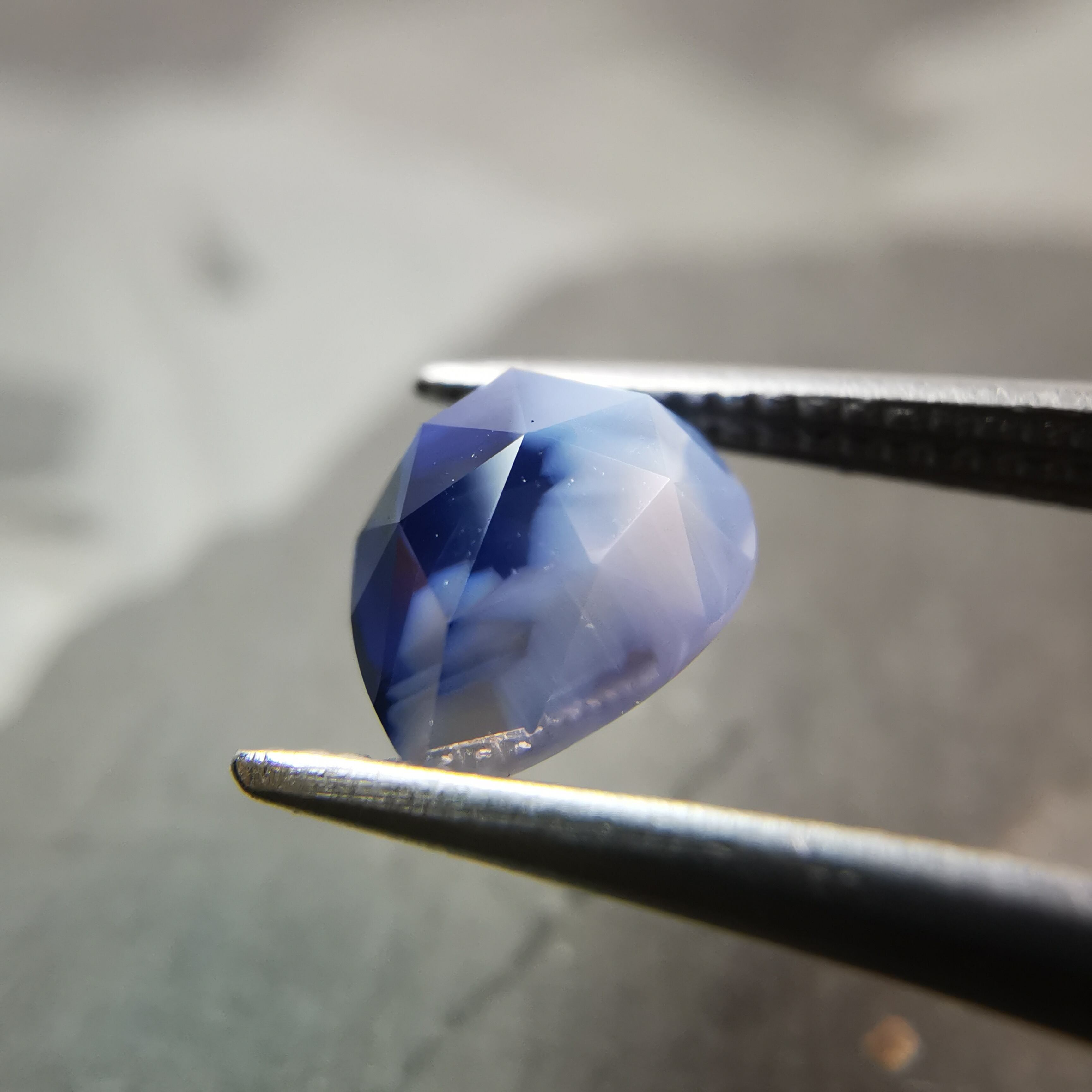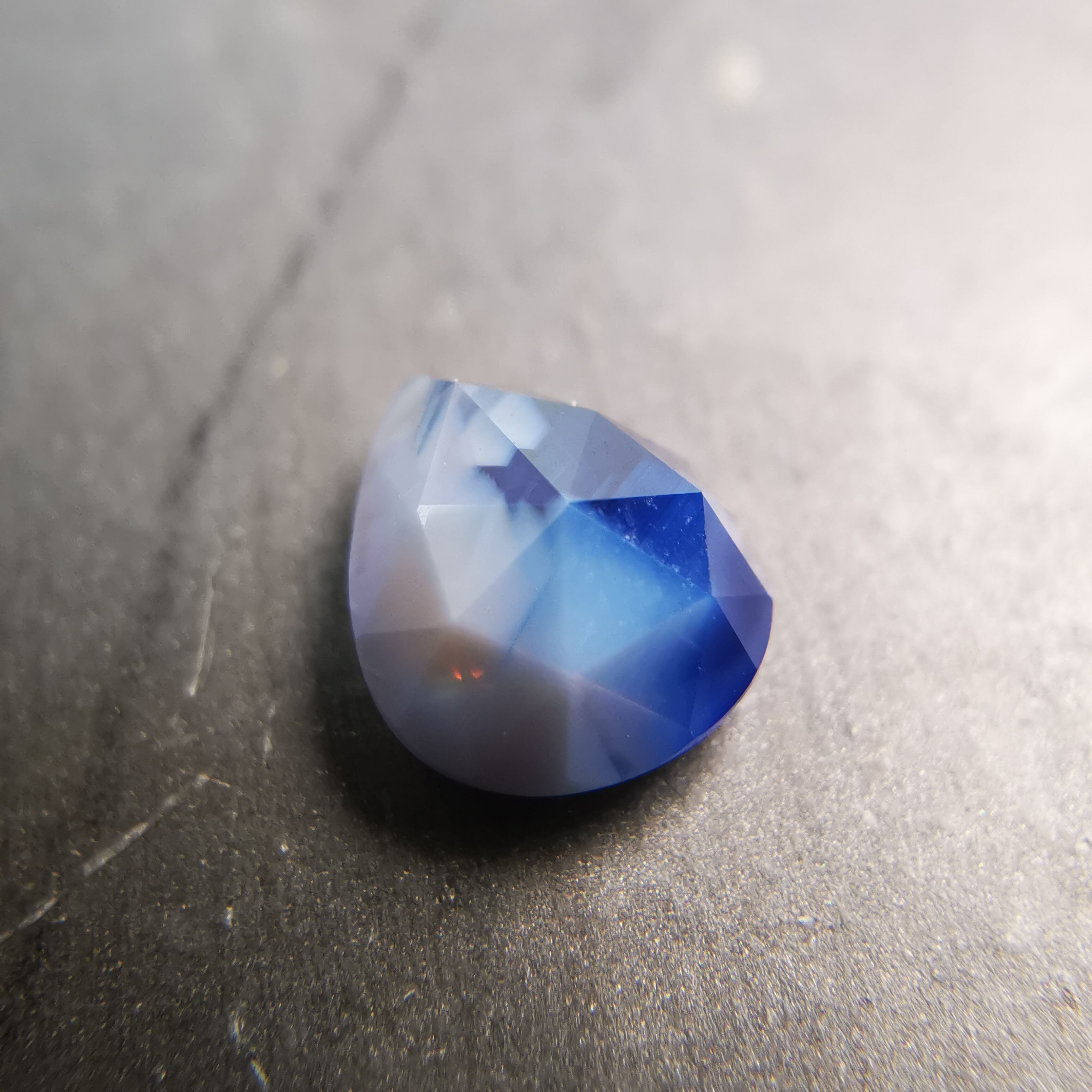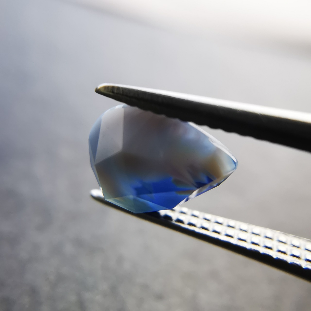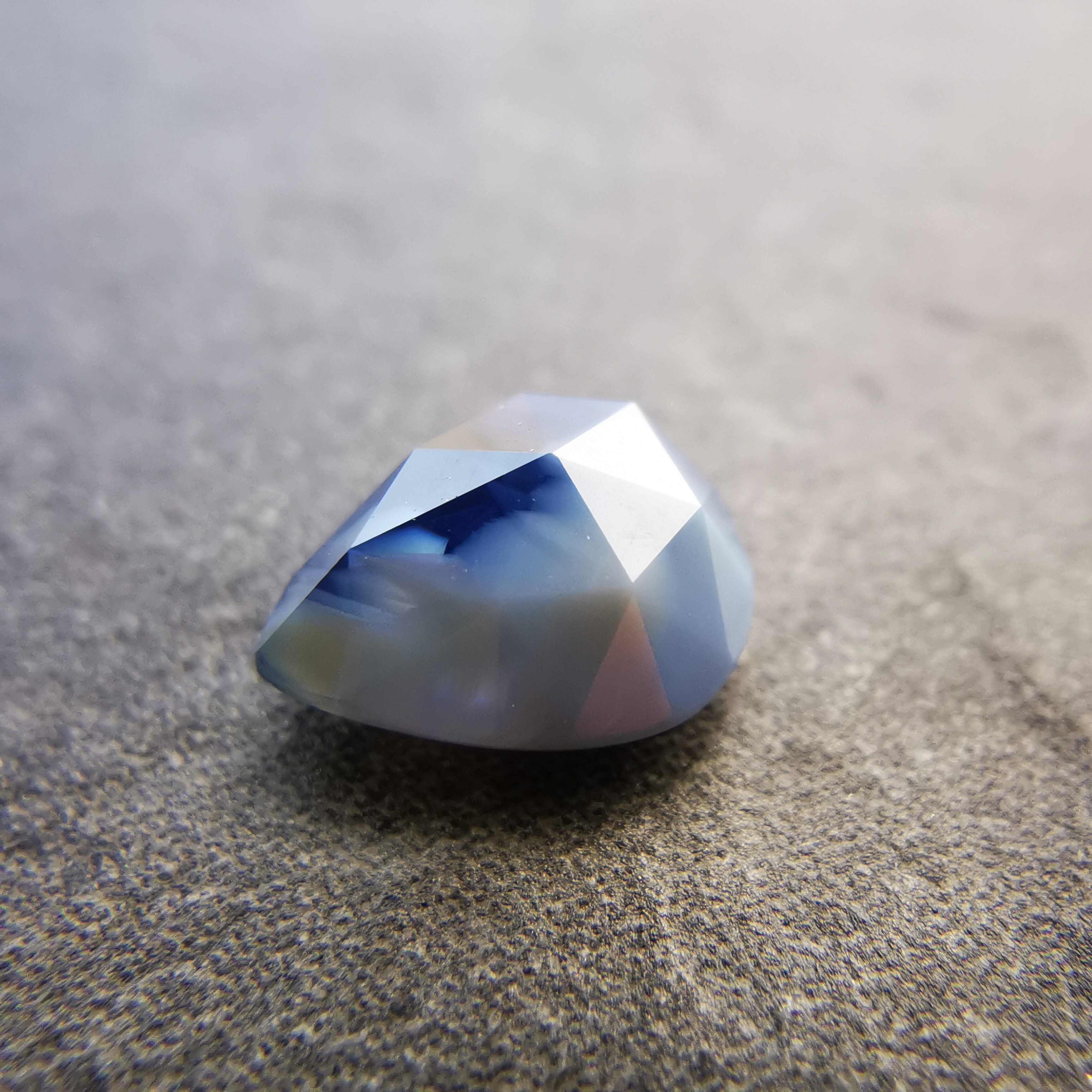 濃い紫みの青/瑠璃紺色と、青みの明るい灰色/スカイグレーのバイカラーのサファイアです。