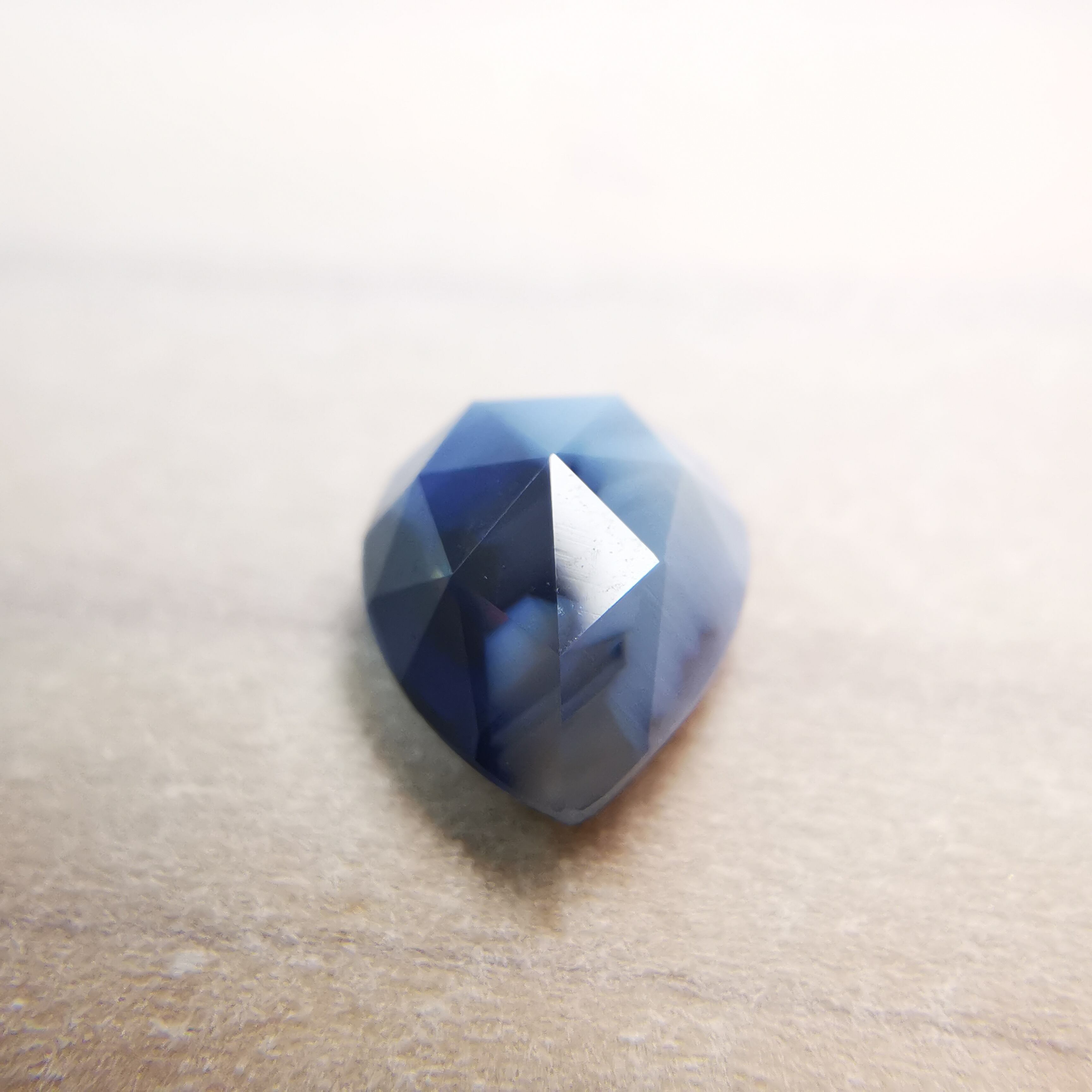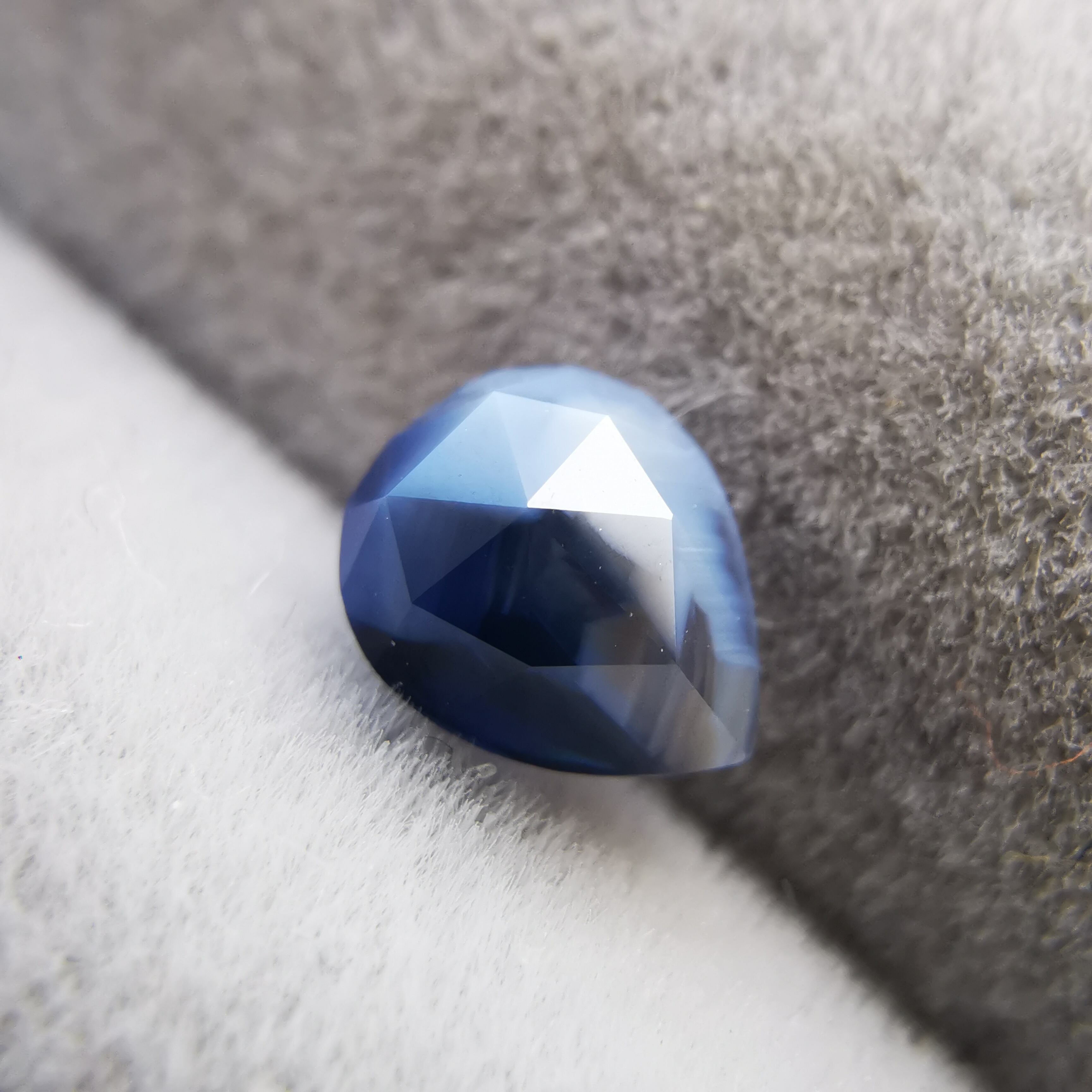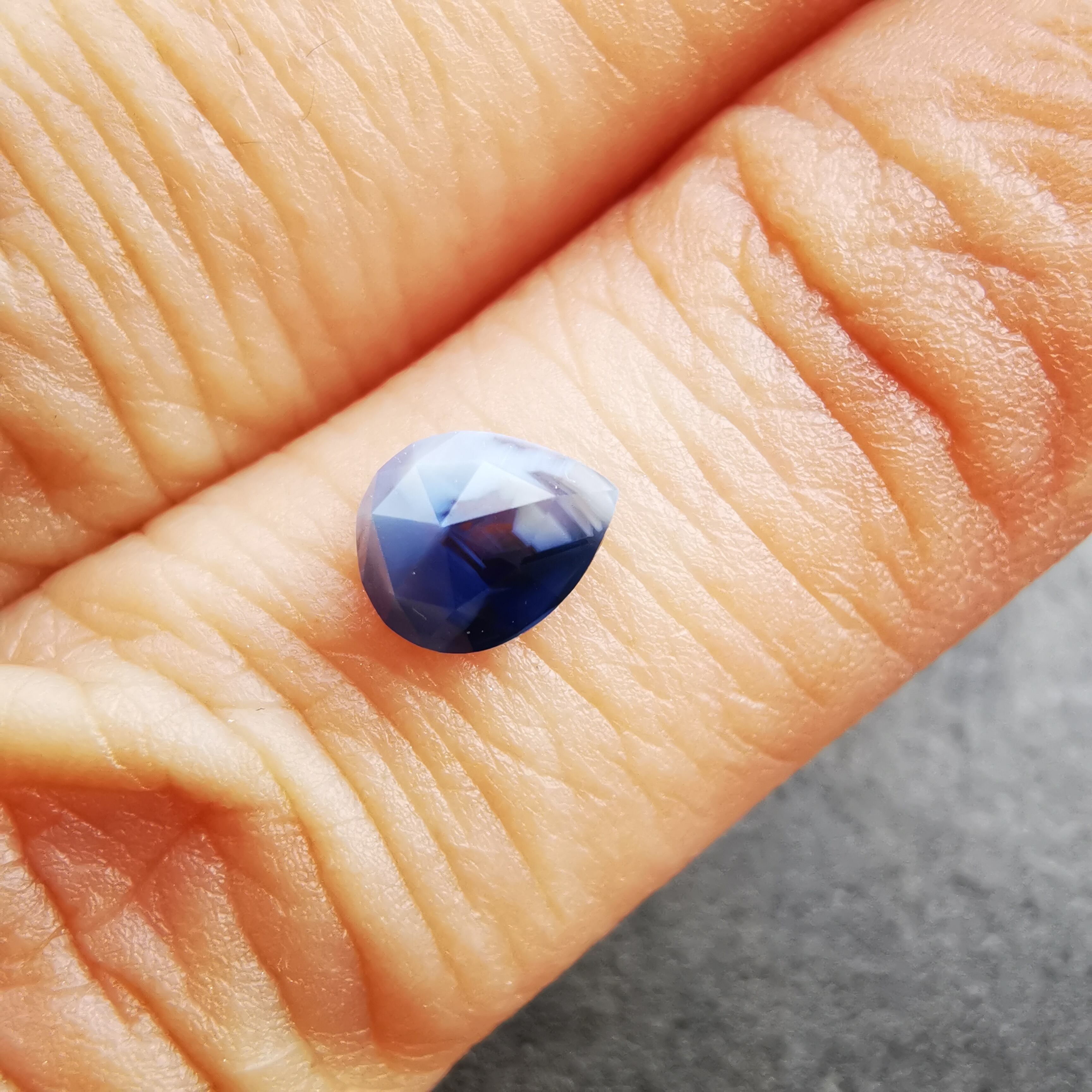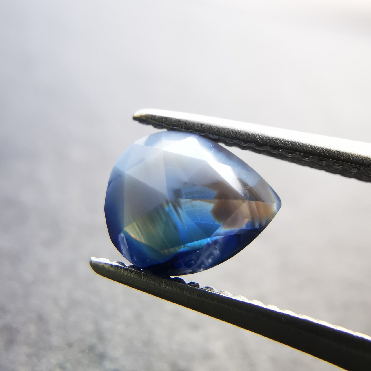 濃い紫みの青/瑠璃紺色と、青みの明るい灰色/スカイグレーのバイカラーのサファイアです。