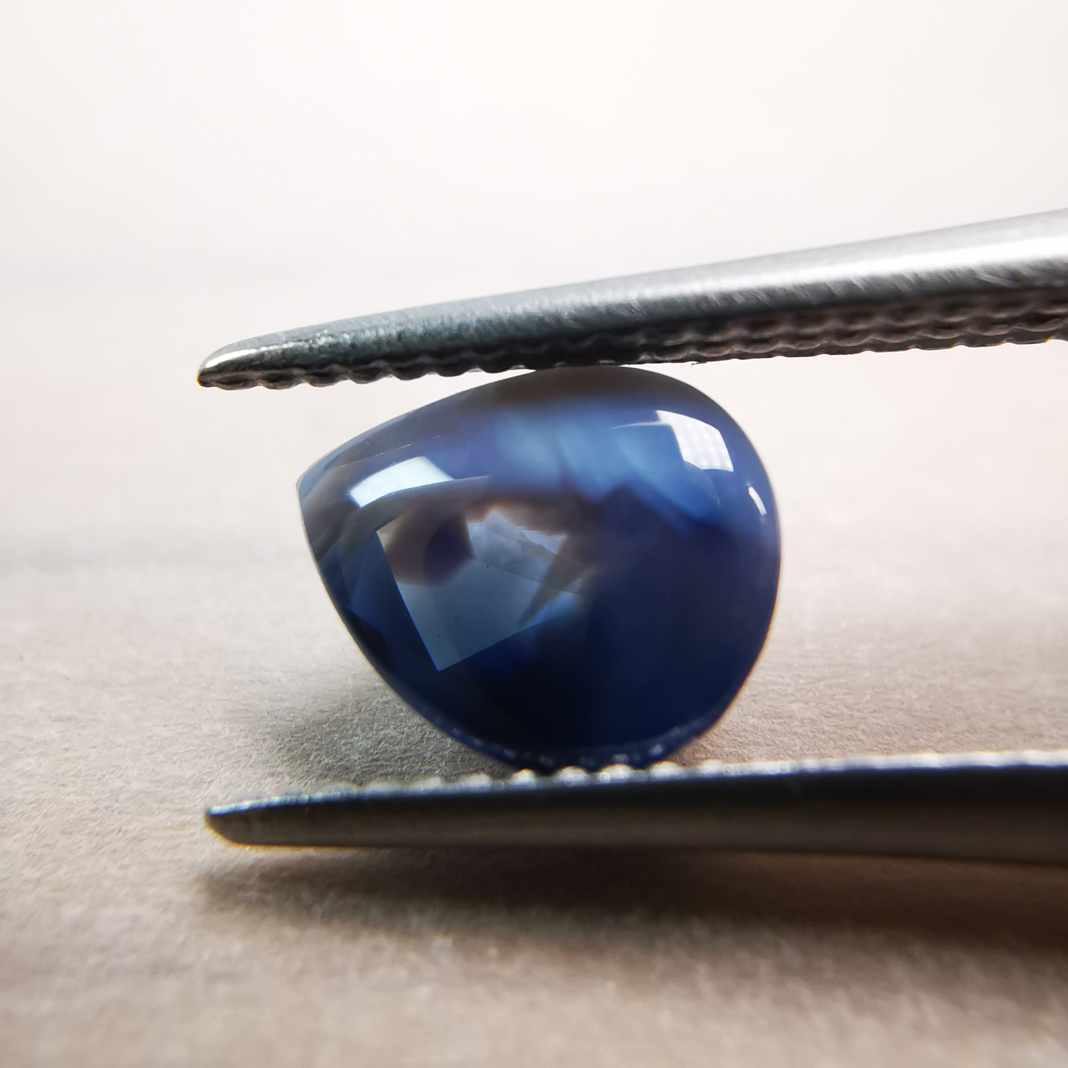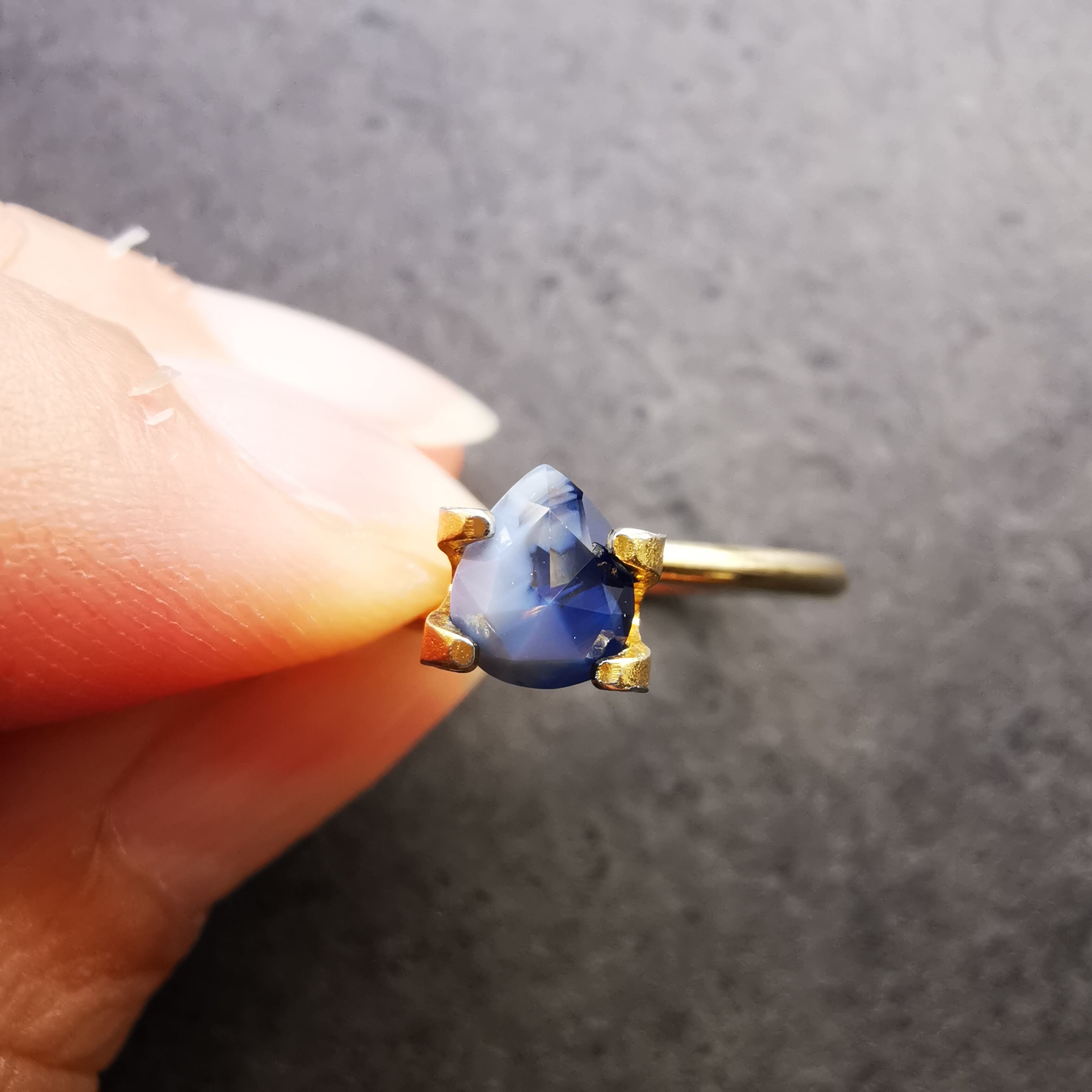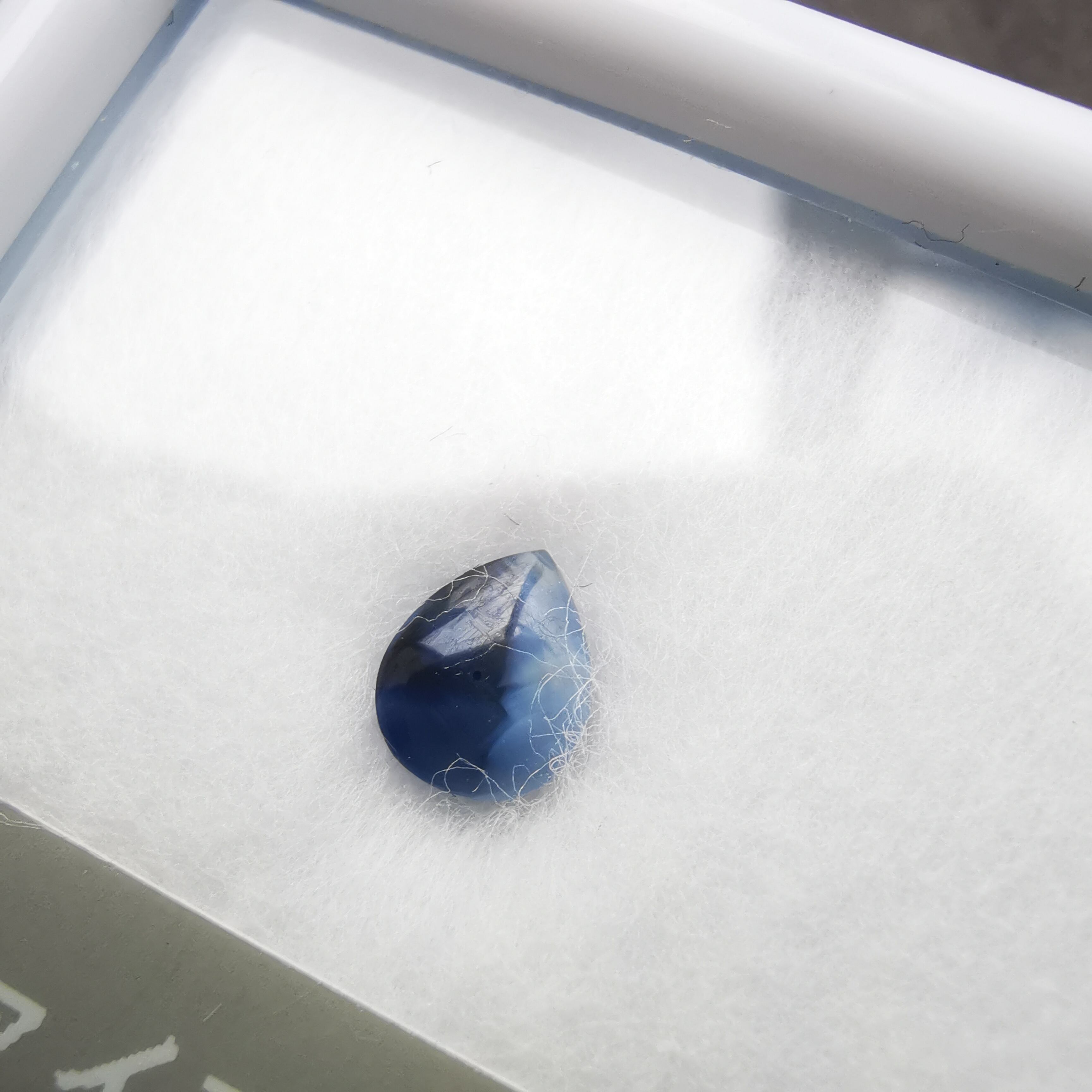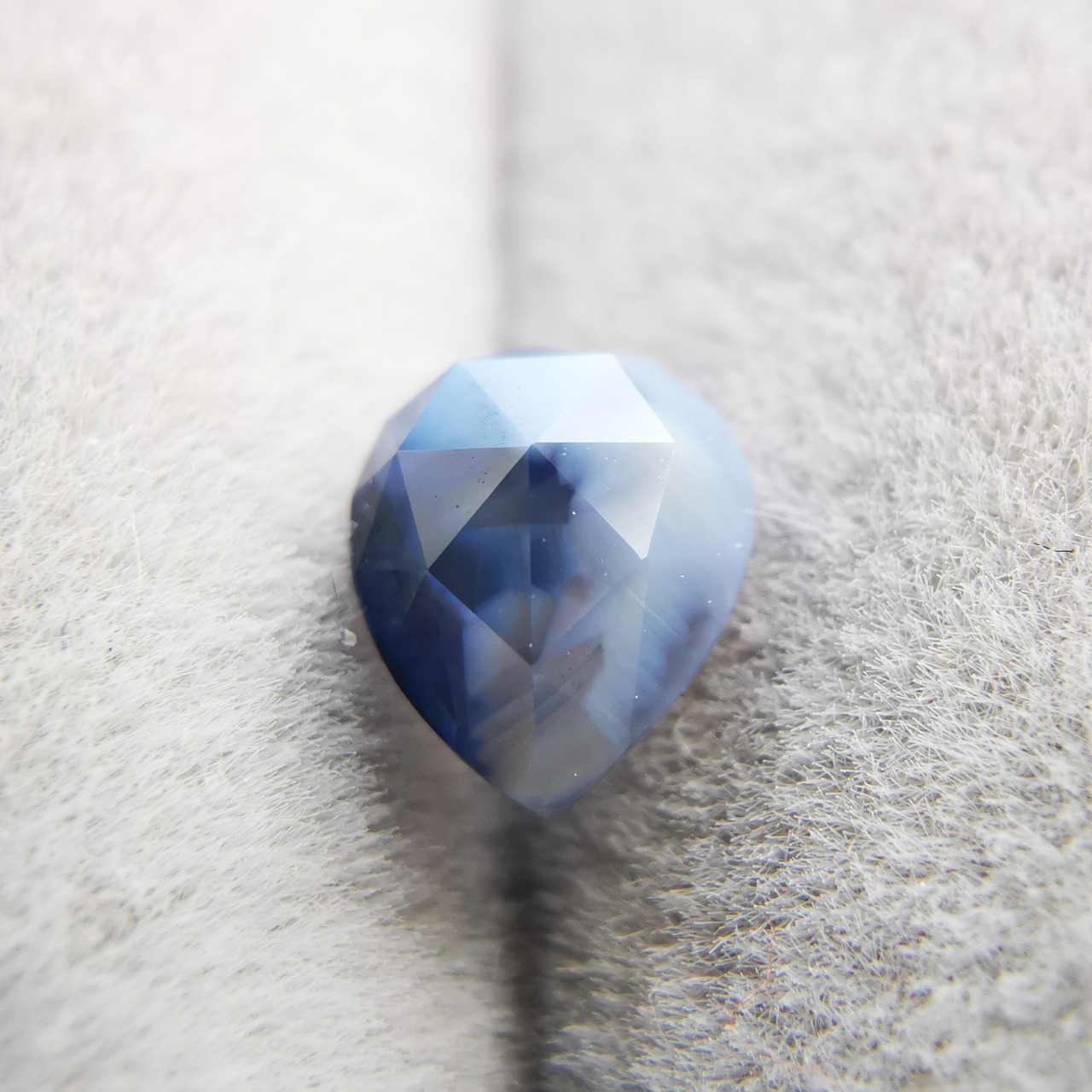 濃い紫みの青/瑠璃紺色と、青みの明るい灰色/スカイグレーのバイカラーのサファイアです。