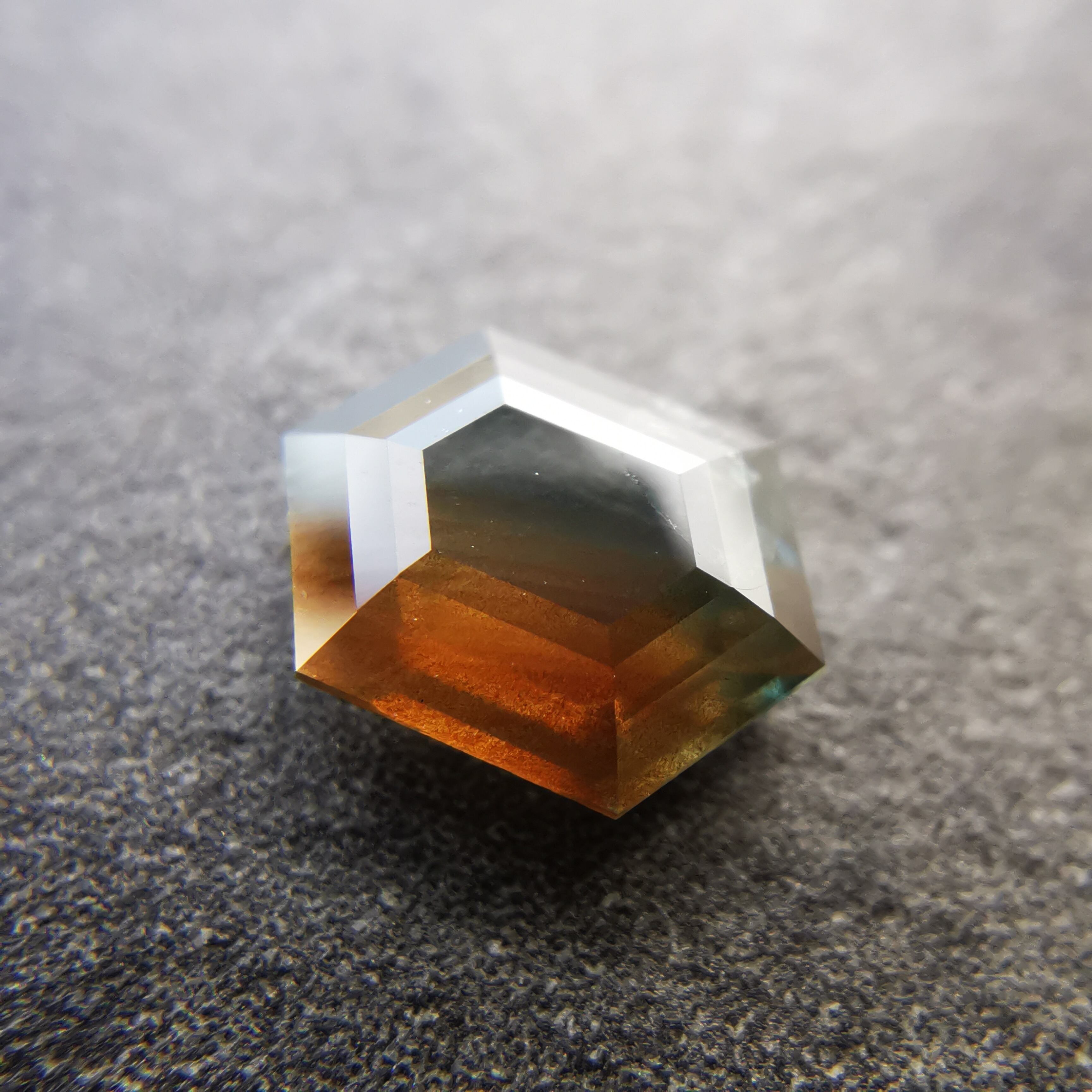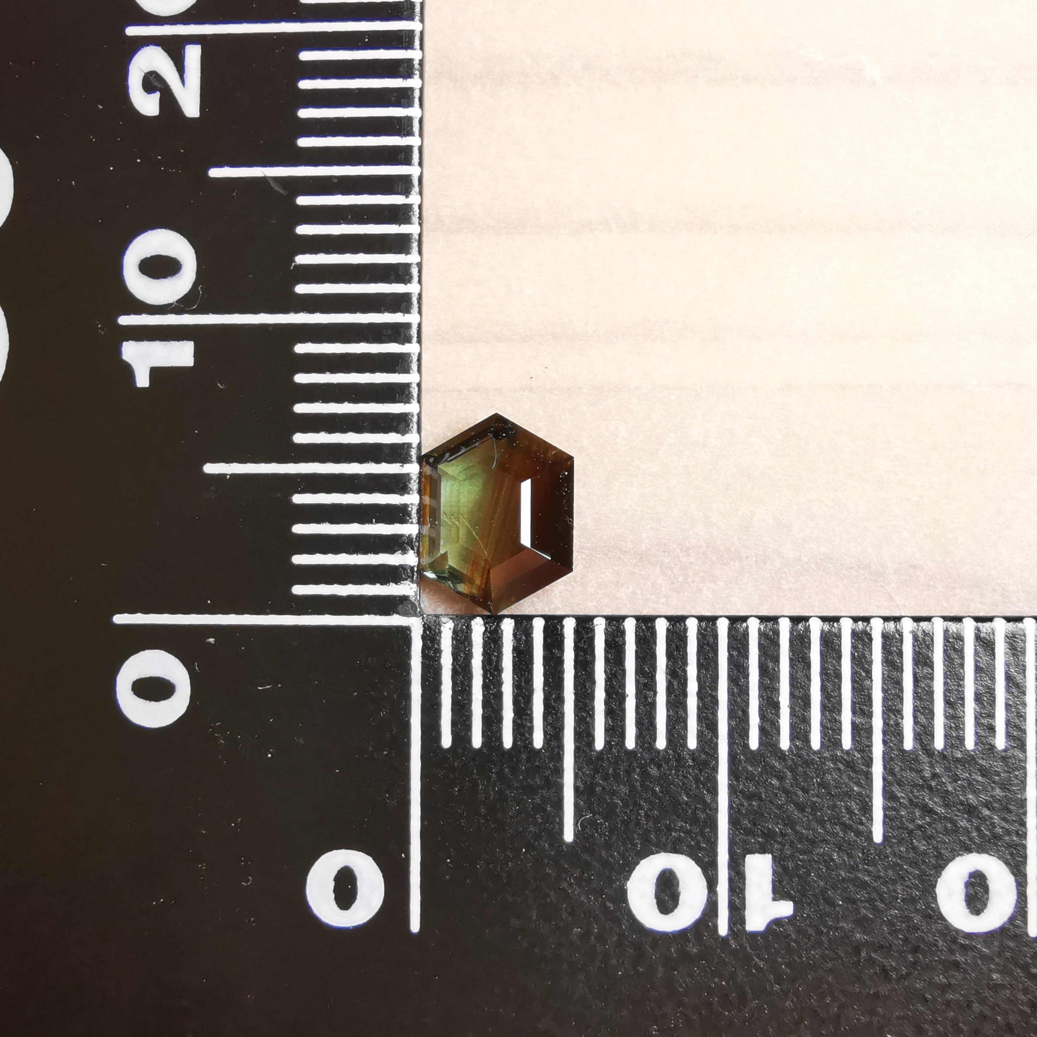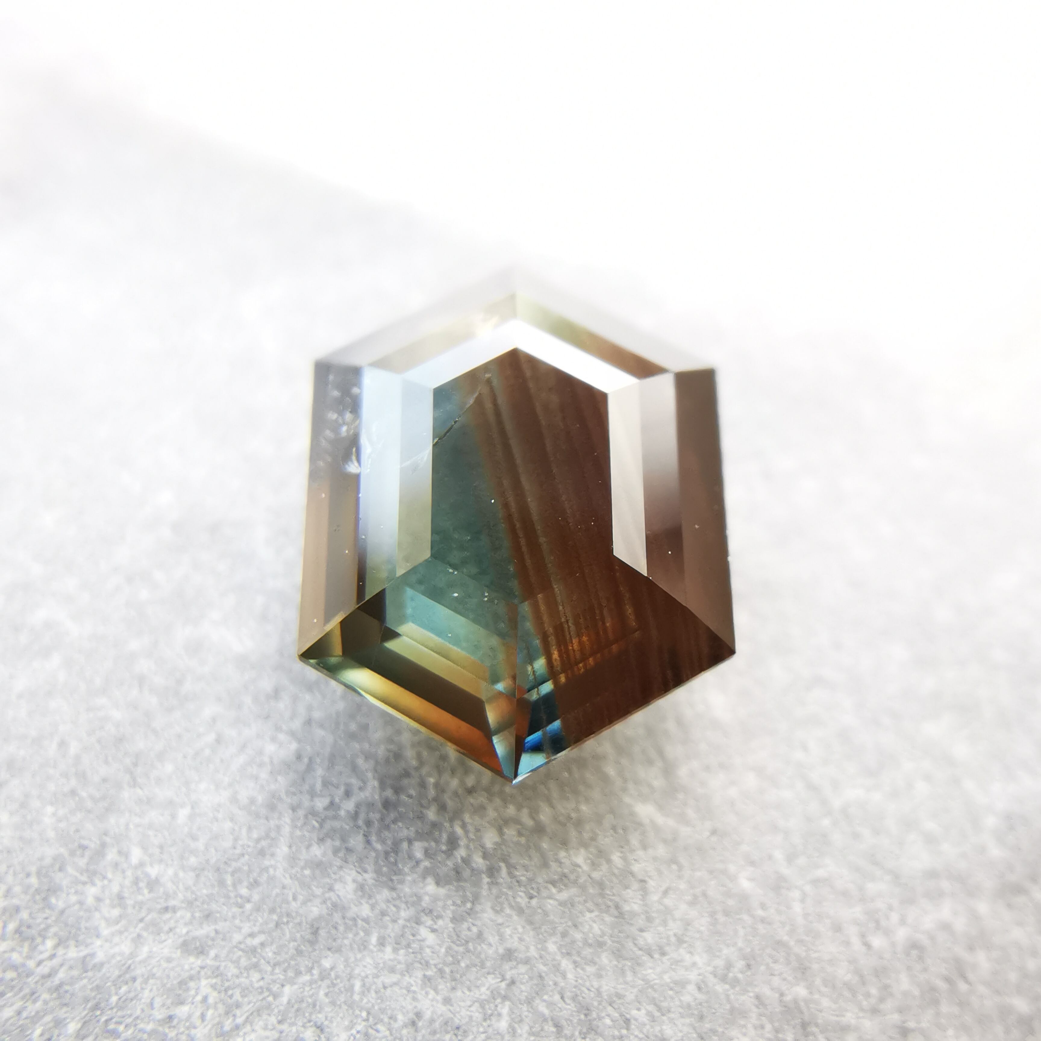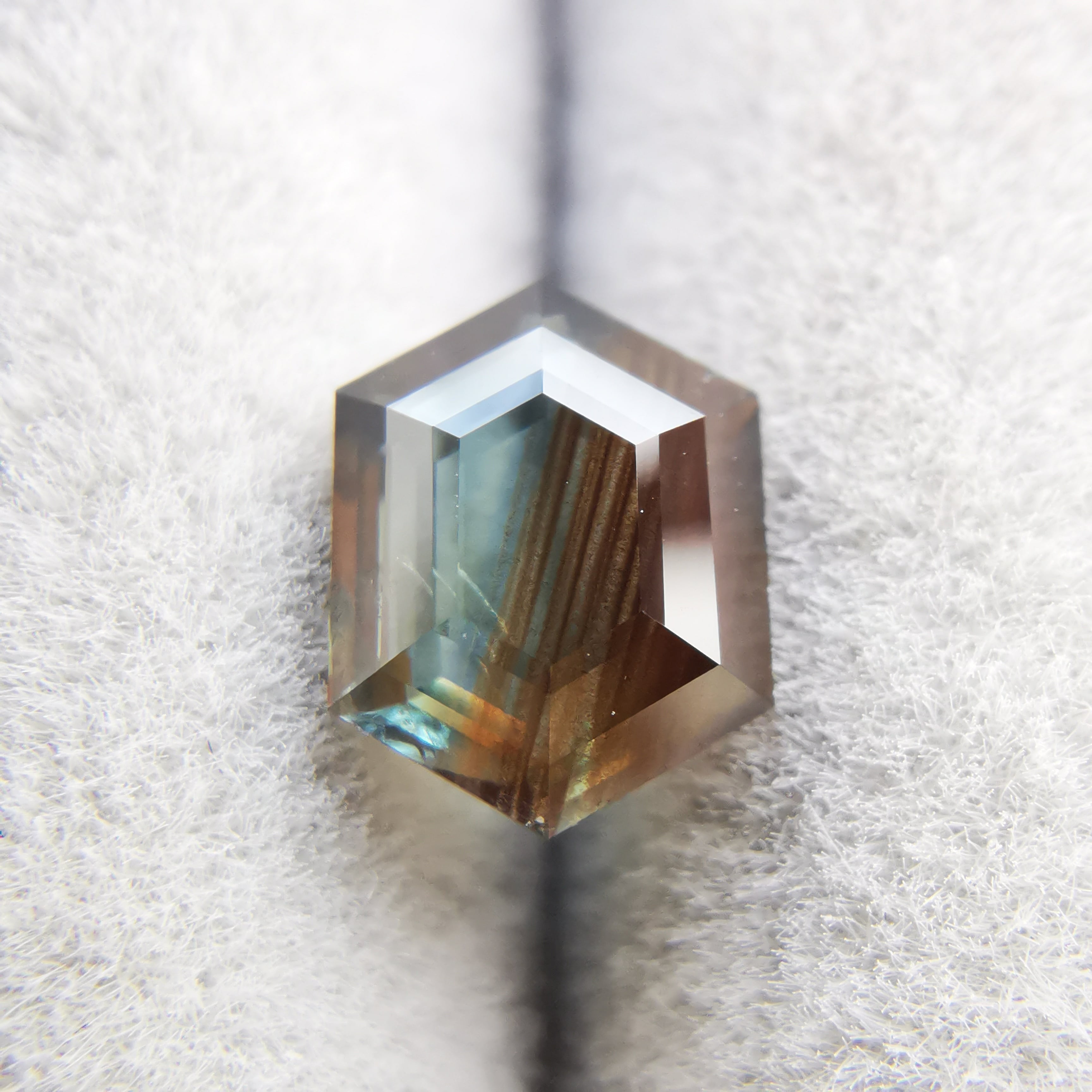 金色のシラーが入った、くすんだ緑みの青/錆納戸色のサファイアです。