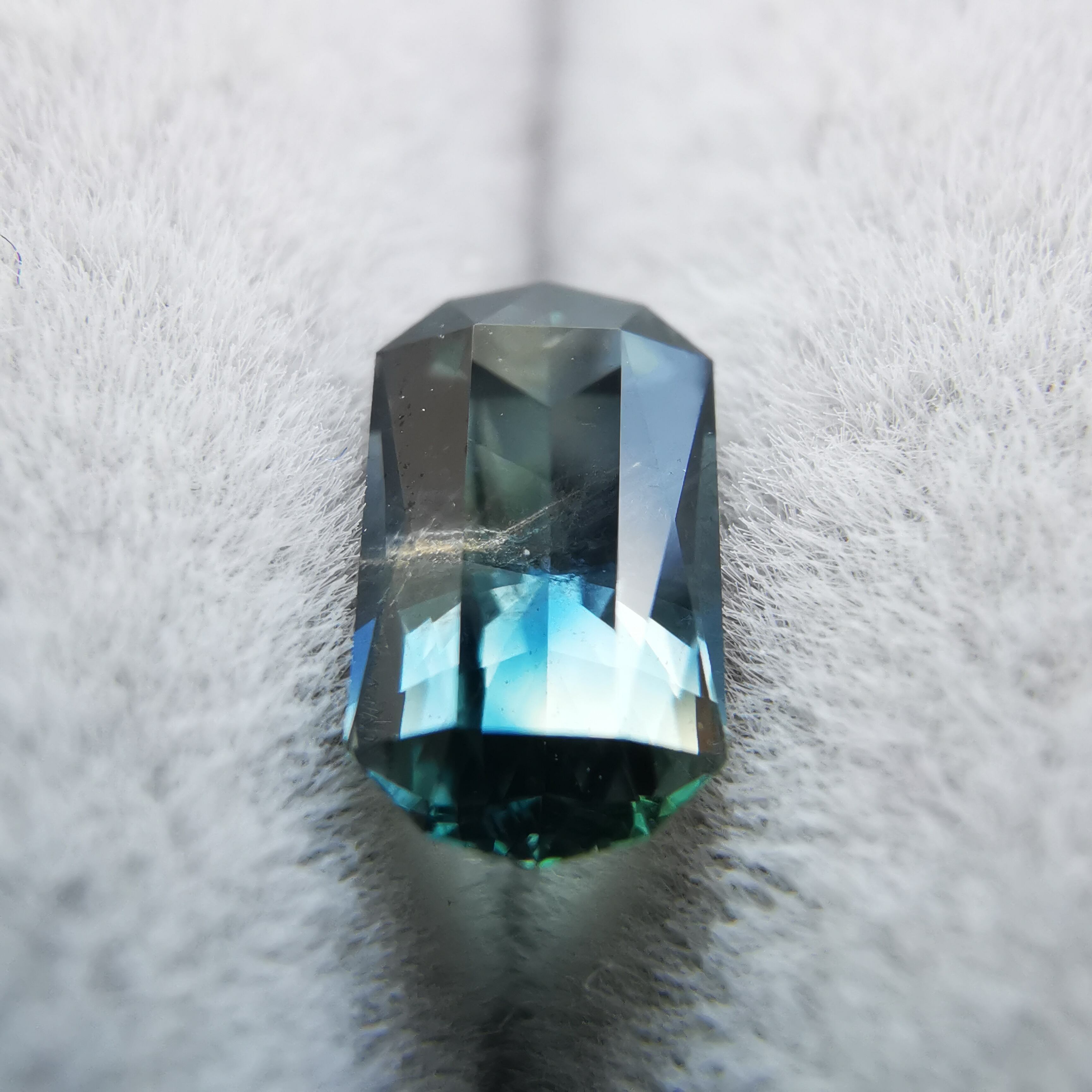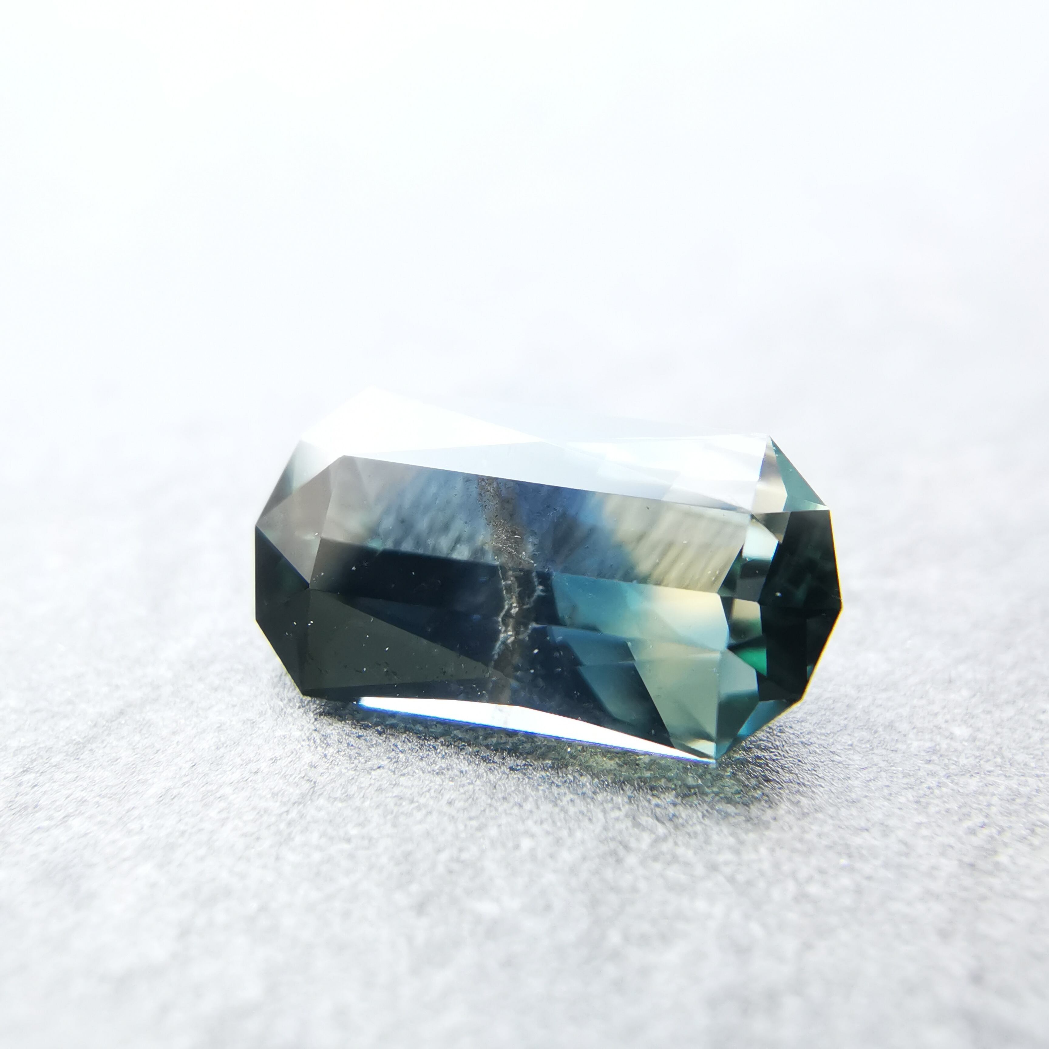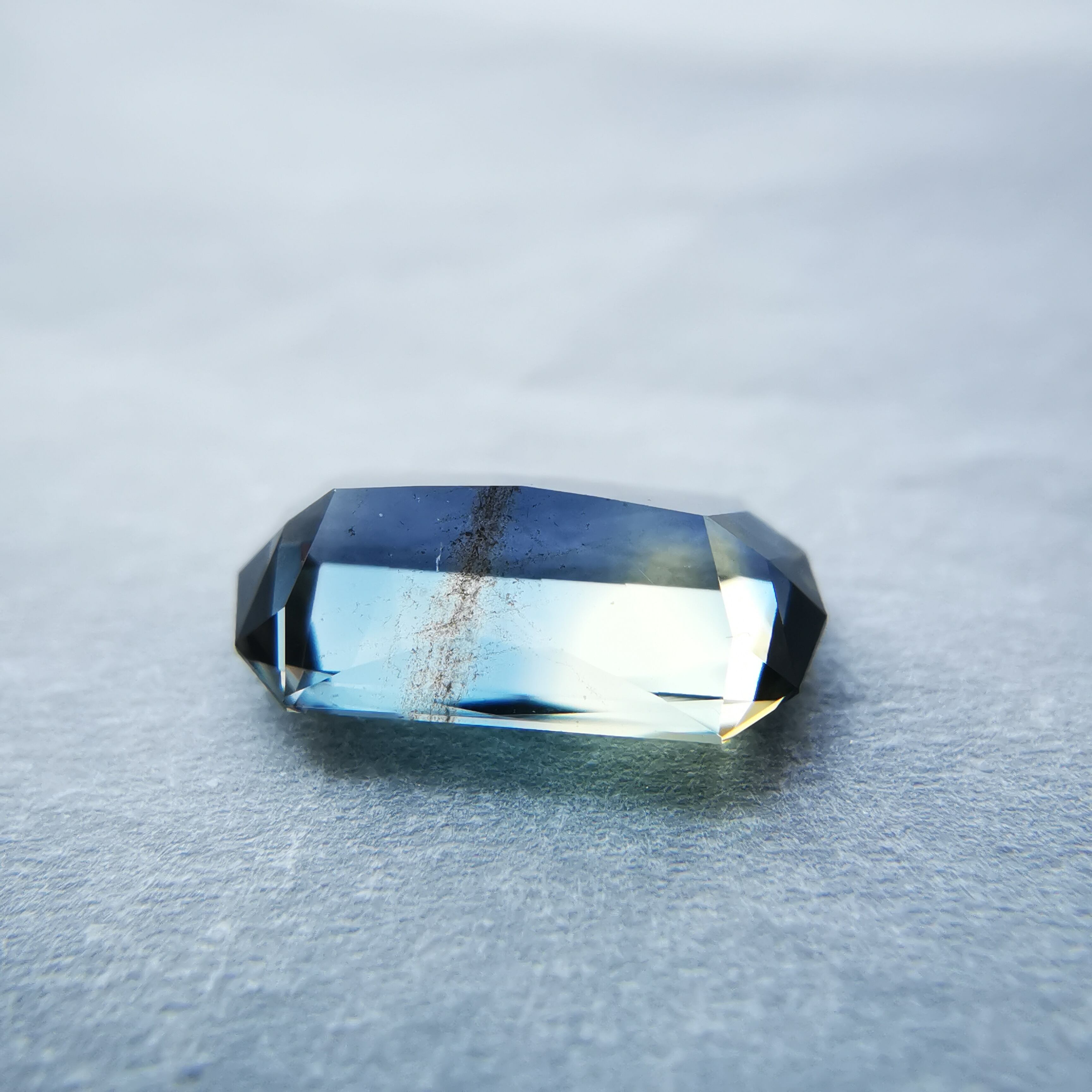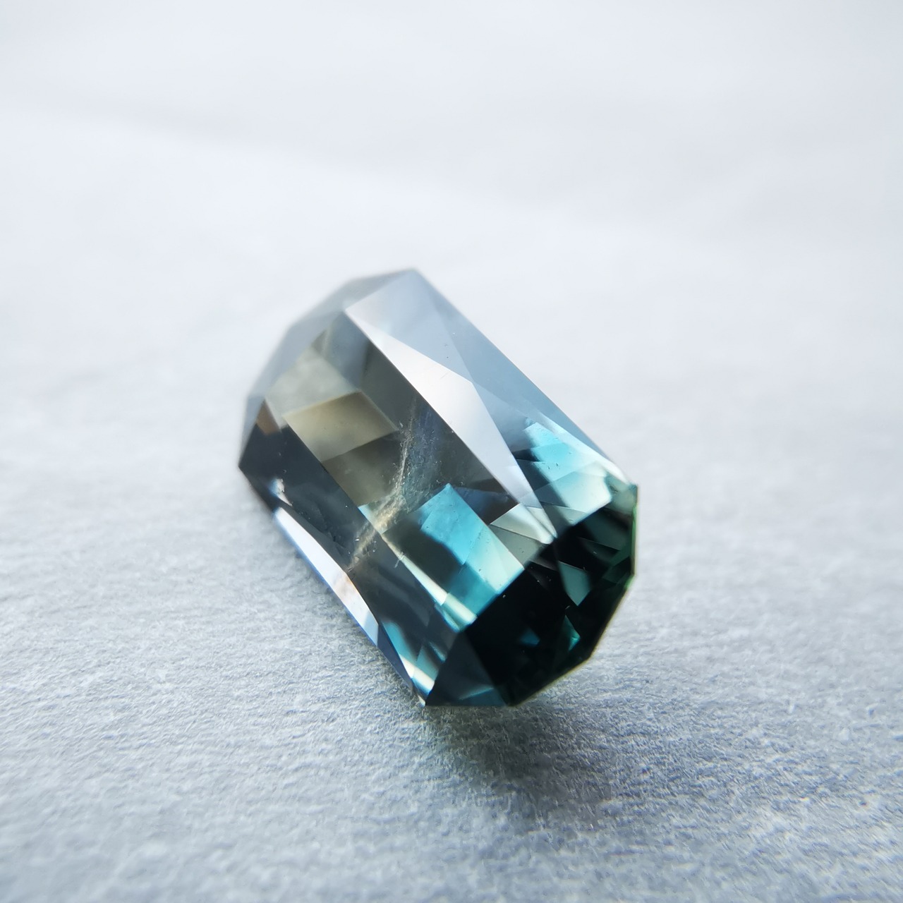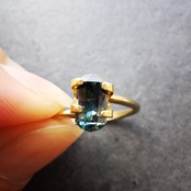 取り出して傾けると、ごく暗い緑みの青/鉄色と淡いイエローのバイカラーであることに気が付きます。
