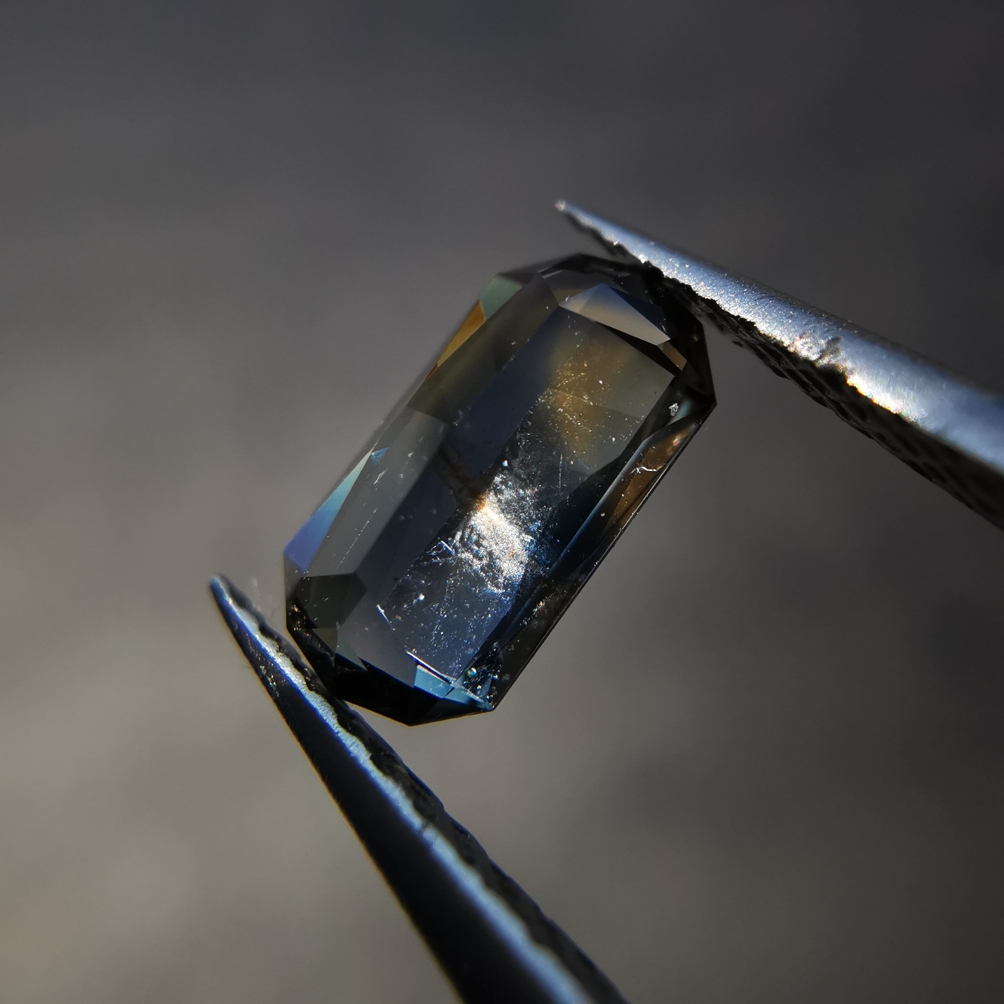 ルースケースの中では黒っぽい石の中から光る、淡いきらめきだけが目立ちます。