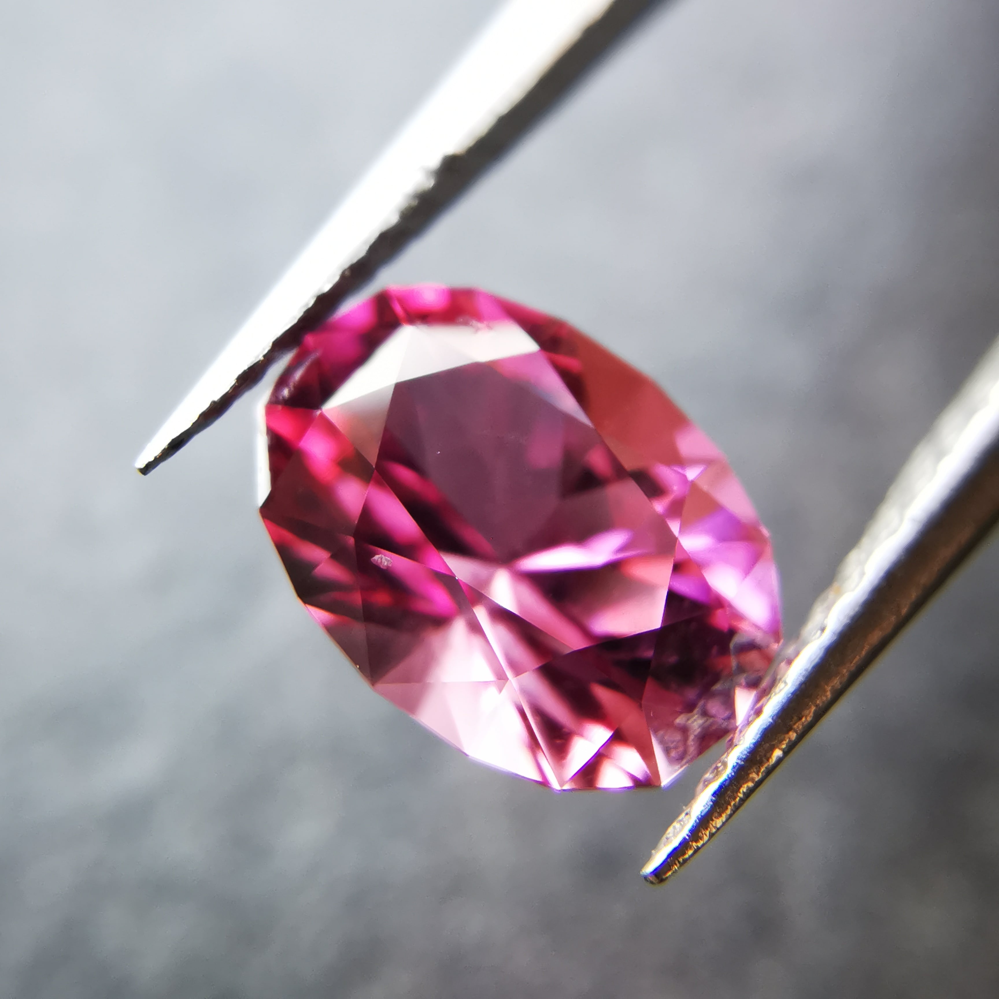 鮮やかな紫みのピンク/つつじ色のトルマリンです。