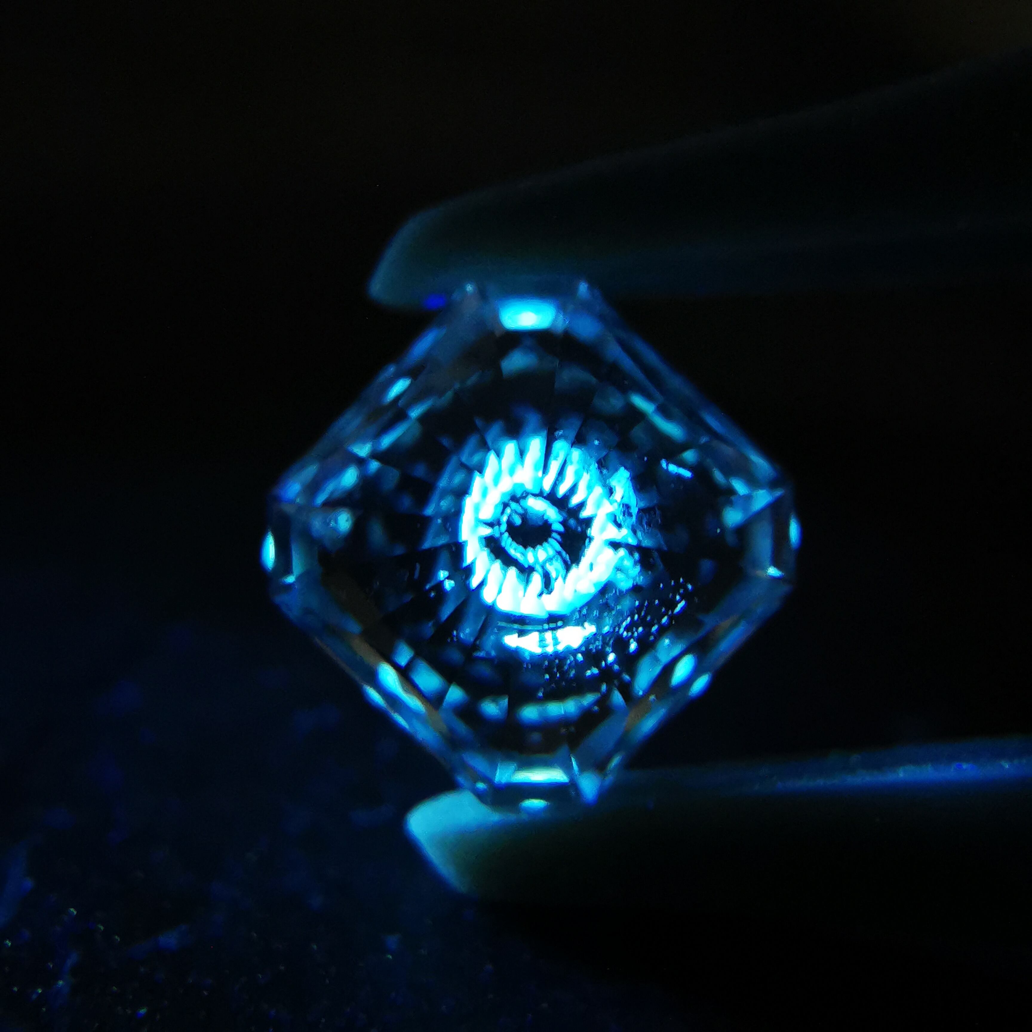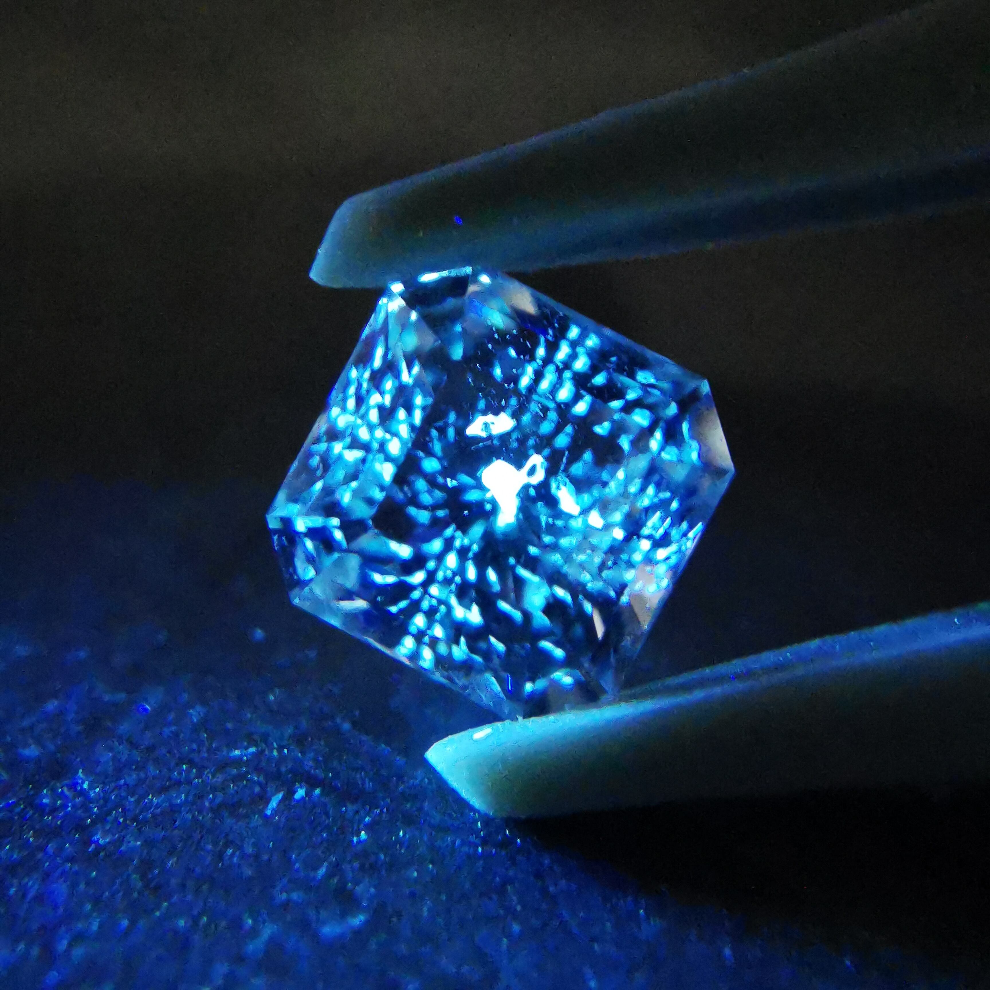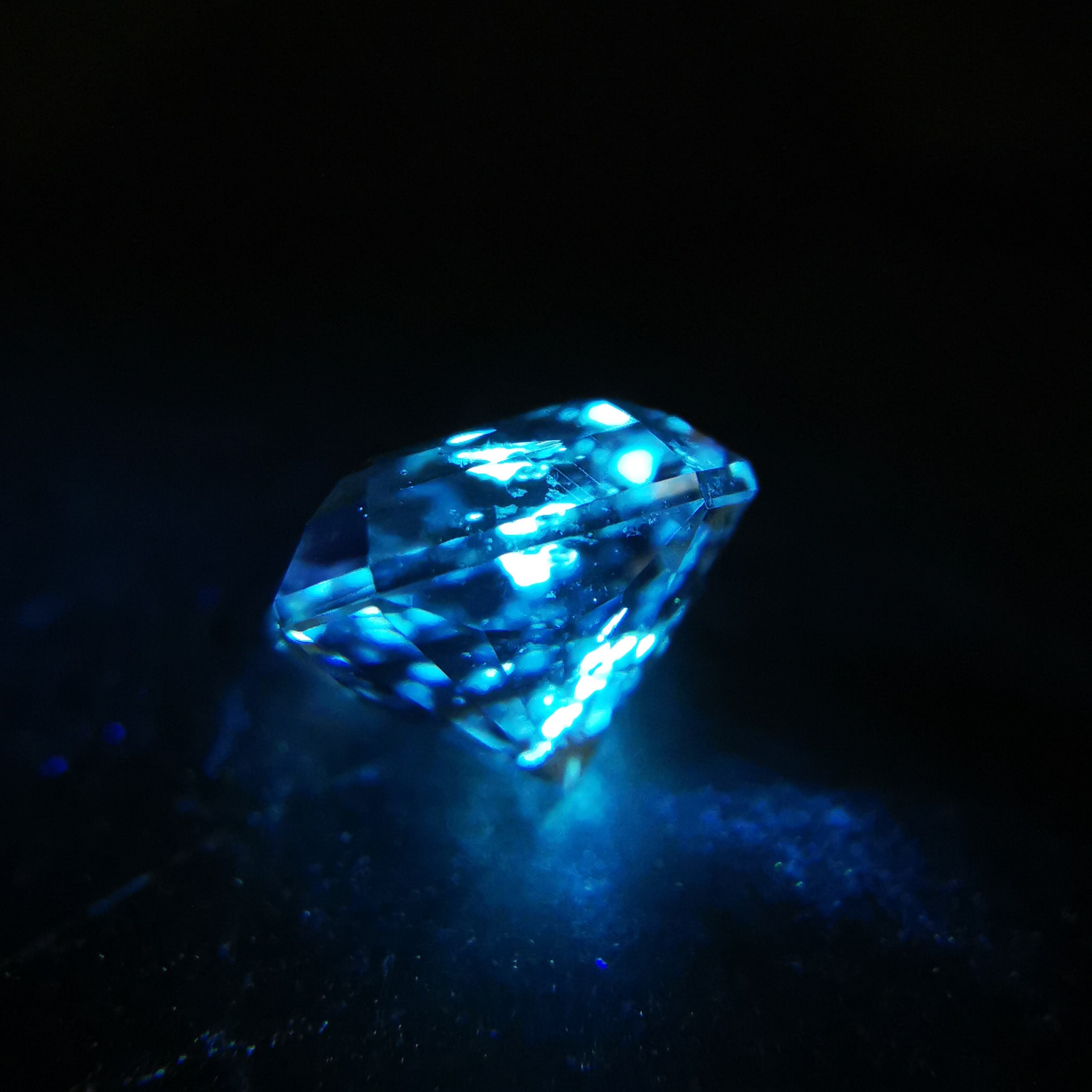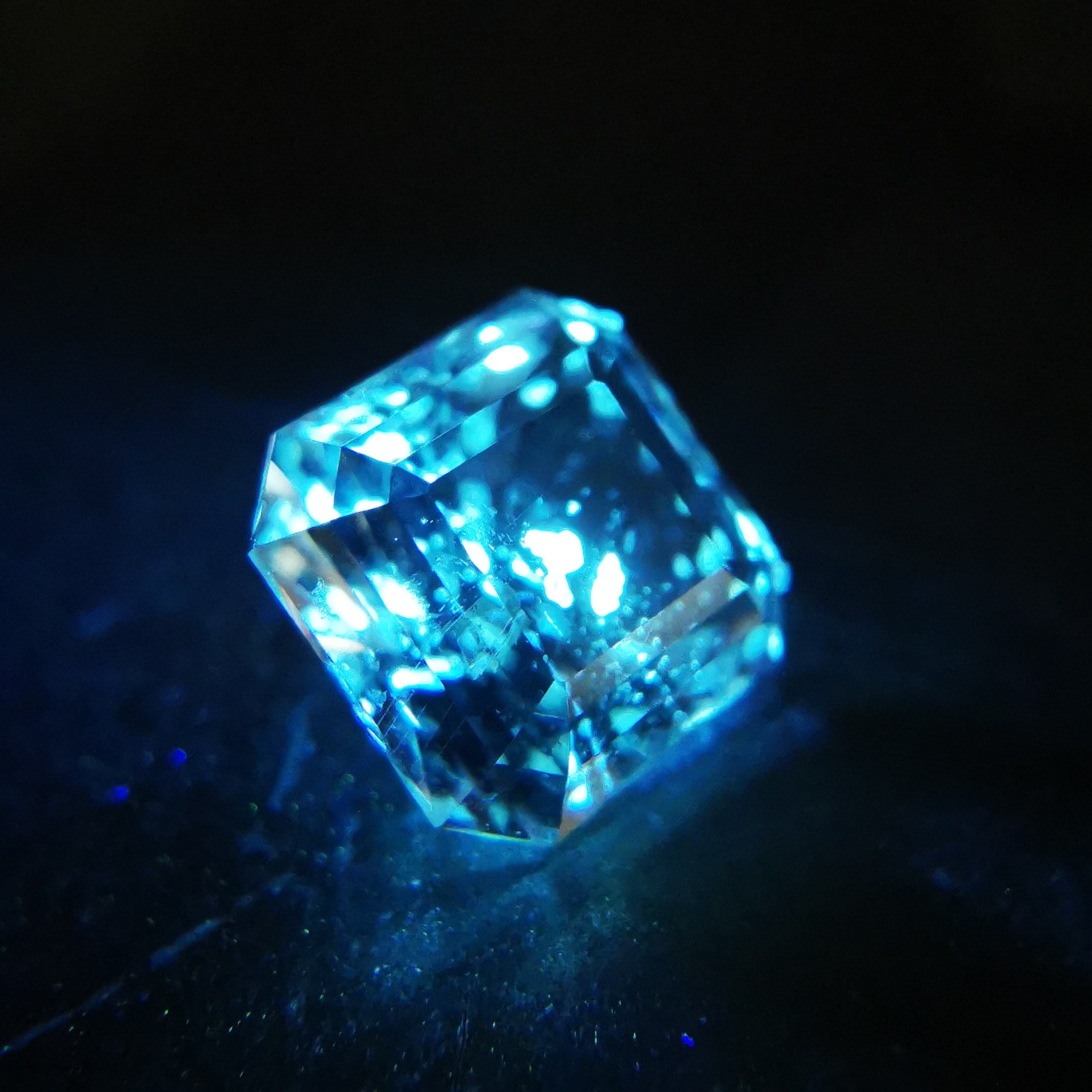 UVライトで照らすと、青い光が打ち上げ花火のように広がります。