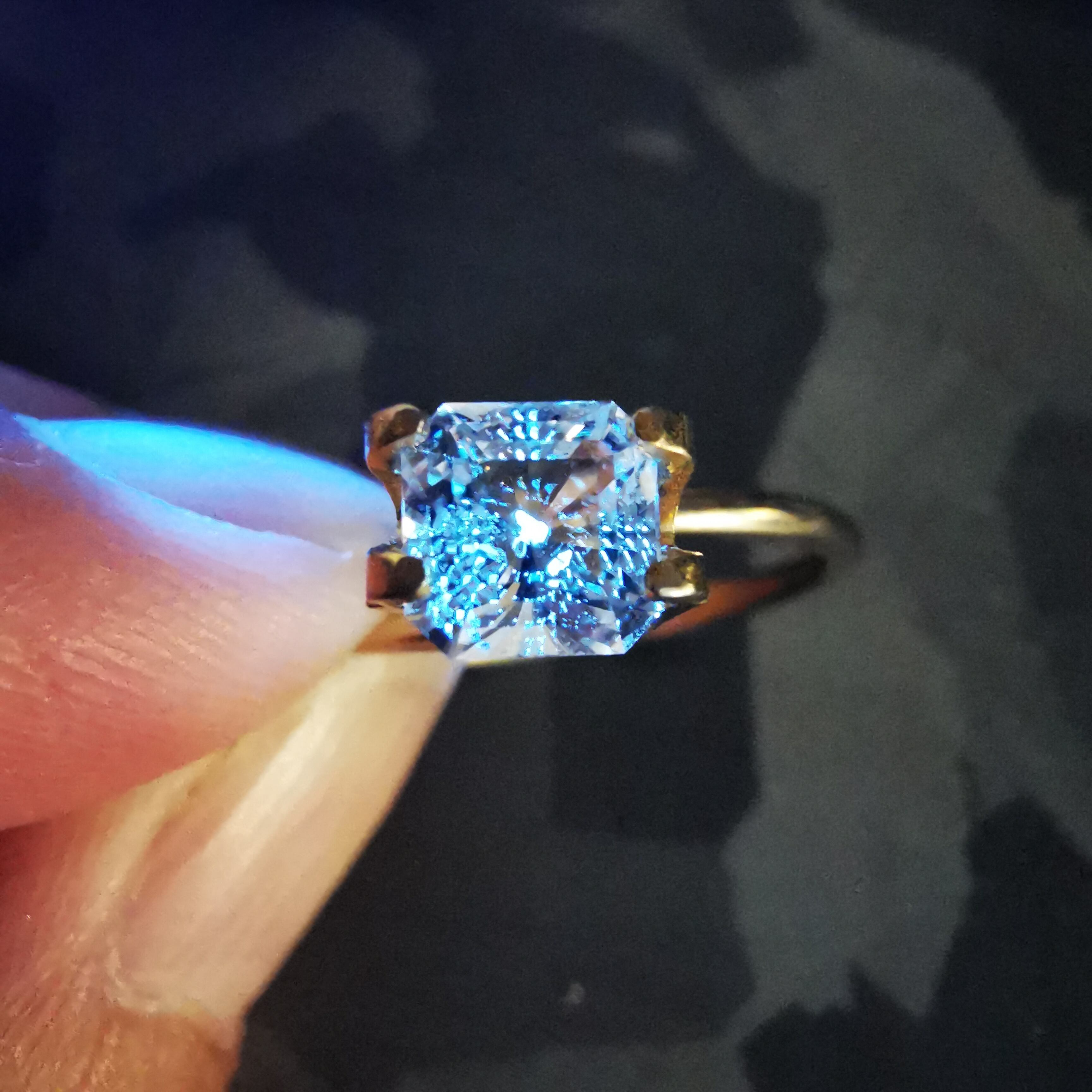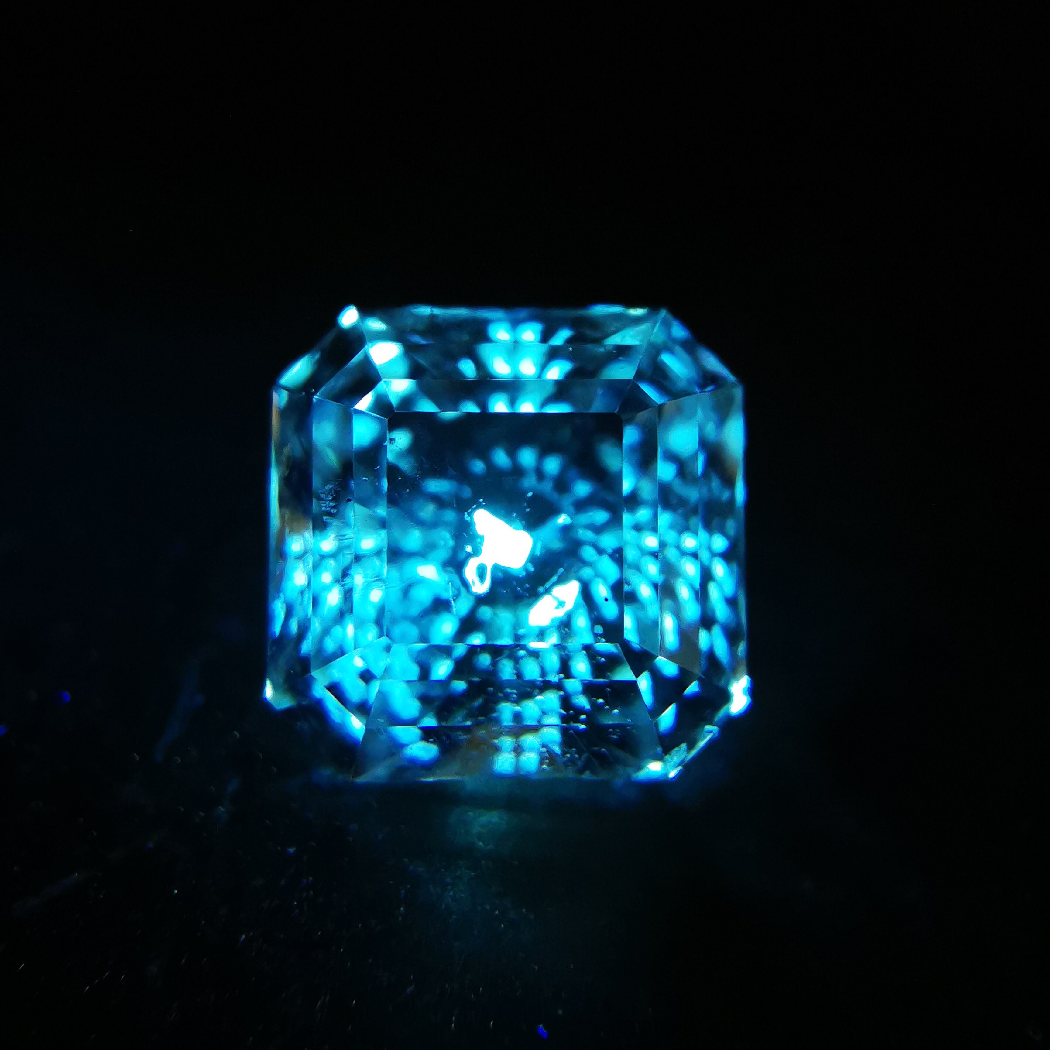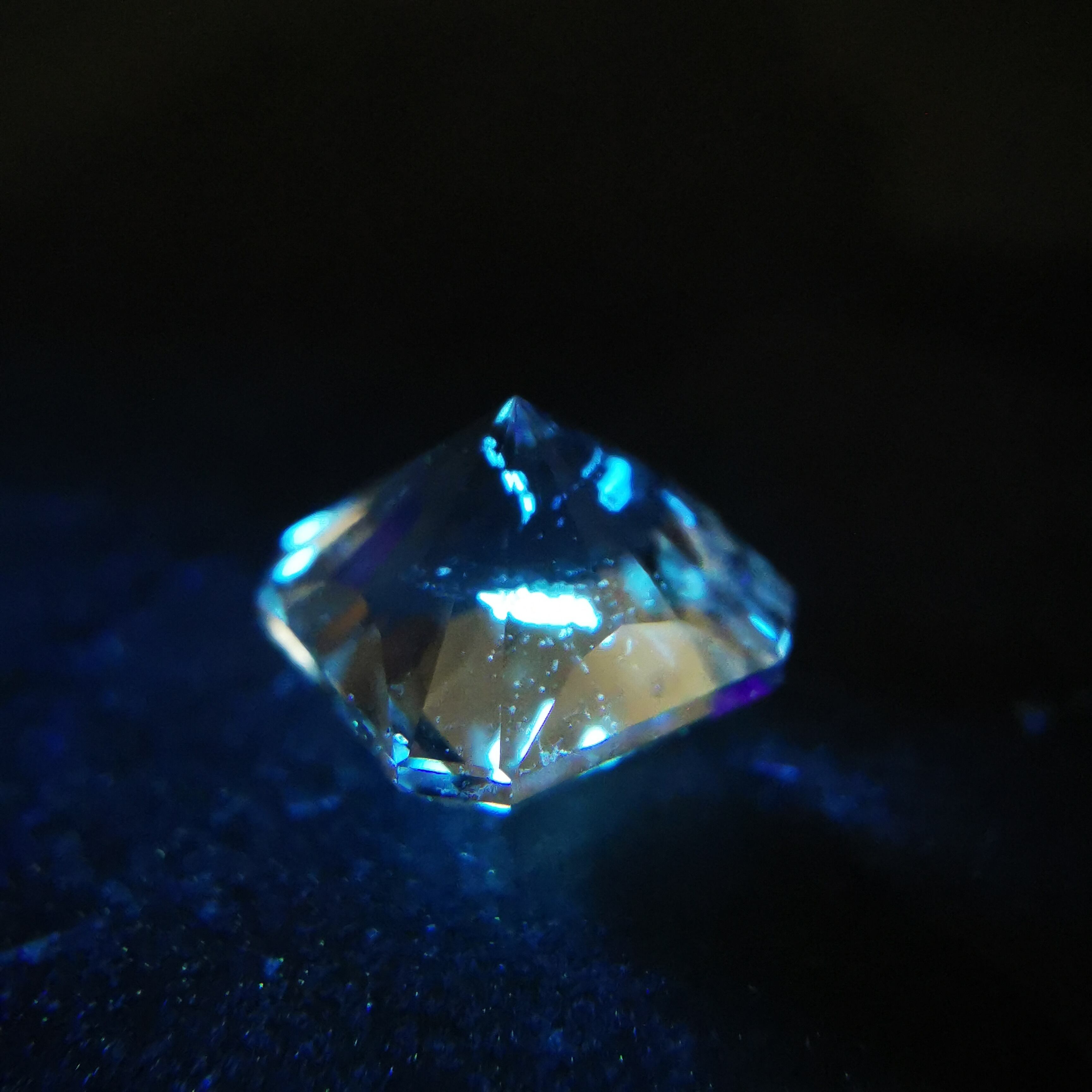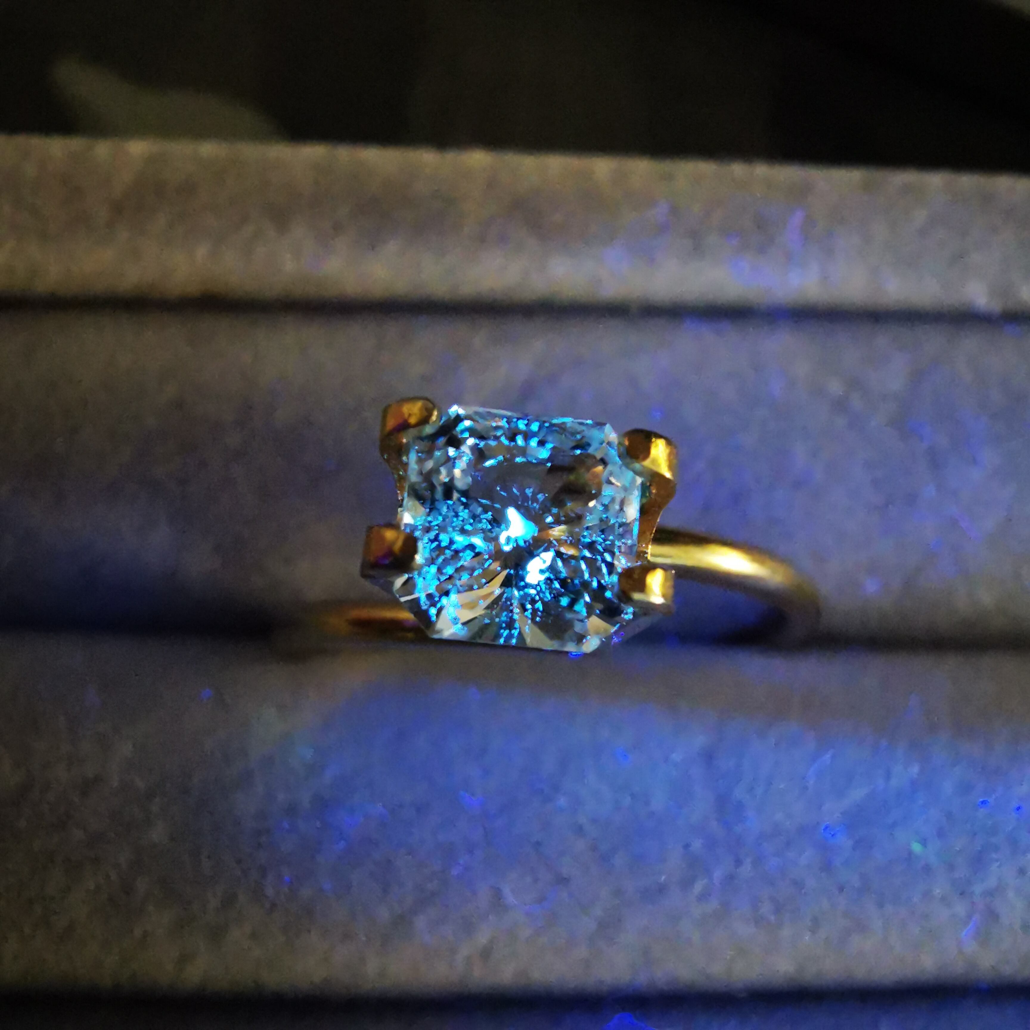 UVライトで照らすと、青い光が打ち上げ花火のように広がります。