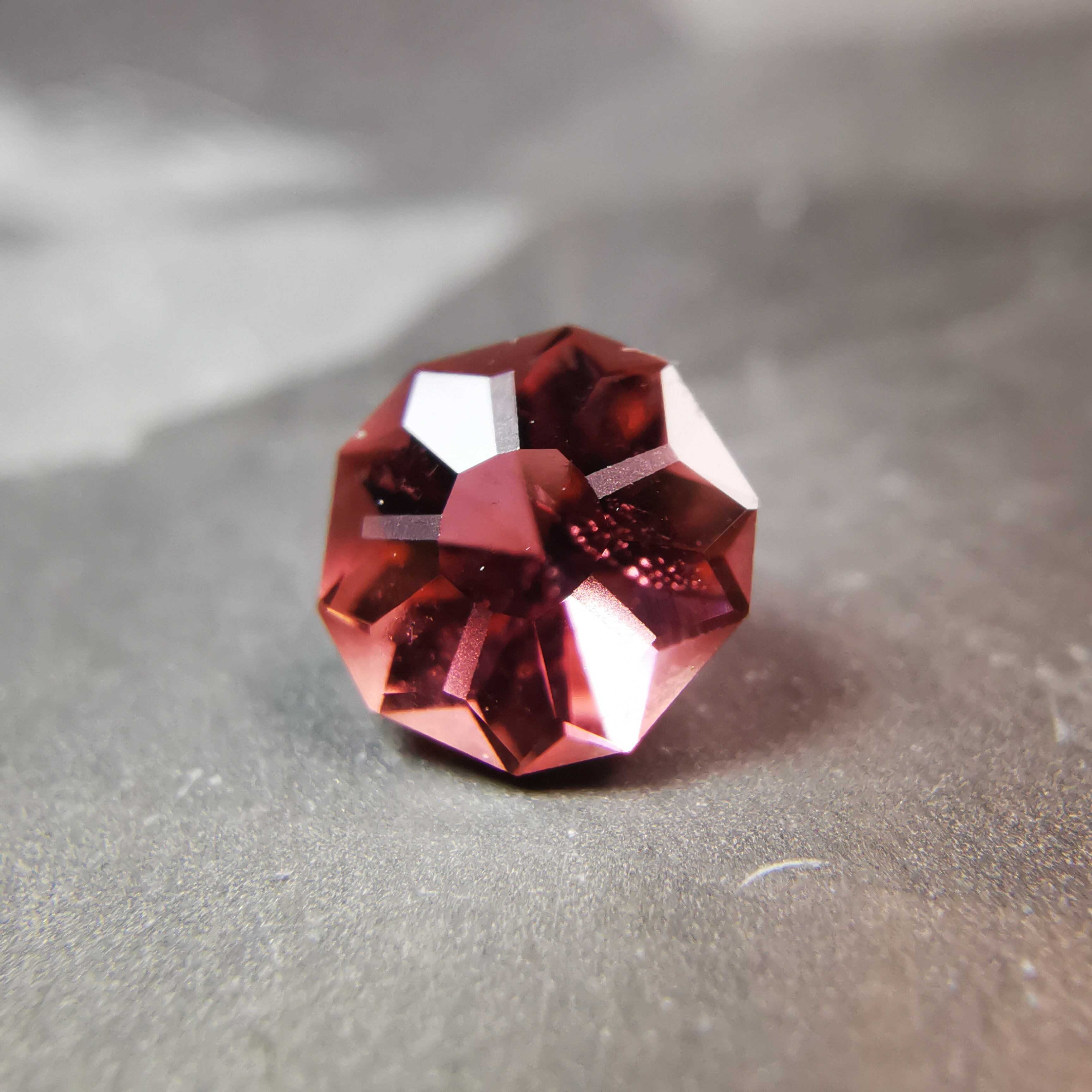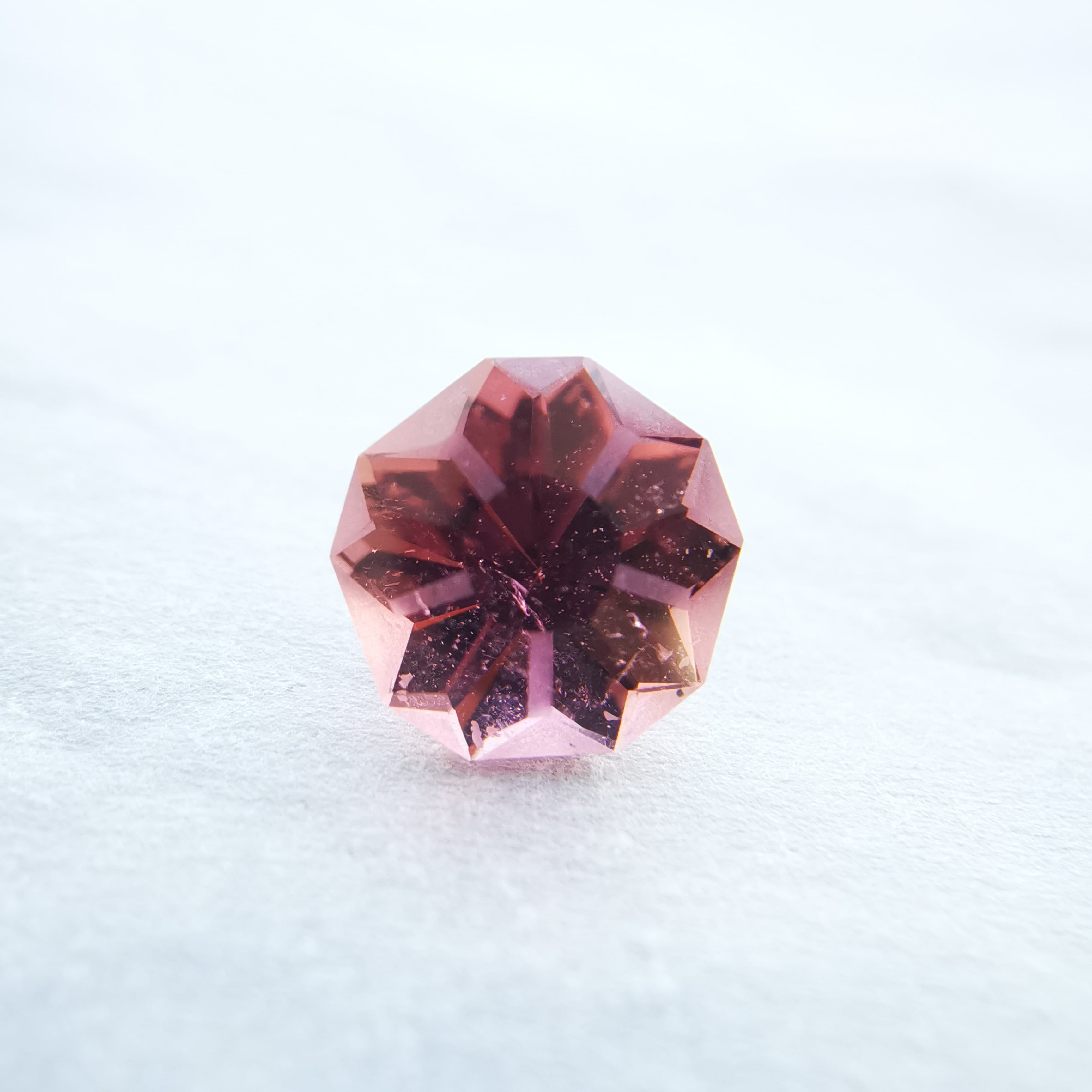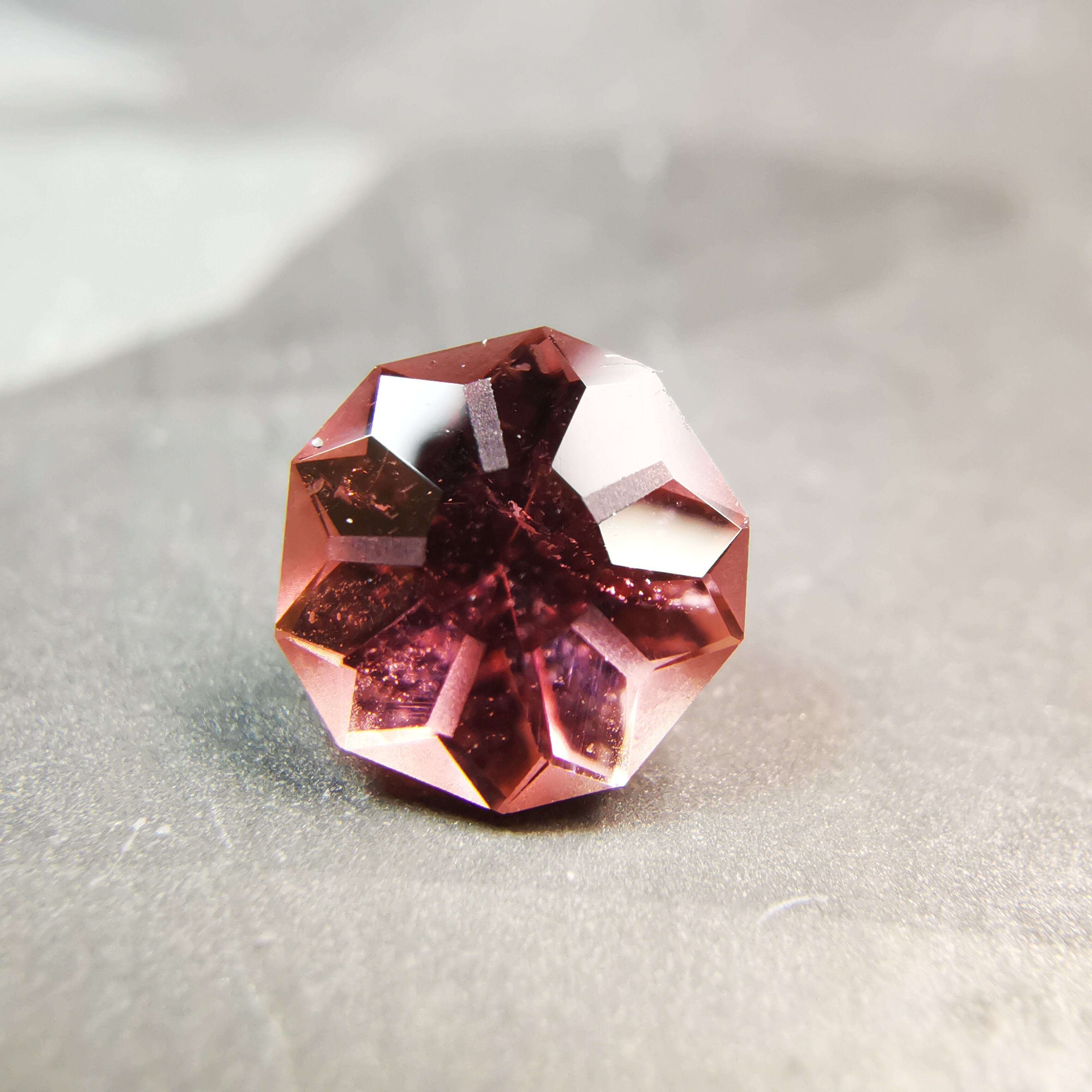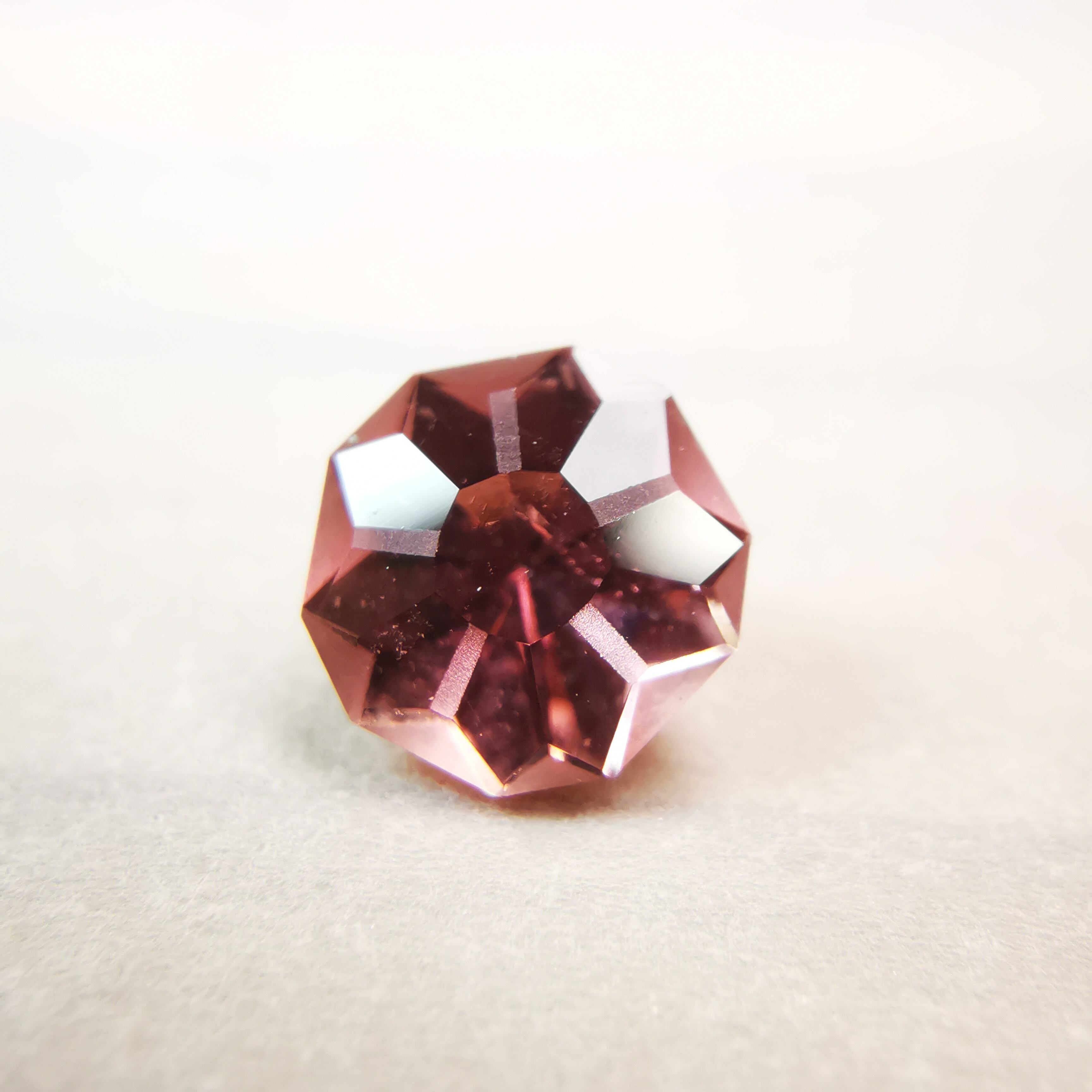くすんだ黄みの赤/真赭(まそお)色のトルマリンを、フラワーカットにしました。