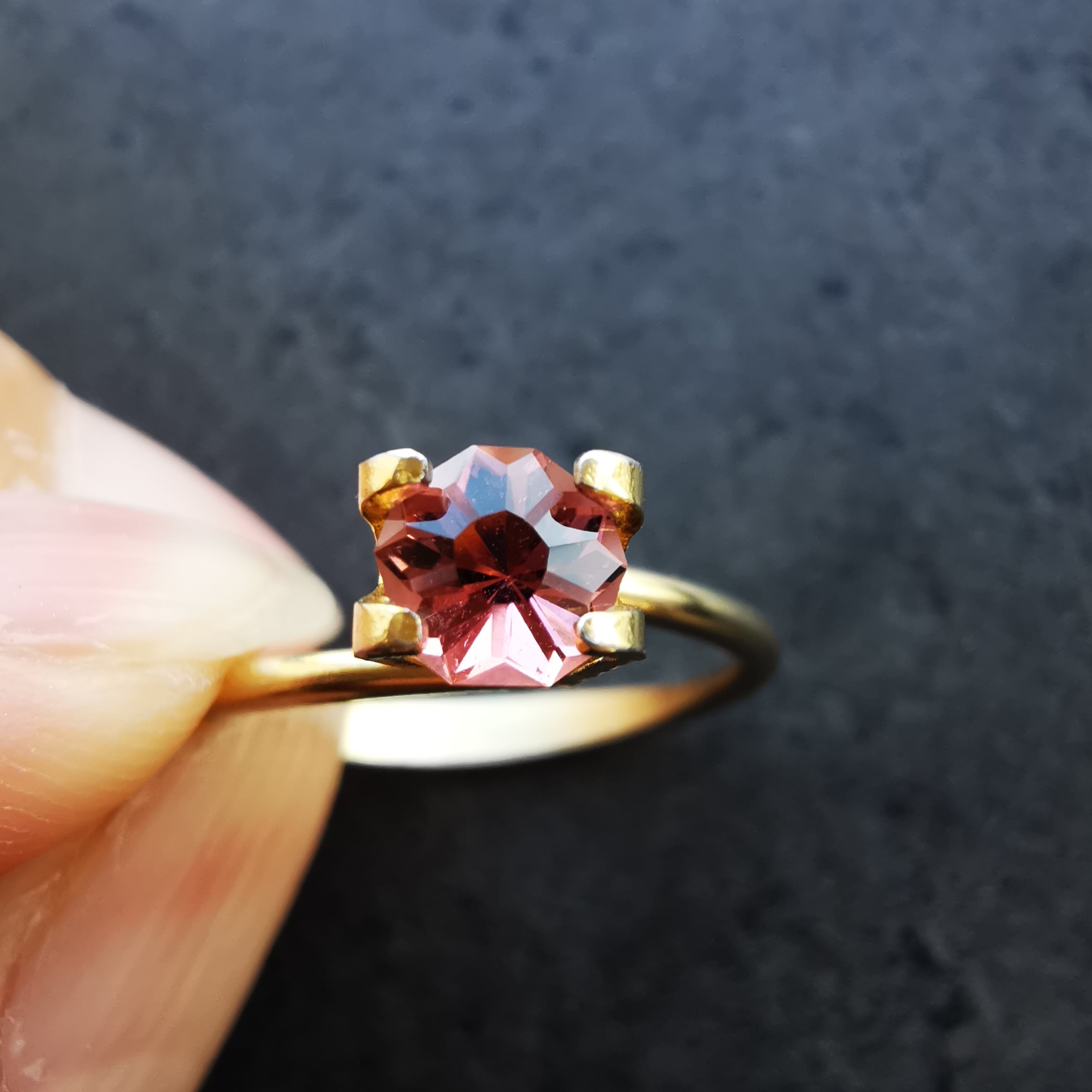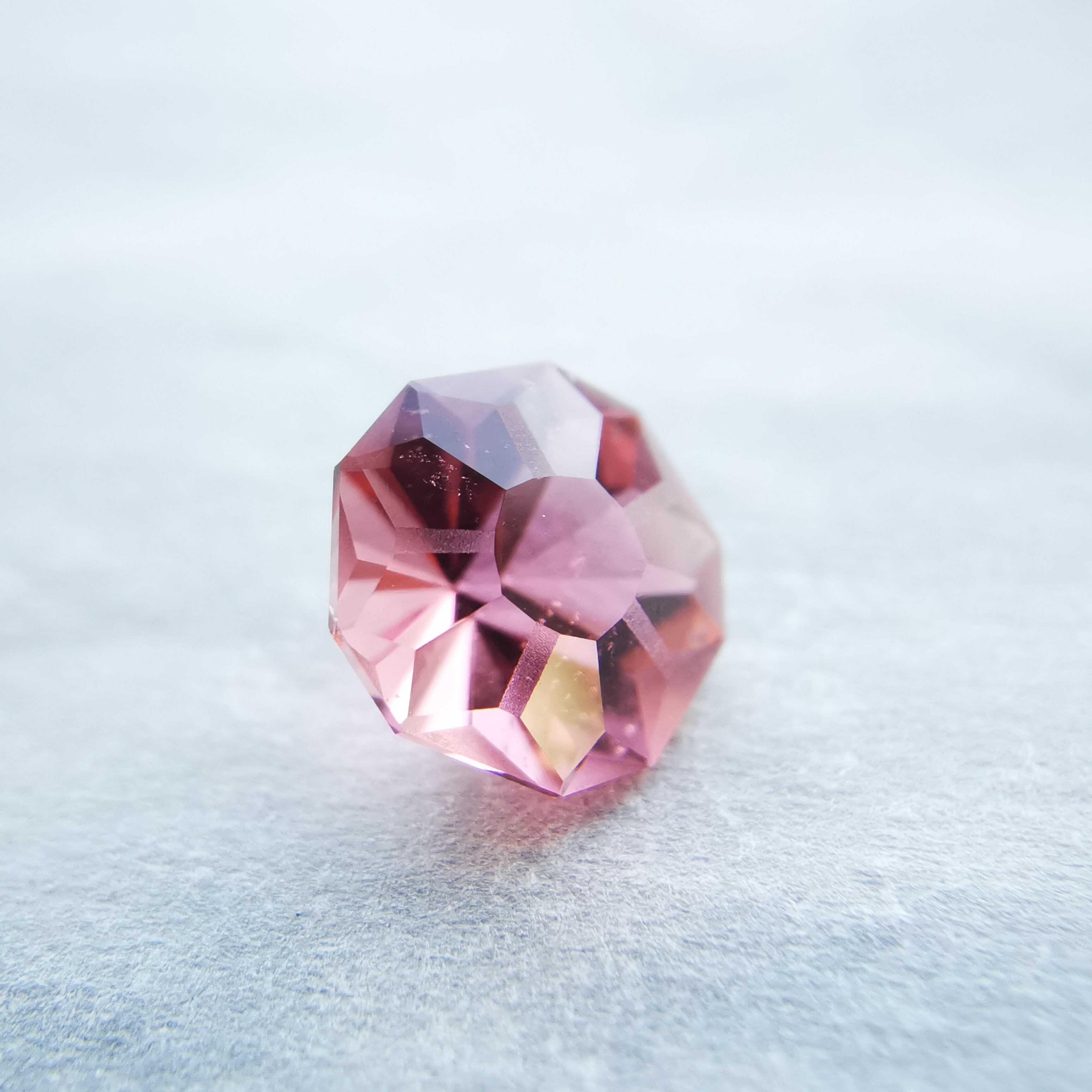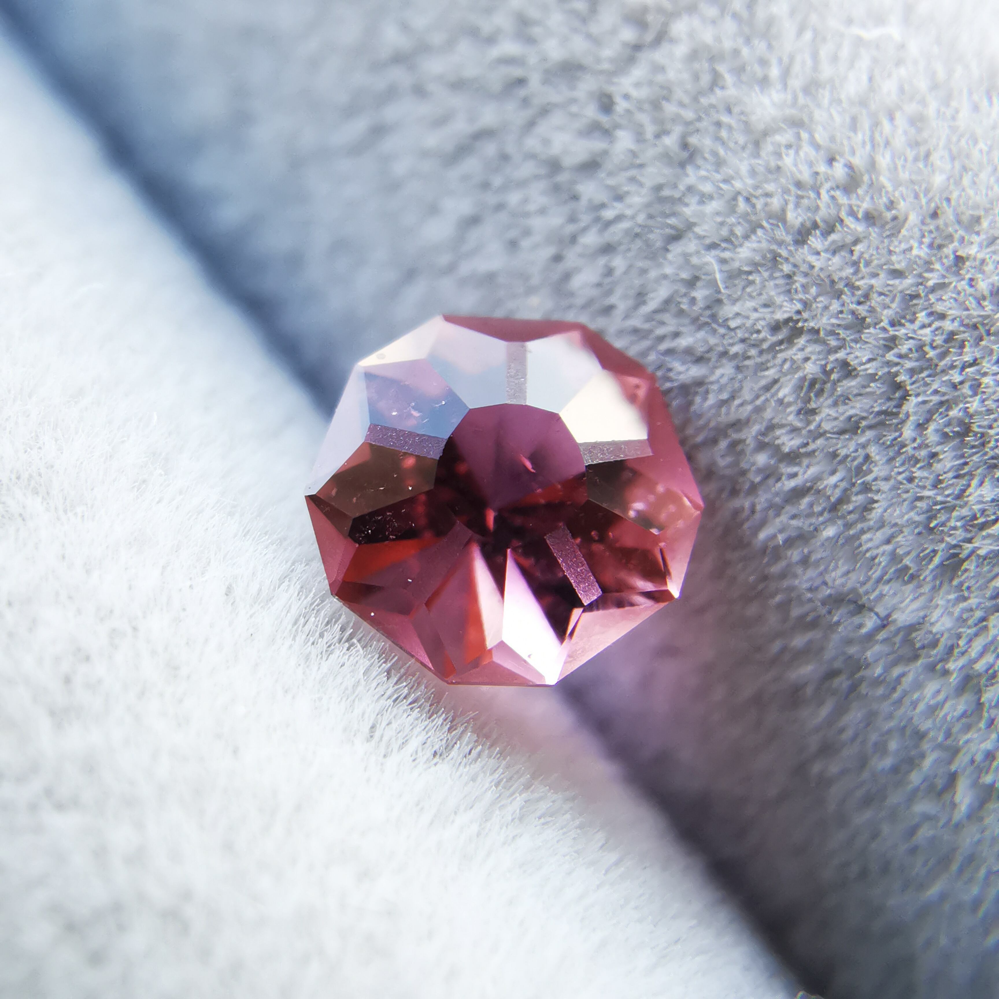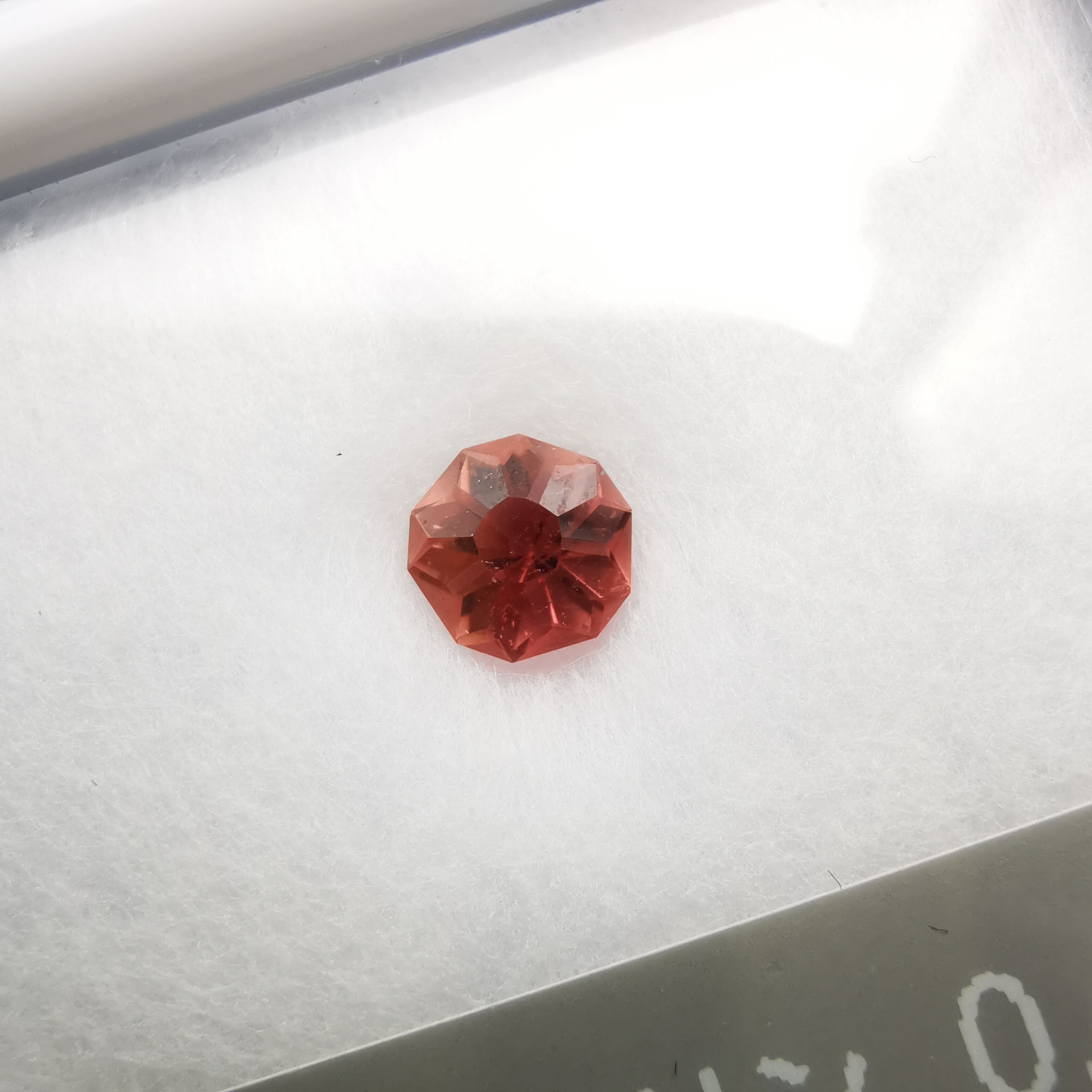 くすんだ黄みの赤/真赭(まそお)色のトルマリンを、フラワーカットにしました。
