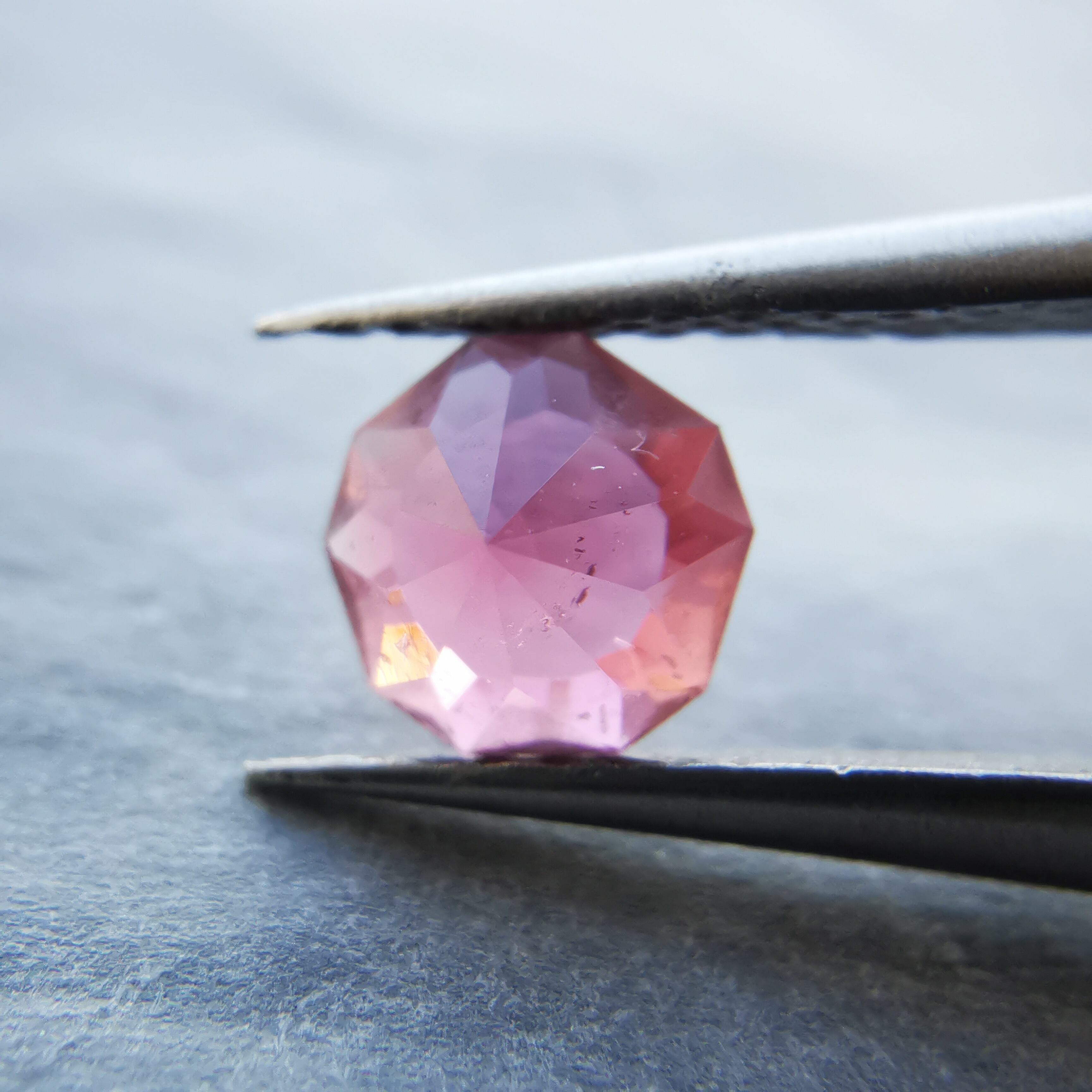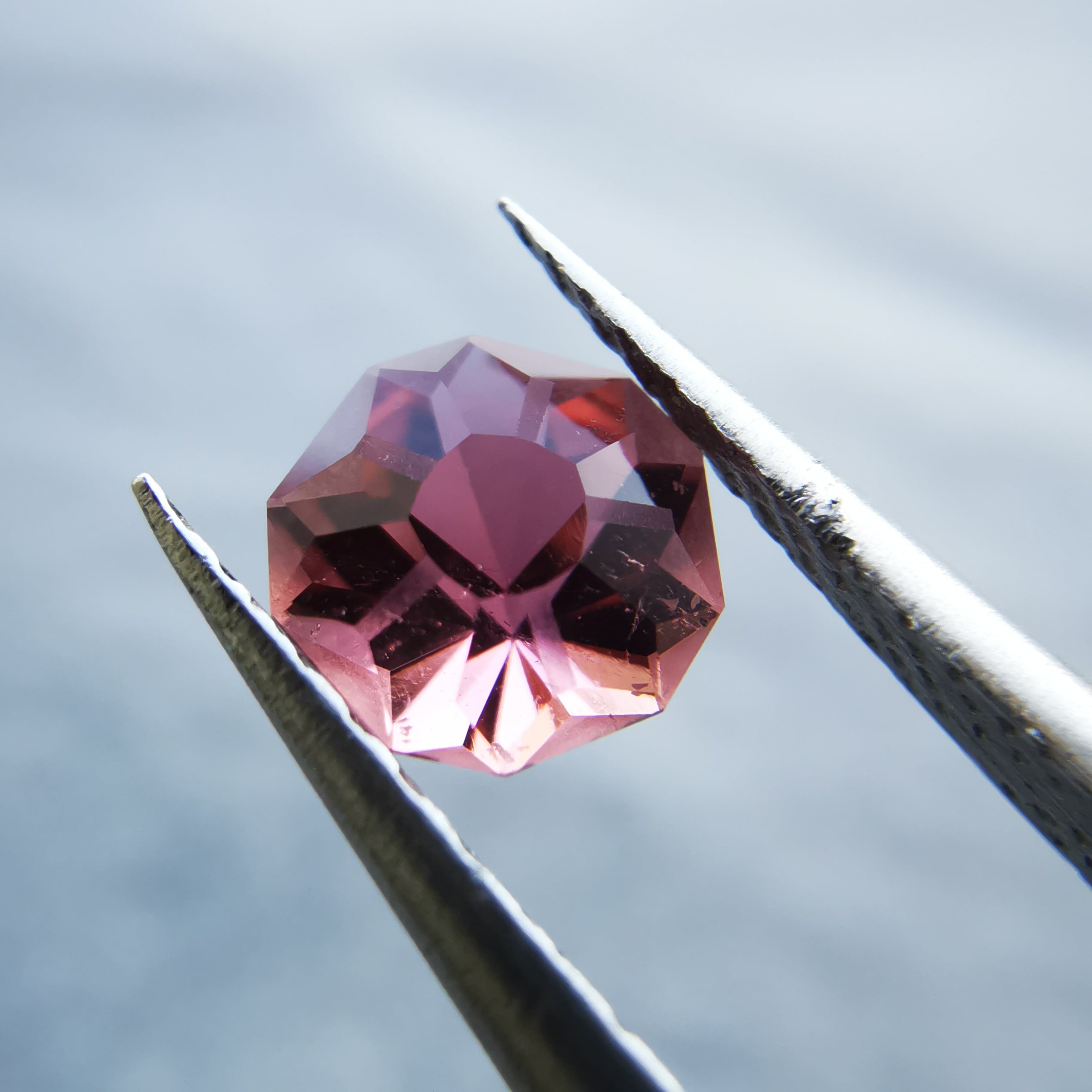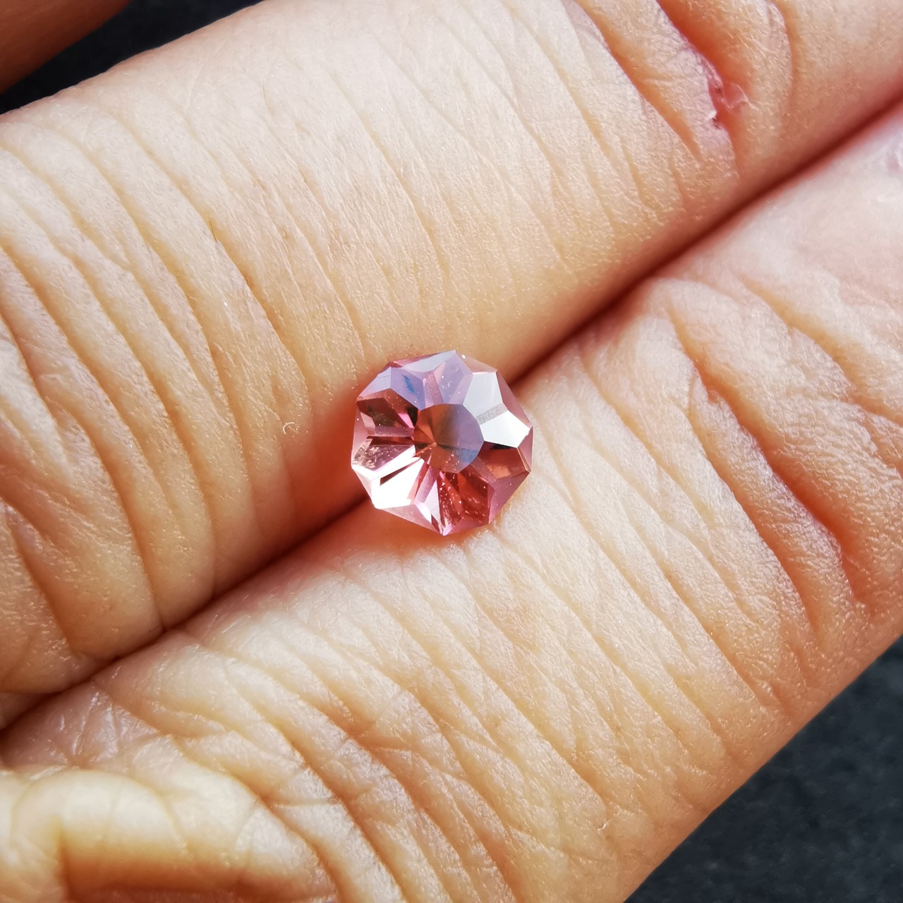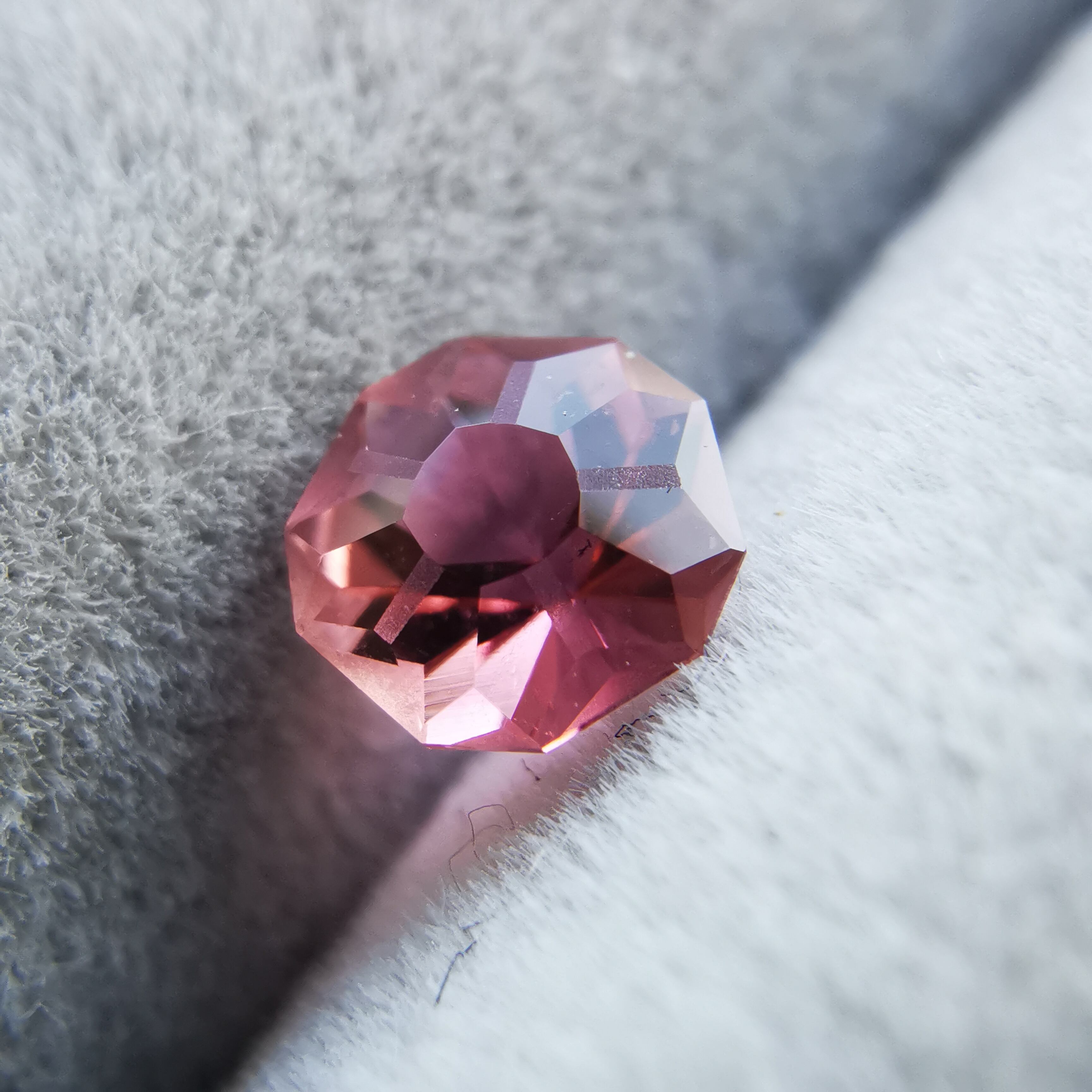 くすんだ黄みの赤/真赭(まそお)色のトルマリンを、フラワーカットにしました。