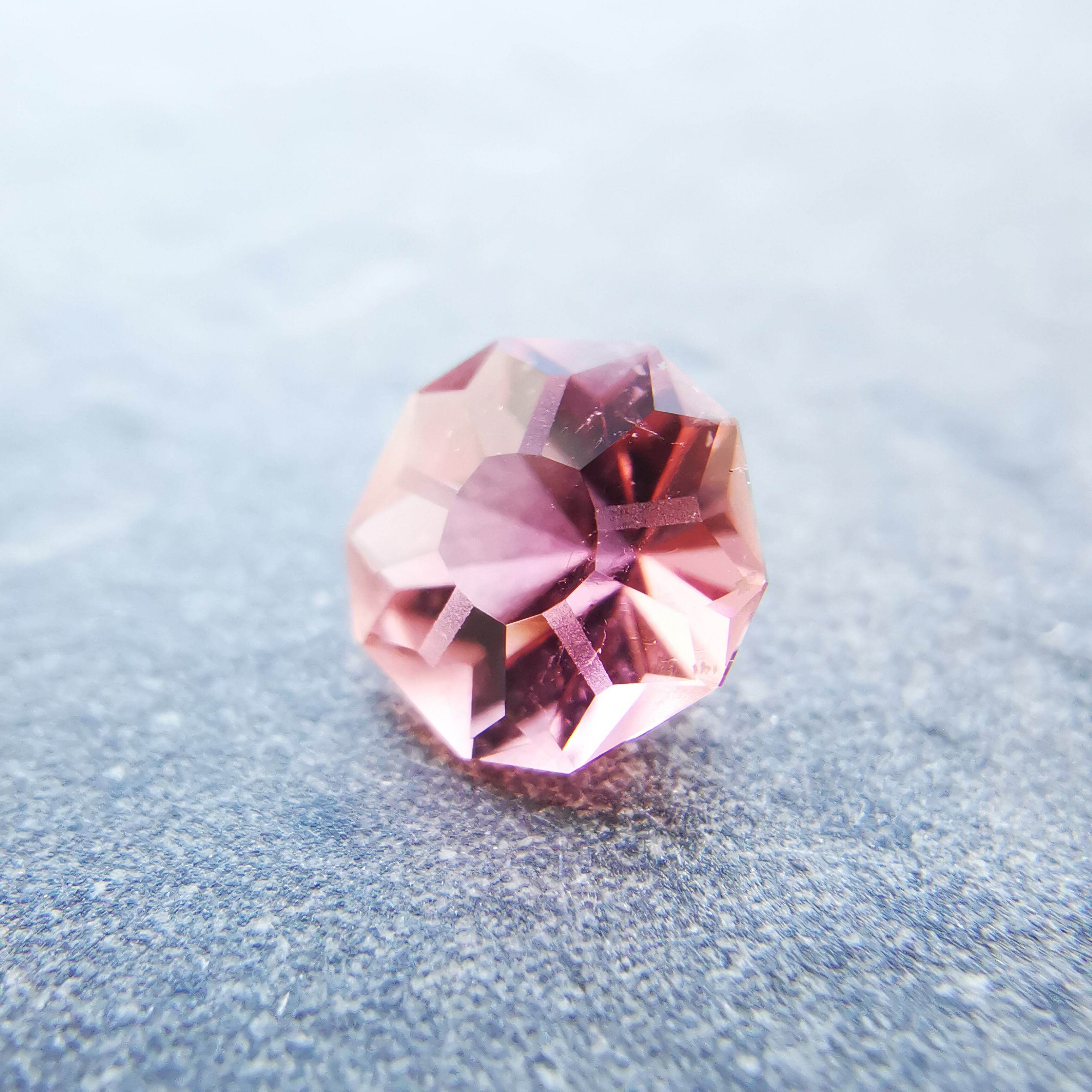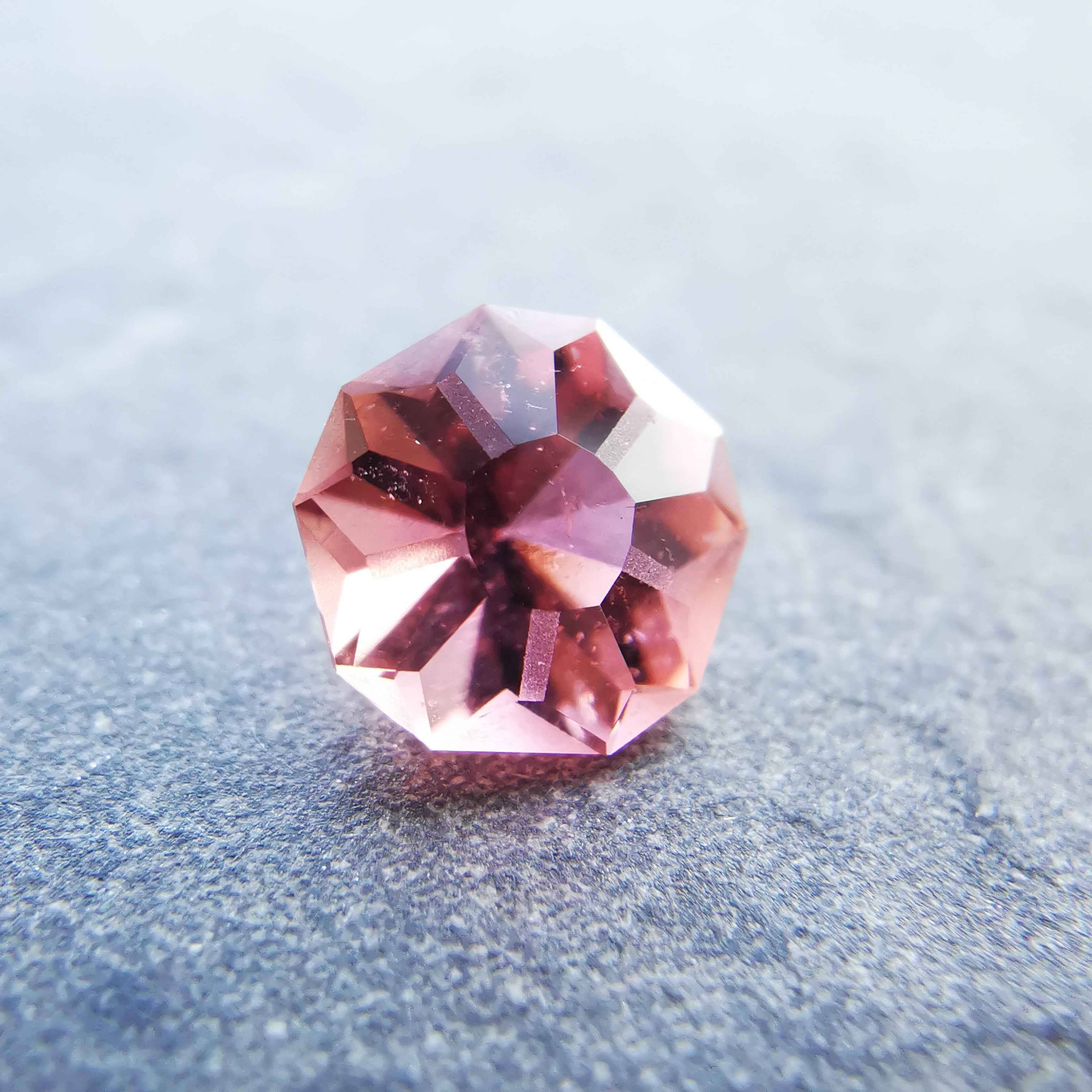 フェイスとパビリオンに刻んだ花びらの先端のカットがわずかにずれると、花びらが幾重にも重なる八重桜にも見え、なんとも愛らしいです。