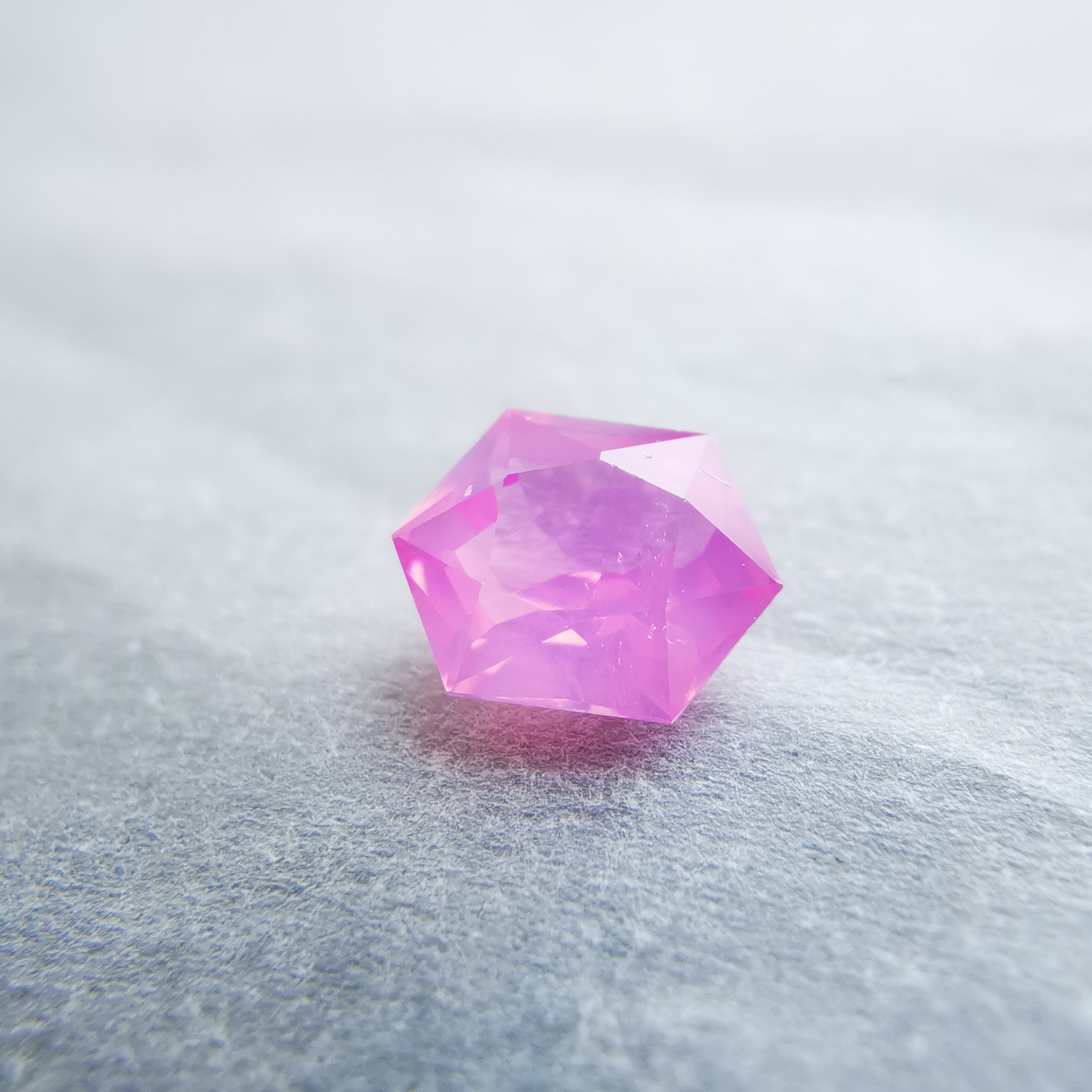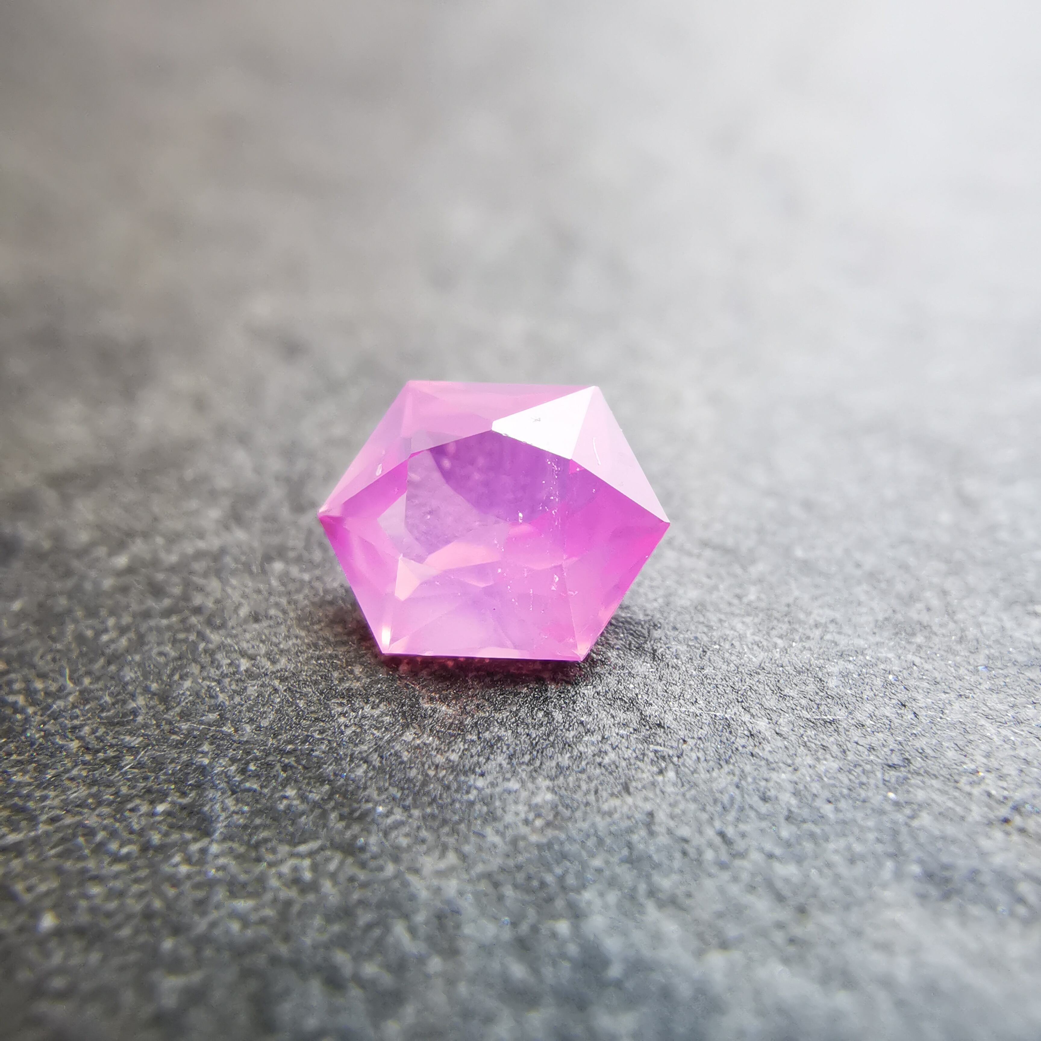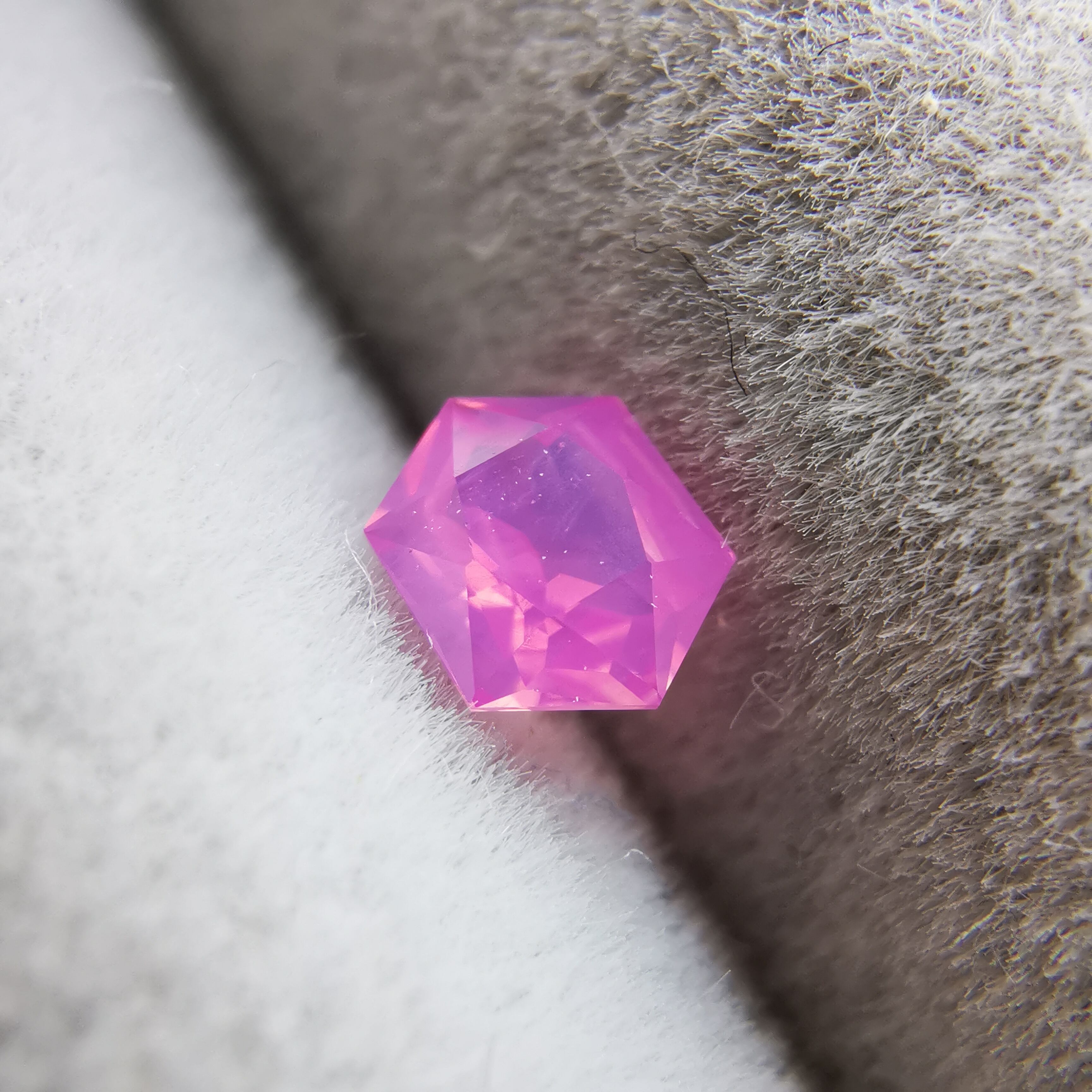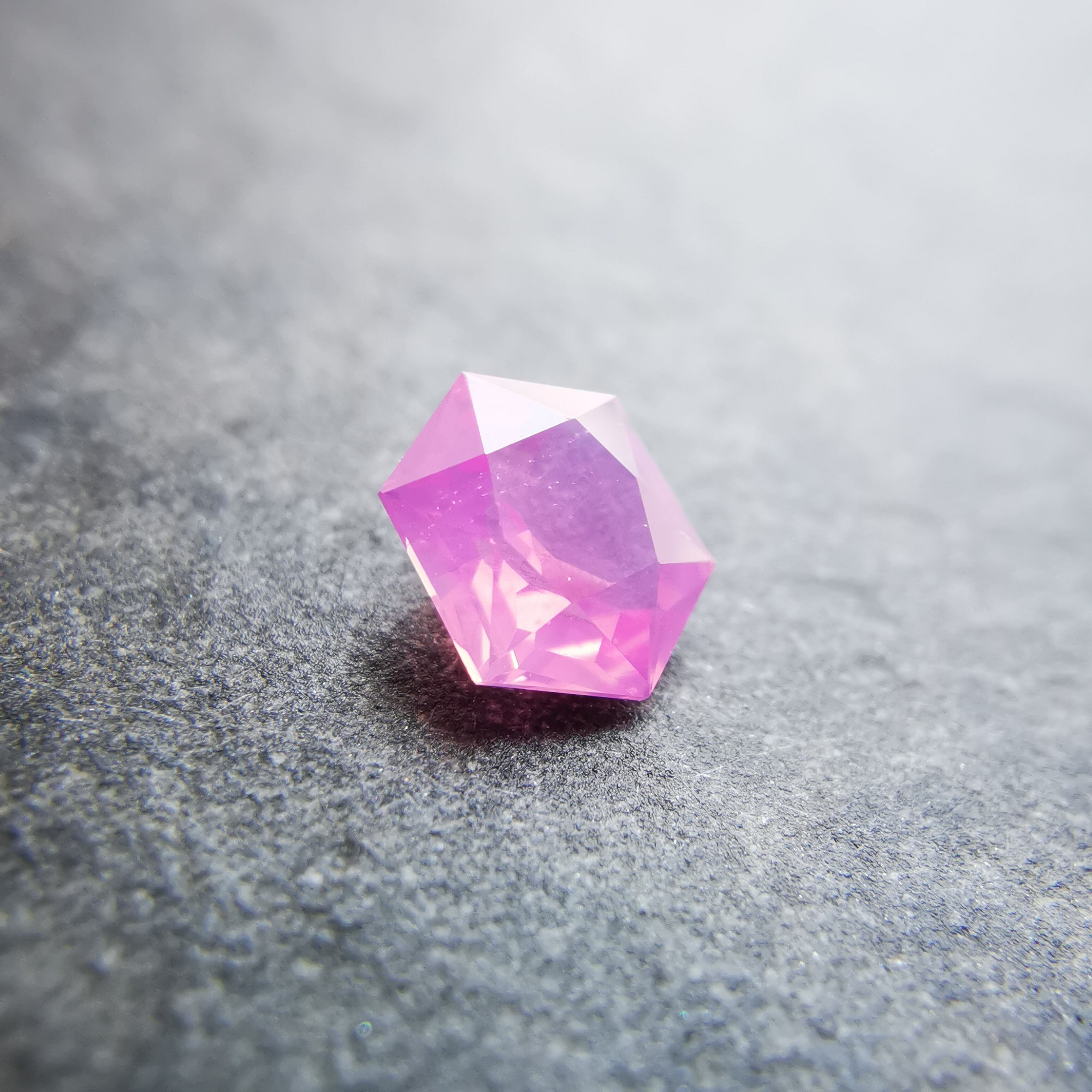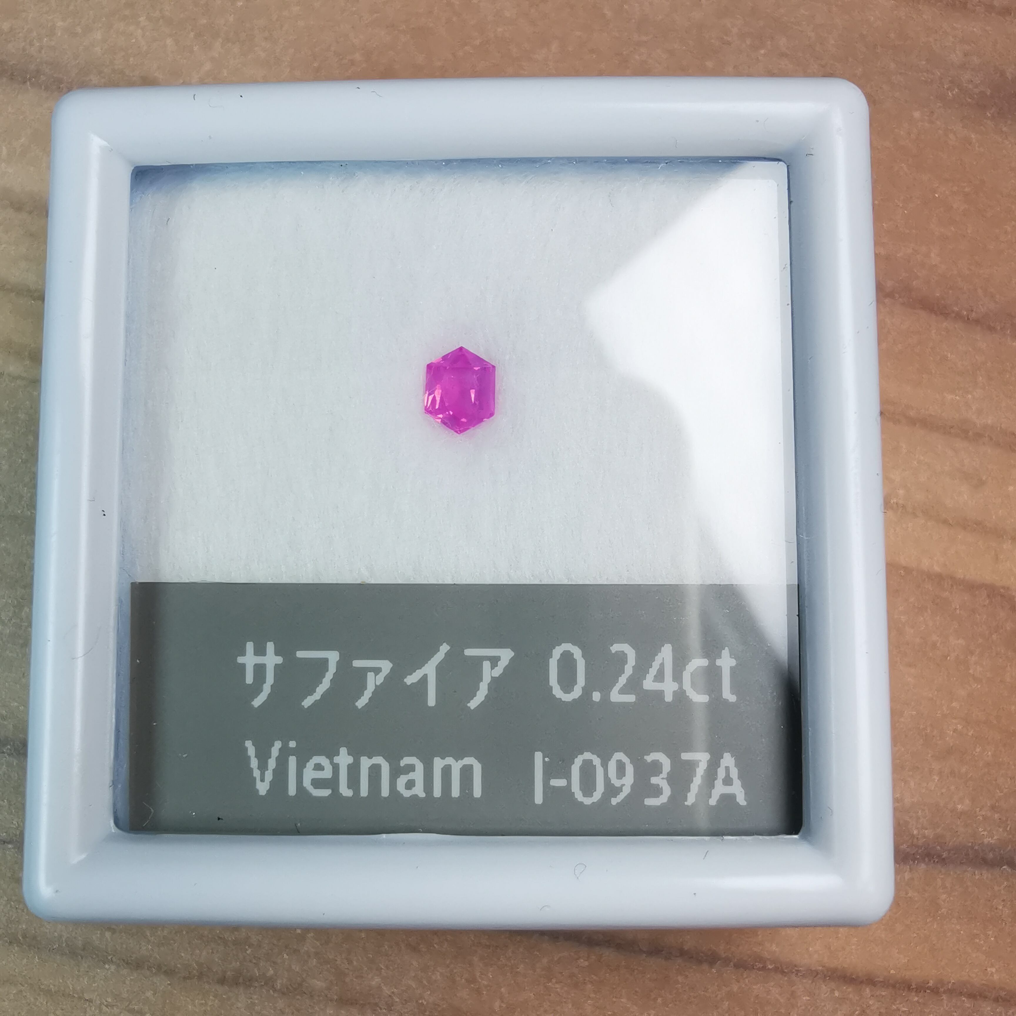 ベトナム産らしい、ピンクに白を混ぜたようなふわりとした優し気なカラーですが、ホワイトみがあってもサファイアらしい輝きはしっかりと感じられます。