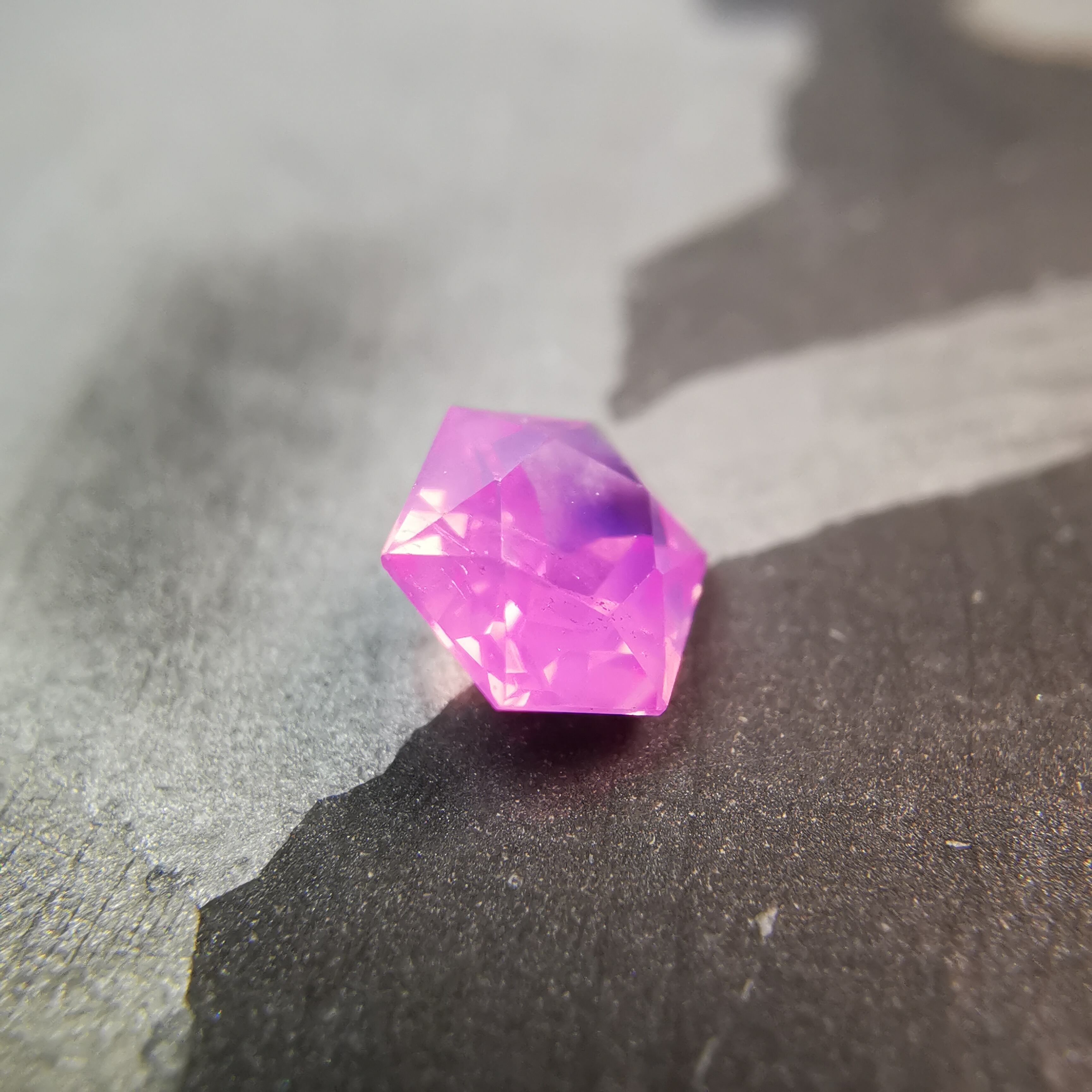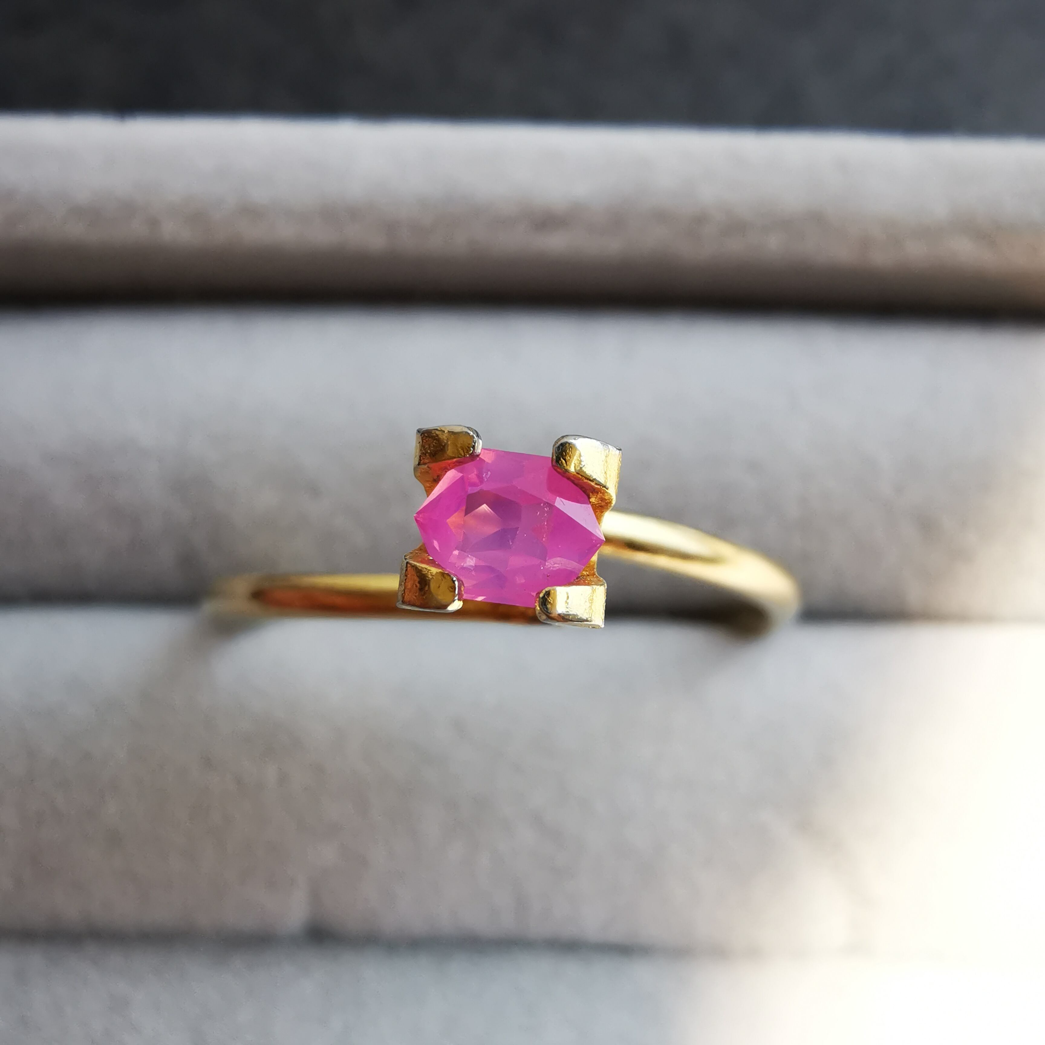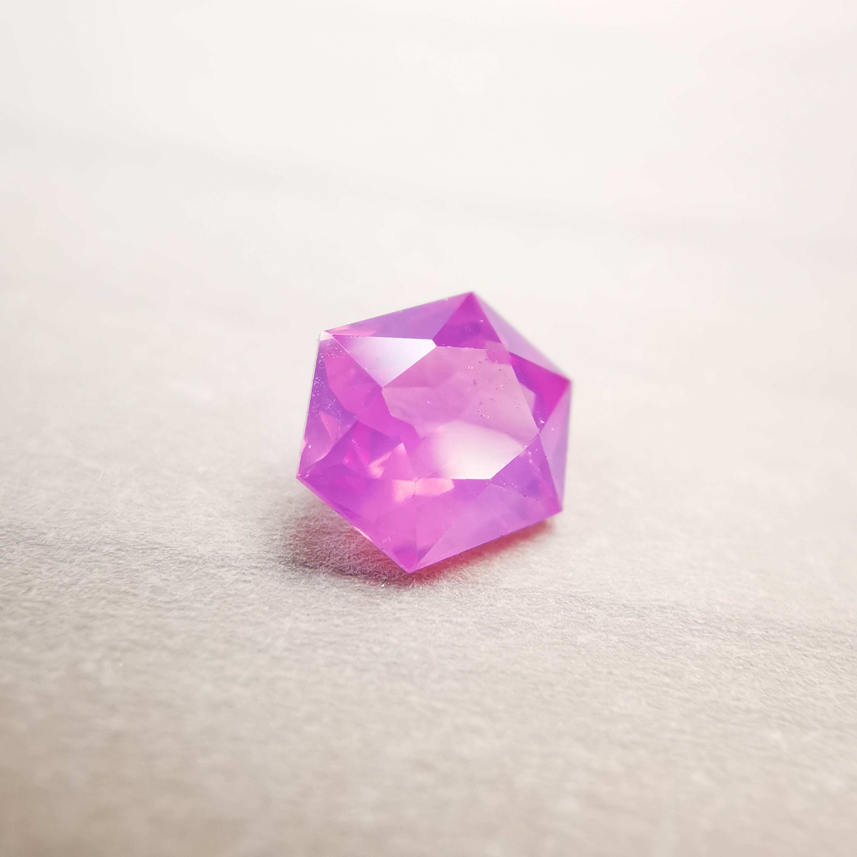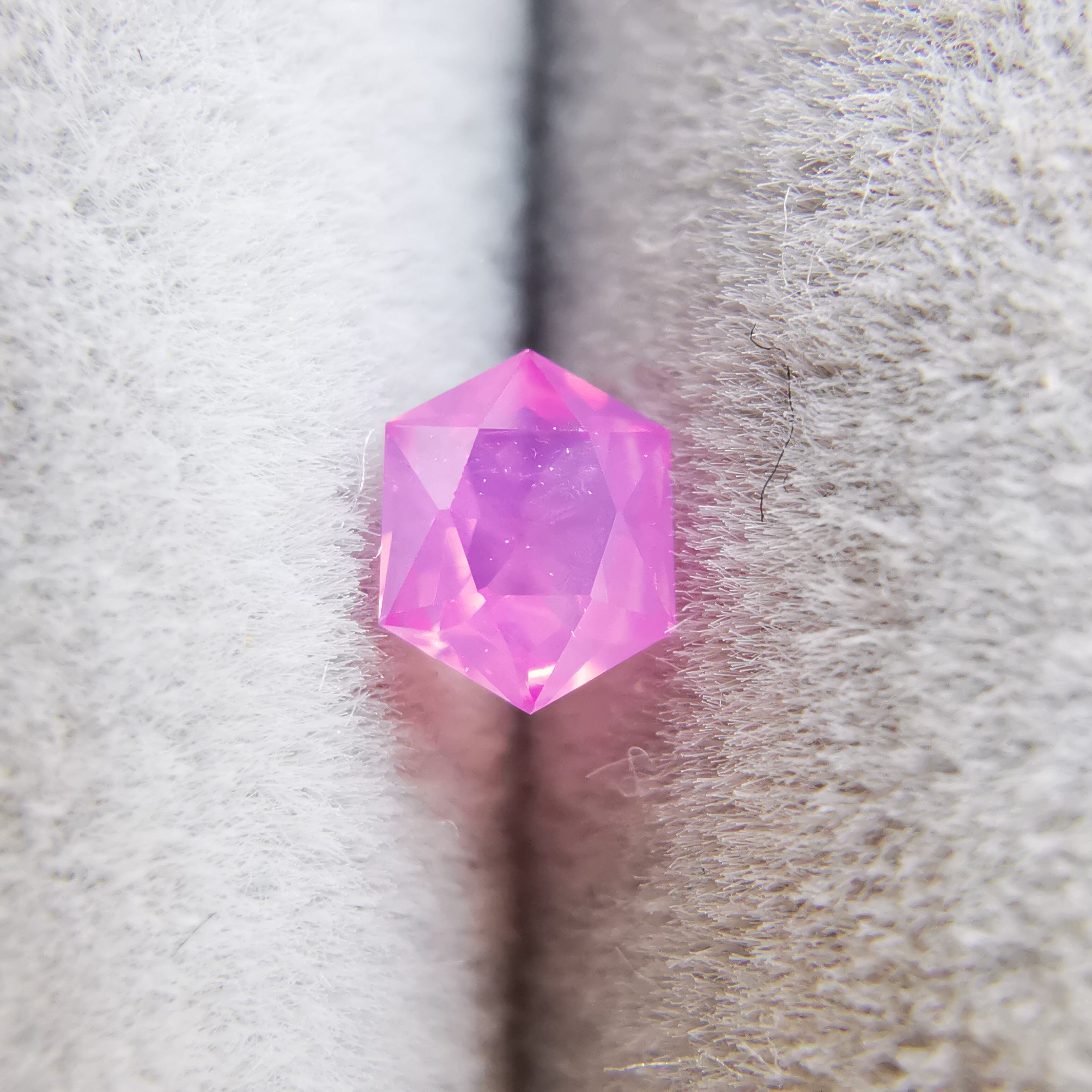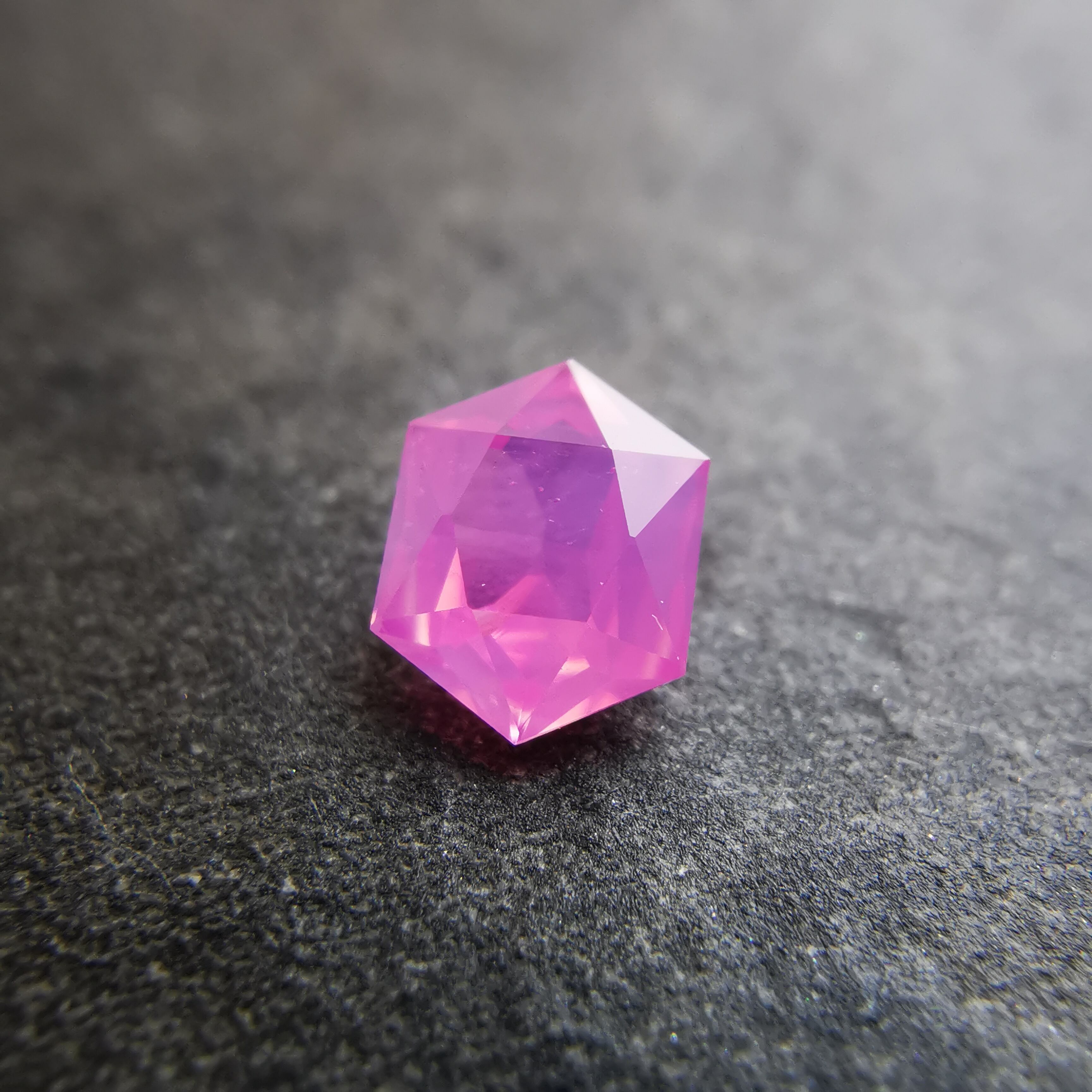 ベトナム産らしい、ピンクに白を混ぜたようなふわりとした優し気なカラーですが、ホワイトみがあってもサファイアらしい輝きはしっかりと感じられます。