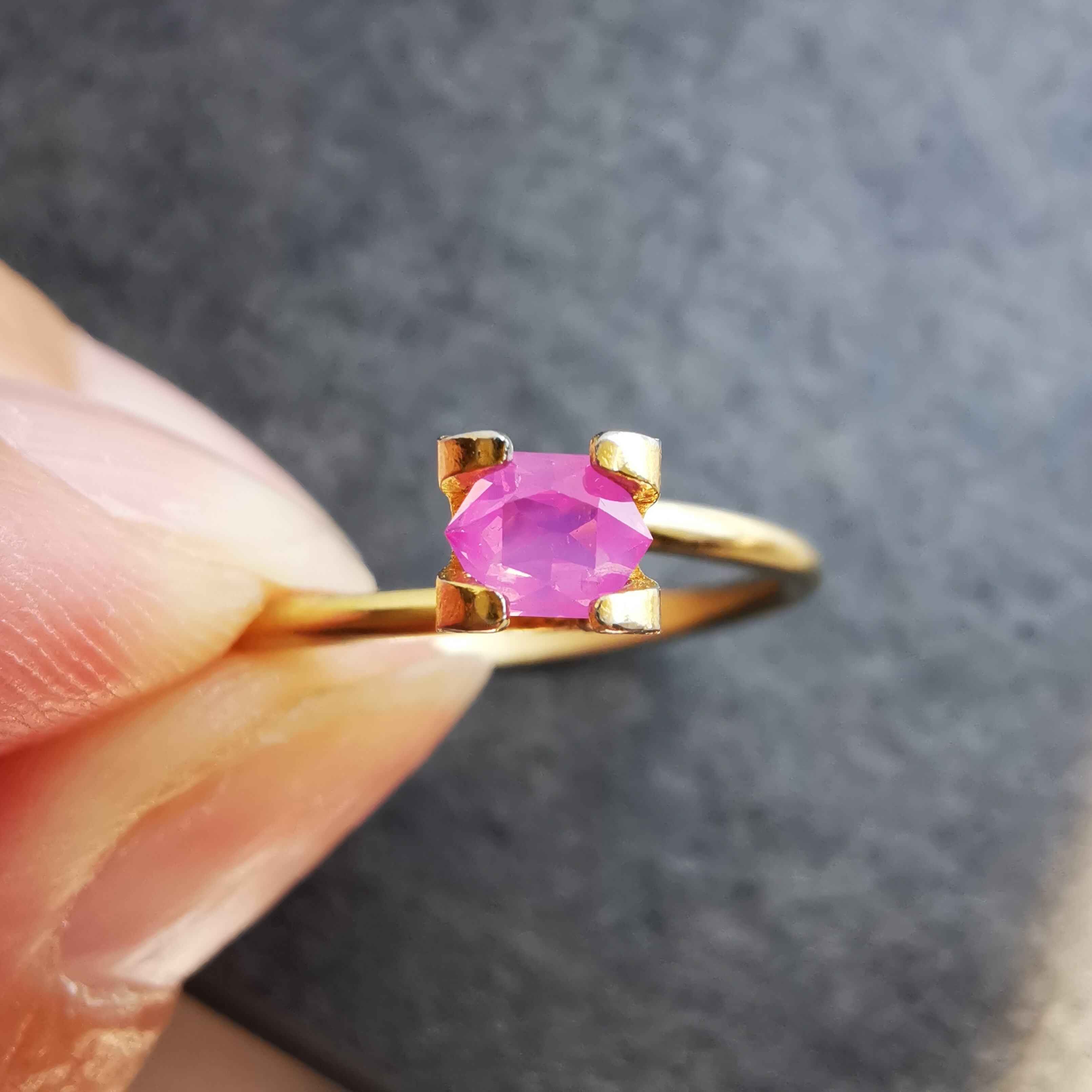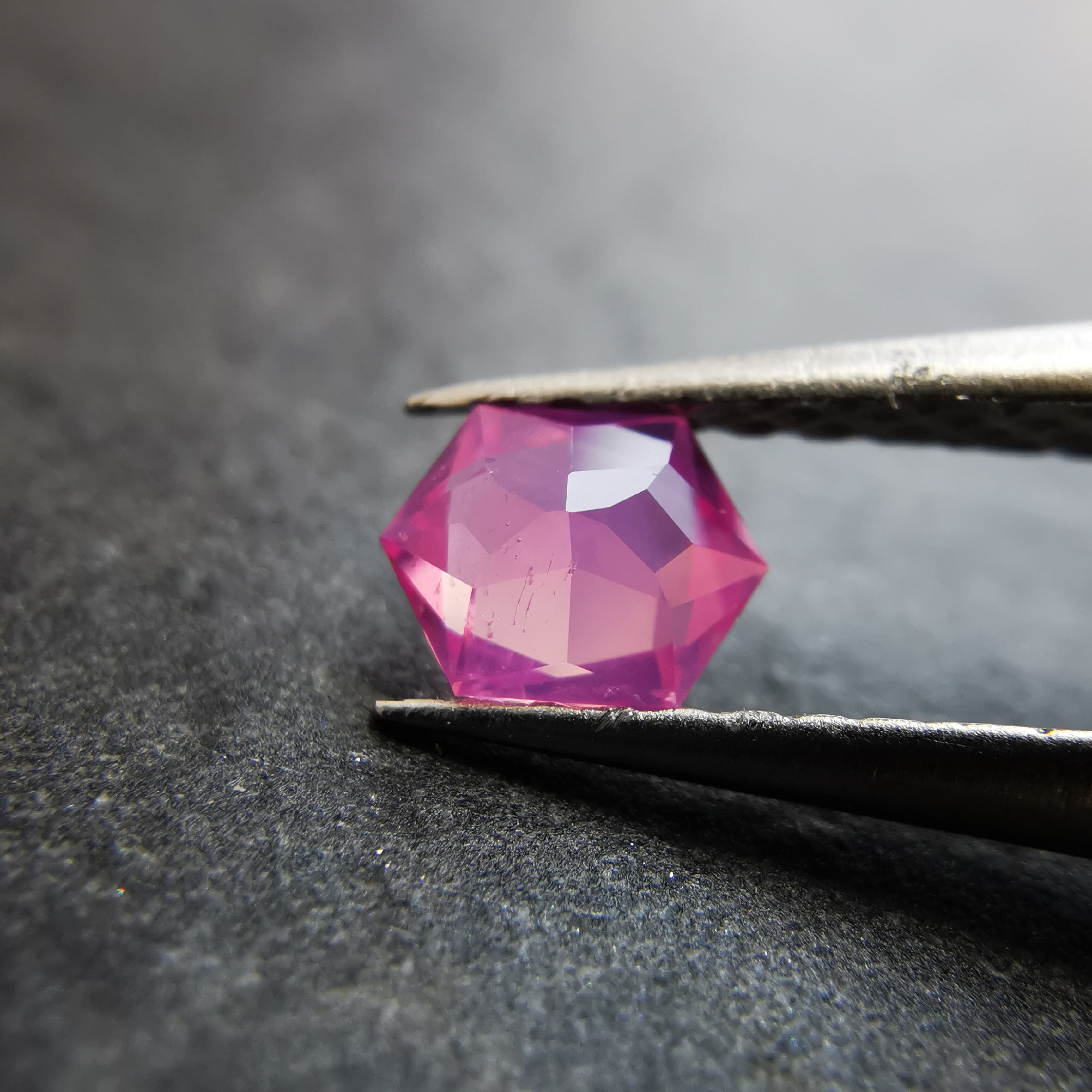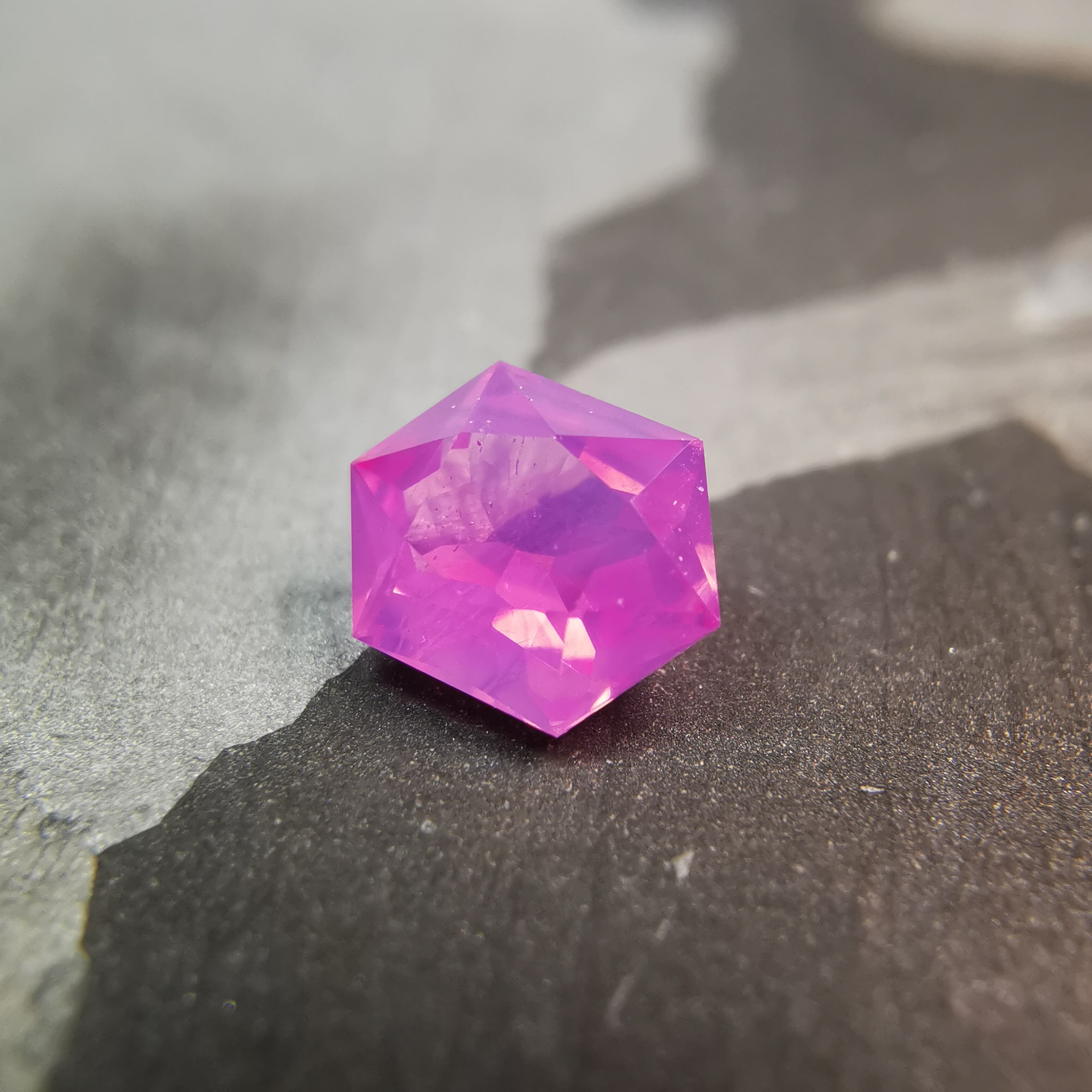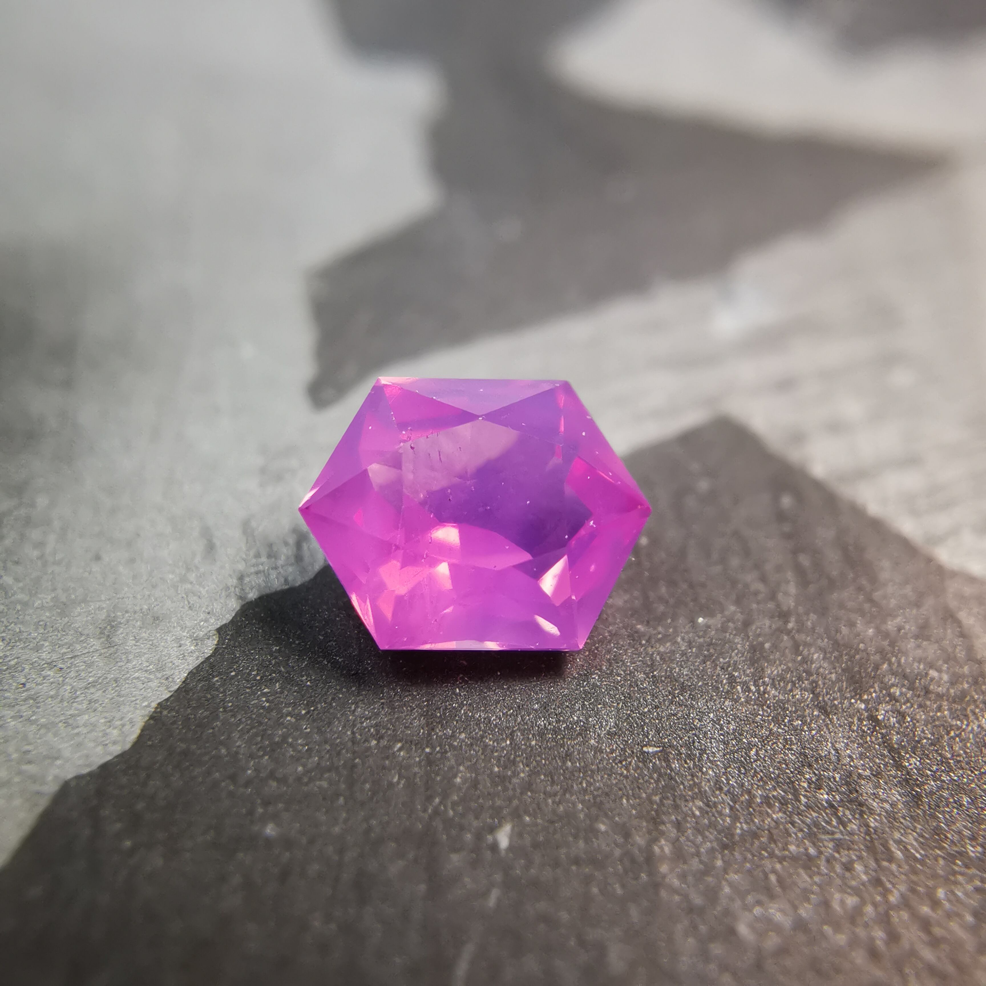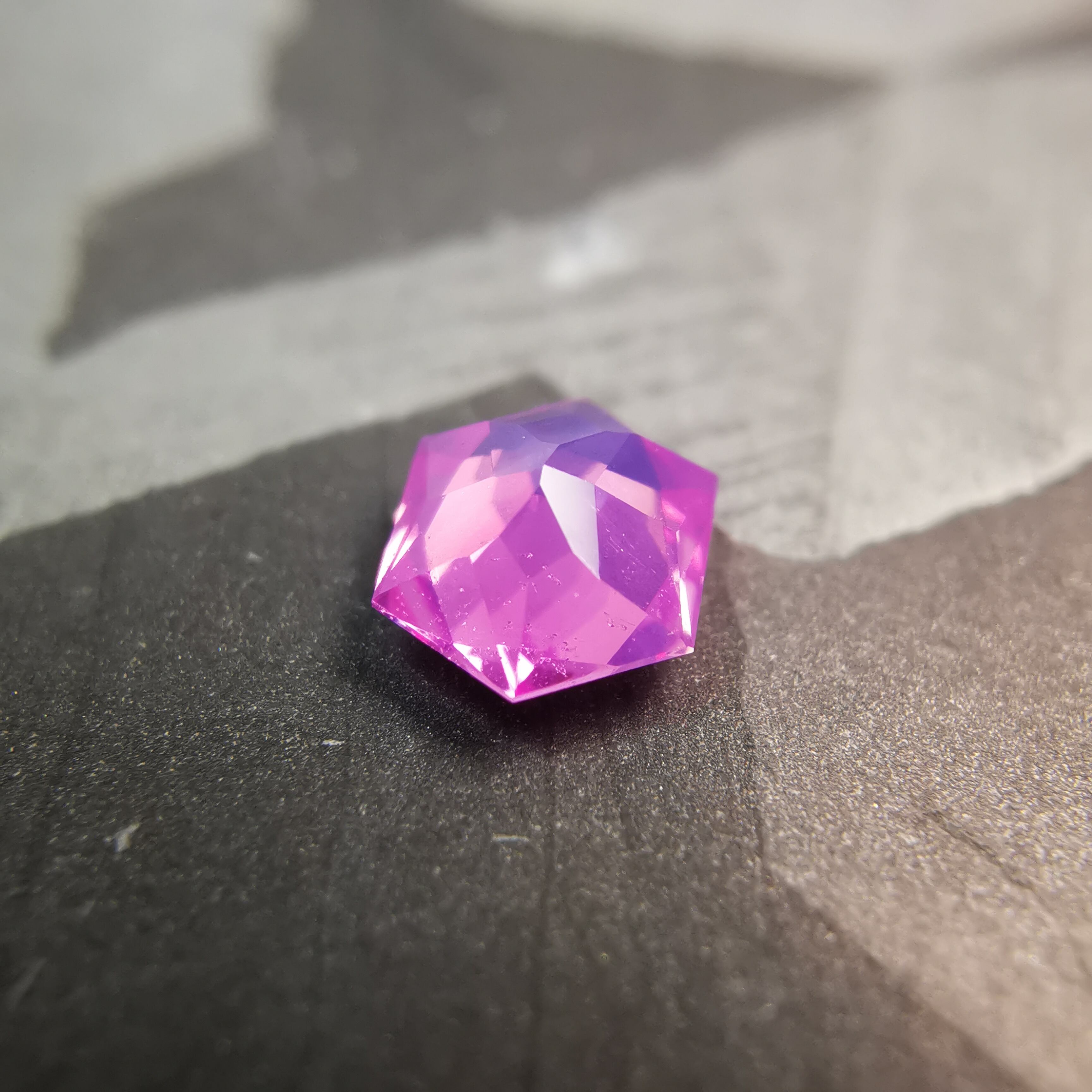 ベトナム産らしい、ピンクに白を混ぜたようなふわりとした優し気なカラーですが、ホワイトみがあってもサファイアらしい輝きはしっかりと感じられます。