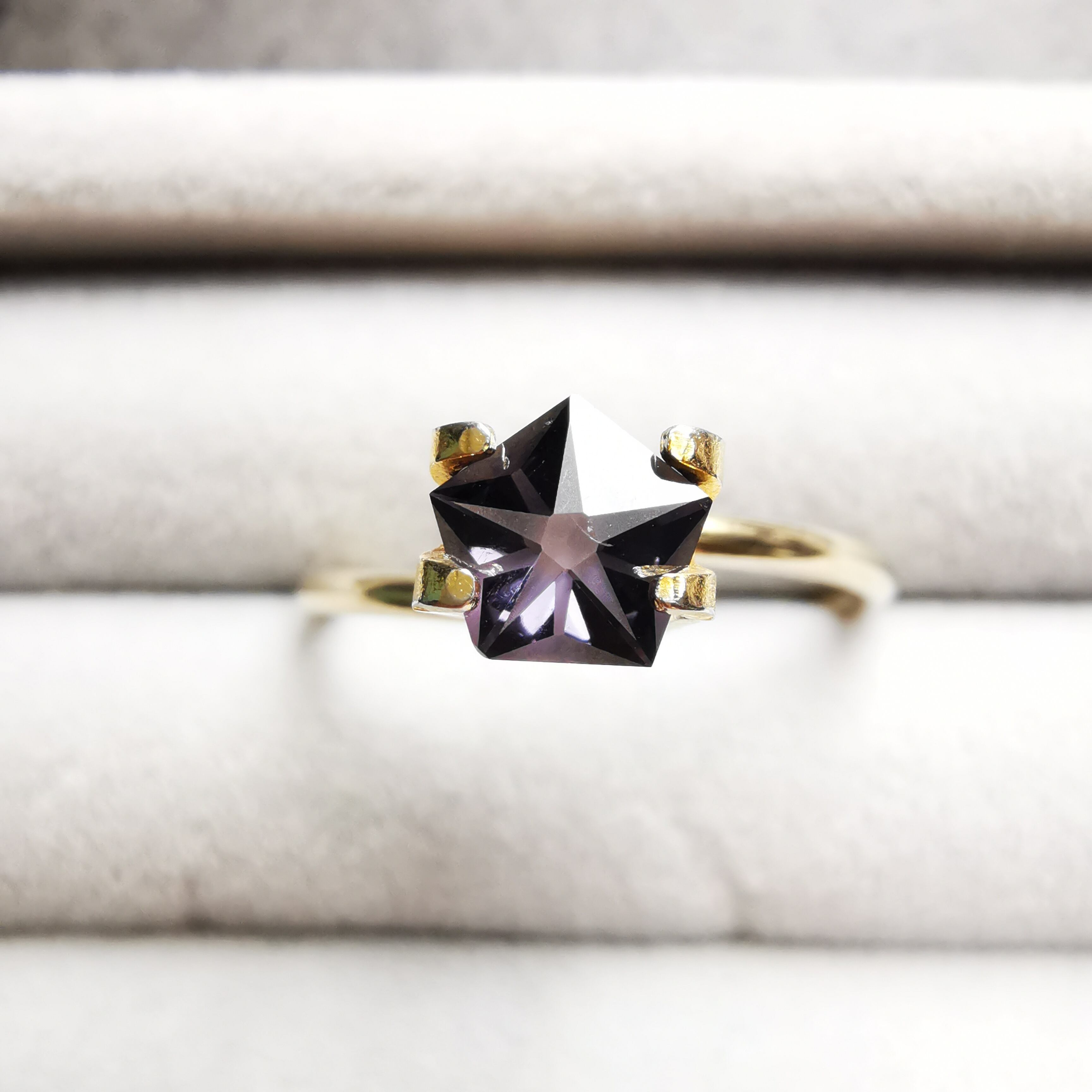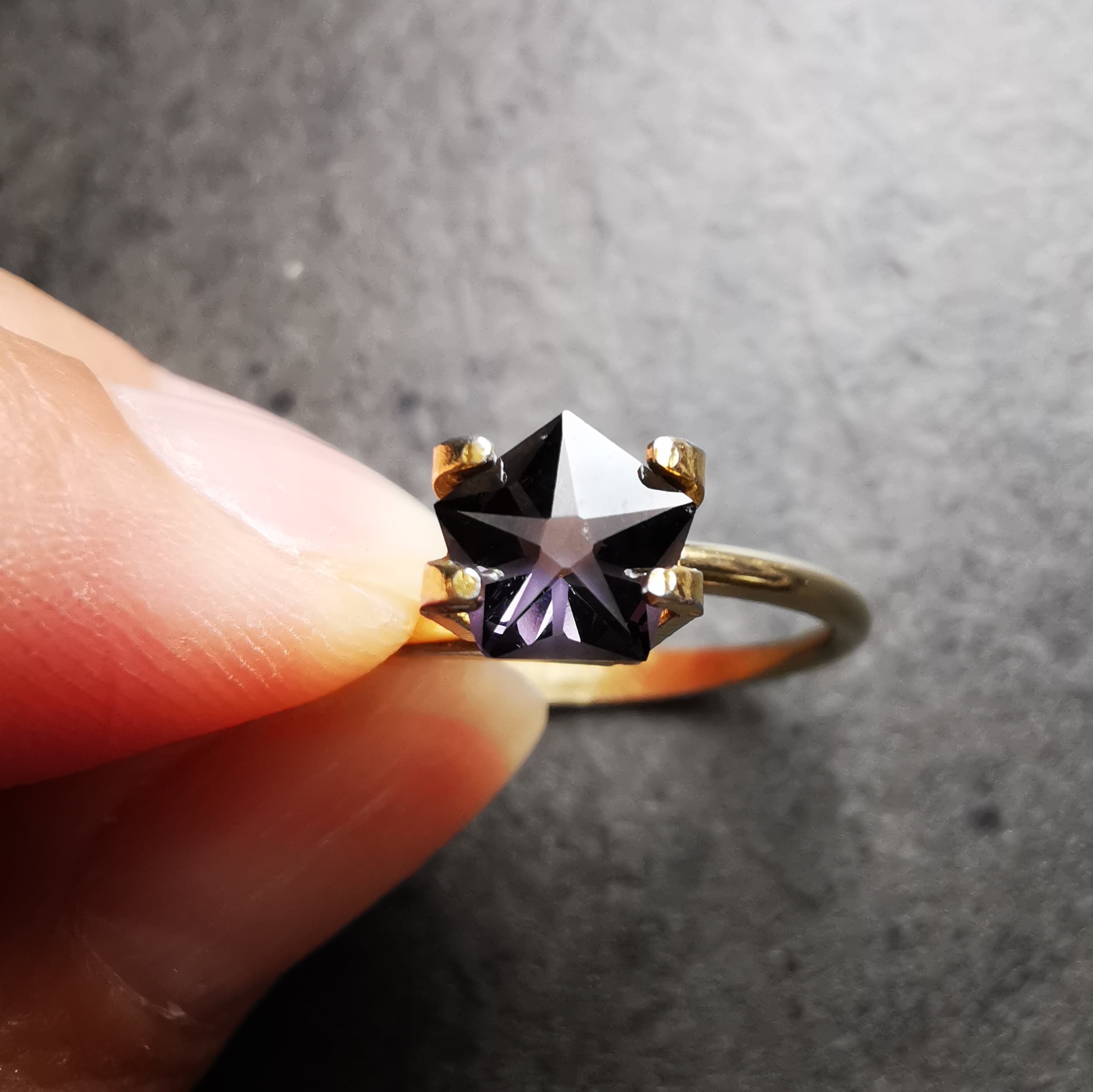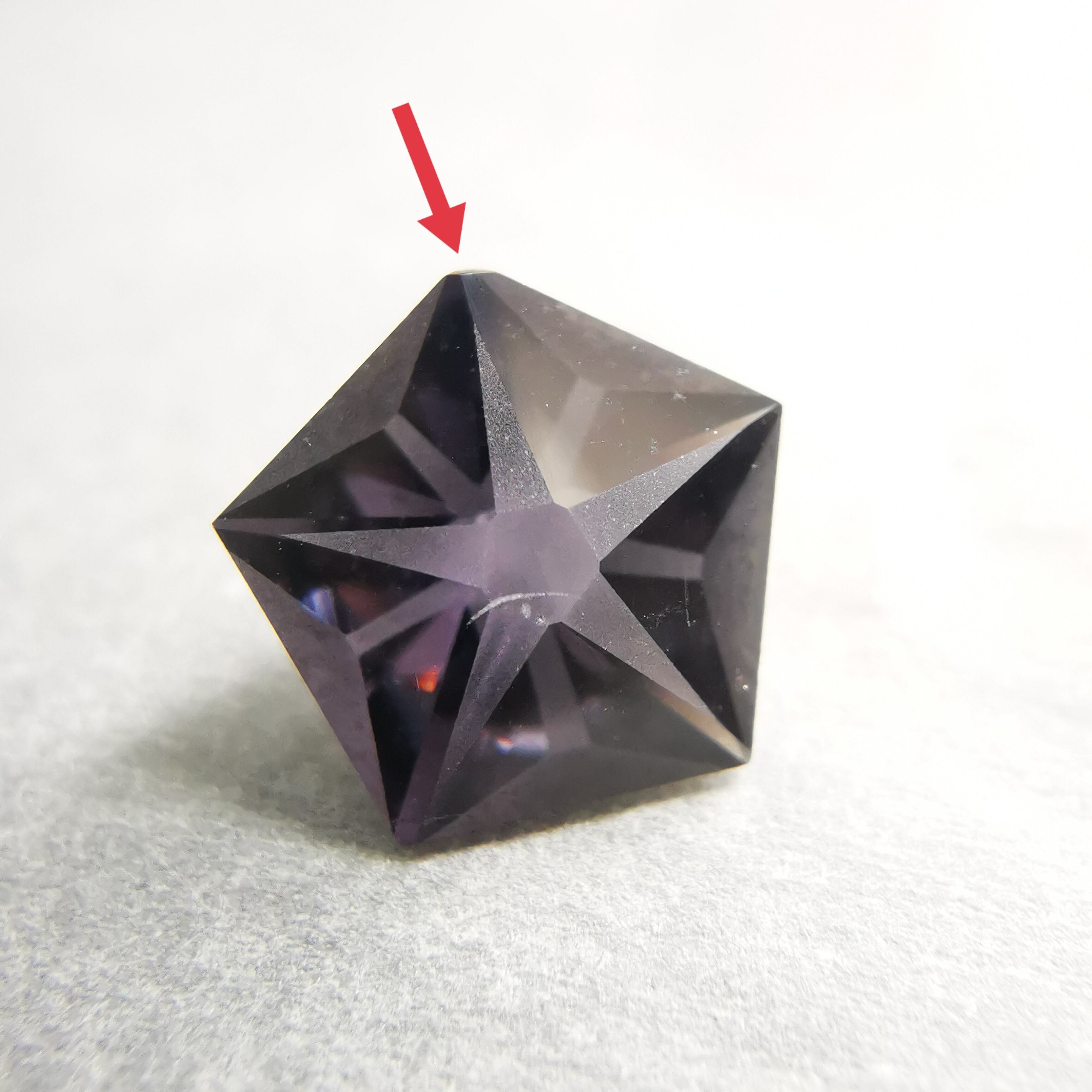 パビリオンにも梨地で模様が刻まれているため、フェイスのカットと重なると、星の後ろから広がる後光が見えてきます。