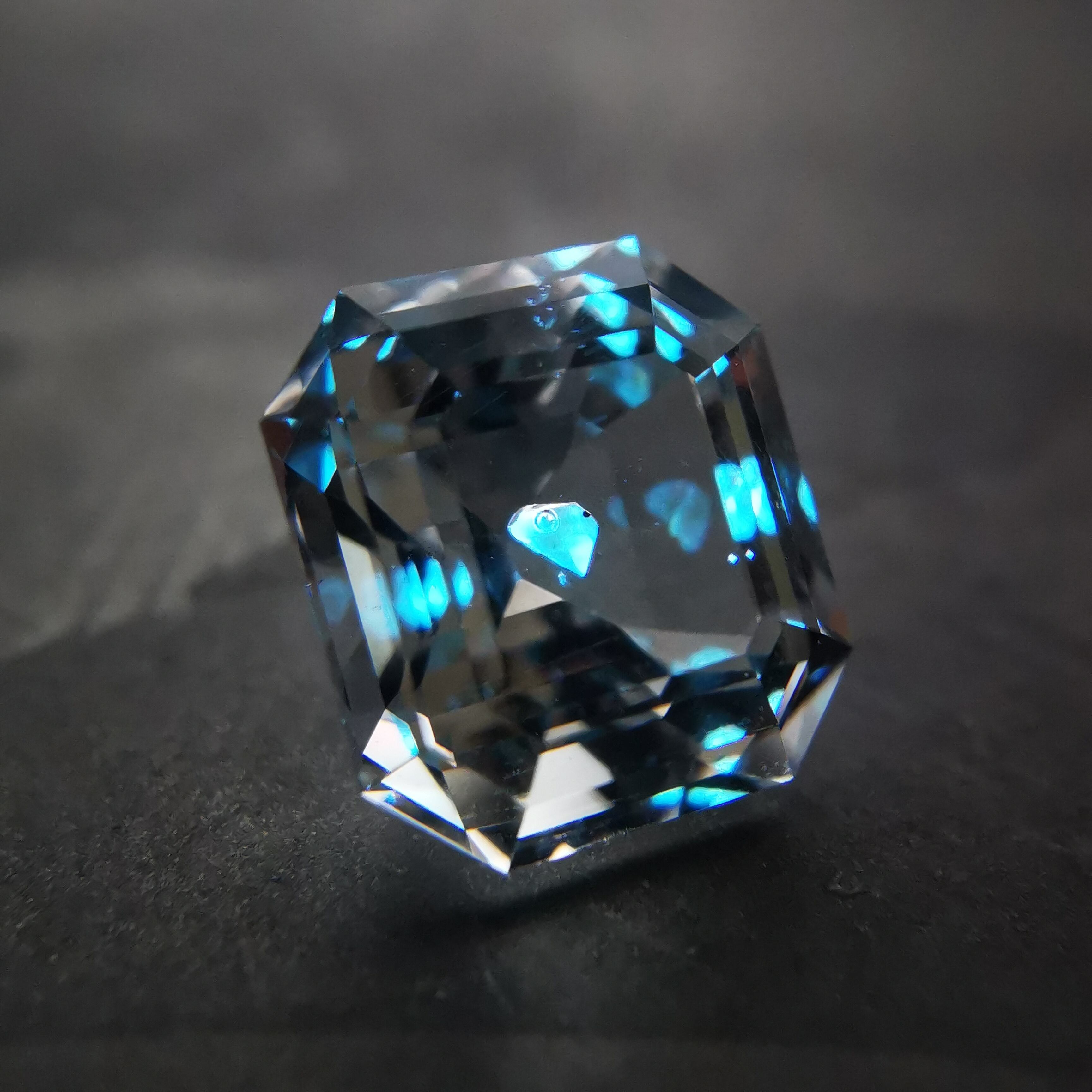 オイルはUVライトで照らすと青く蛍光するので、暗い中では青いオイルだけが宙に浮いているようです。