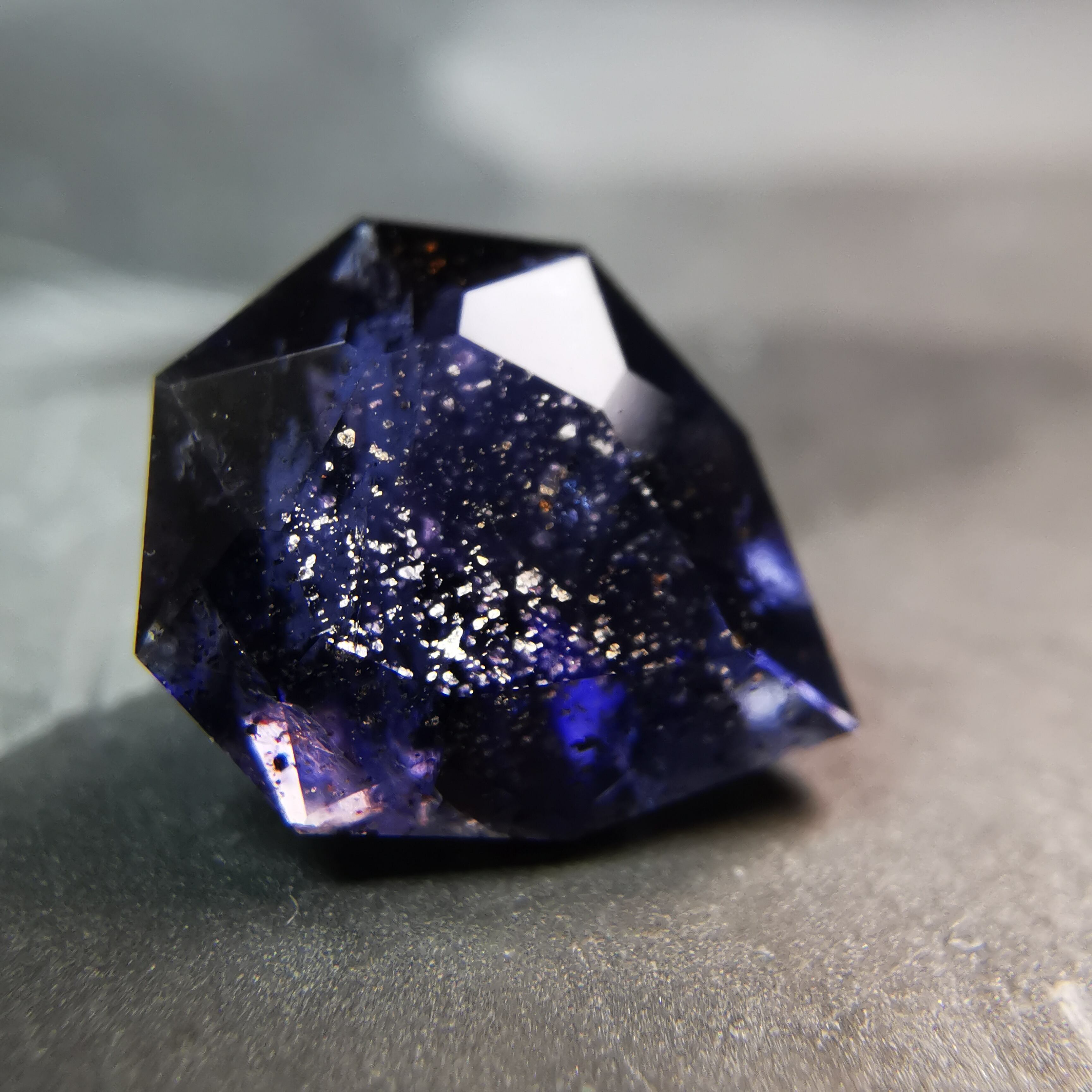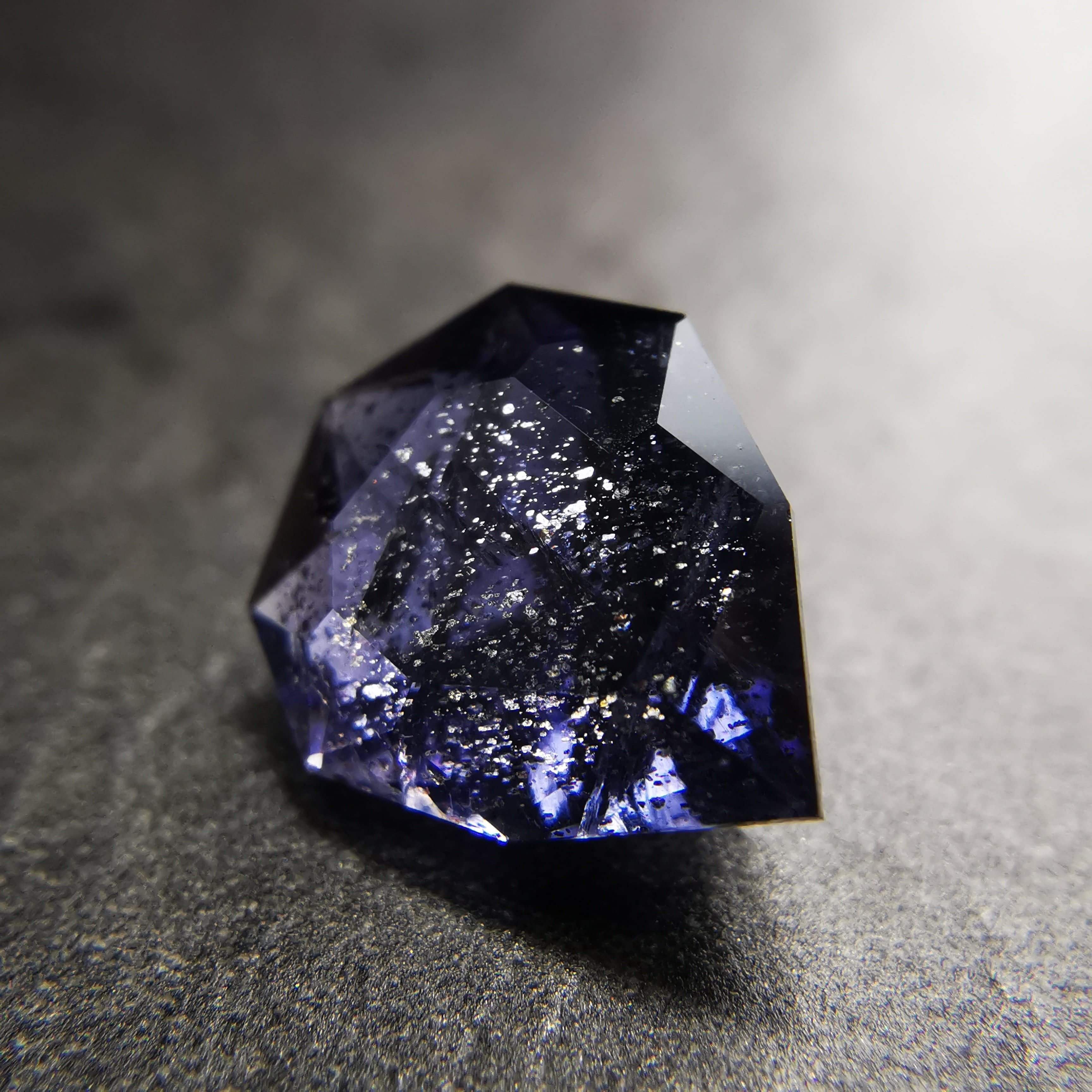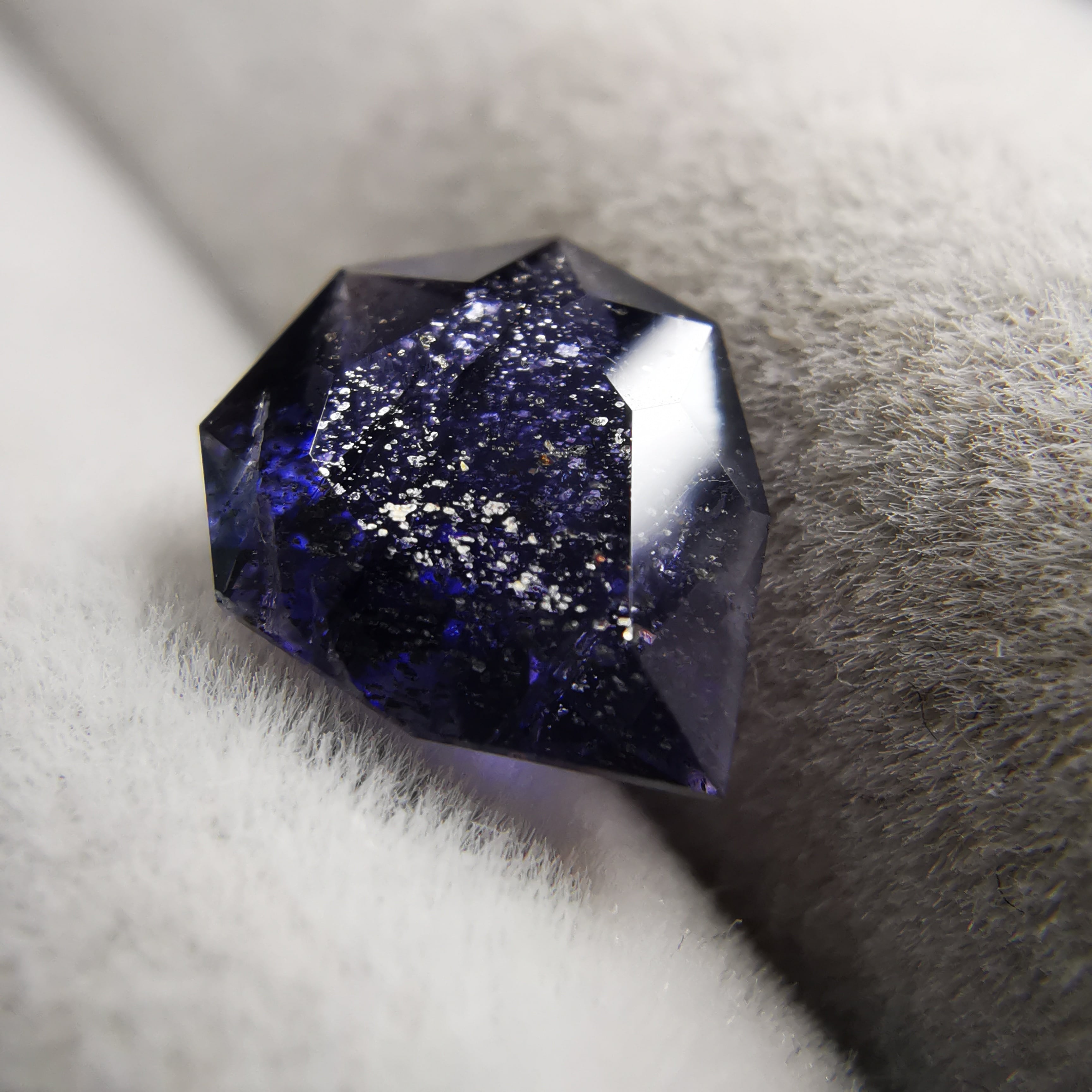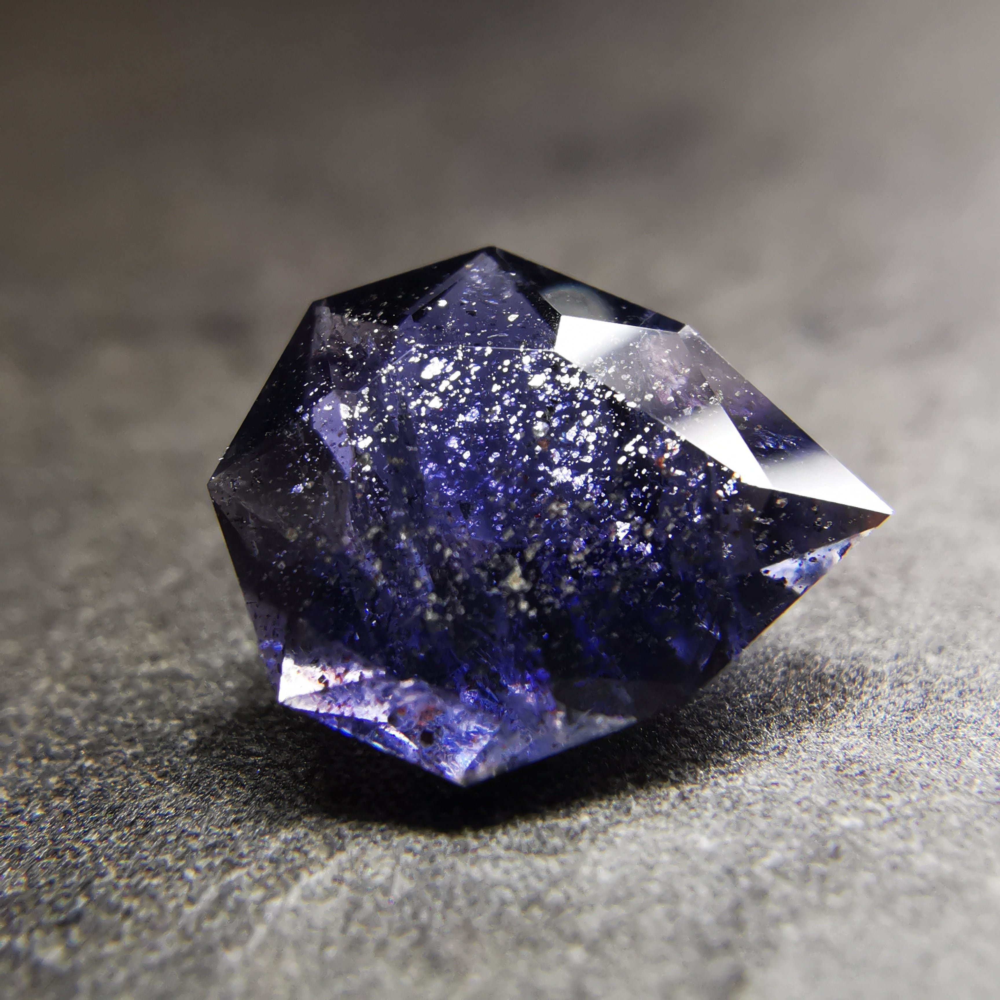 かなり黒に近い、紫みの青/杜若色(かきつばたいろ)のアイオライトです。