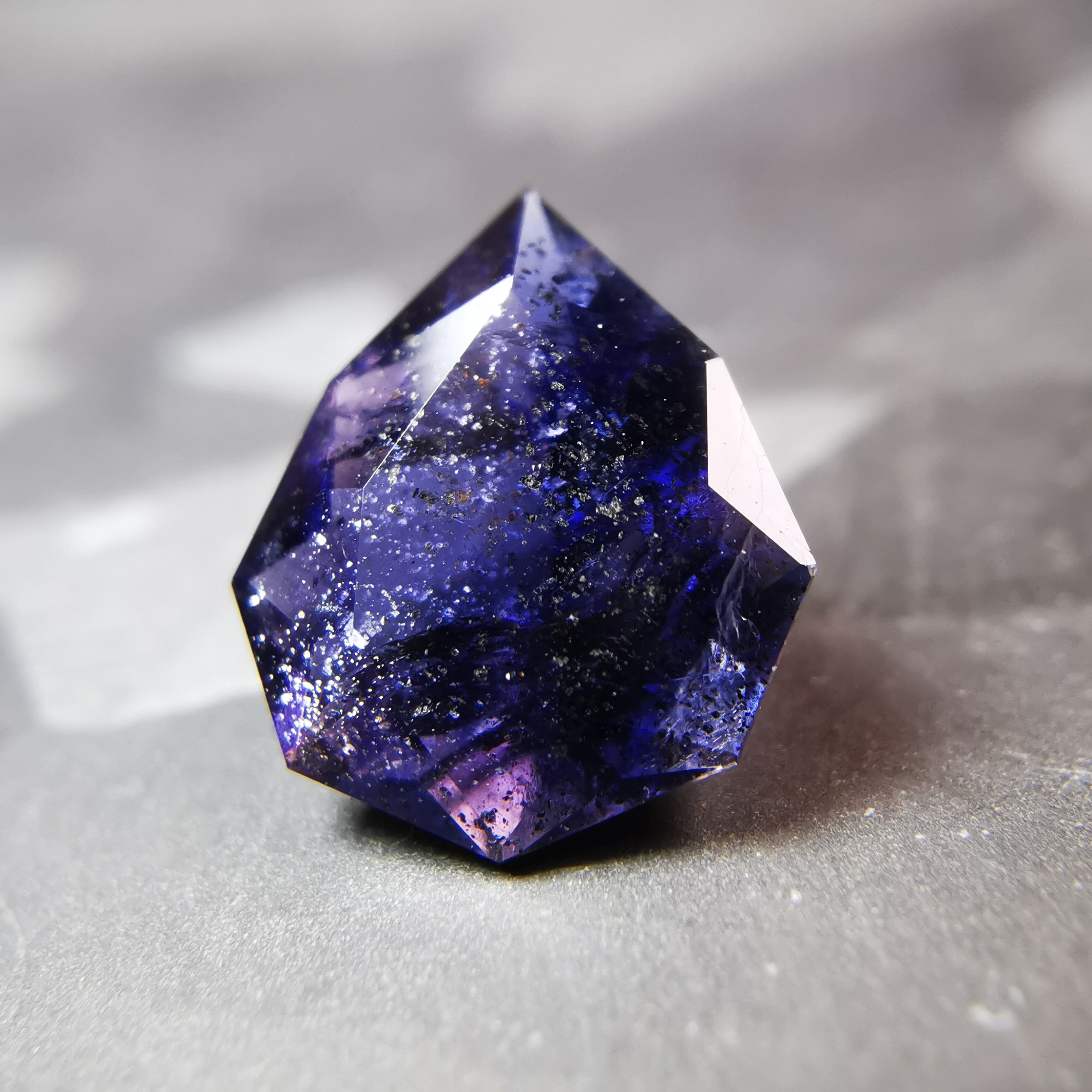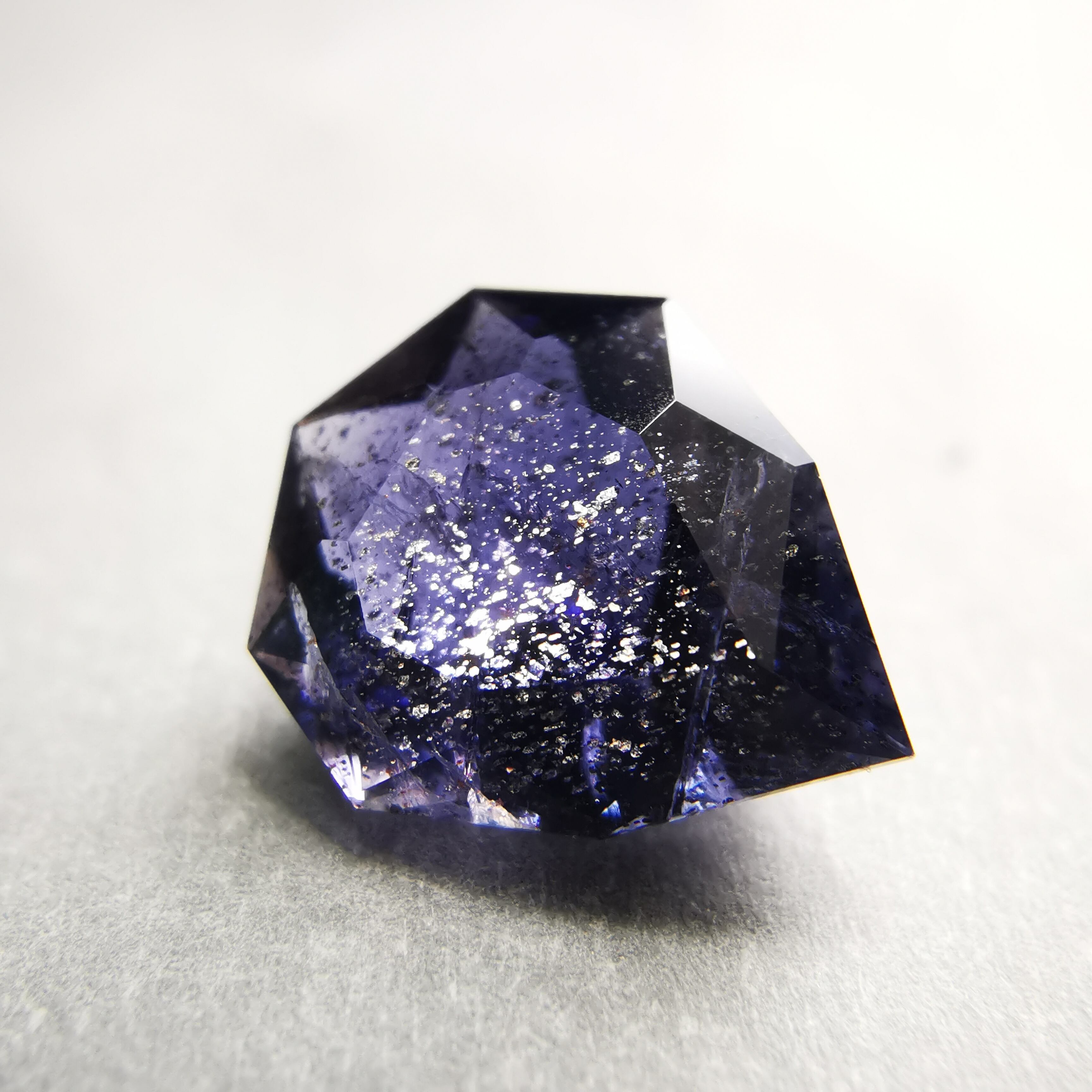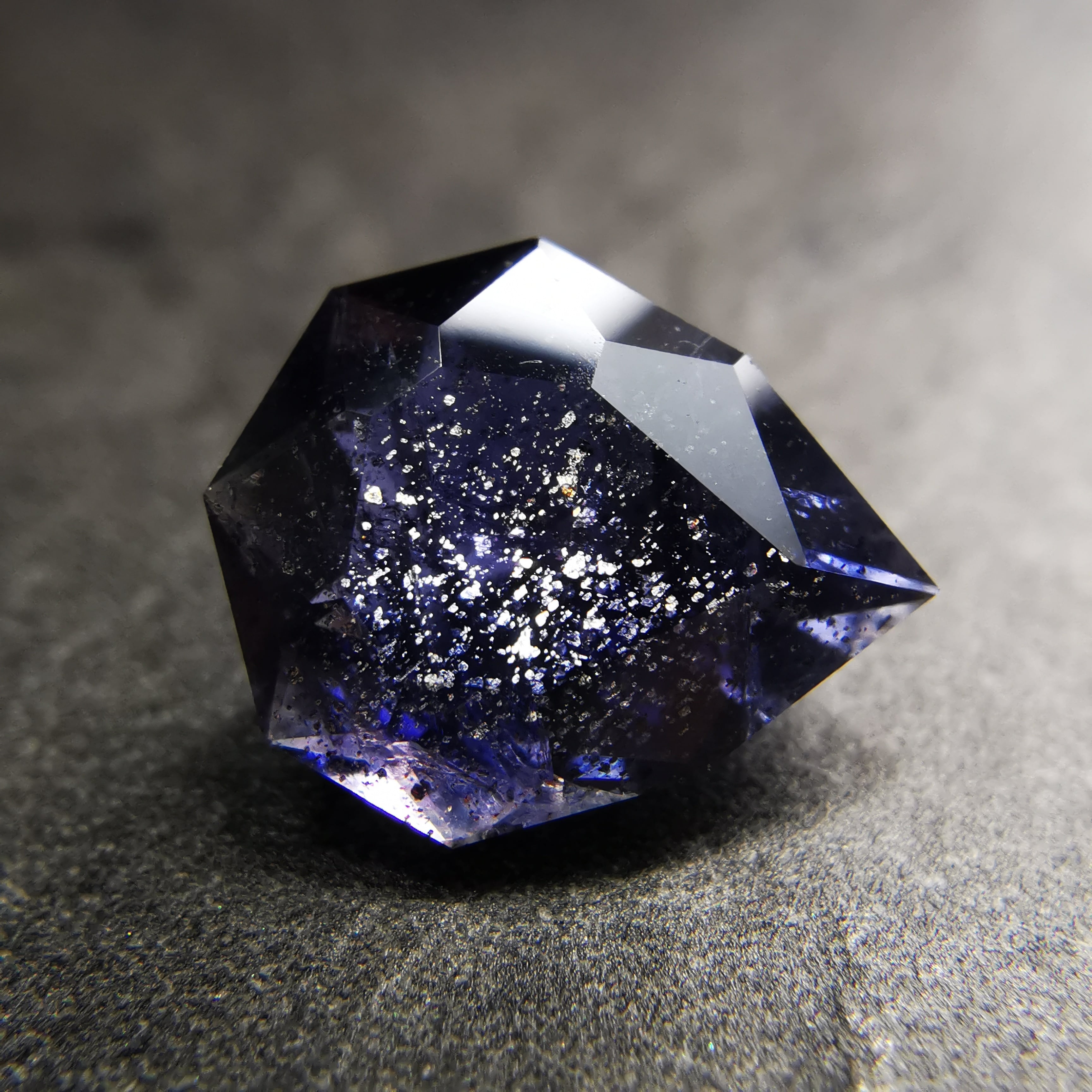 かなり黒に近い、紫みの青/杜若色(かきつばたいろ)のアイオライトです。