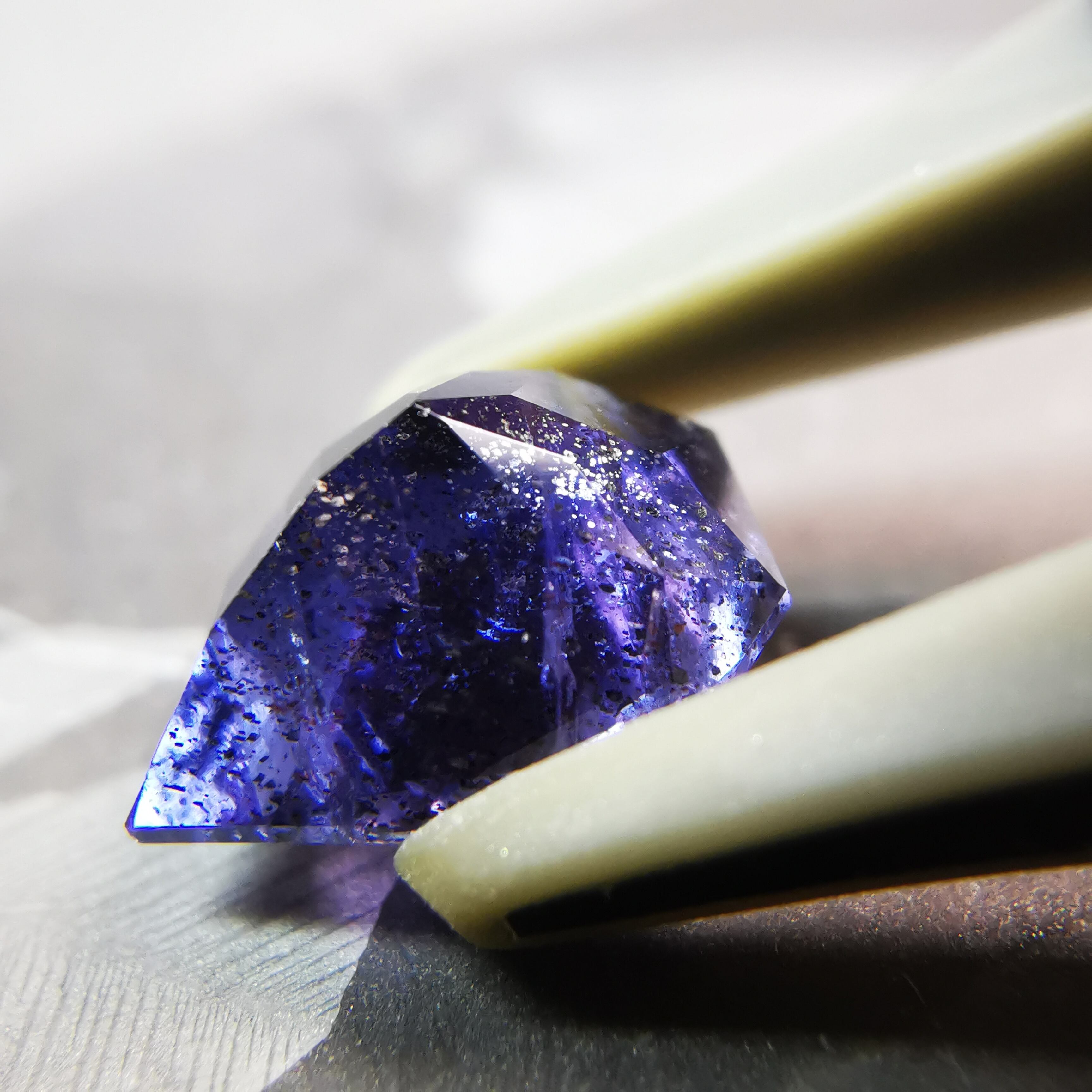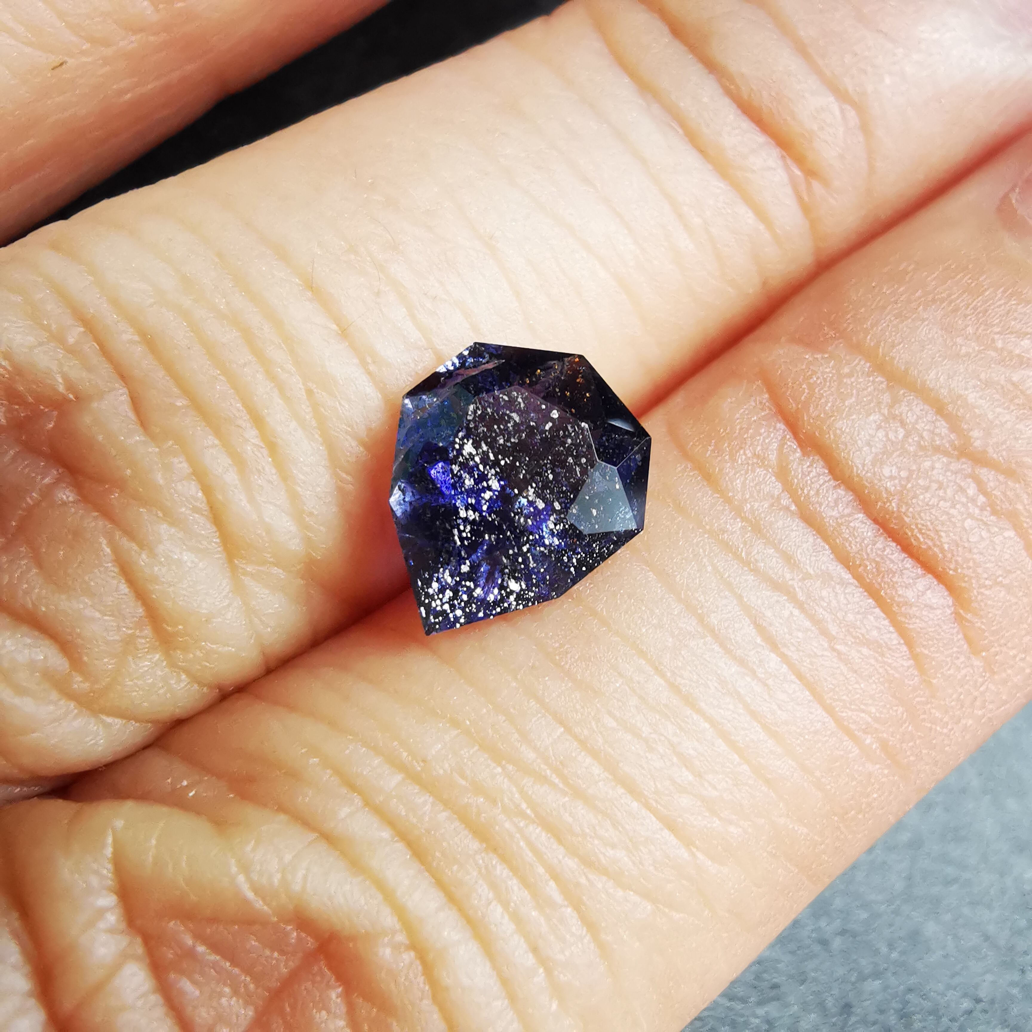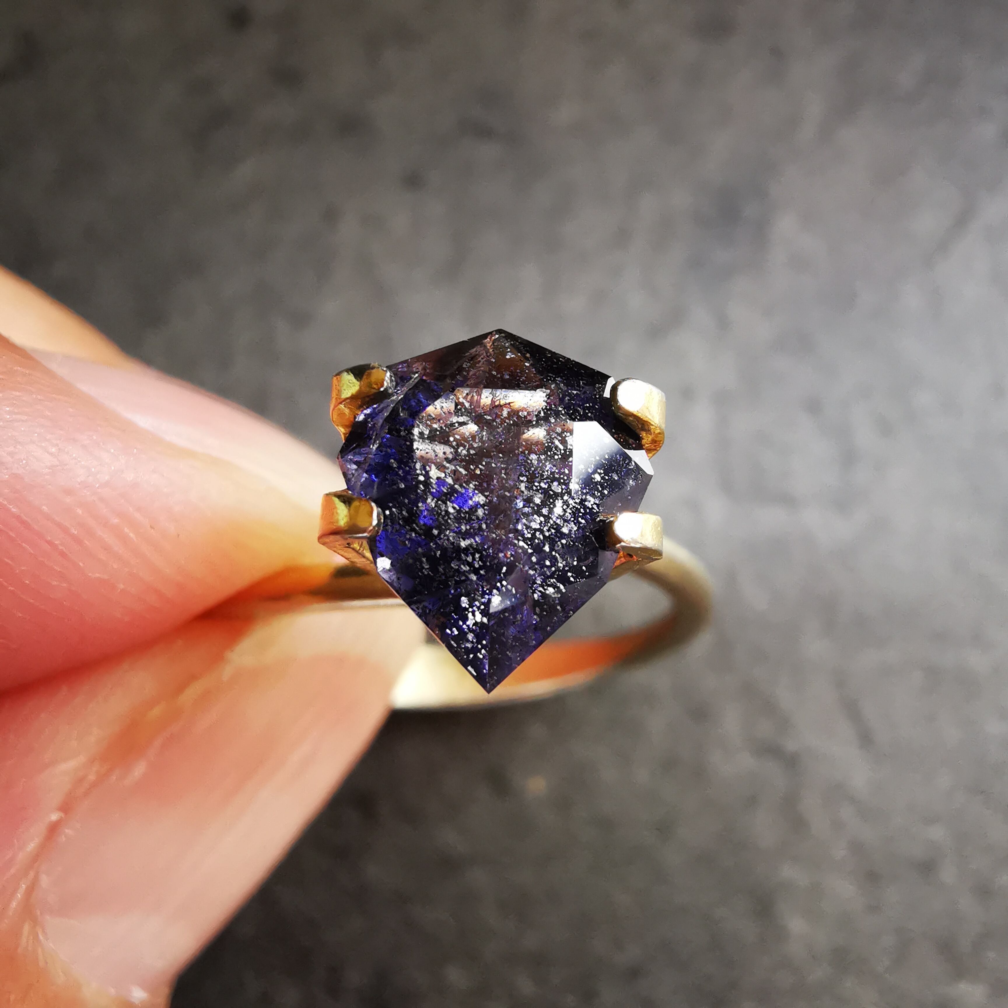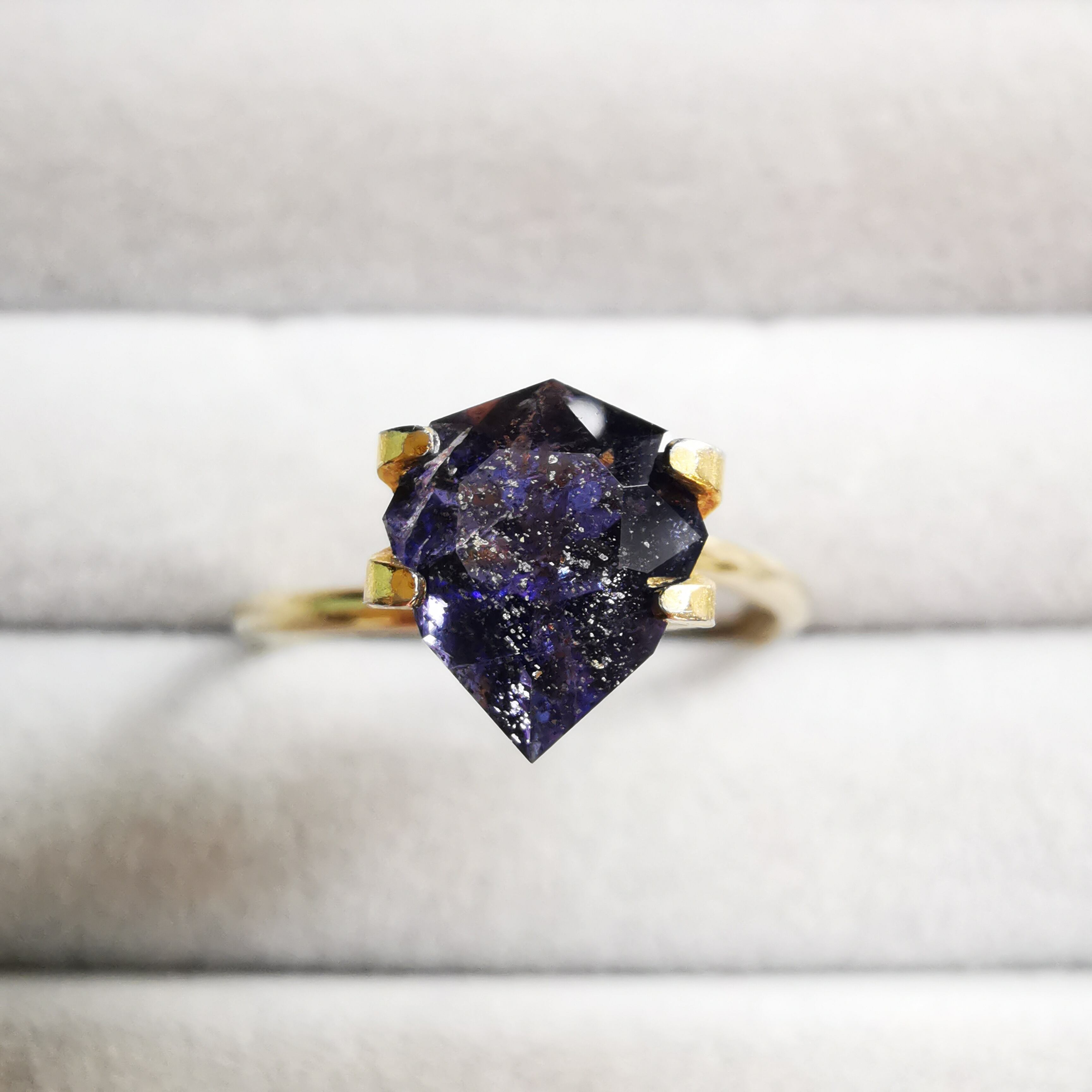 かなり黒に近い、紫みの青/杜若色(かきつばたいろ)のアイオライトです。