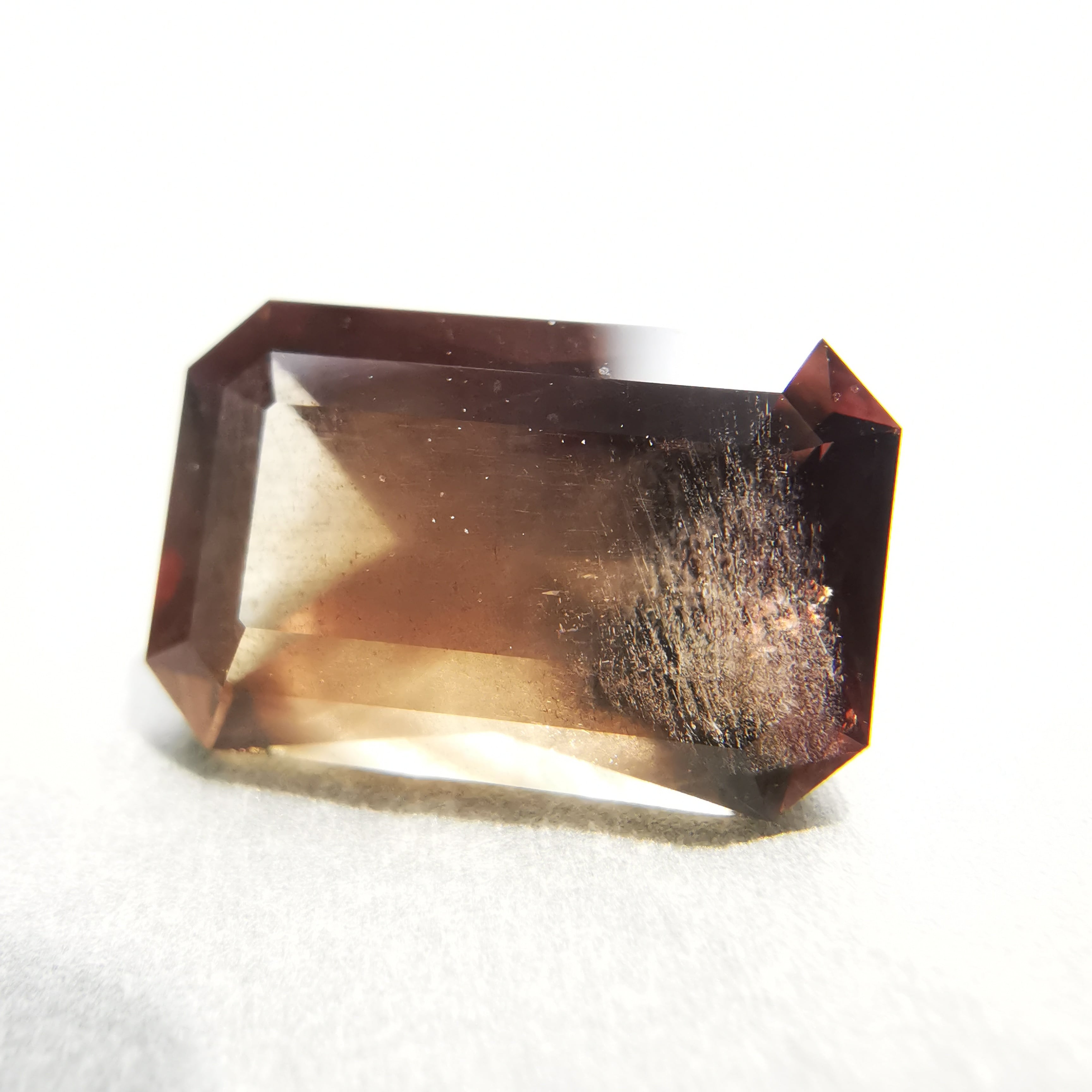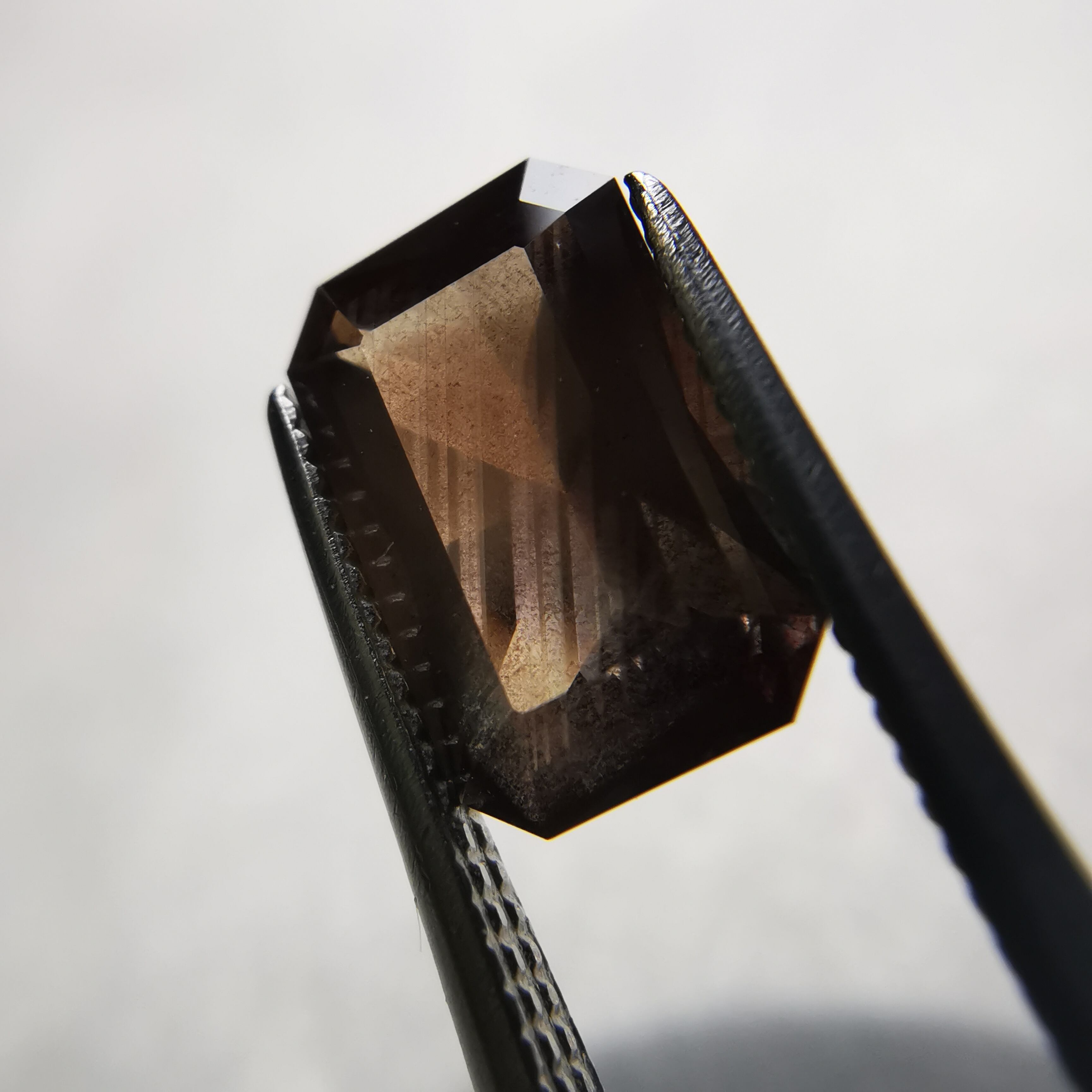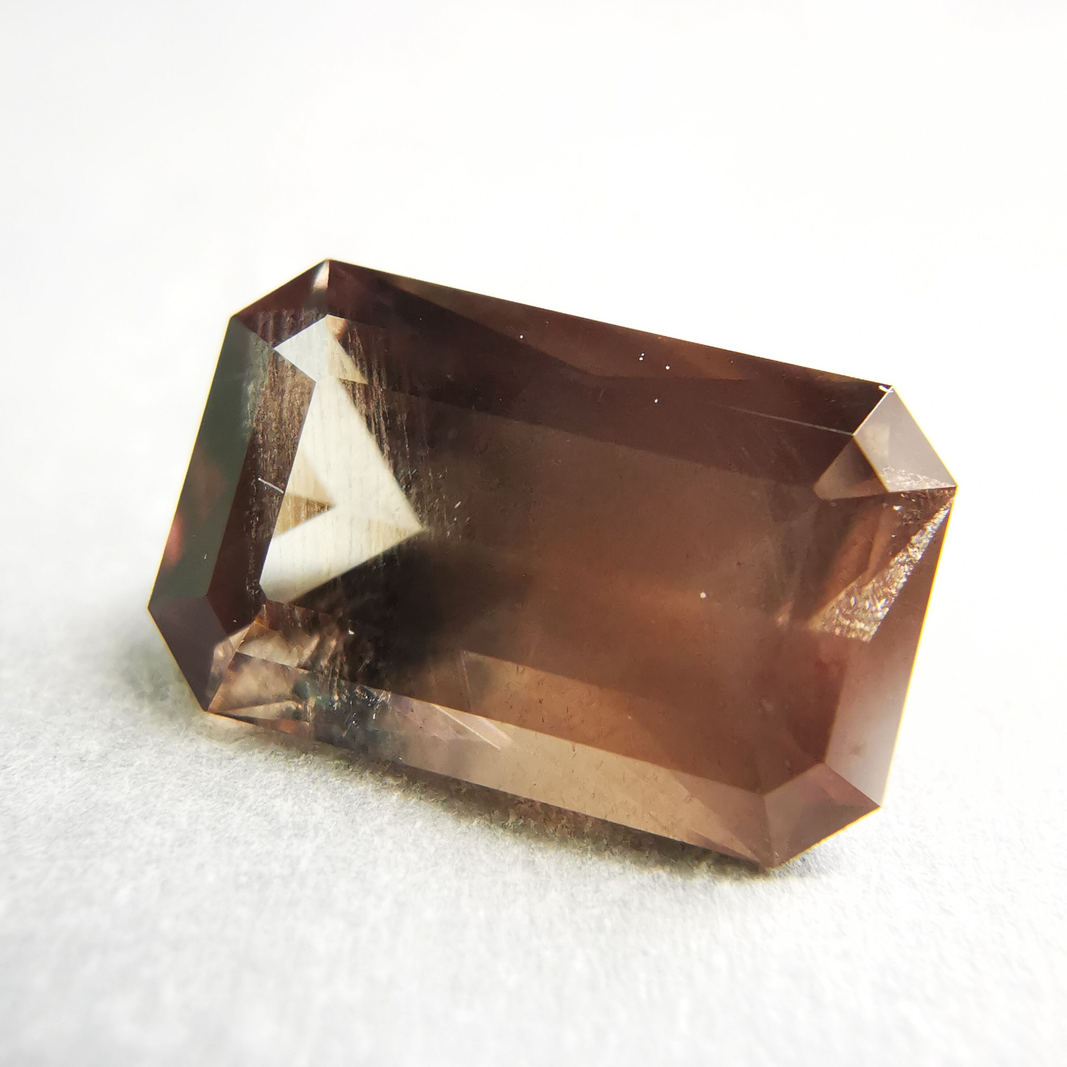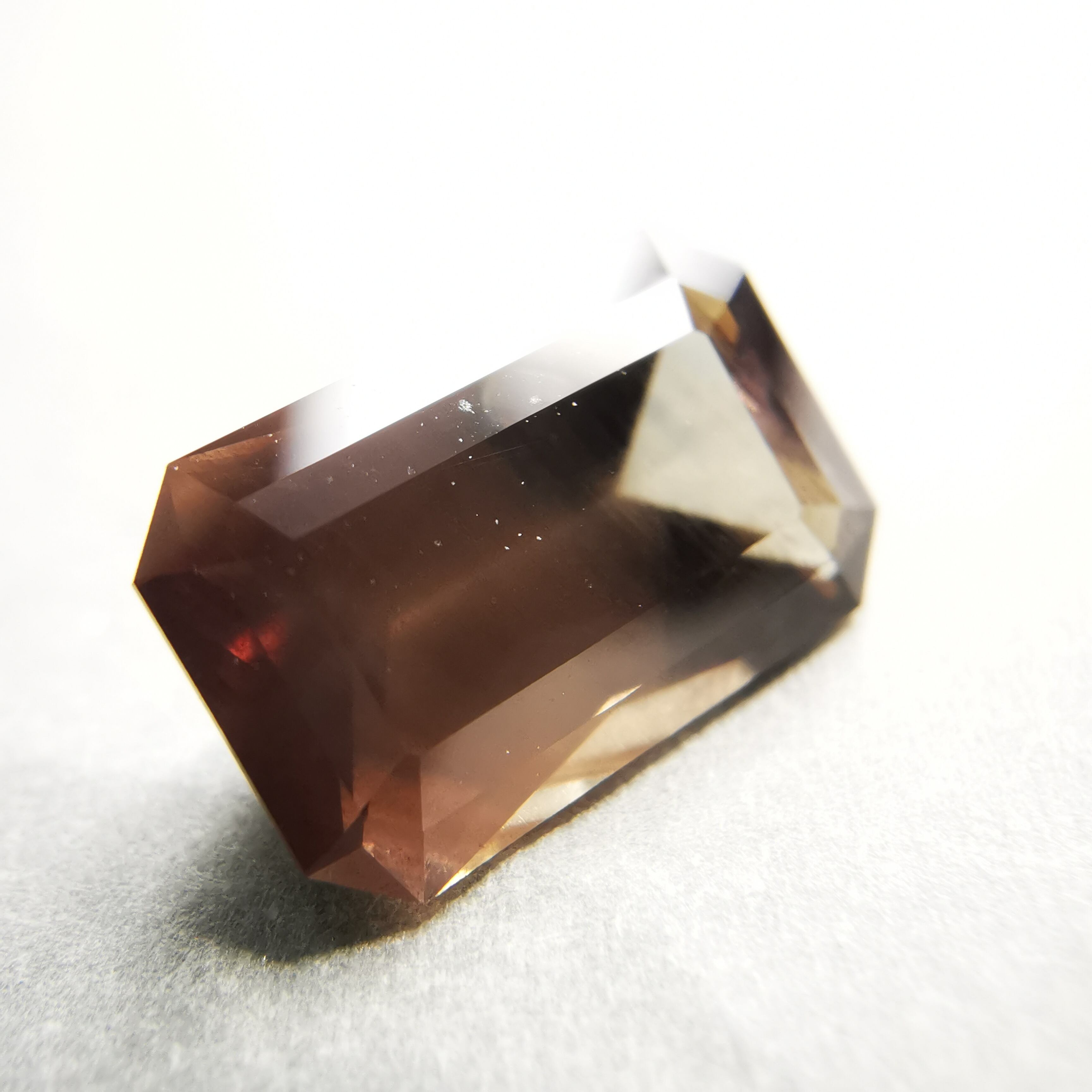 さらに、ある一定の角度から見ると、石の中を斜めに走る色帯のようなものが見え、パビリオンではその色帯がわずかに虹色に光ります。(写真14)