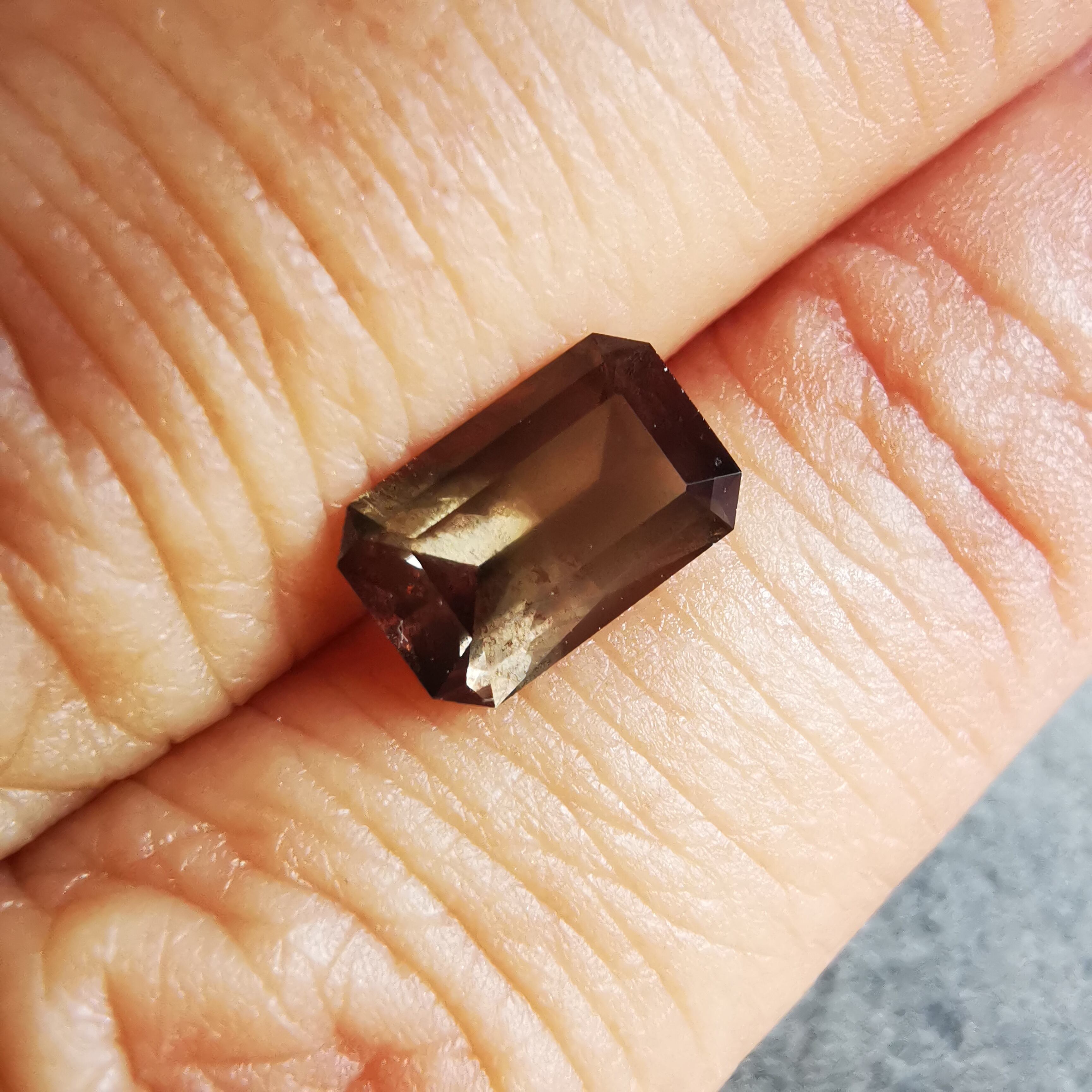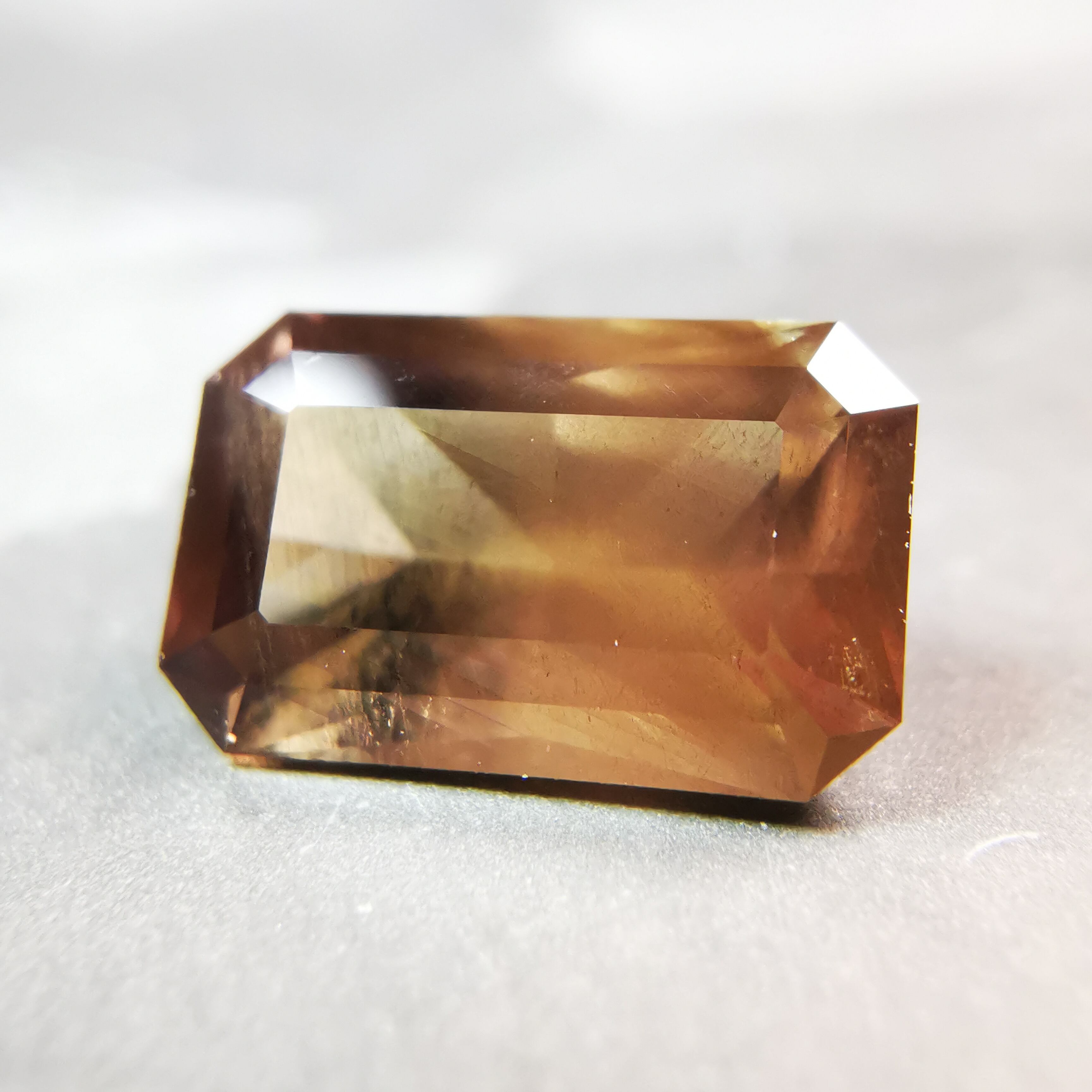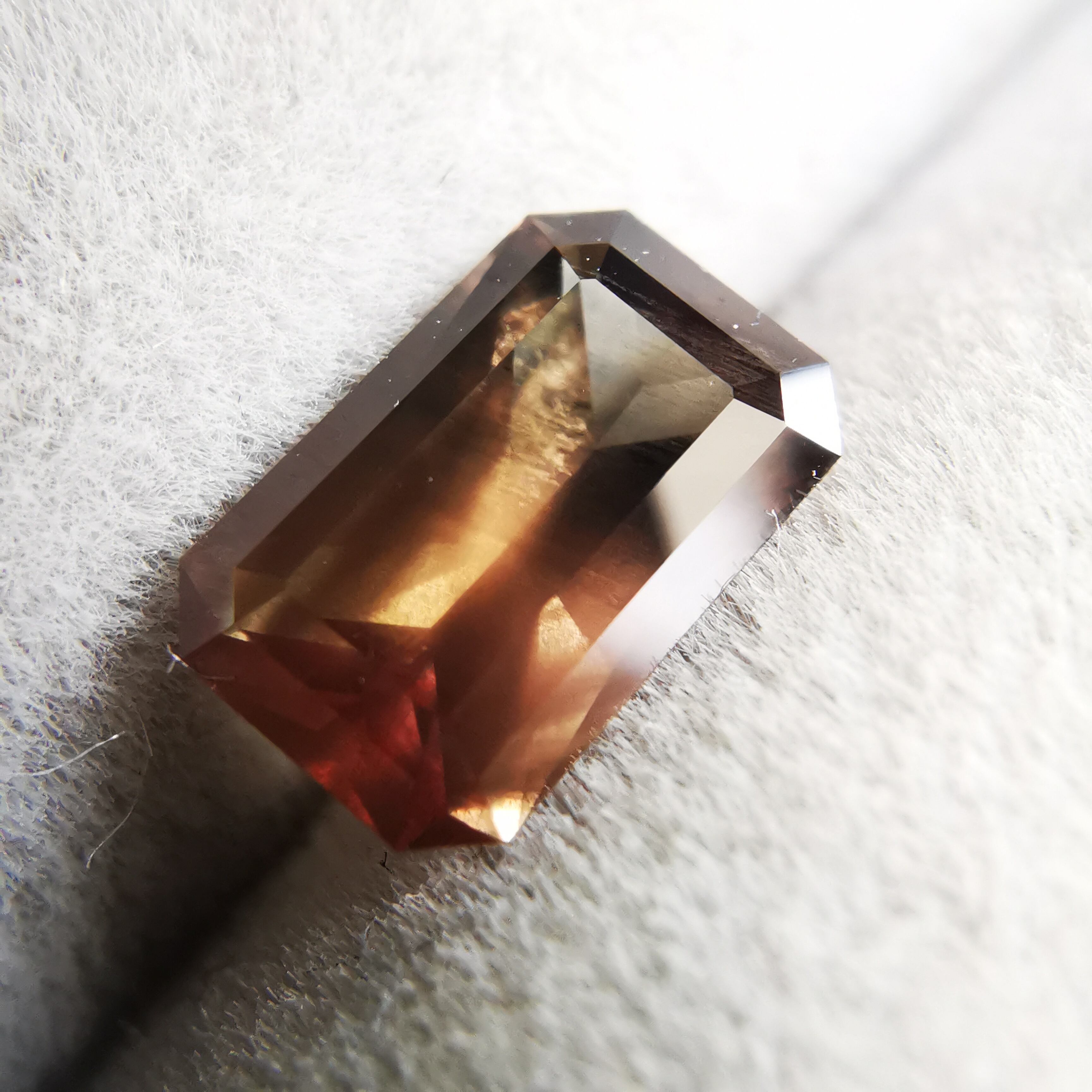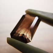 黄茶色のサファイアに、とても細かい金色のシラーが入りました。
