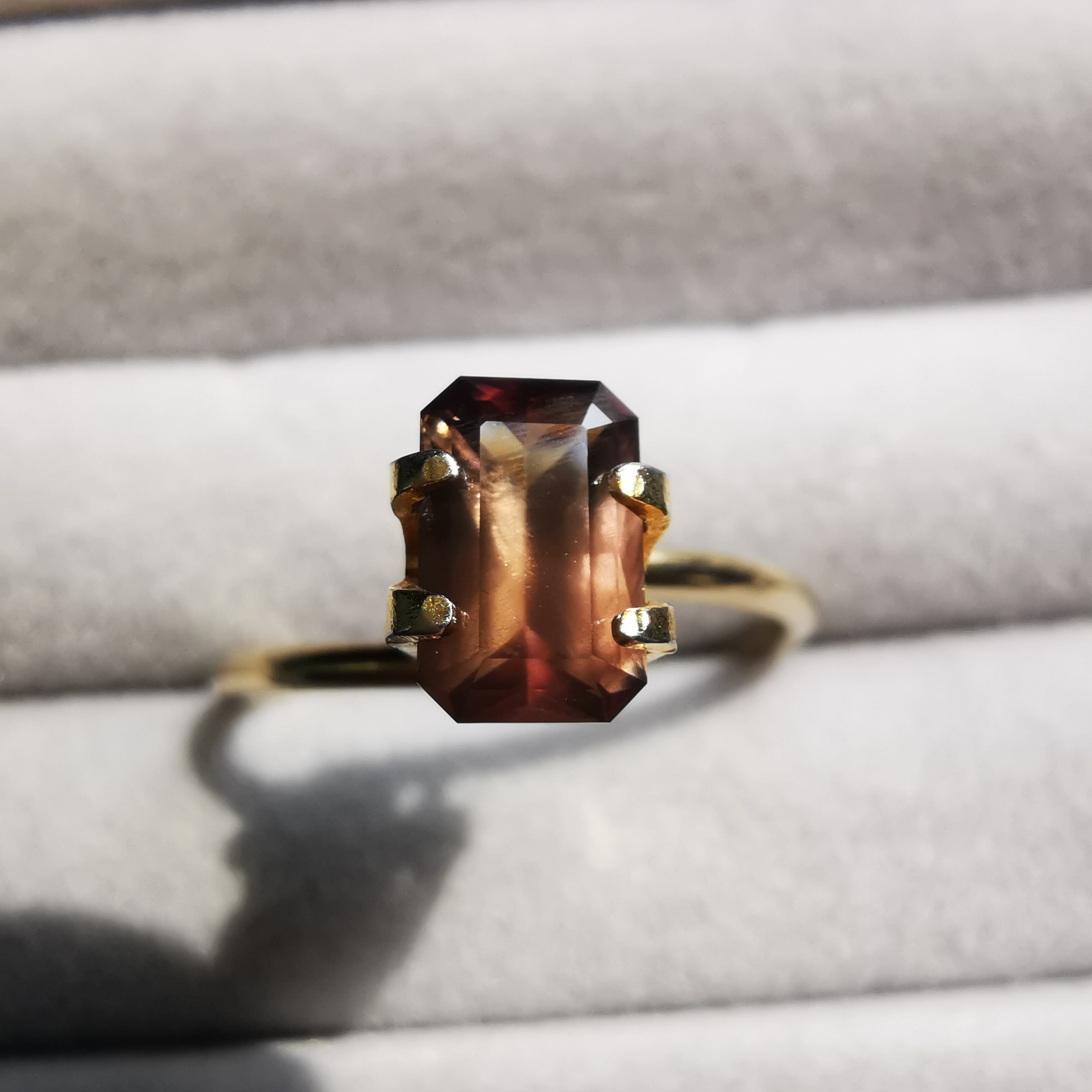 金のシラーは深いところにあるため、フェイスよりもパビリオンでしっかりときらめきを見ることができます。