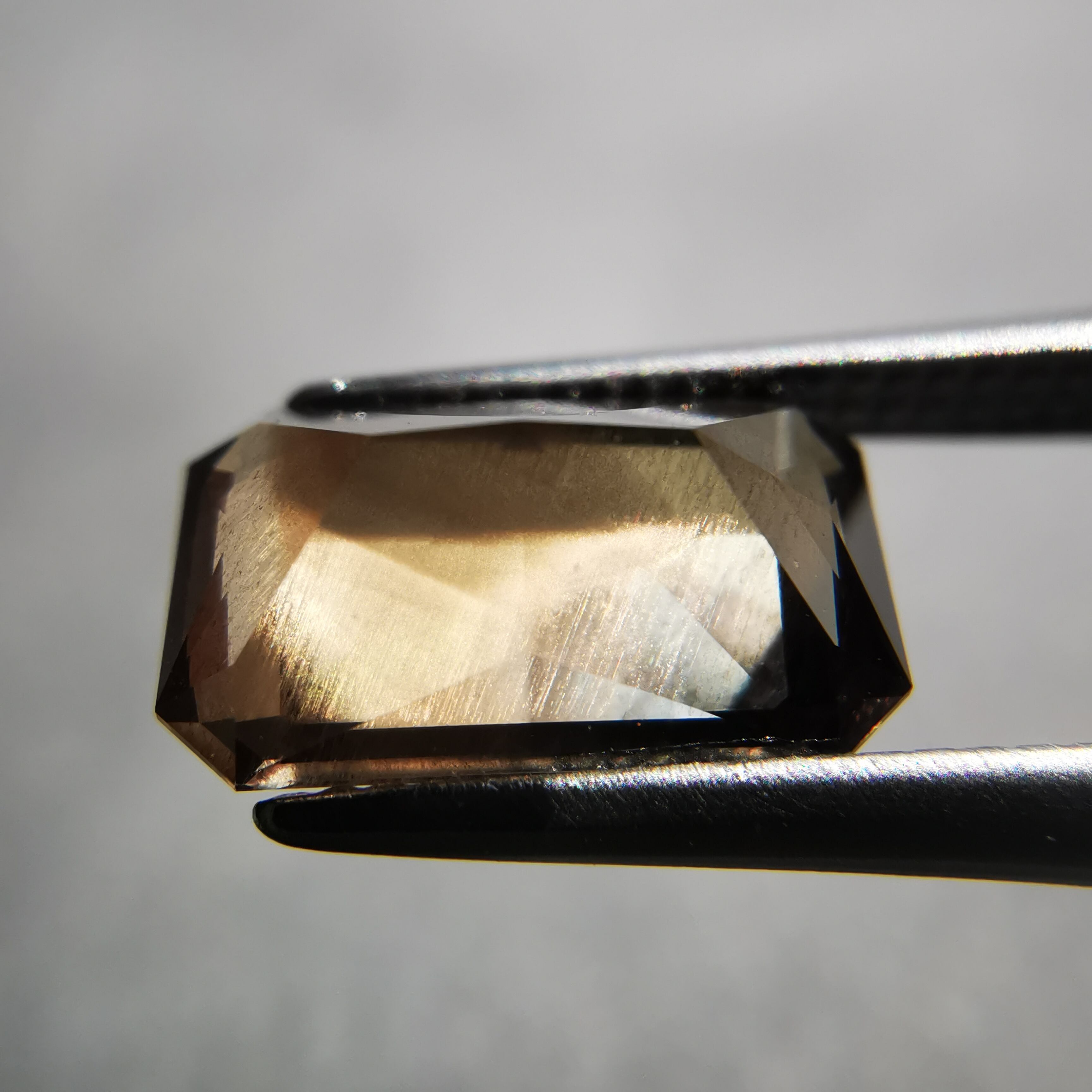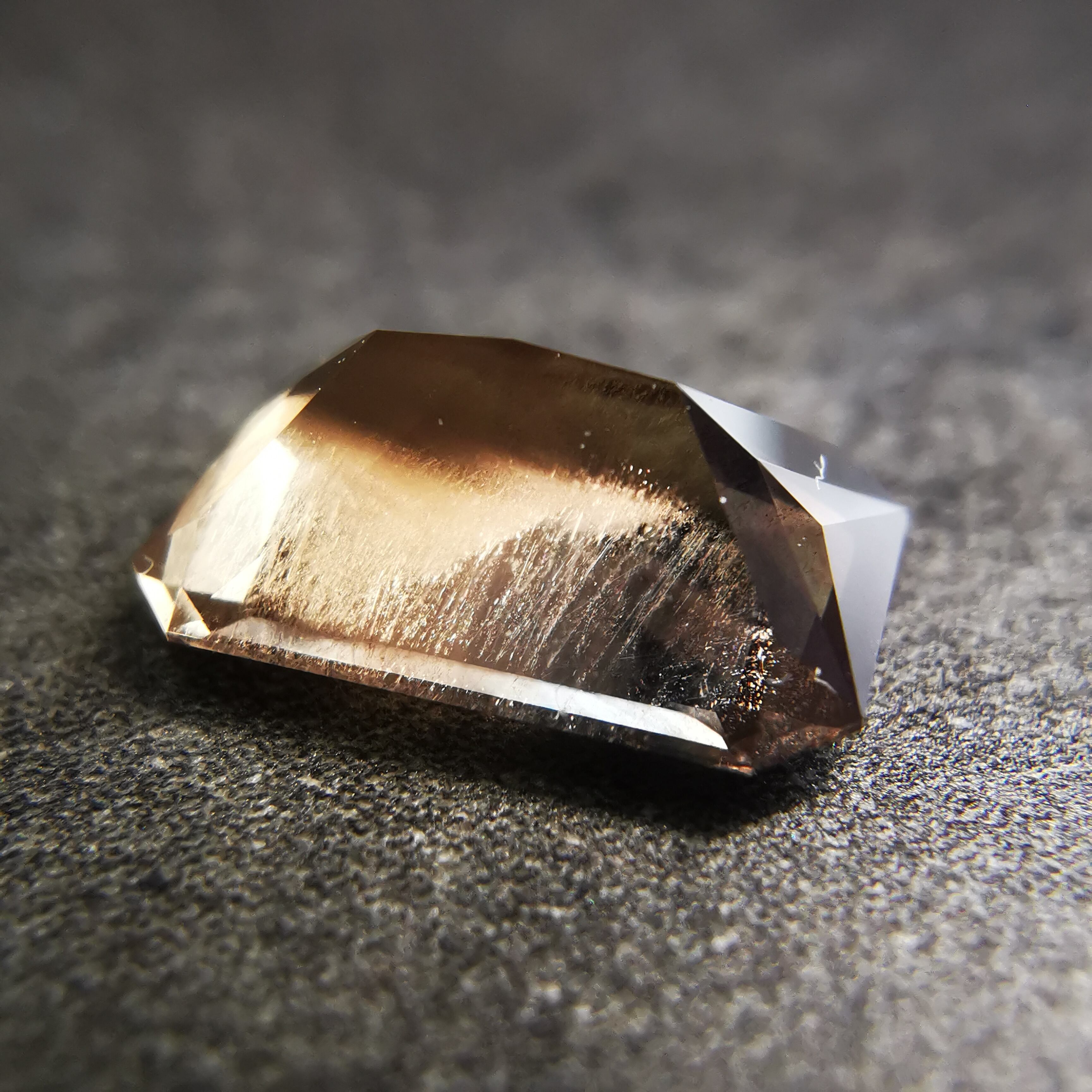 シラーのないもう一方の側は、やや透明度があり石自体の金茶のきらめきが見られます。